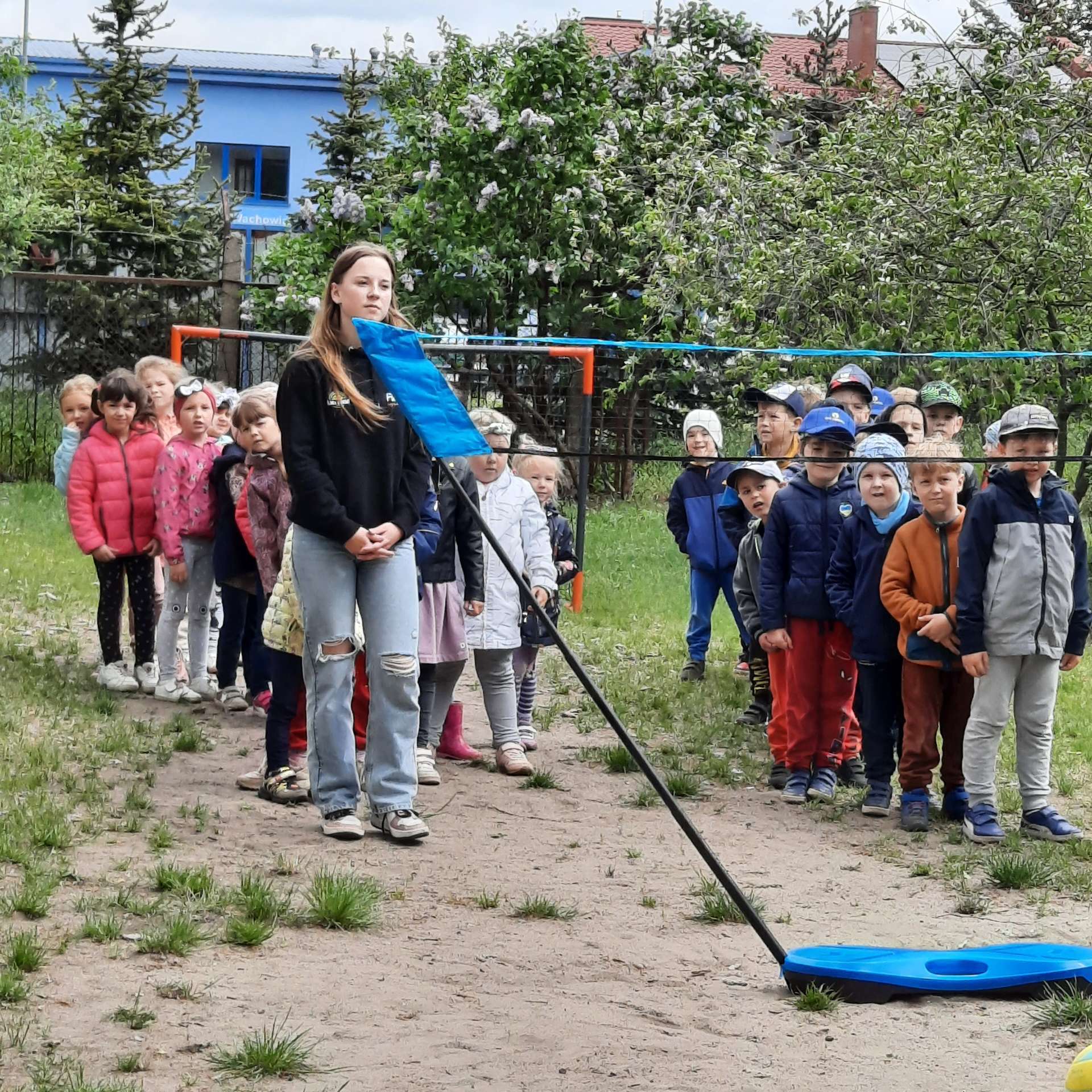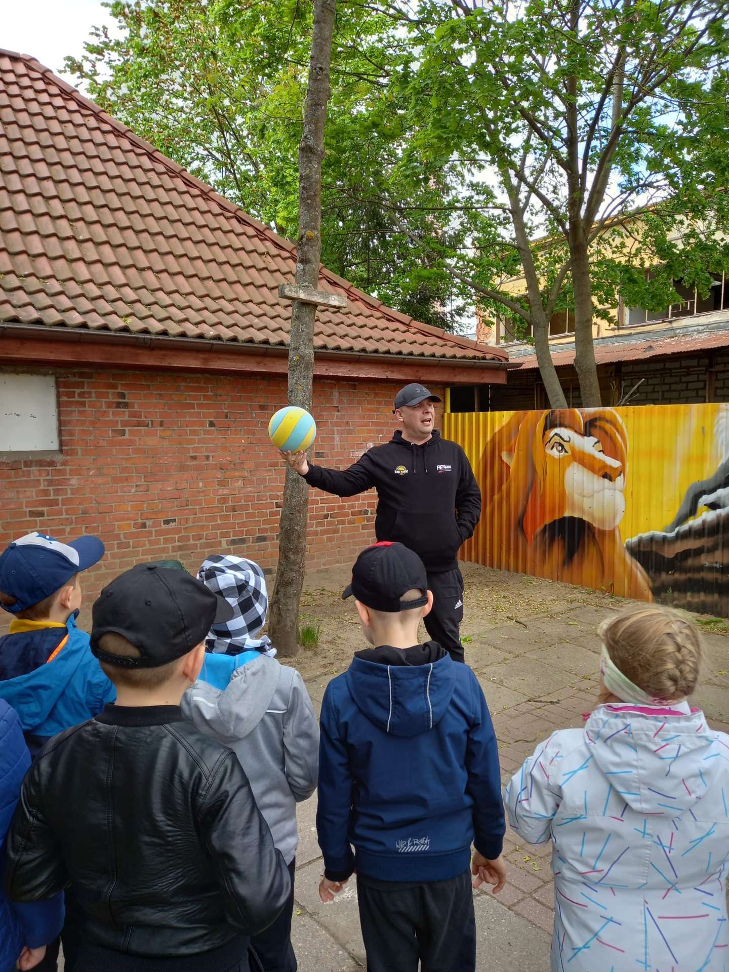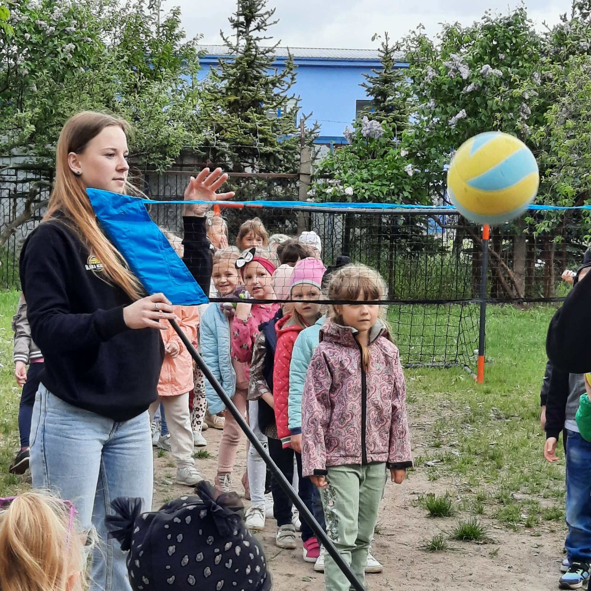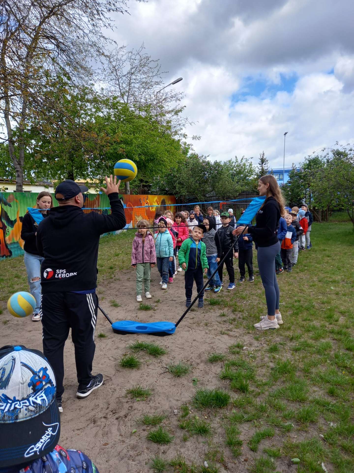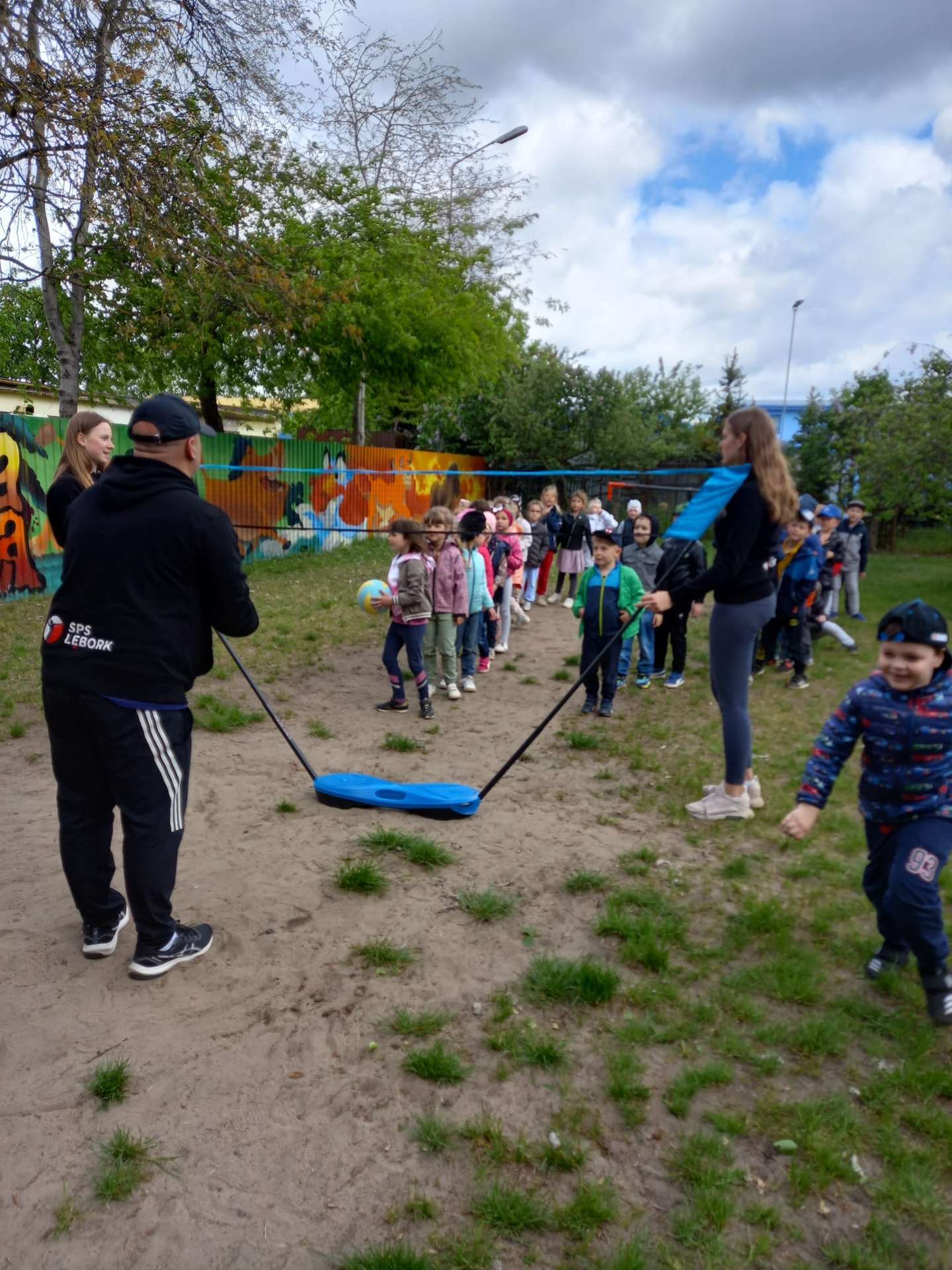 W ramach cyklu " Aktywnie spędzamy czas wolny" dzieci z grup najstarszych uczestniczyły w zajęciach sportowych. Zajęcia poprowadził trener piłki siatkowej SPS Lębork p. Marcin Dawidowski oraz dwie zawodniczki SPS -u. Trener opowiedział o najważniejszych elementach treningów, o systematyczności, obowiązkowości oraz korzyściach płynących z uprawiania "siatkówki" i aktywnego spędzania wolnego czasu. Zawodniczki z kolei przeprowadziły konkurencje sportowe. Zwycięzcy otrzymali nagrody - czapki sportowe. Dużą atrakcją dla dzieci były wspólne tańce rozgrzewające. Na zakończenie zajęć trener przekazał upominki dla przedszkola - przenośne boisko do piłki siatkowej oraz piłkę. To było niesamowite spotkanie !