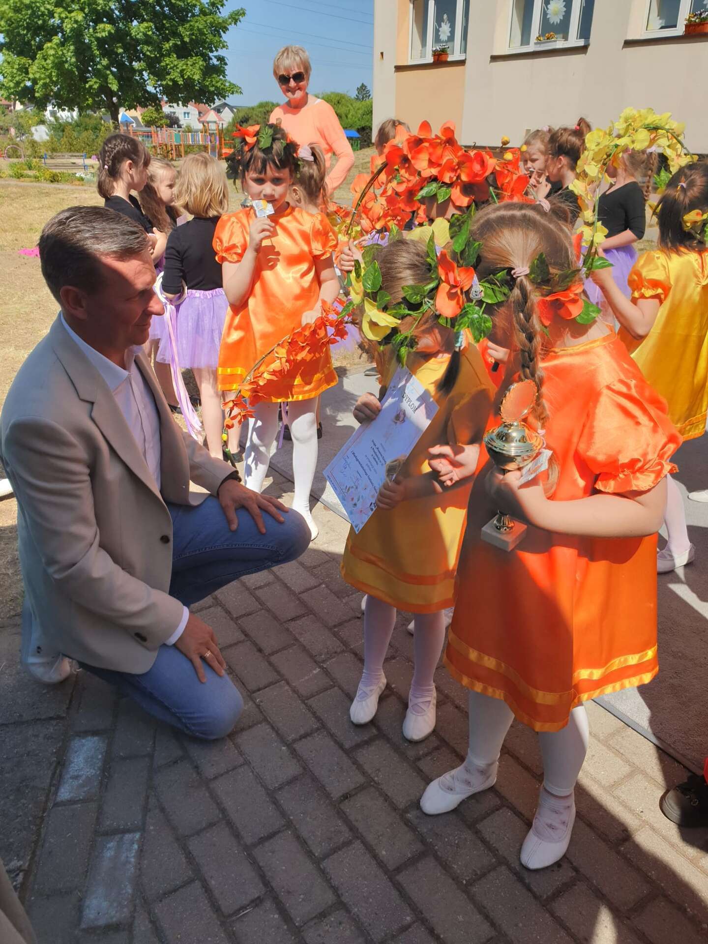 Dziewczynki odbierające nagrodę