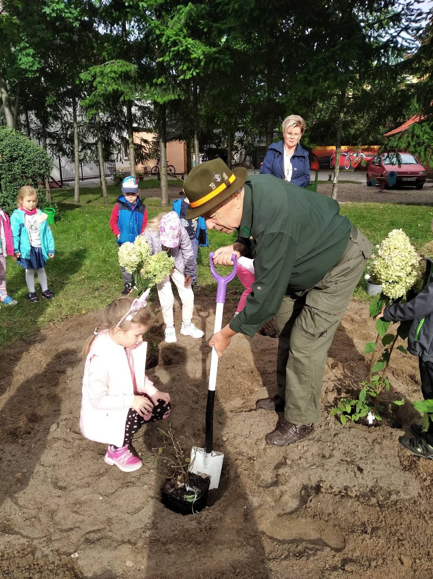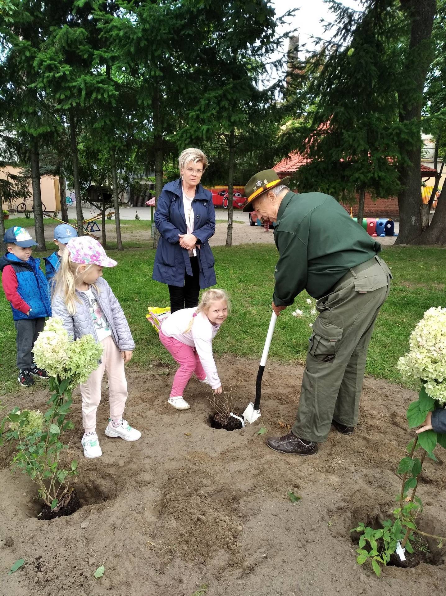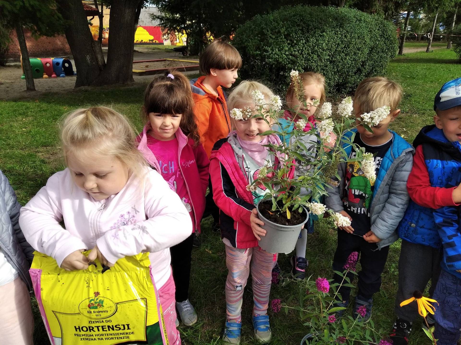 Zanieczyszczenie środowiska, niszczenie śródpolnych zadrzewień i nieużytków, powodują, że giną owady. Dlatego nasze przedszkole zadbało o to, by ogród stał się enklawą zasiedloną przez pożyteczne owady. Dzieci wspólnie z myśliwym posadziły w ogrodzie : hortensje, jeżówki i budleje - rośliny, które spowodują, że owady wędrowcy, zwłaszcza motyle na dłużej zagoszczą u nas.
