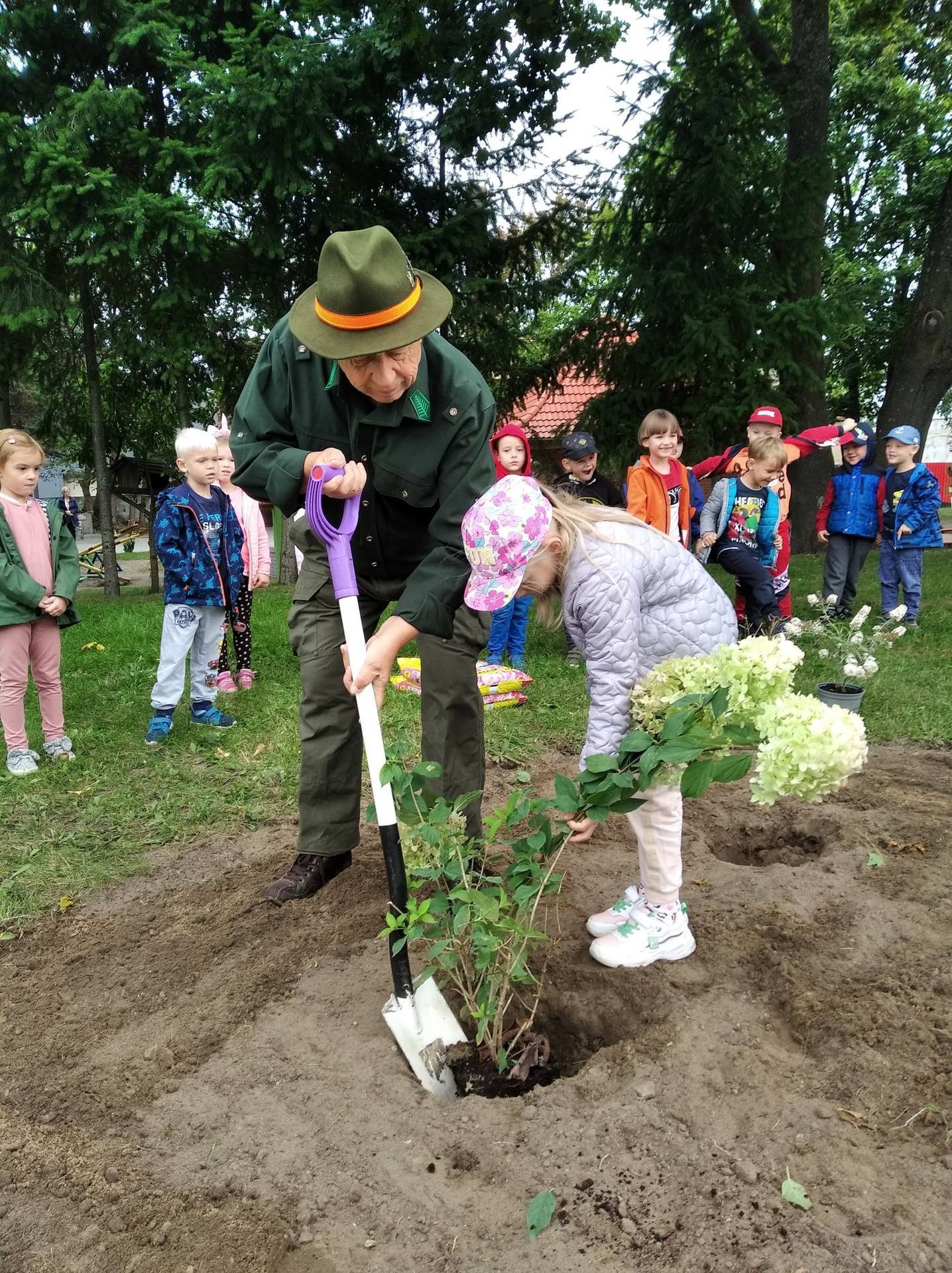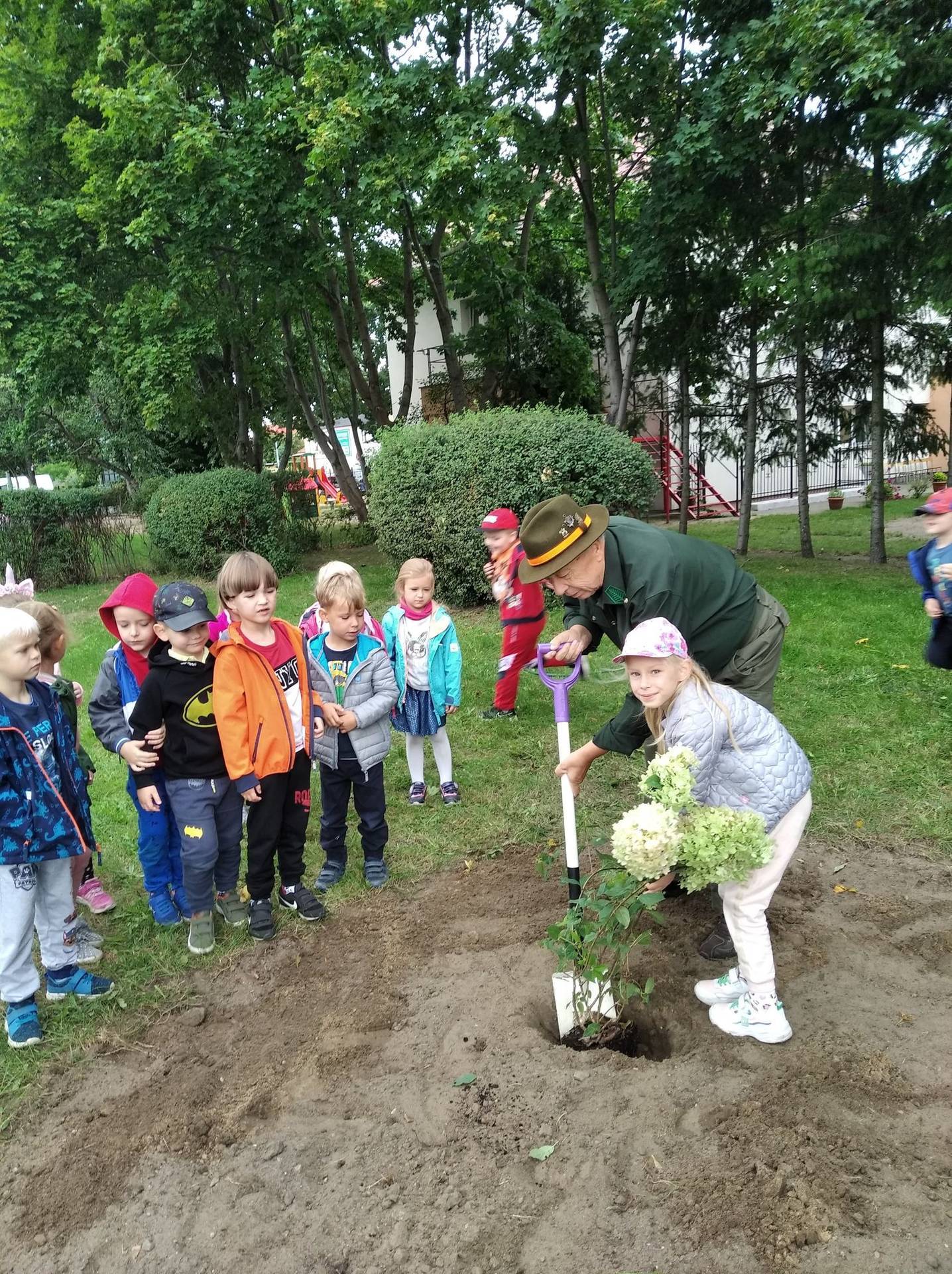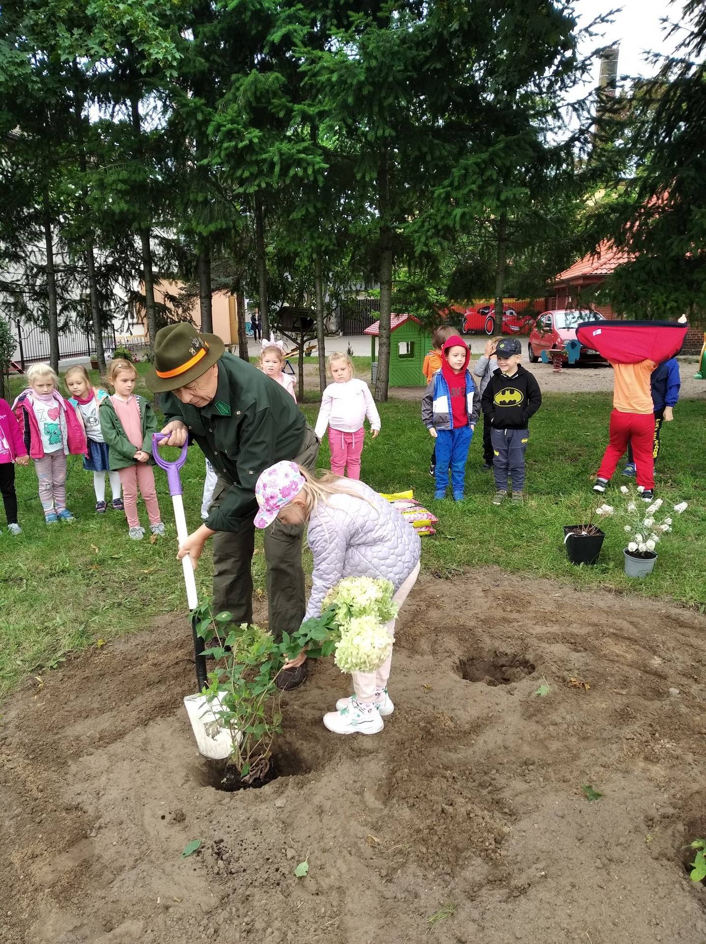 Zanieczyszczenie środowiska, niszczenie śródpolnych zadrzewień i nieużytków, powodują, że giną owady. Dlatego nasze przedszkole zadbało o to, by ogród stał się enklawą zasiedloną przez pożyteczne owady. Dzieci wspólnie z myśliwym posadziły w ogrodzie : hortensje, jeżówki i budleje - rośliny, które spowodują, że owady wędrowcy, zwłaszcza motyle na dłużej zagoszczą u nas.