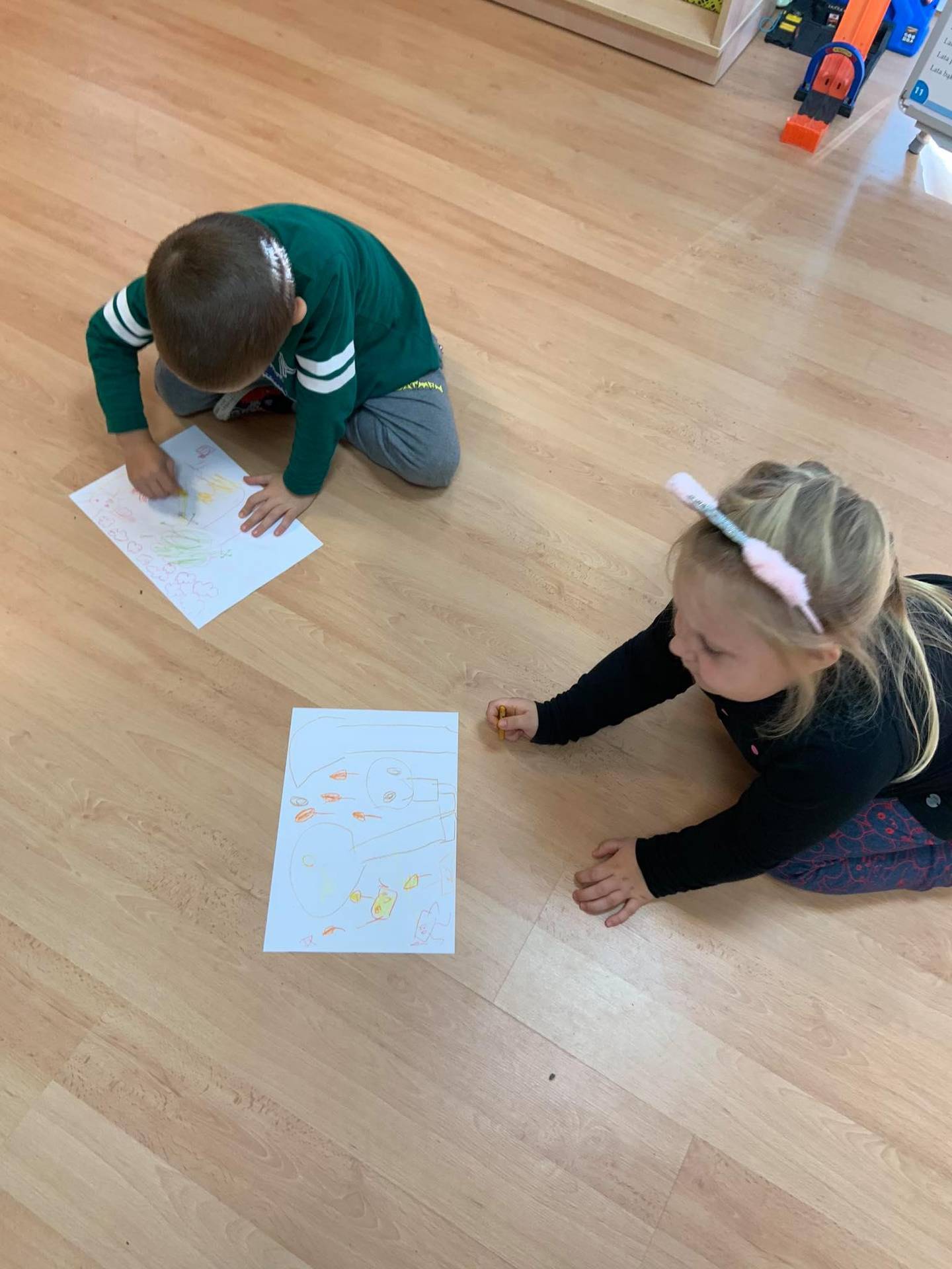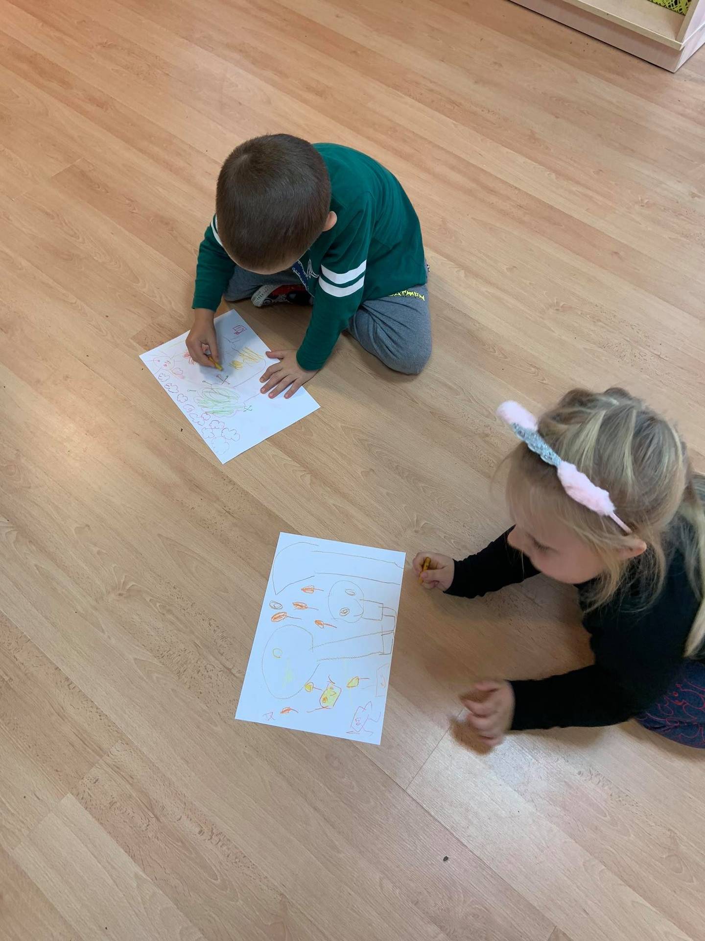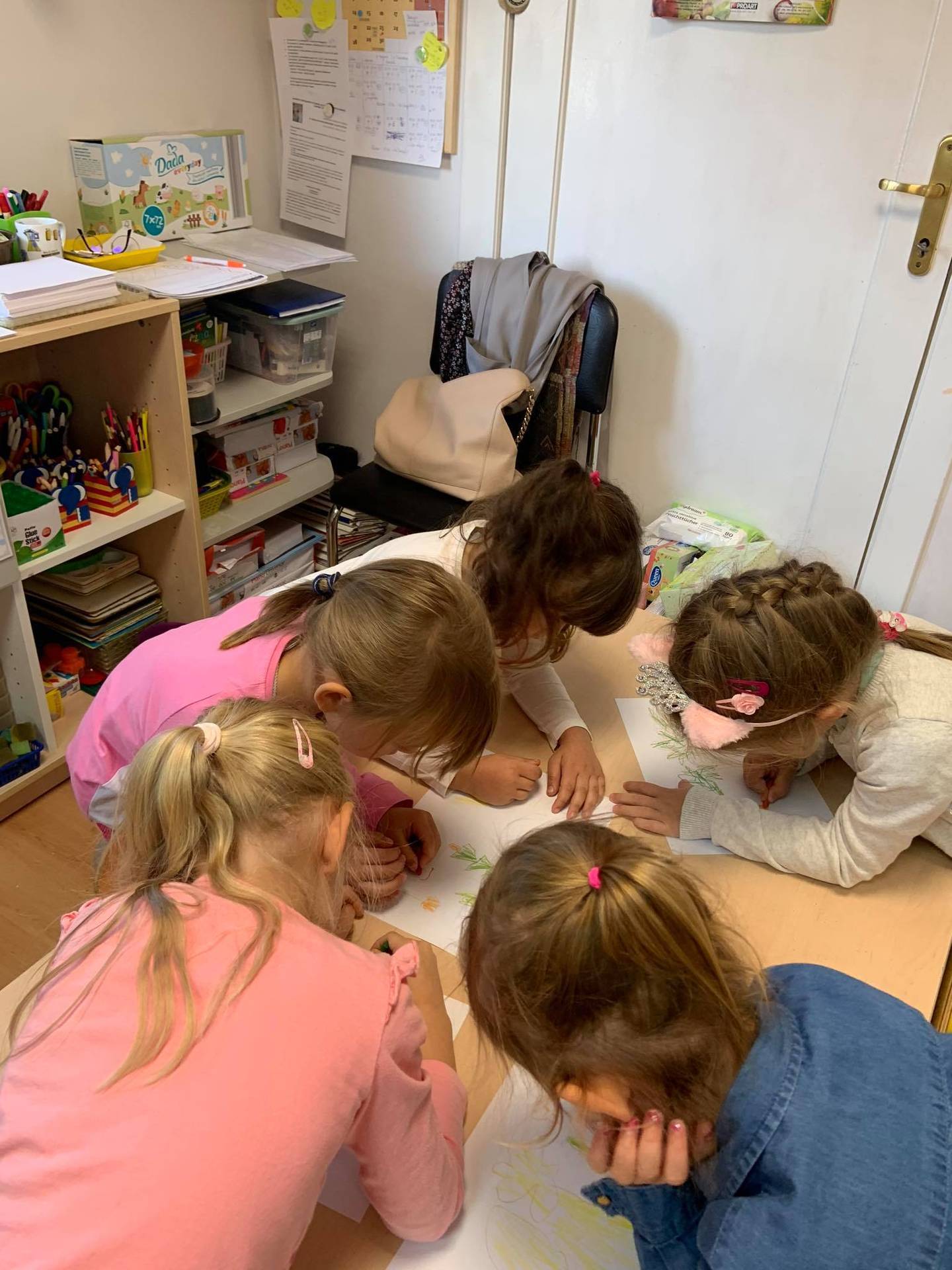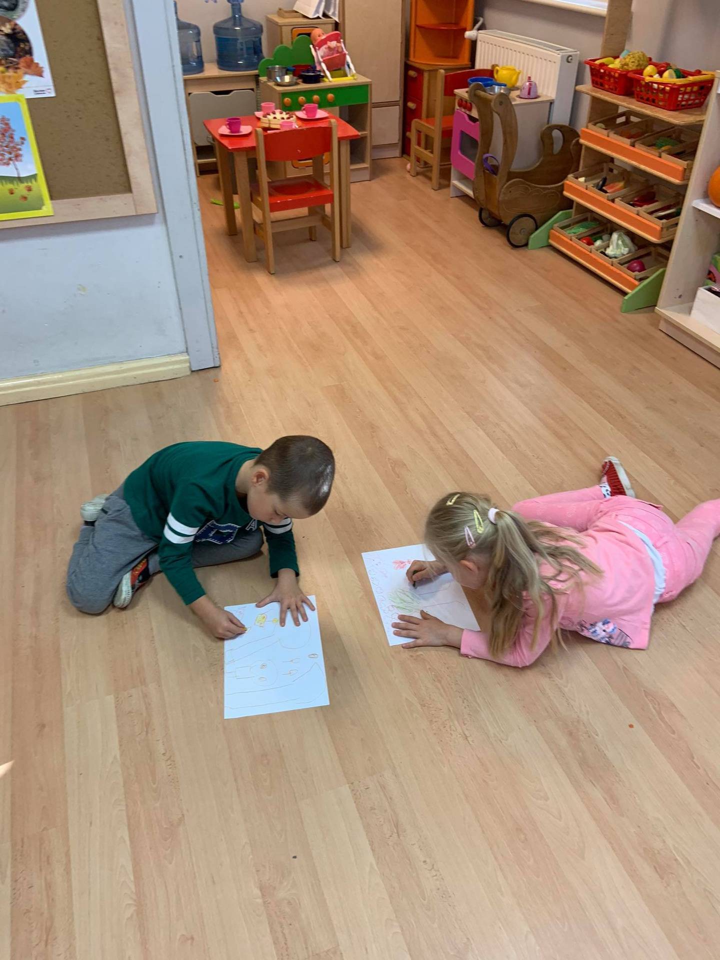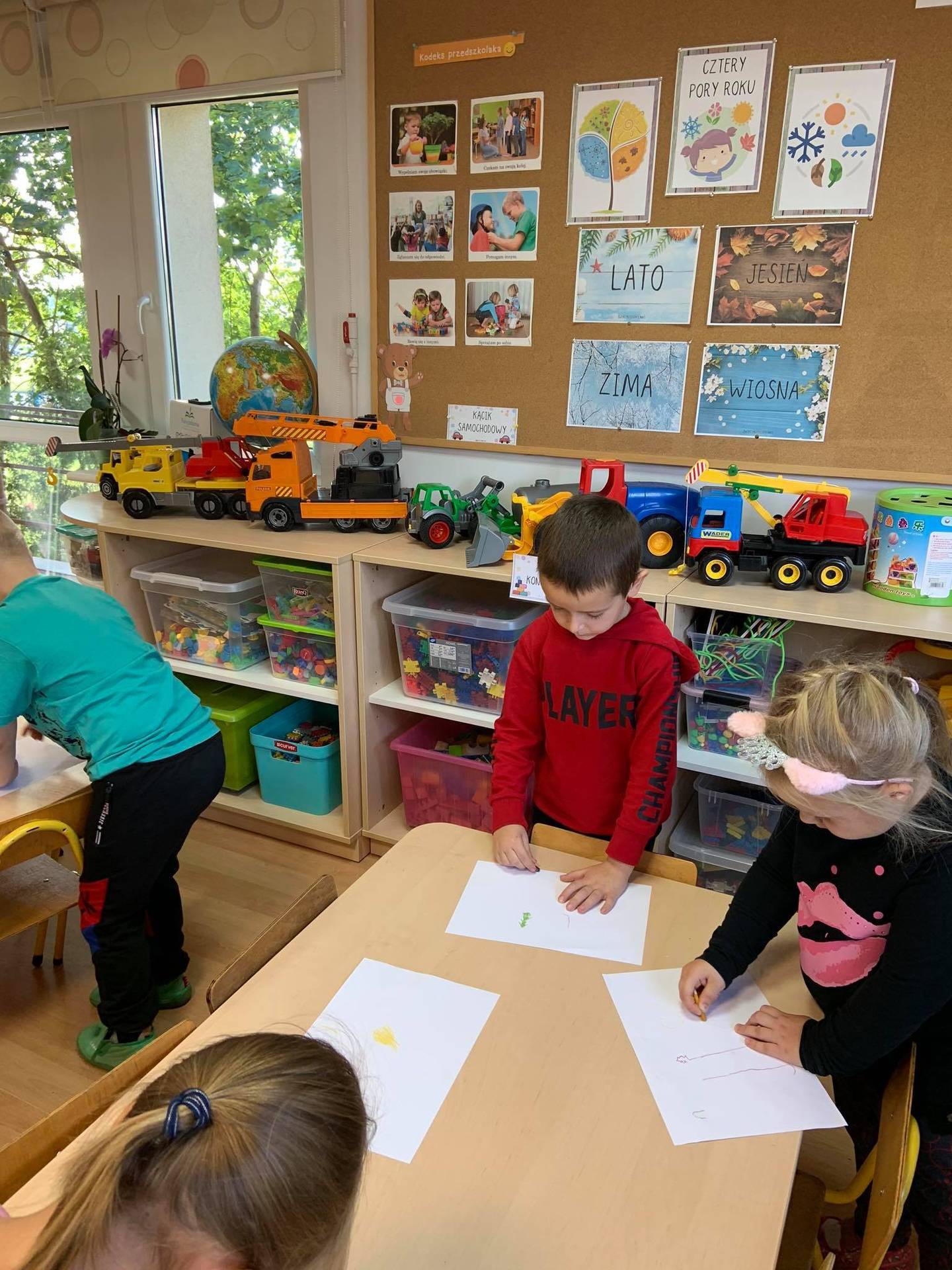 Dzisiaj dzieci z grupy III z wielkim zaangażowaniem uczestniczyły w zajęciach muzycznych. Przedszkolaki rysowały jesień na różnych kartkach do piosenki "Jesień maluje"