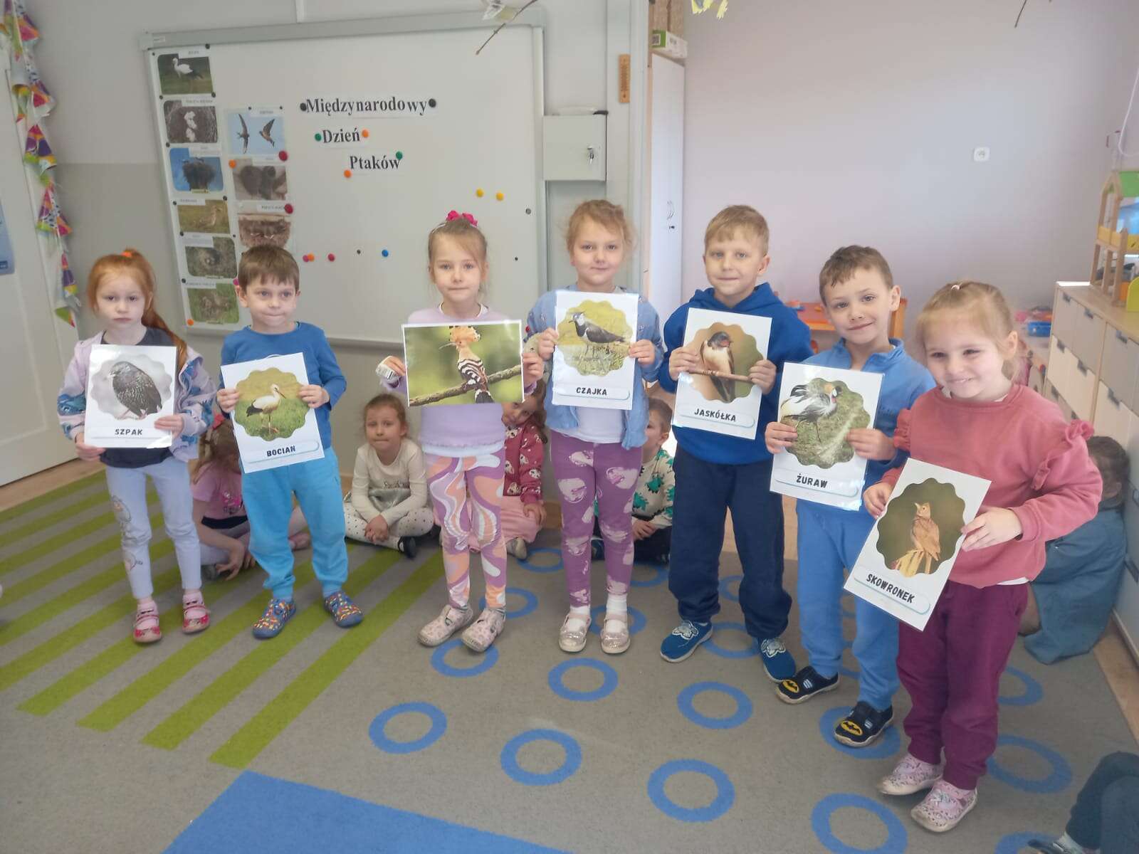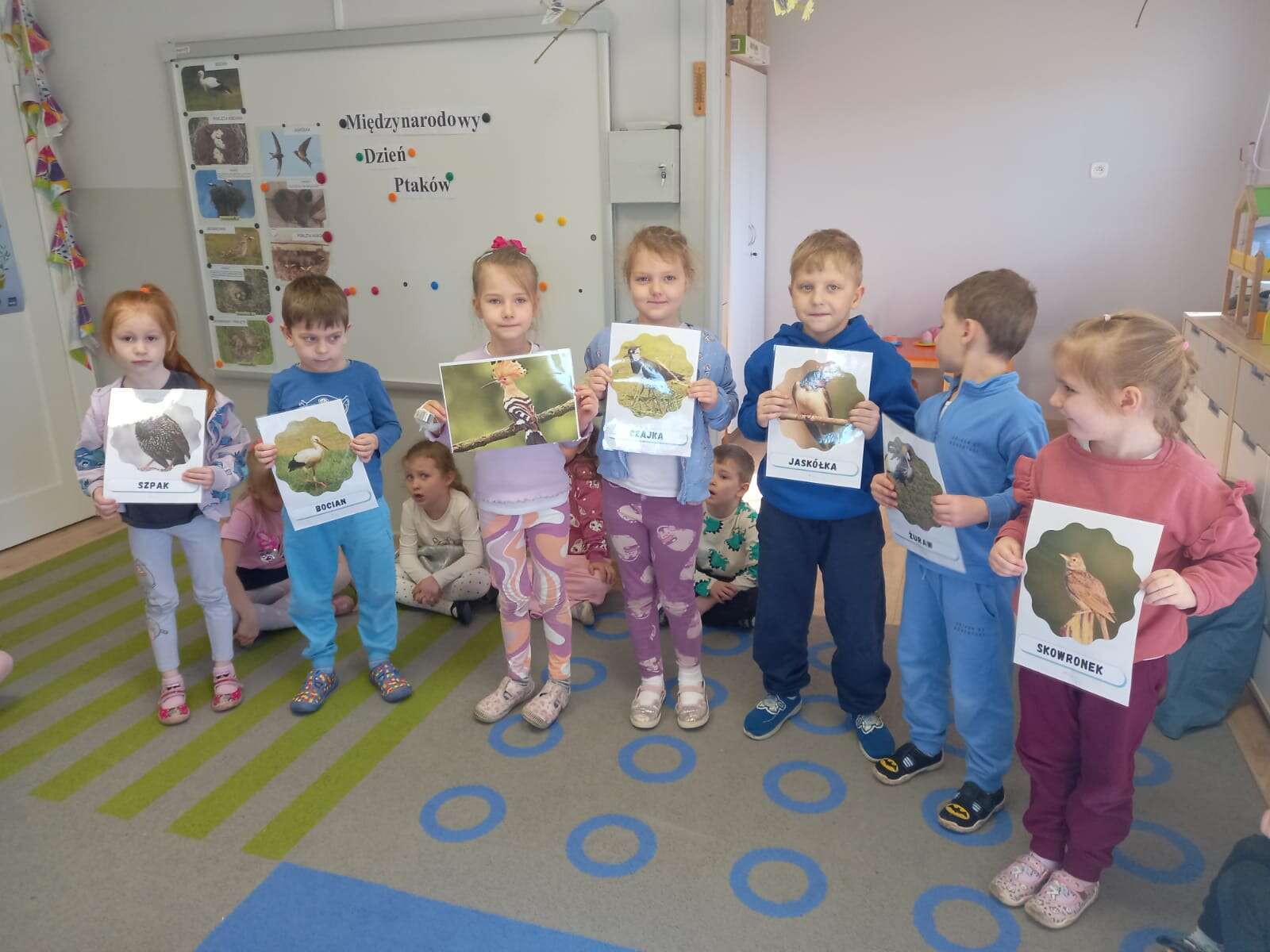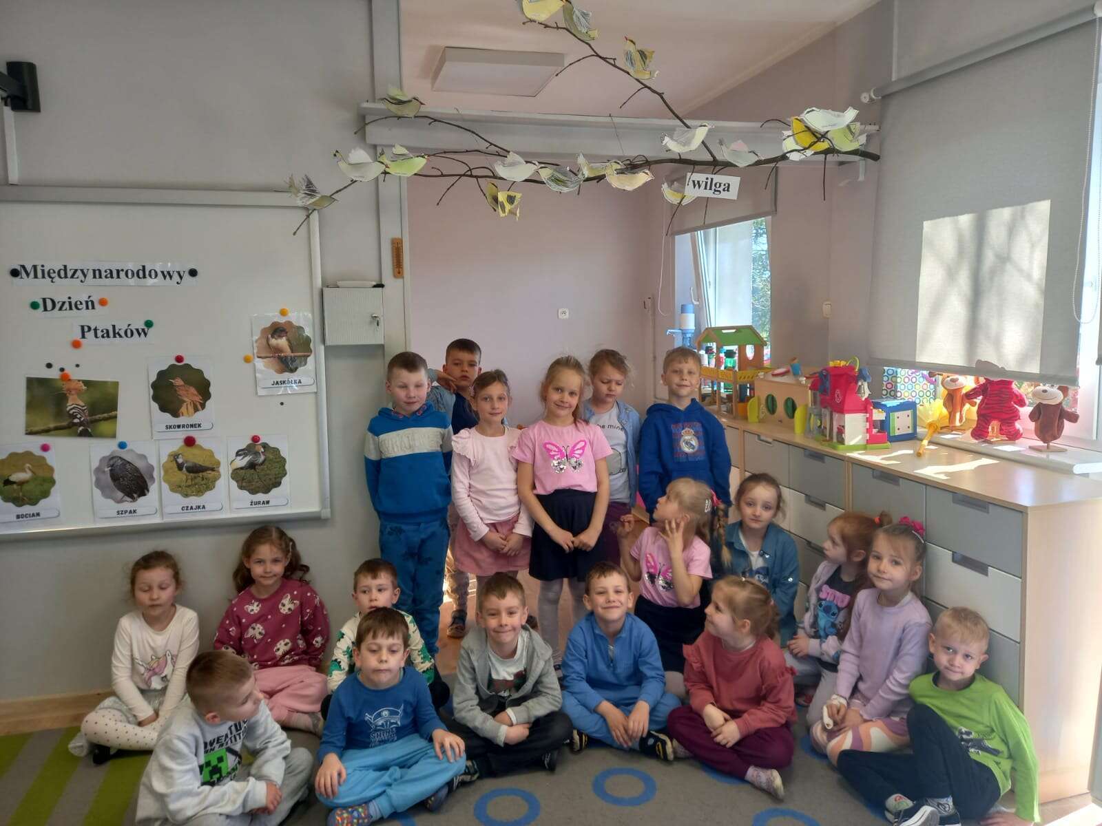 Międzynarodowy Dzień Ptaka dzieci uczciły podczas zajęcia otwartego z udziałem p. dyrektor. Zajęcie poprowadziła p. Tereska. W zabawach matematycznych, przyrodniczych, ruchowych i plastycznych dzieci utrwalały wiadomości o ptaszkach. Wszystkie dzieci z dużym zaangażowaniem uczestniczyły w zajęciu. Dobór zadań dał im wiele satysfakcji i pozwolił na różnorodną aktywność. Super !