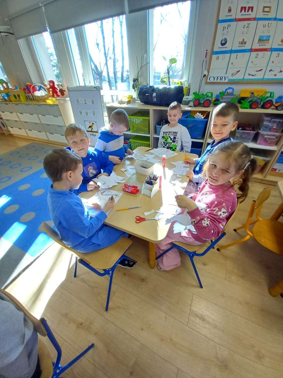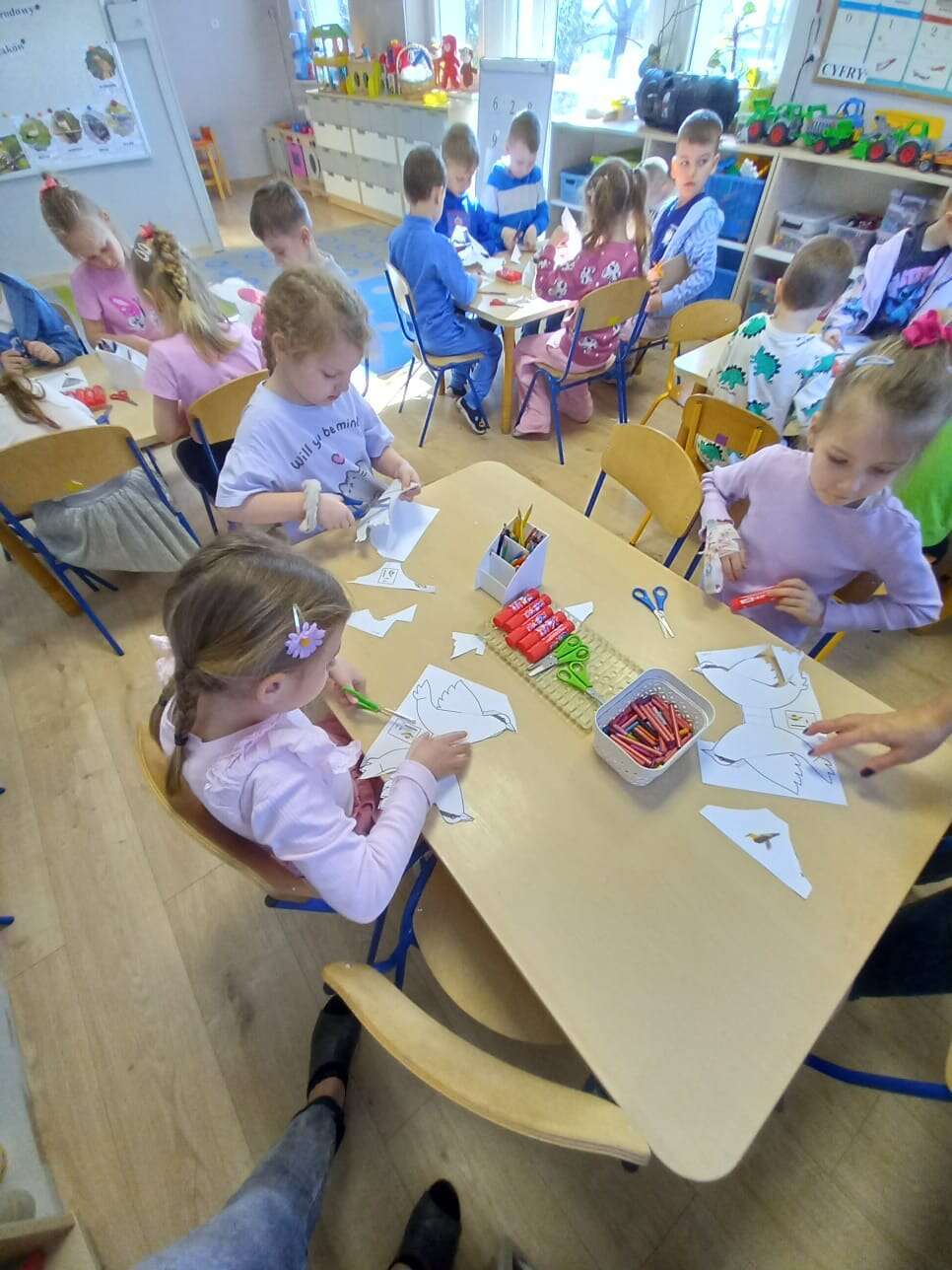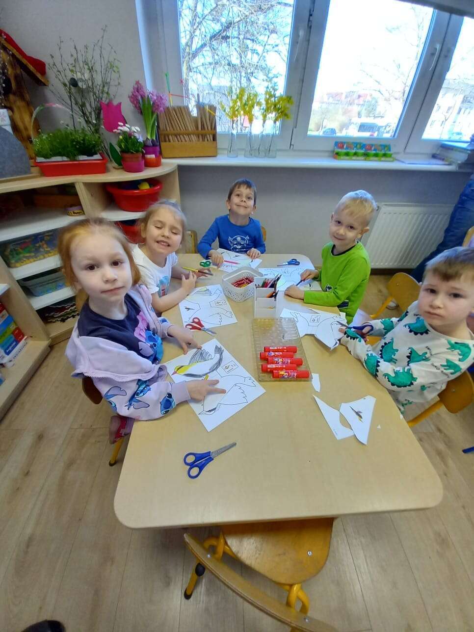 Międzynarodowy Dzień Ptaka dzieci uczciły podczas zajęcia otwartego z udziałem p. dyrektor. Zajęcie poprowadziła p. Tereska. W zabawach matematycznych, przyrodniczych, ruchowych i plastycznych dzieci utrwalały wiadomości o ptaszkach. Wszystkie dzieci z dużym zaangażowaniem uczestniczyły w zajęciu. Dobór zadań dał im wiele satysfakcji i pozwolił na różnorodną aktywność. Super !