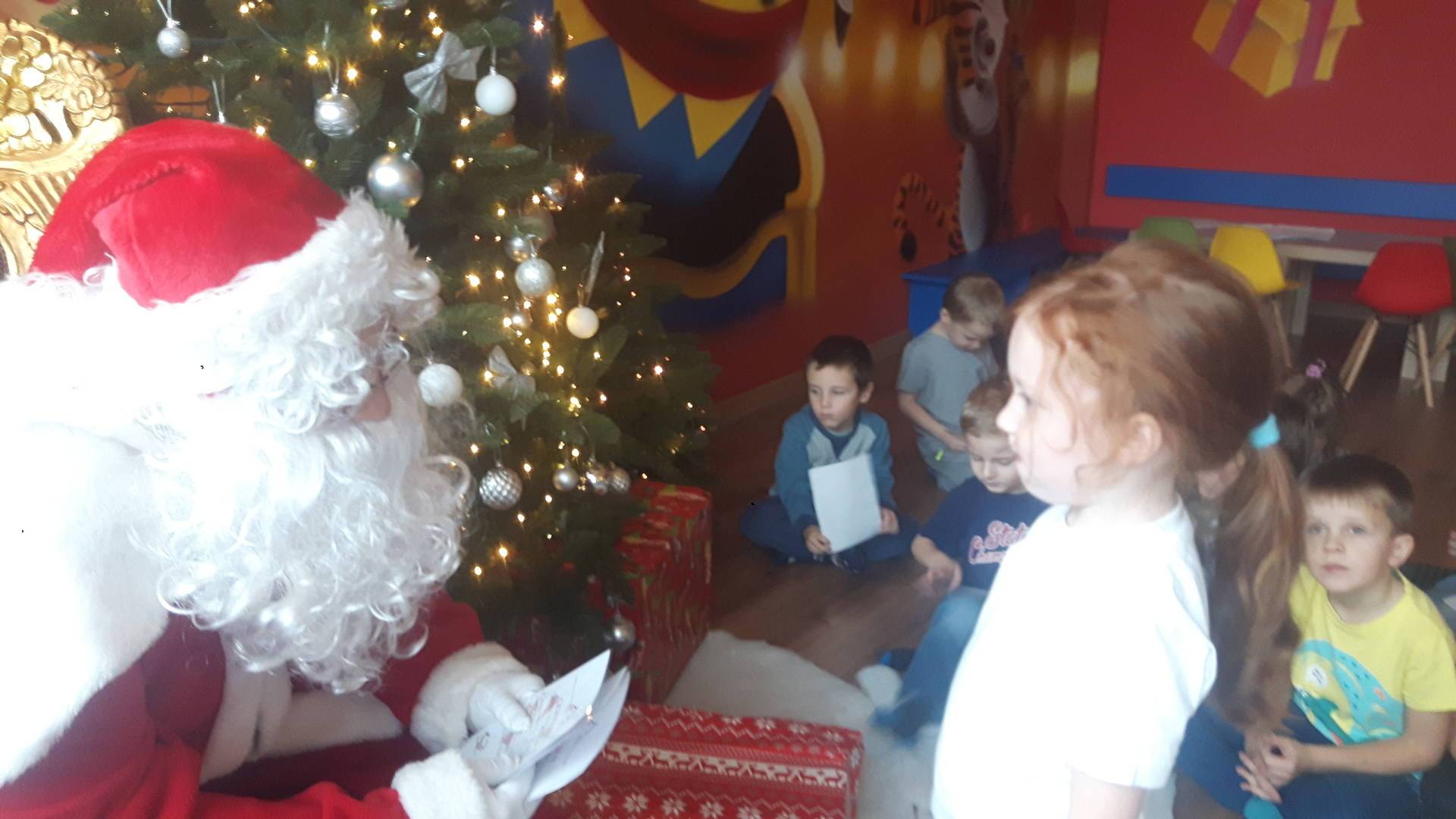 Na koniec zaskoczył nas Święty Mikołaj, który zaprosił naszych przedszkolaków do odpowiedzenia na kilka pytań, a potem zaśpiewały piosenkę o Mikołaju. Dzieci dostały od niego certyfikaty grzeczności. Było cudownie!!!!!!!!!!