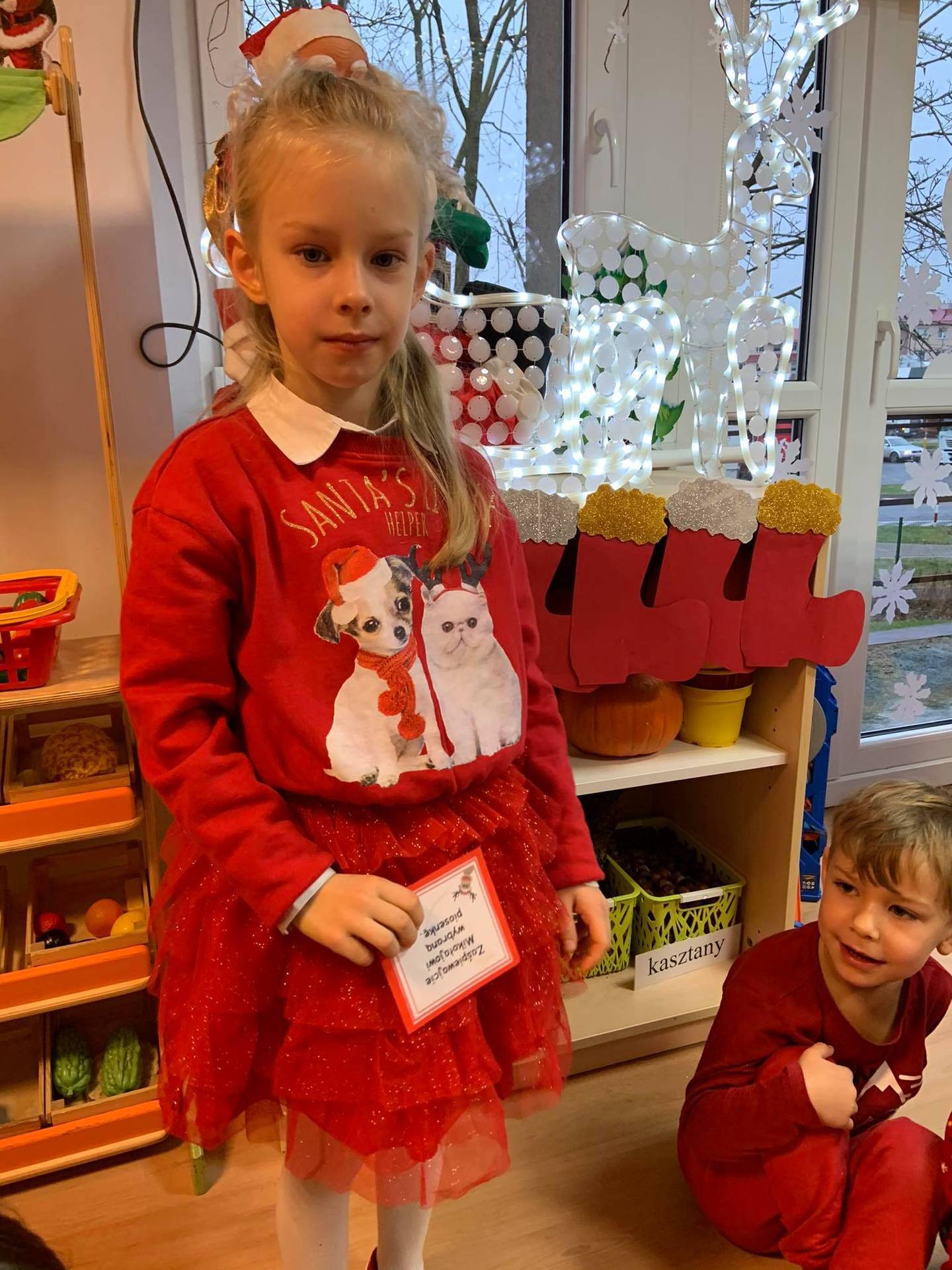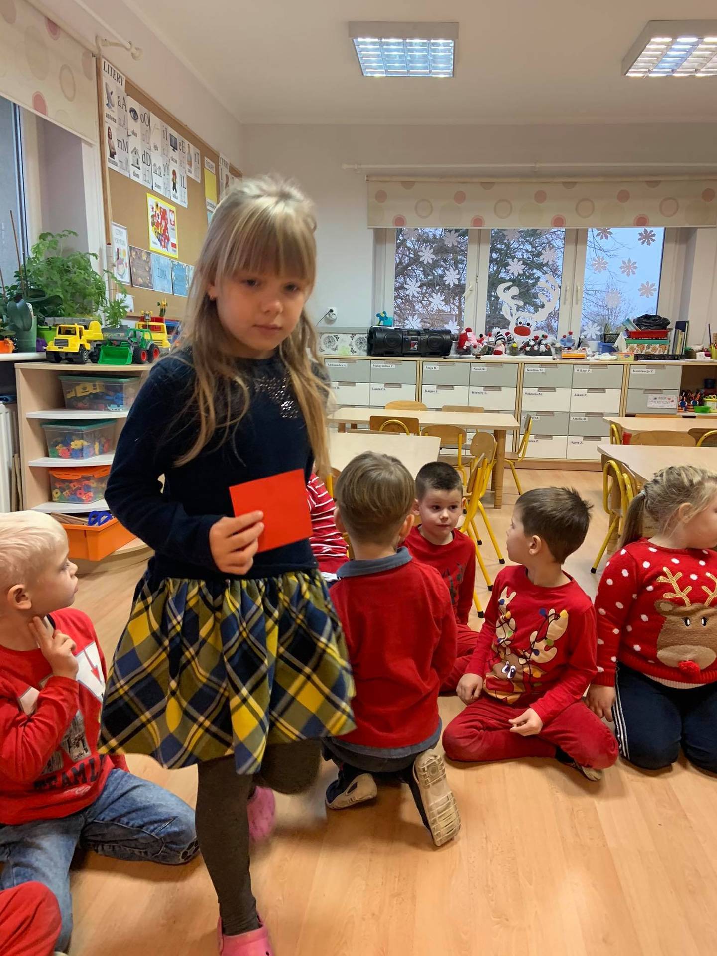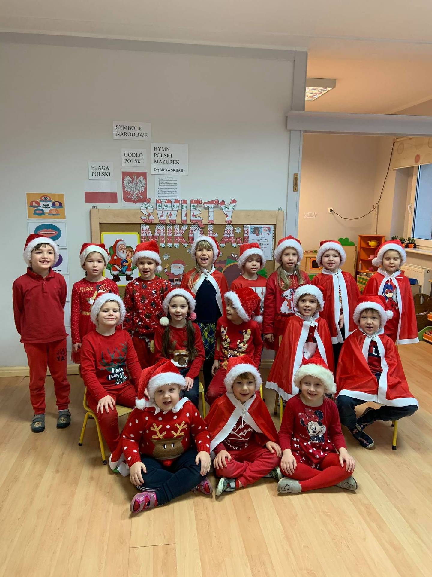 Mikołajki - długo wyczekiwany przez wszystkich dzień. Z tej okazji dzieci przyszły do przedszkola ubrane na czerwono, a na głowach miały mikołajkowe czapki. Wszyscy mieli świetne humory, uśmiech nie schodził z naszych twarzy. Dzieci w zostawionym przez Mikołaja liście dostały kilka zadań do wykonania - dzielnie wszystkim sprostały. Zadania do wykonania :