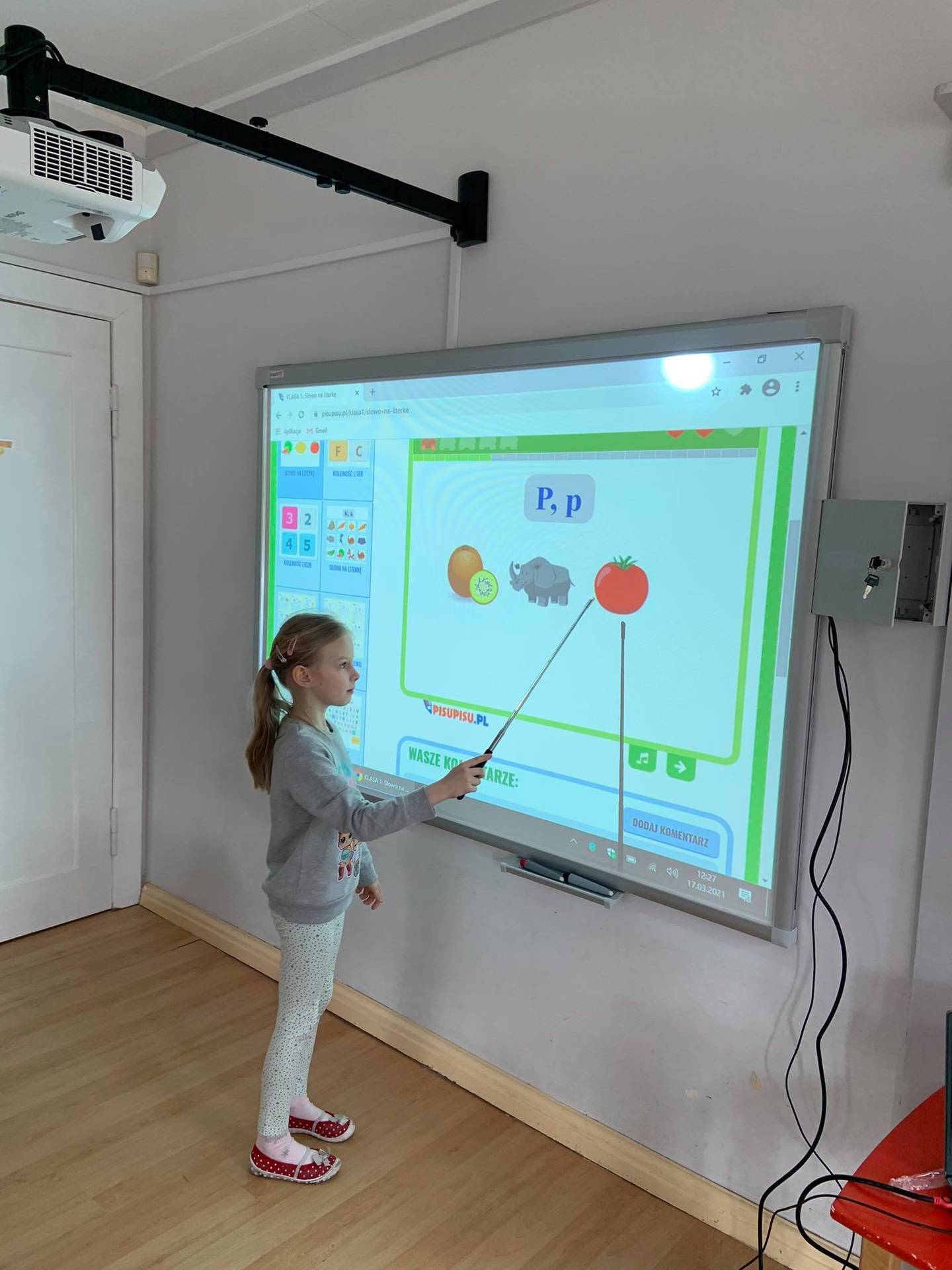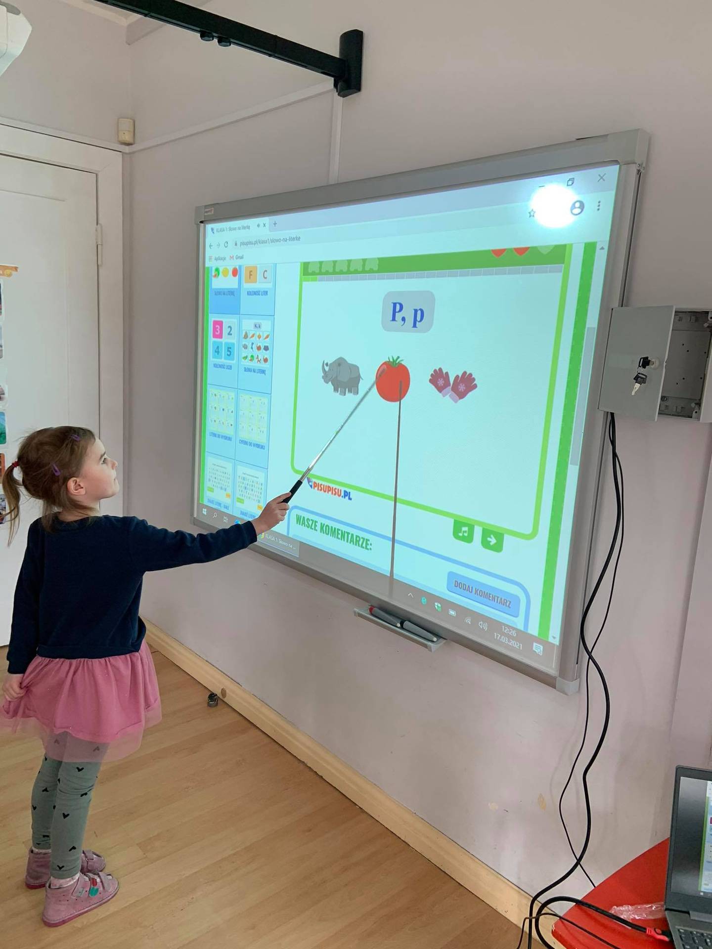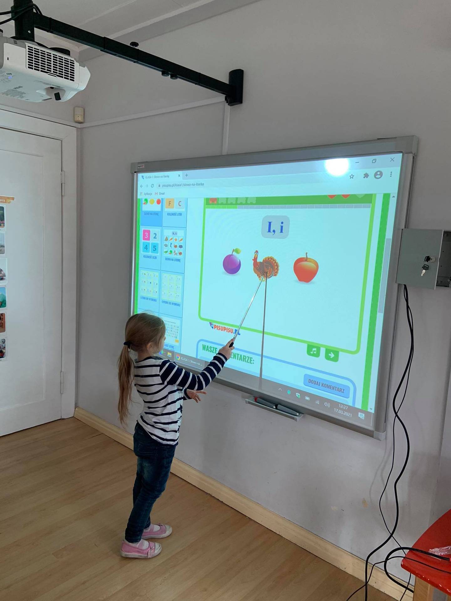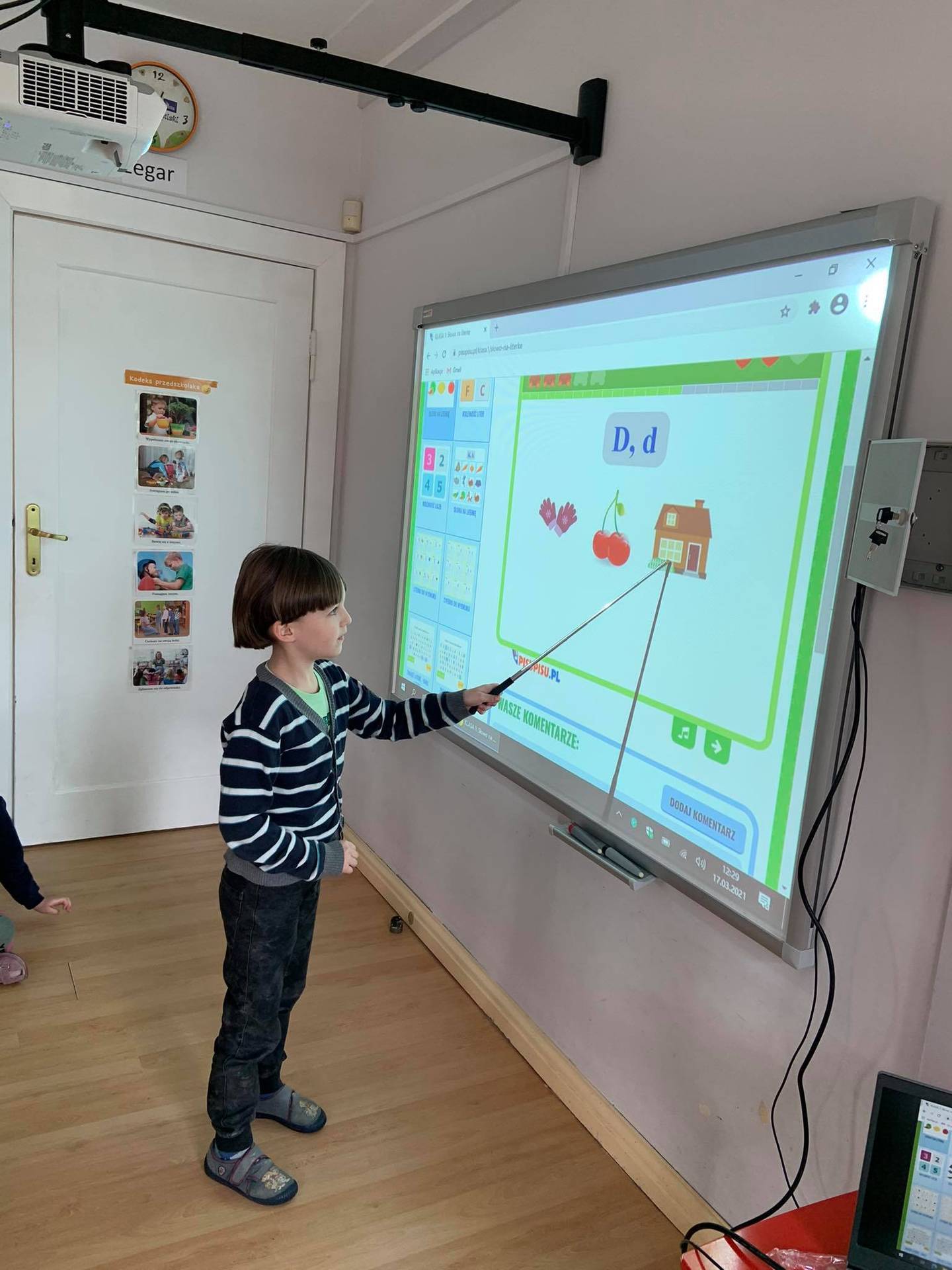 Właśnie dotarła do nas zakupiona przez Rodziców tablica interaktywna. Już z niej korzystamy . Dzisiaj uczyliśmy się i utrwalaliśmy poznane litery.