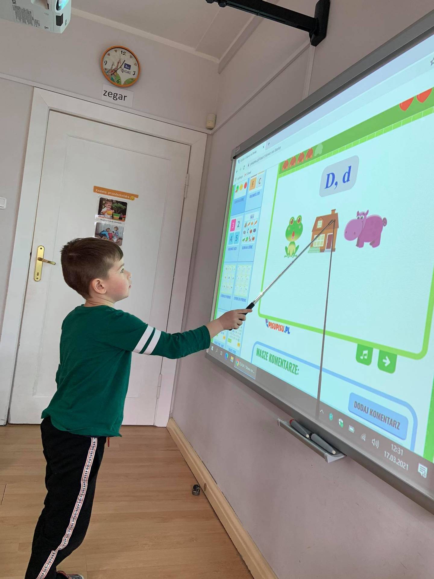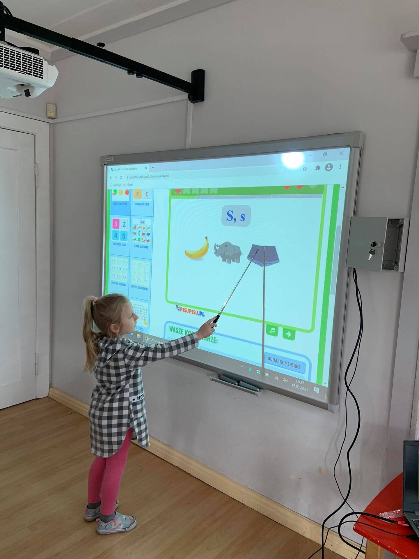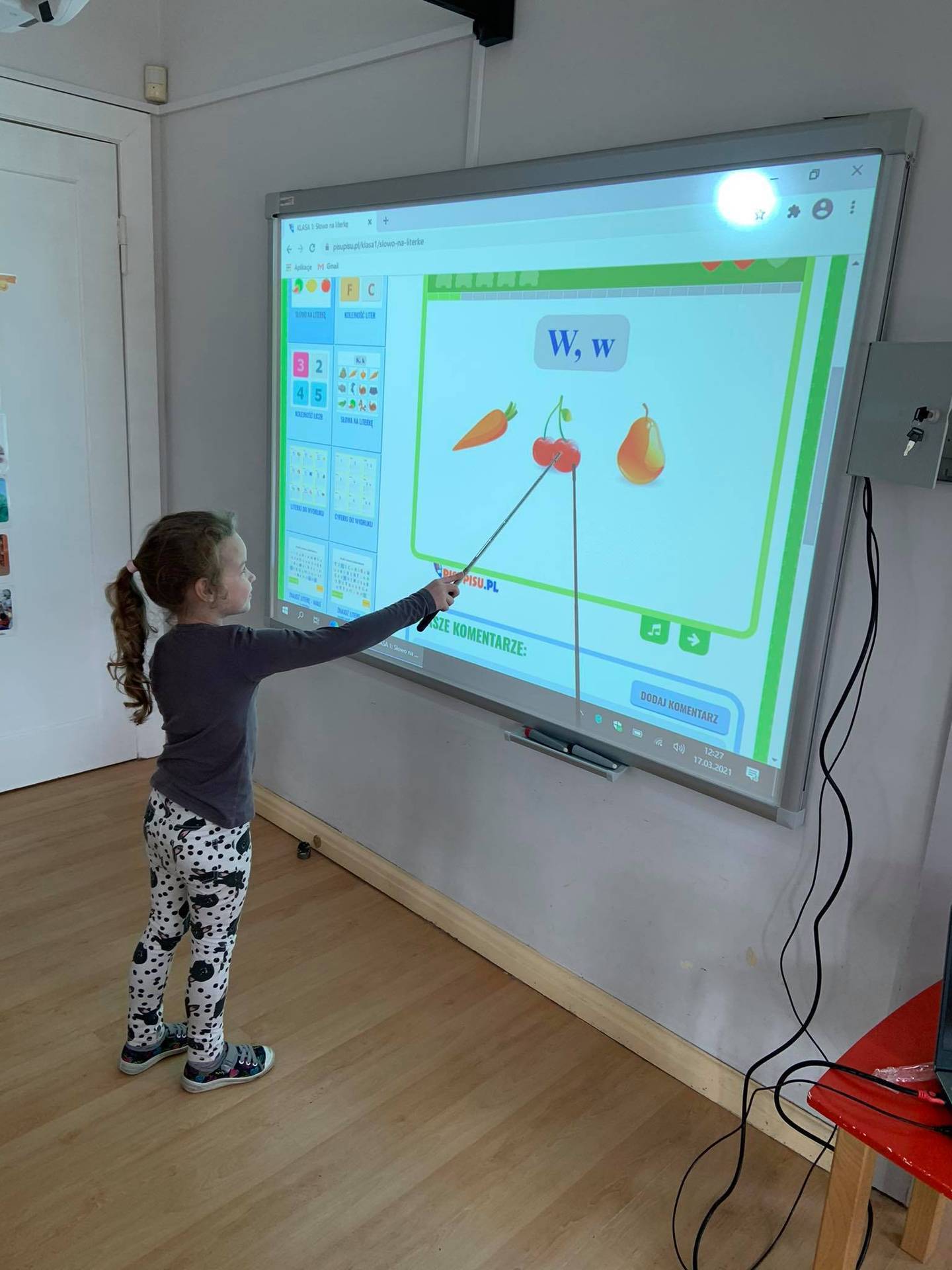 Właśnie dotarła do nas zakupiona przez Rodziców tablica interaktywna. Już z niej korzystamy . Dzisiaj uczyliśmy się i utrwalaliśmy poznane litery.