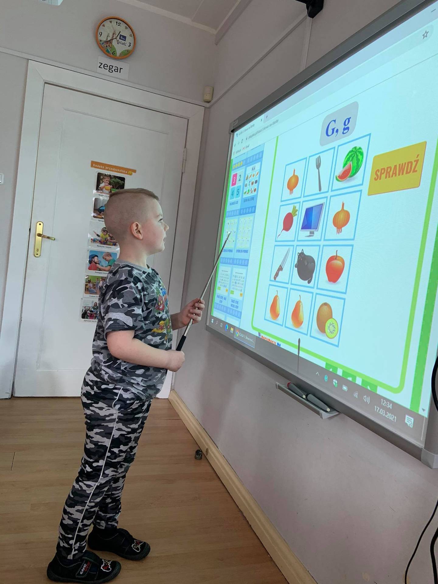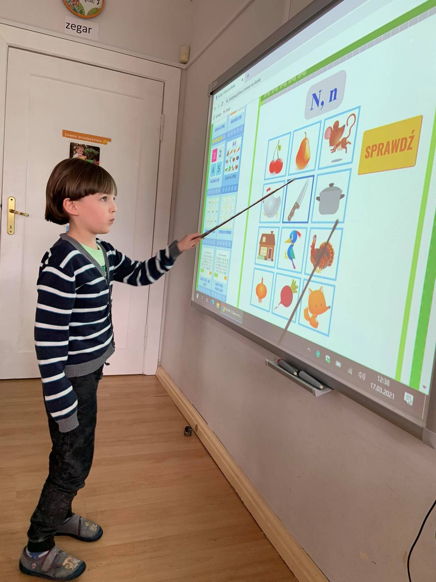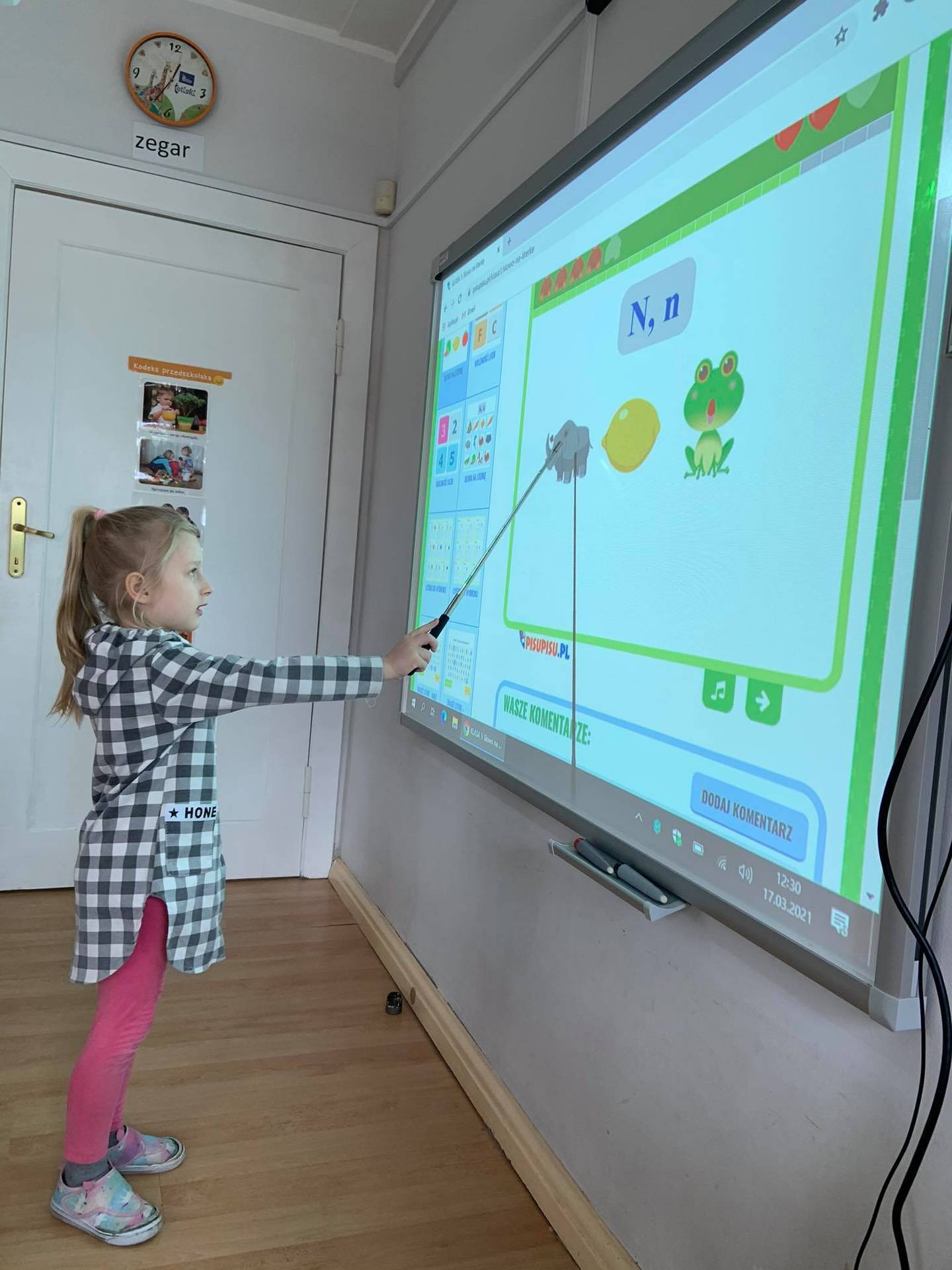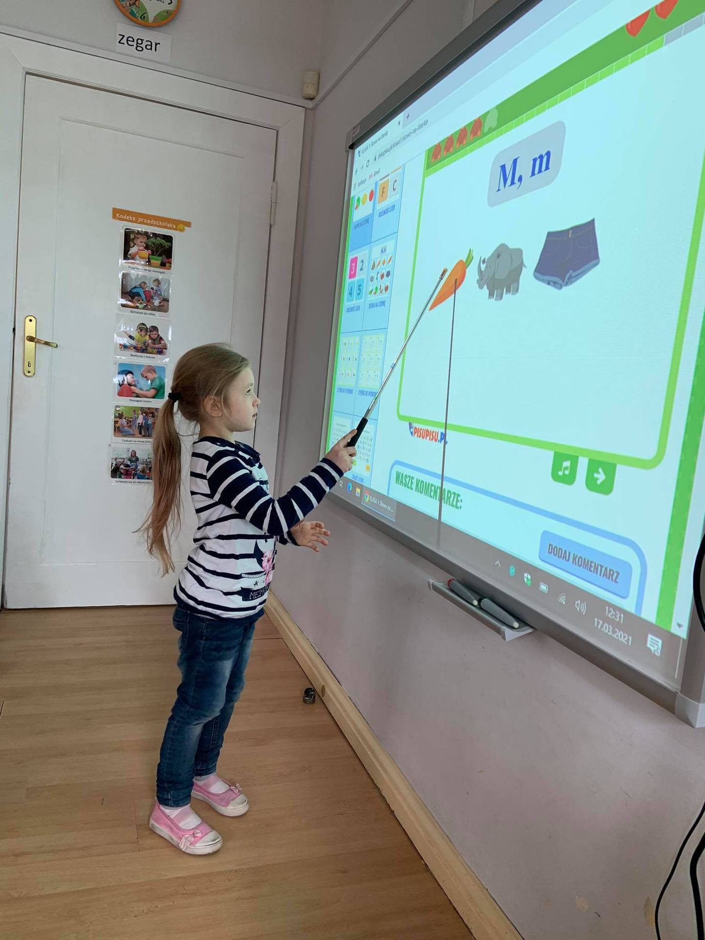 Właśnie dotarła do nas zakupiona przez Rodziców tablica interaktywna. Już z niej korzystamy . Dzisiaj uczyliśmy się i utrwalaliśmy poznane litery.