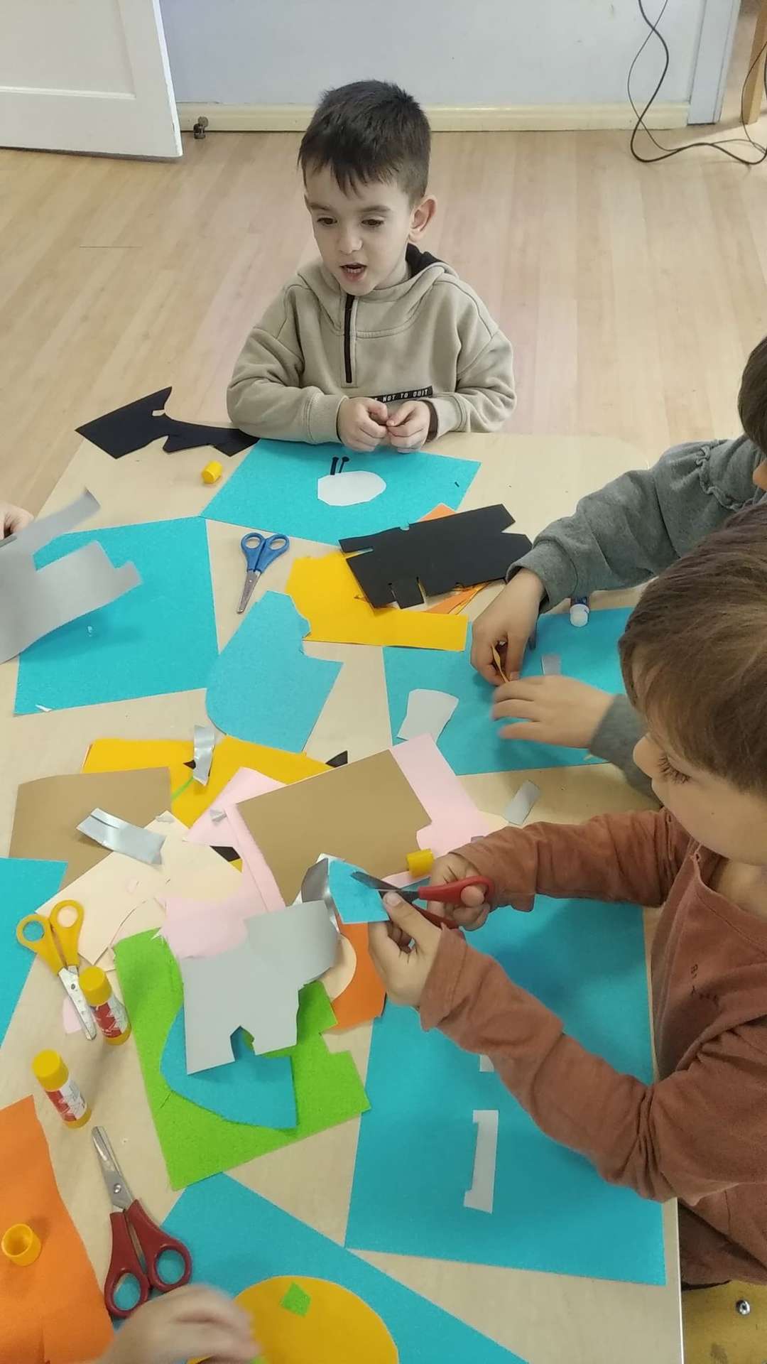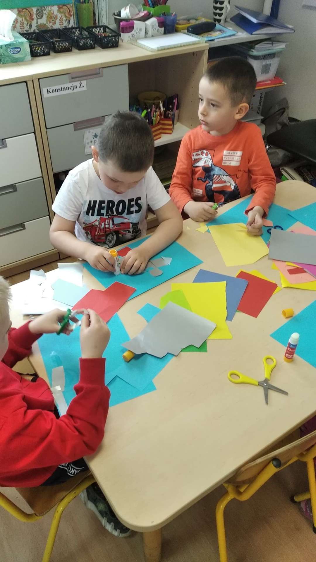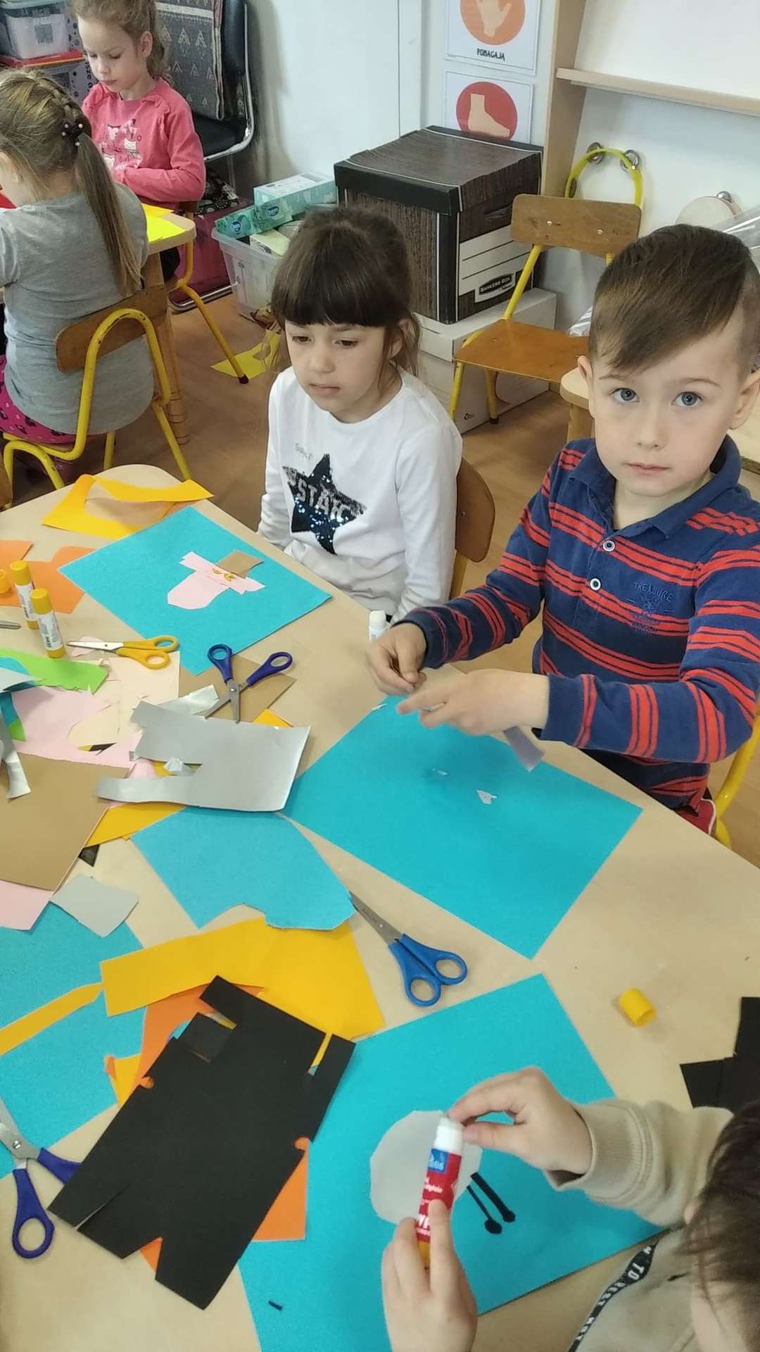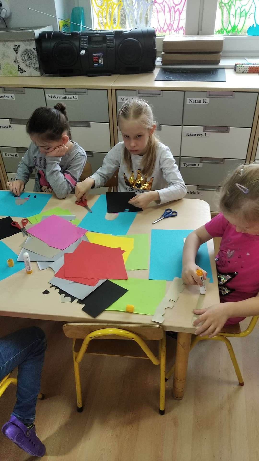 „Żeglarze” mówią, że ten kosmos to ma coraz mniej tajemnic przed nami…Pozostałe odkryjemy niebawem. A tymczasem konstruowaliśmy pojazdy kosmiczne – co kto chciał – rakiety, spodki i inne, równie ważne… Praca była indywidualna. Przedszkolaki z GR III wykazały się prawdziwą wyobraźnią, każdy pojazd był inny i każdy bardzo ciekawy.