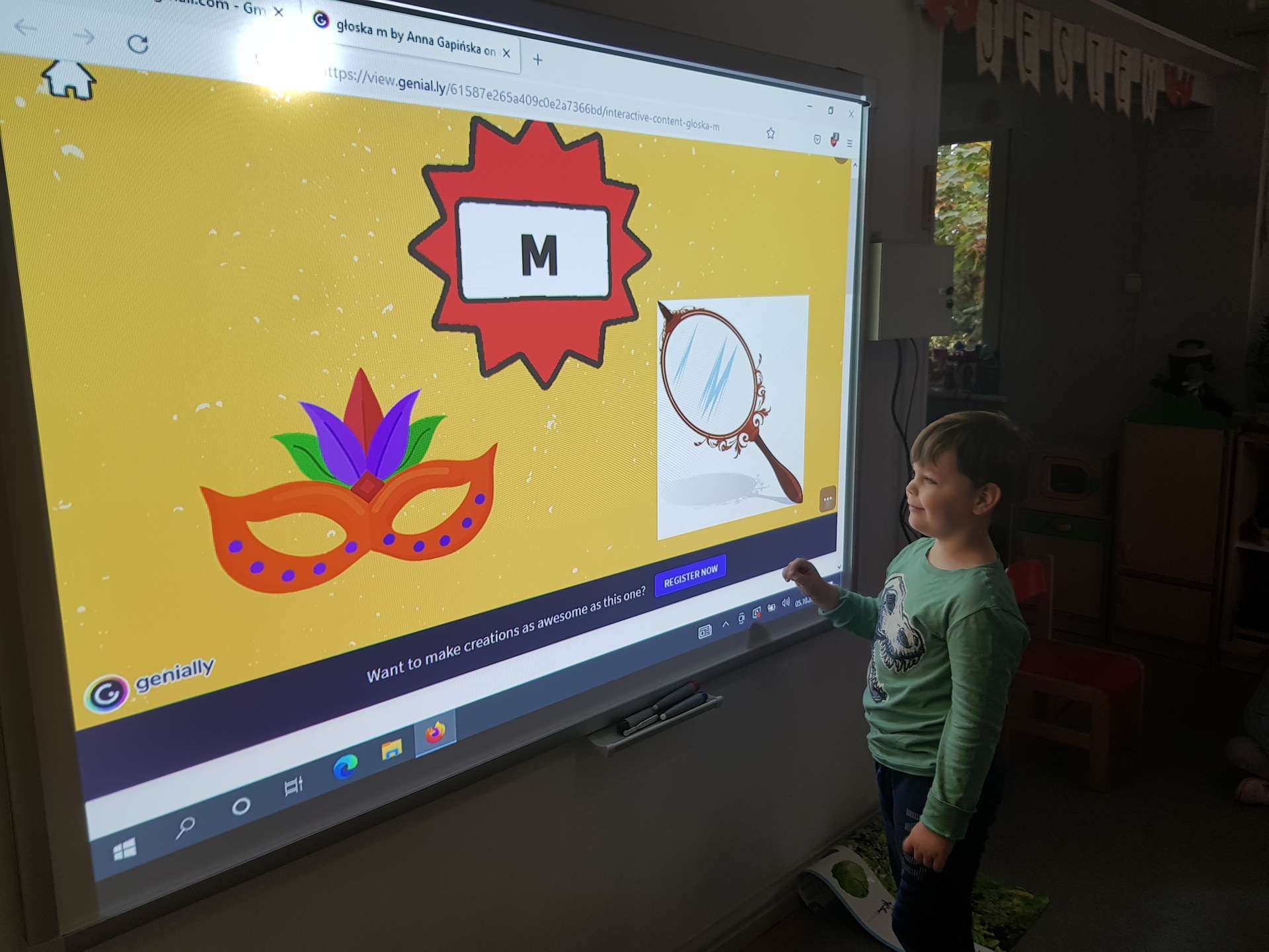 Gr. III- poznajemy literę M- zajęcia z wykorzystaniem tablicy multimedialnej
