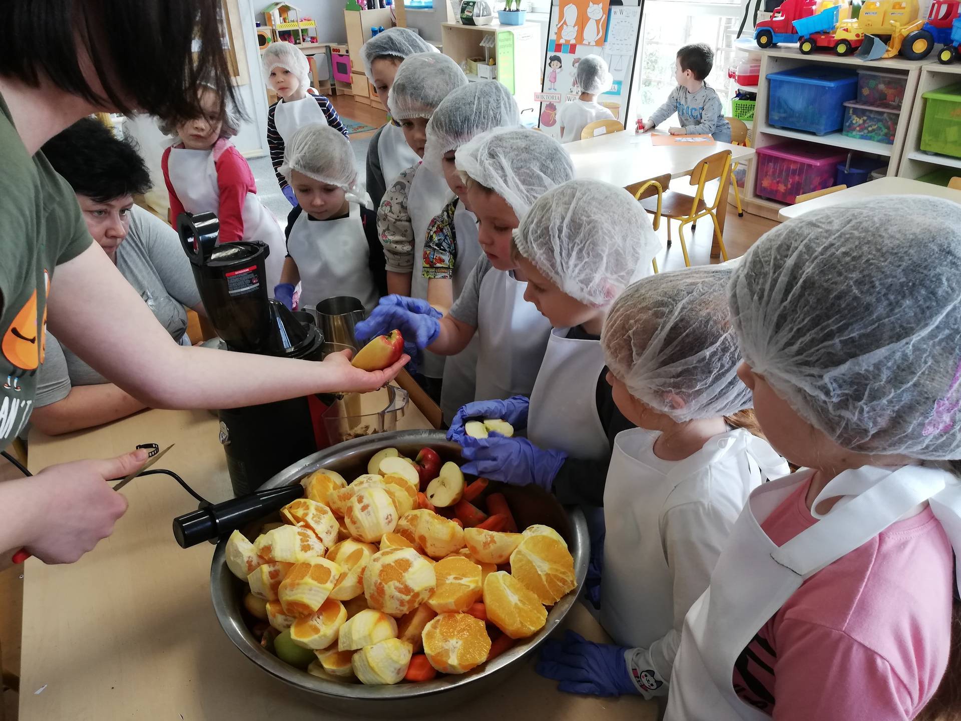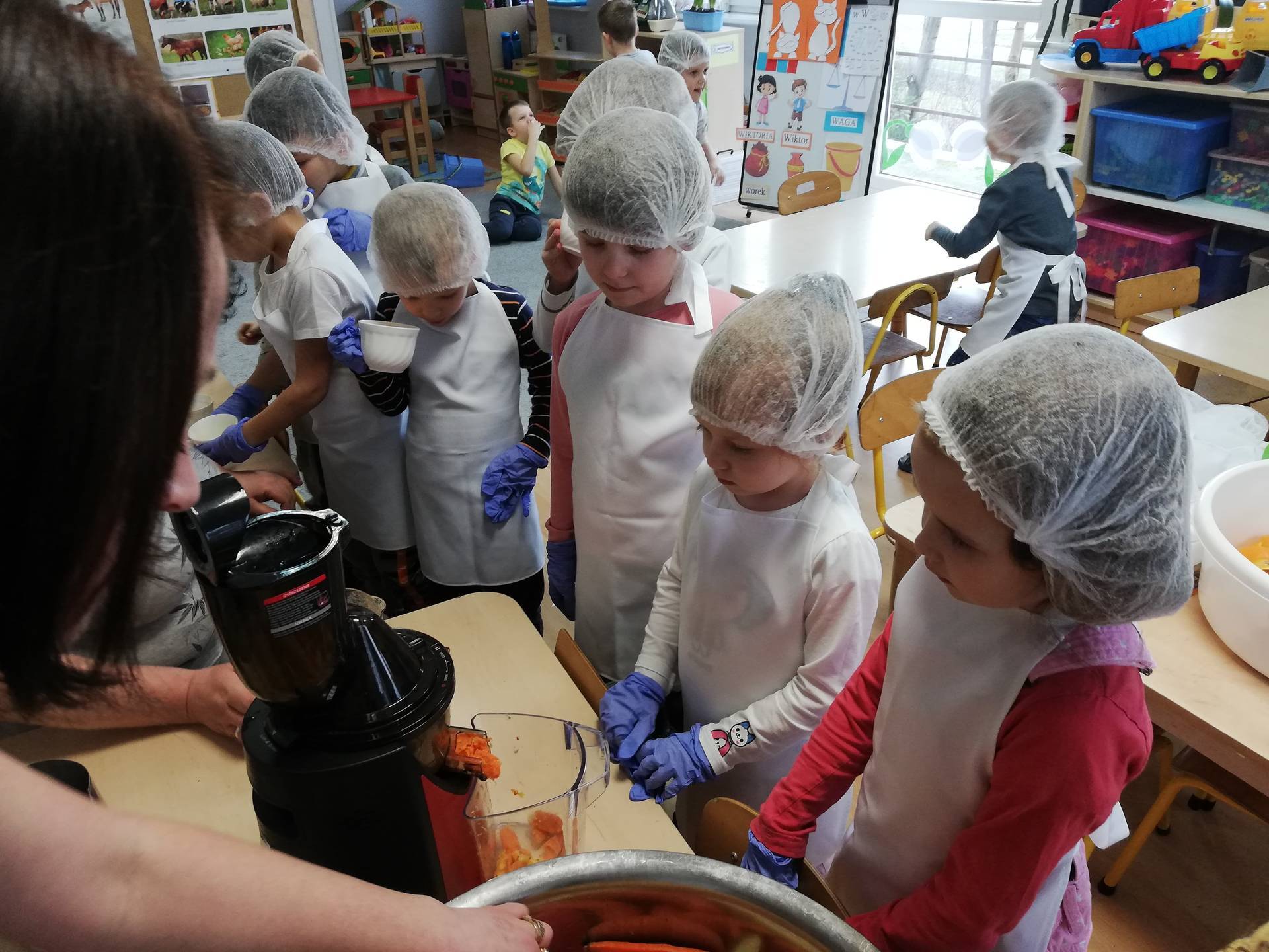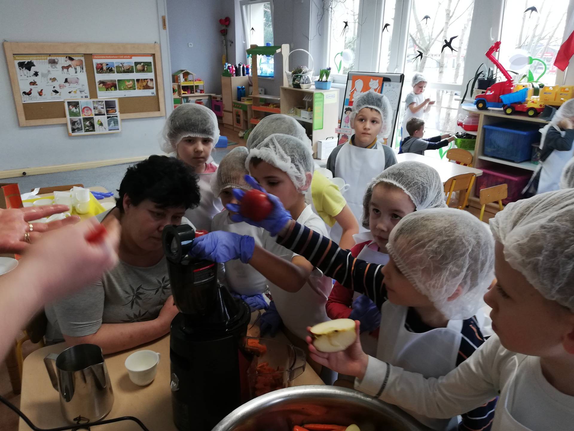 W ramach profilaktyki walki z wirusami, dzisiaj nasza grupa uczyła się wierszyka o poprawnym myciu rąk. Gościliśmy dzisiaj również mamę naszego Doriana, która przygotowała razem z dziećmi zdrowy i smaczny sok.