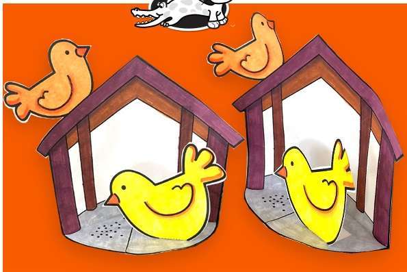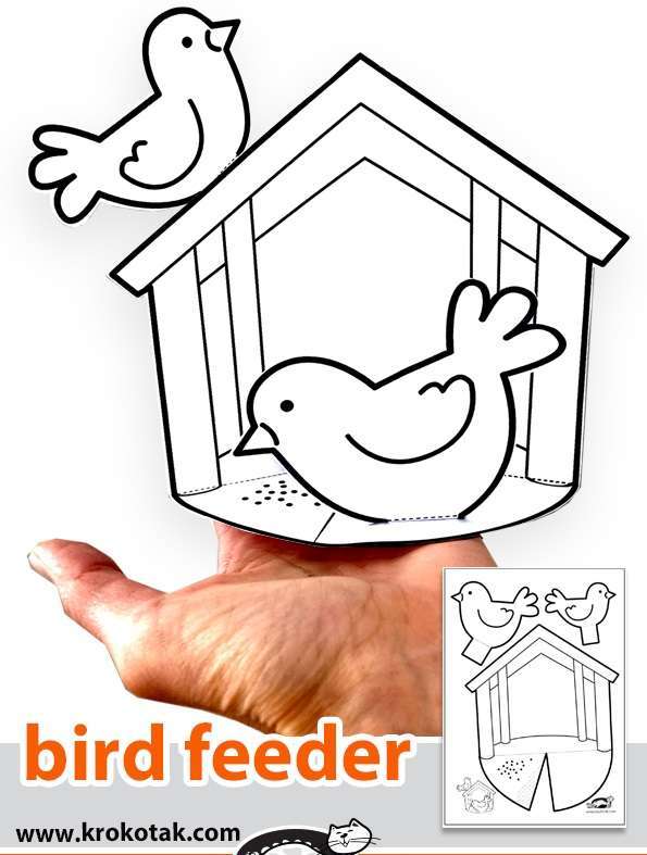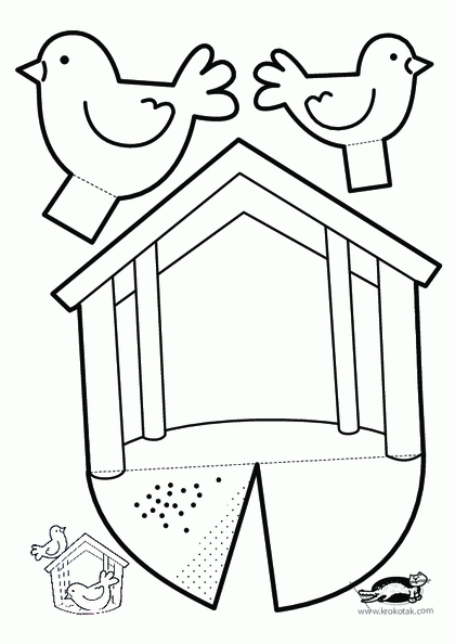 4. Wydrukuj szablon, pokoloruj karmnik i ptaki, następnie wytnij je i sklej wg wzoru.