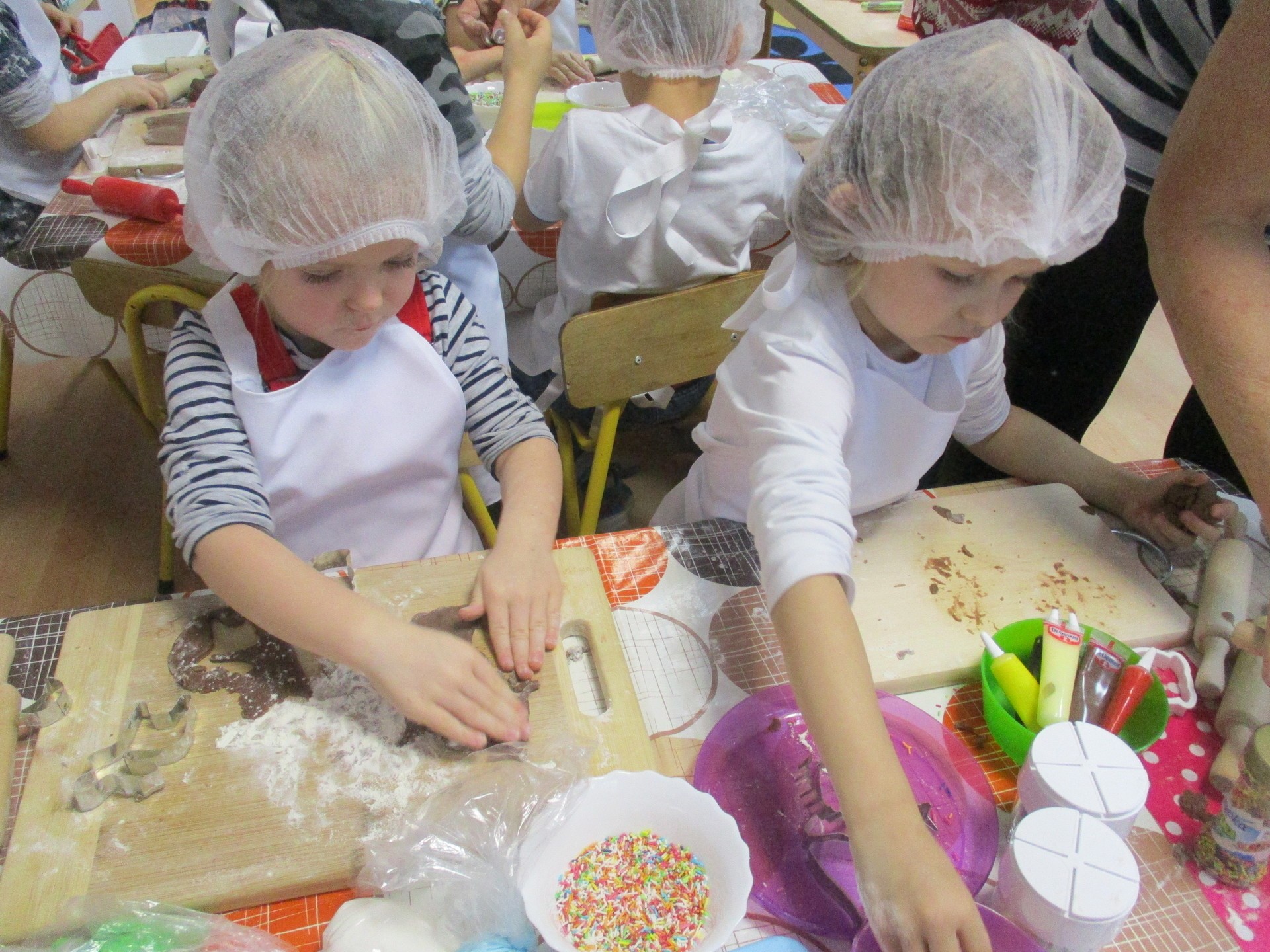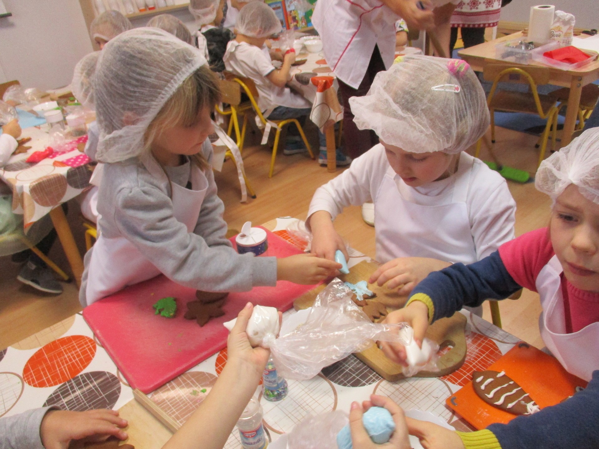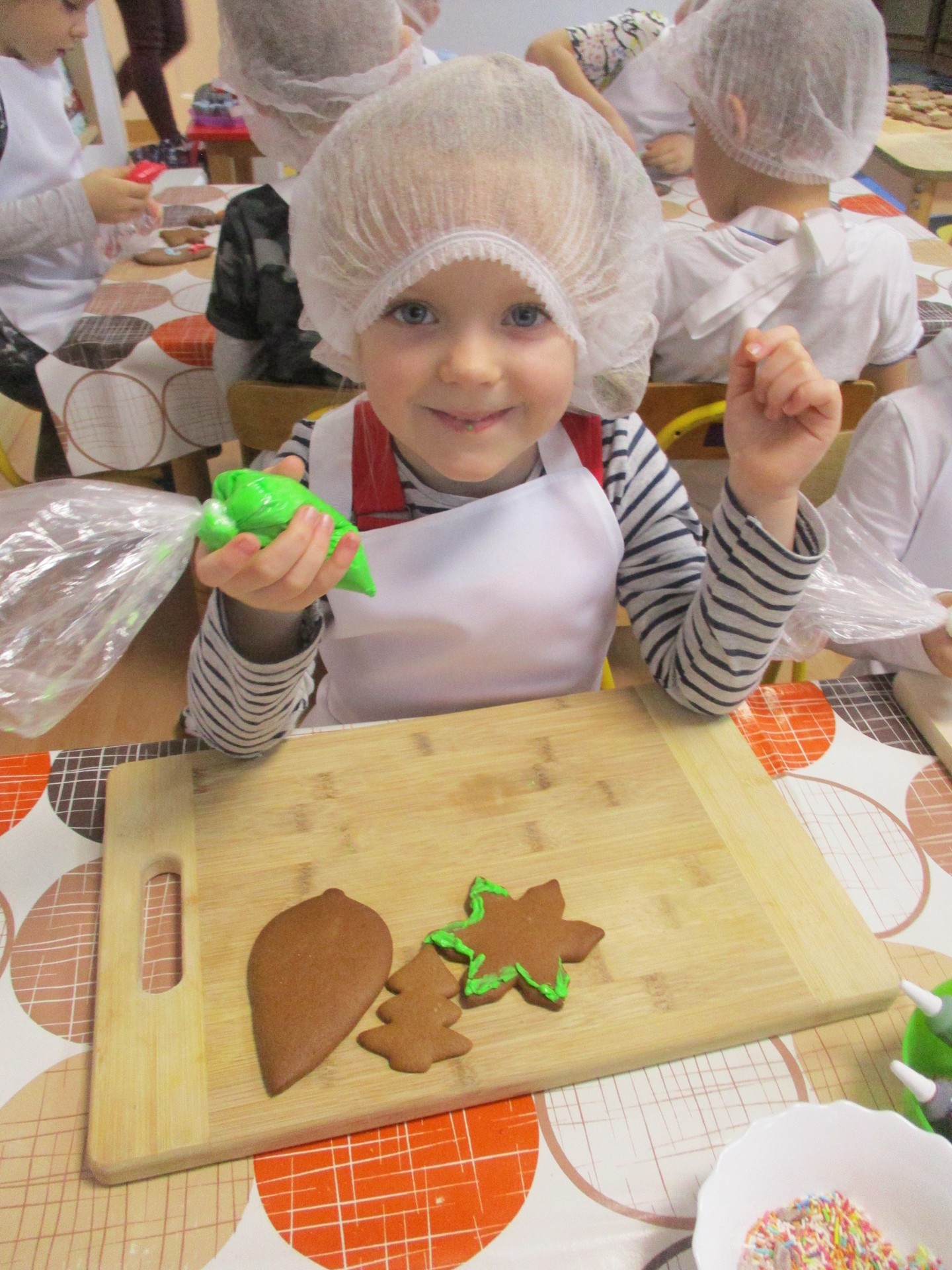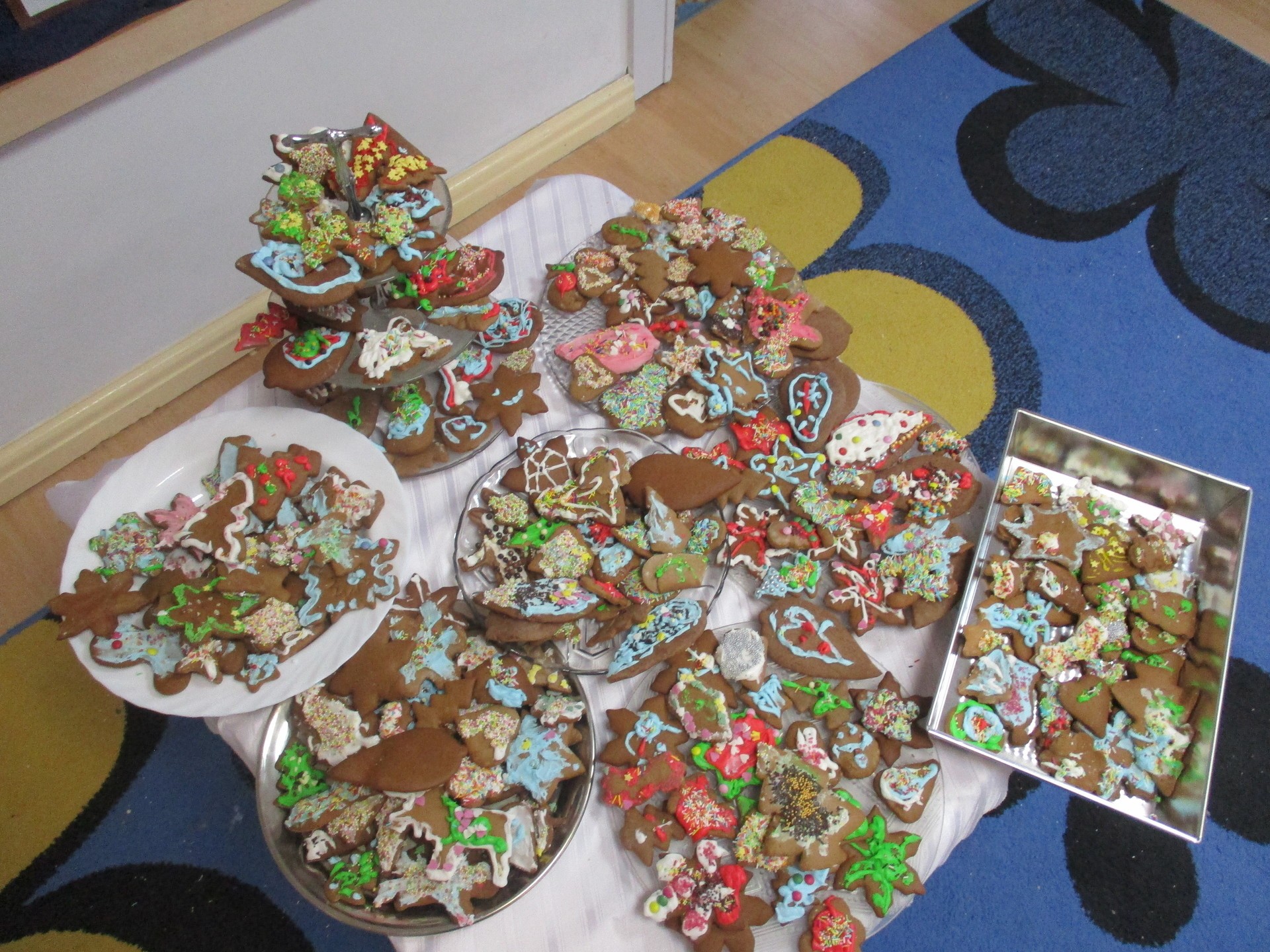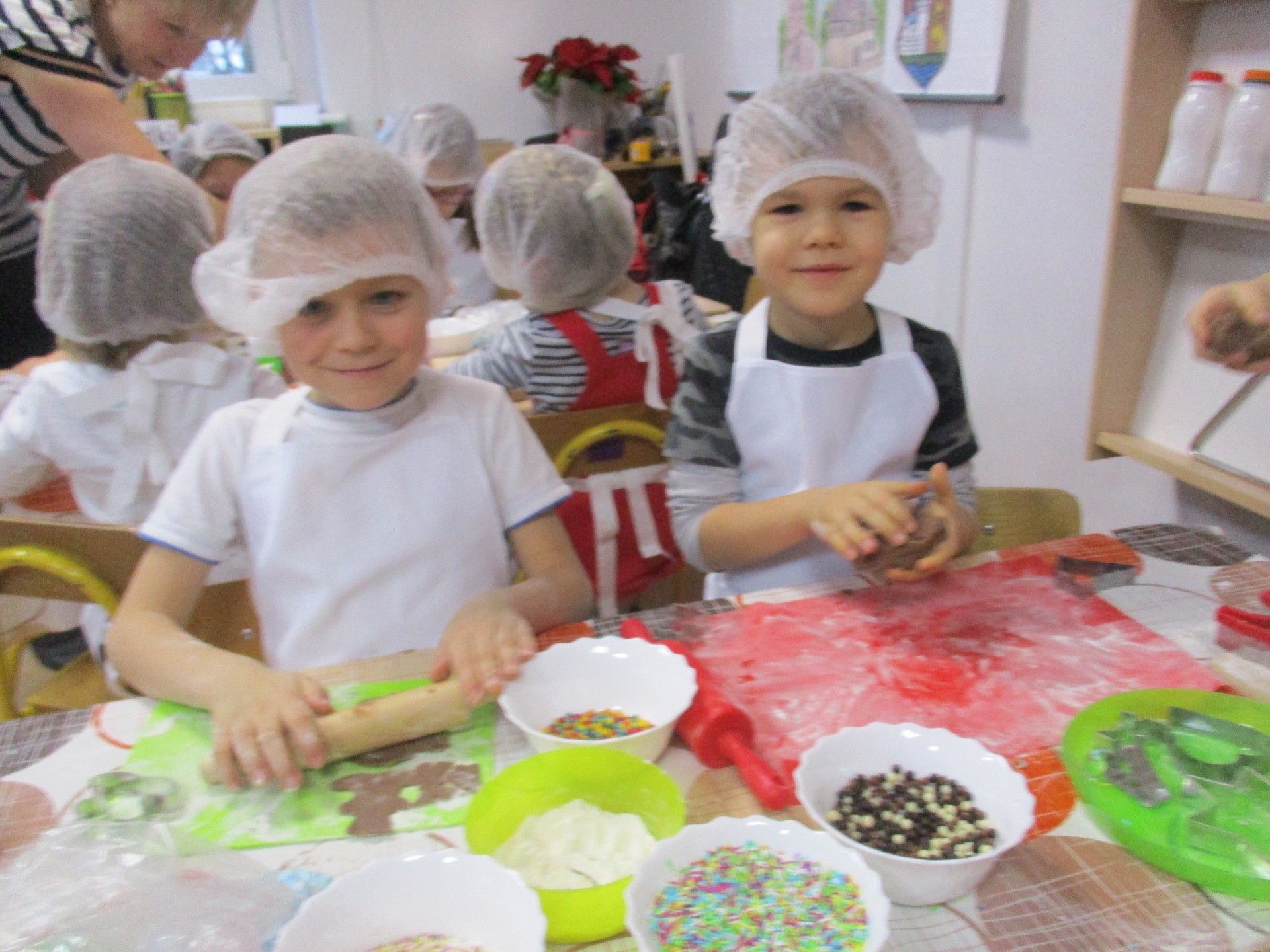 17 grudnia dla dzieci był bardzo pracowity dzień , bowiem tego dnia piekły one pierniczki. Najpierw odpowiednio się przygotowały dbając o czyste rączki oraz zakładając fartuszki. Poznały też składniki i sposób wykonania ciasta, potrzebne przybory kuchenne a także zasady bezpieczeństwa. Gdy wszystko było gotowe przedszkolaki z ogromnym zapałem i zaangażowaniem zabrały się do pracy – wałkowały ciasto, wykrawały ciasteczka. Efektem naszej pracy były pełne blaszki pierniczków, które zanieśliśmy do kuchni. Tu pod czujnym okiem naszych pań kuchareczek pierniki nabierały koloru piekąc się w piekarniku. Na koniec dzieci z wielką chęcią zdobiły pierniczki.