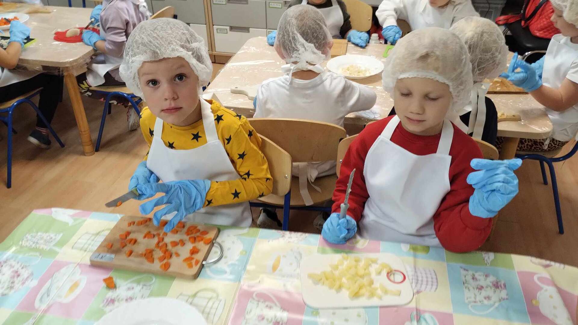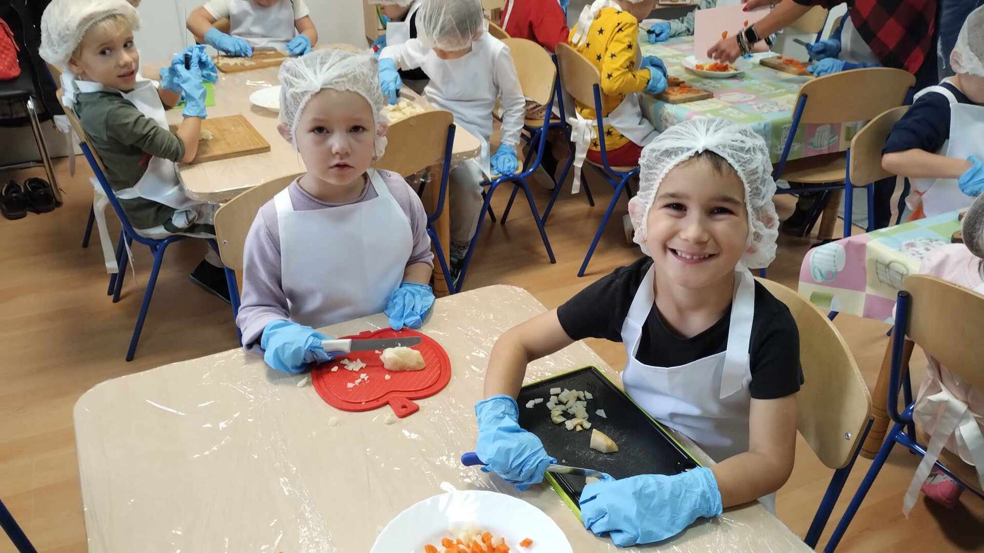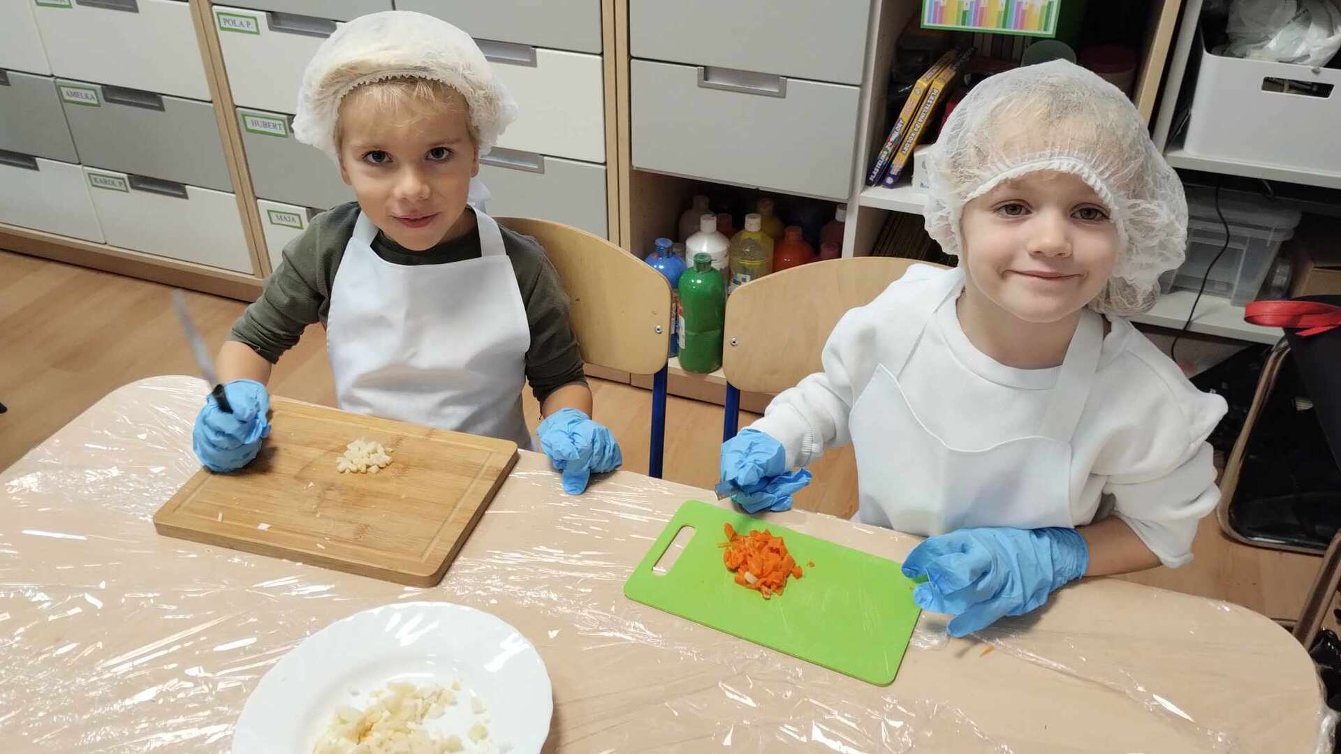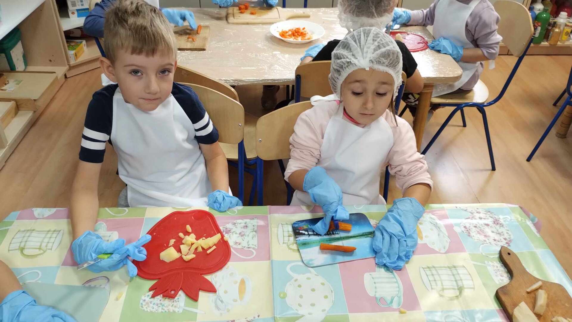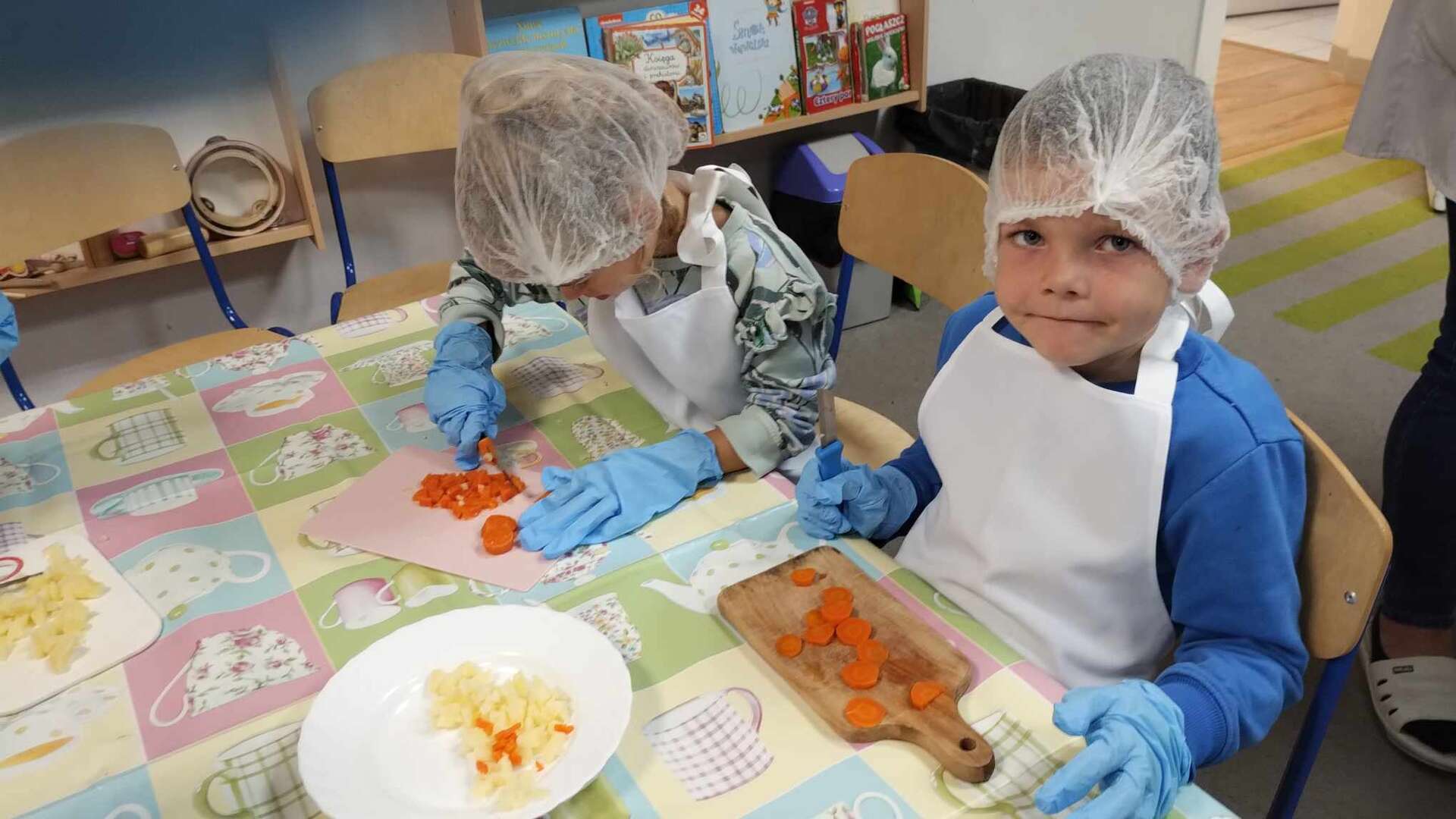 Dzieci kroją warzywa