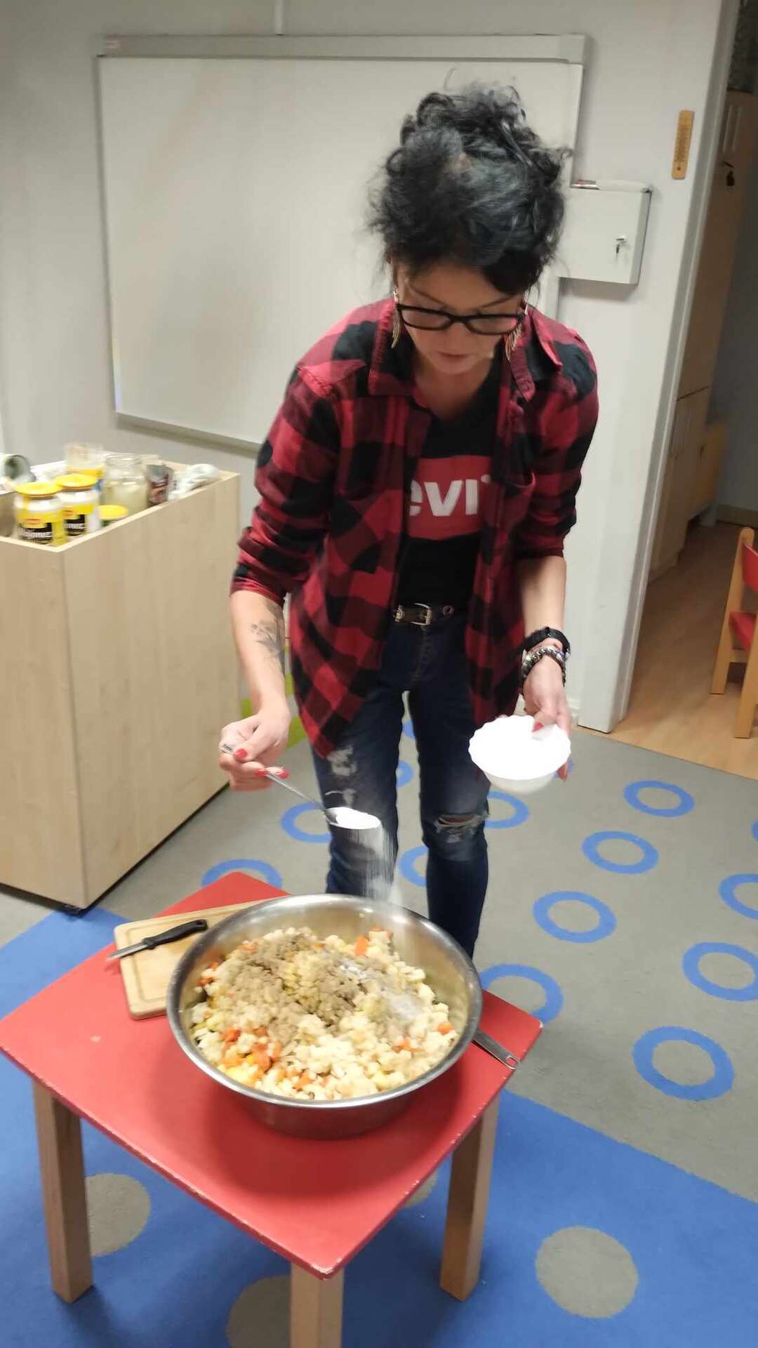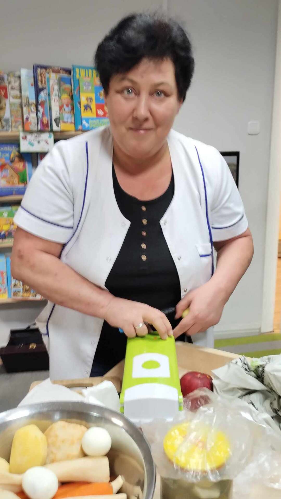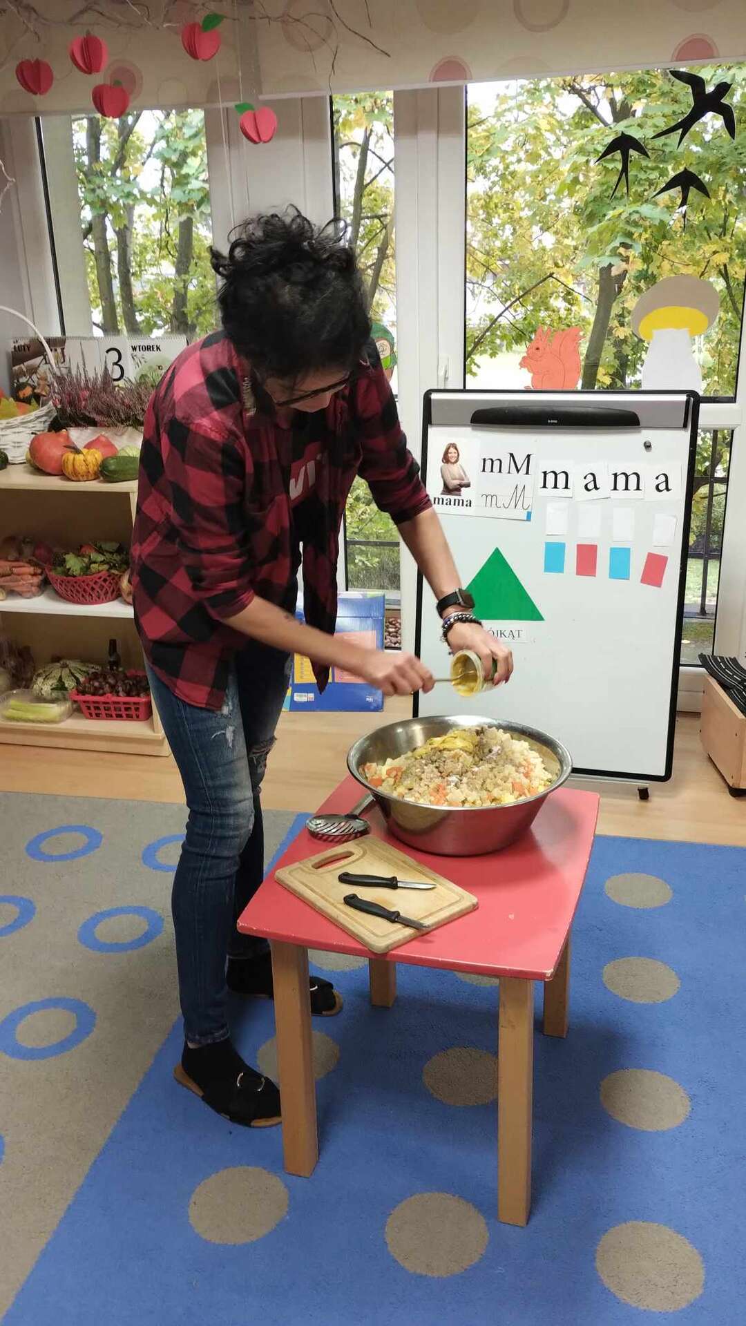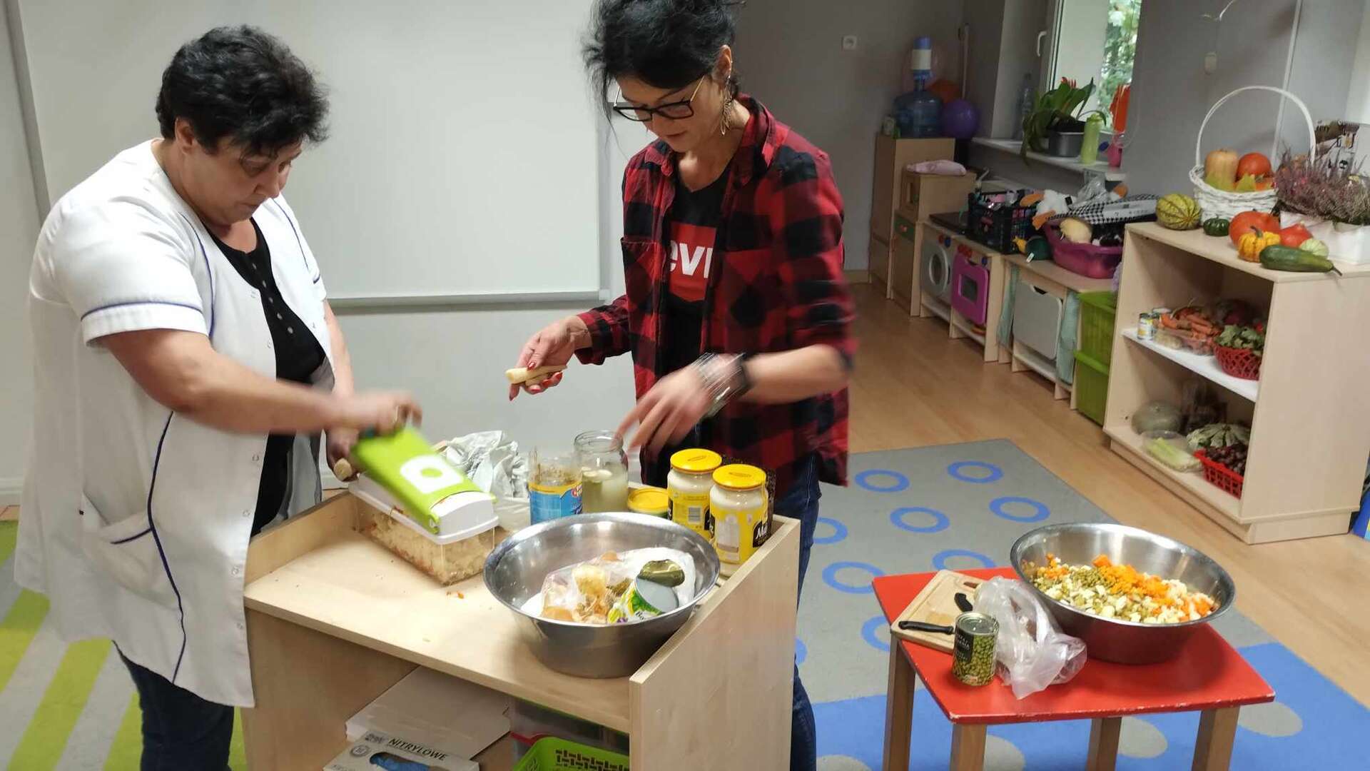 Pani Ania pomaga przy robieniu sałatki