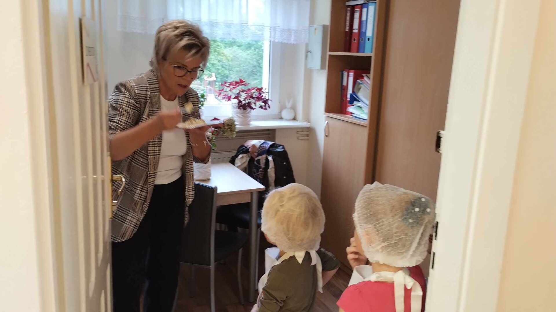 Dzieci dają sałatkę Pani Dyrektor
