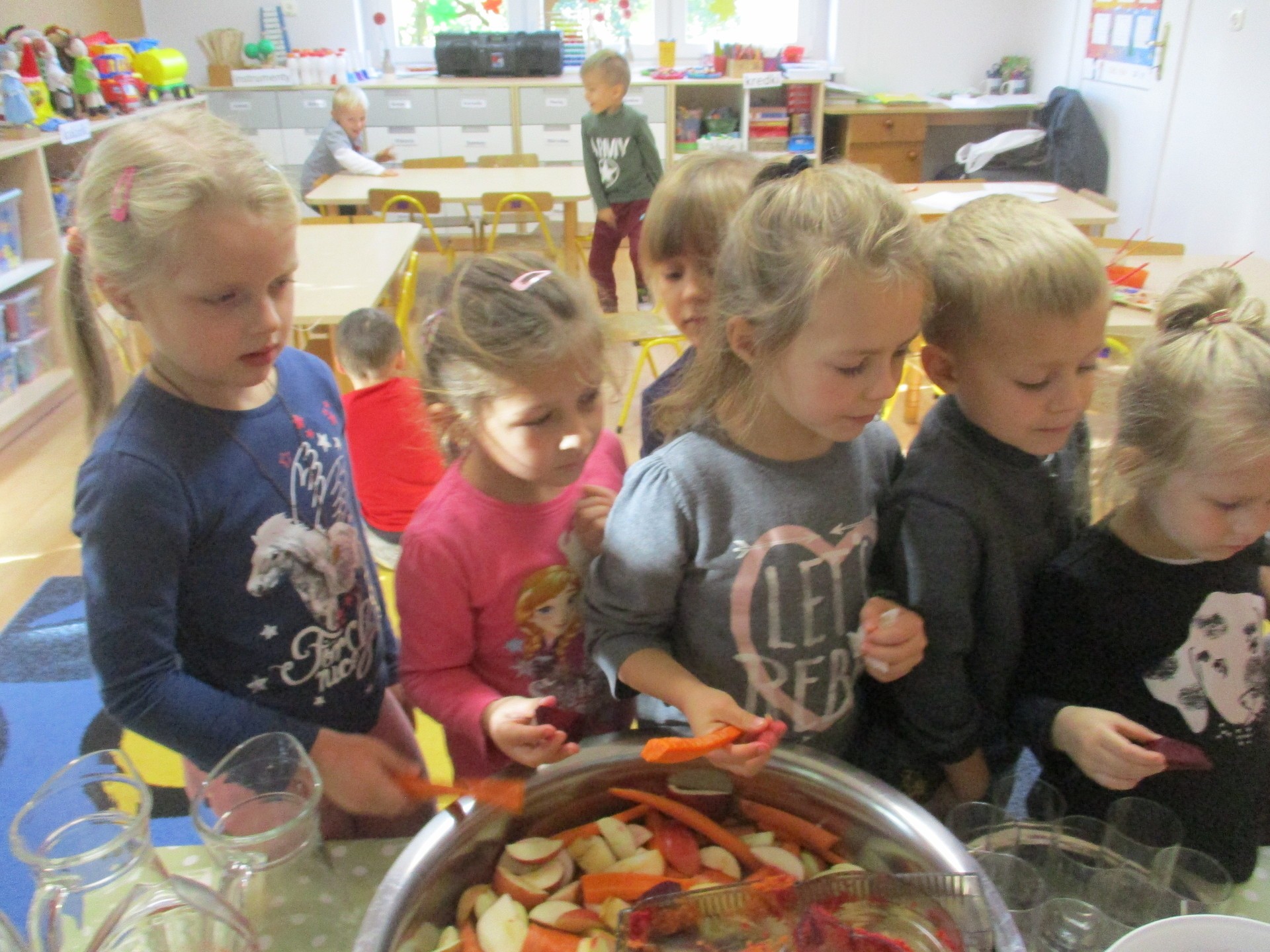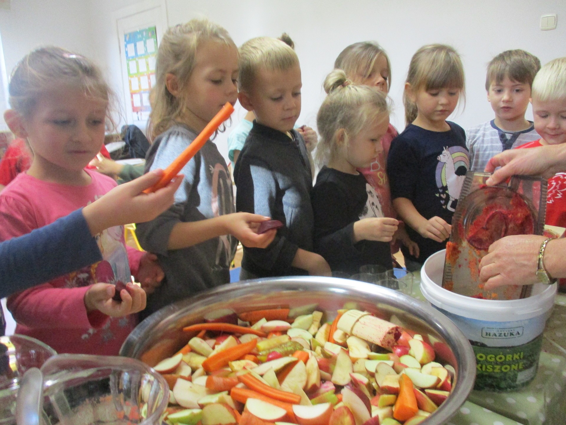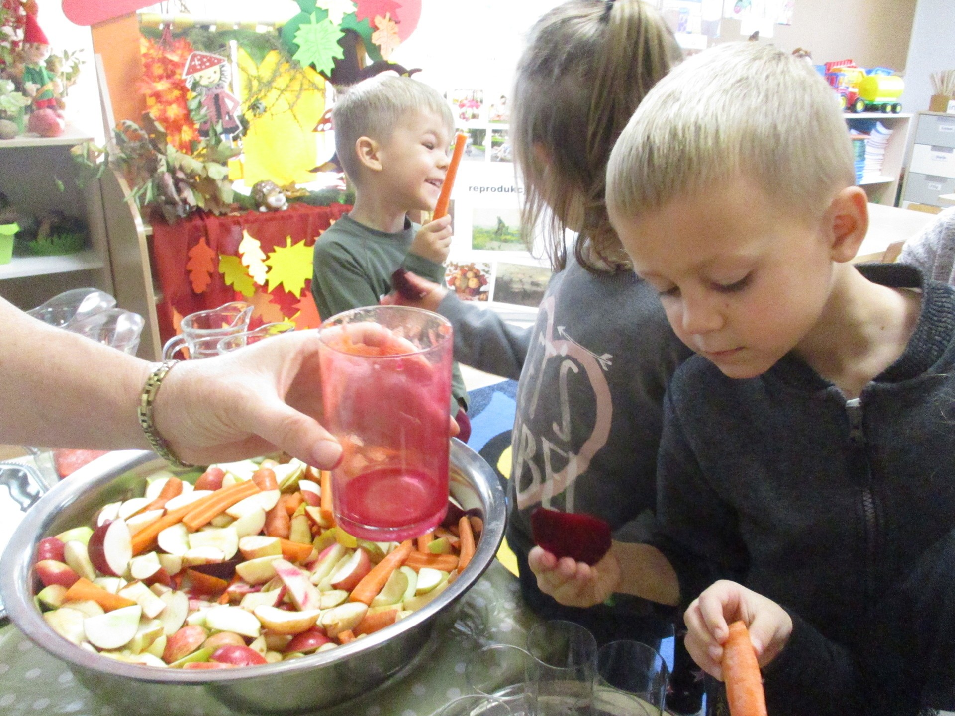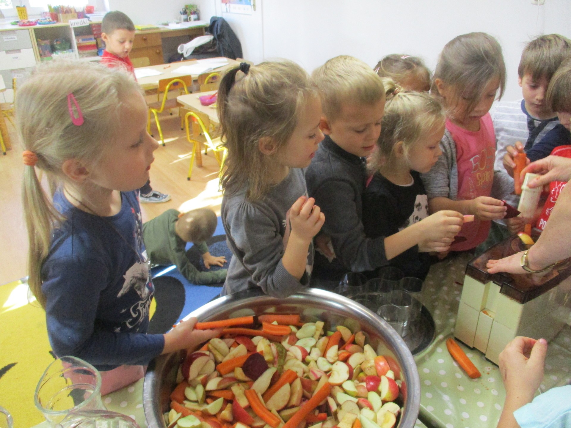 Nasi milusińscy doskonale wiedzą, że aby być zdrowym należy się między innymi prawidłowo odżywiać. Każdy przedszkolak rozumie potrzebę spożywania dużych ilości owoców oraz warzyw. Z myślą o witaminkach, postanowiliśmy zrobić z nich pyszny i zdrowy sok.