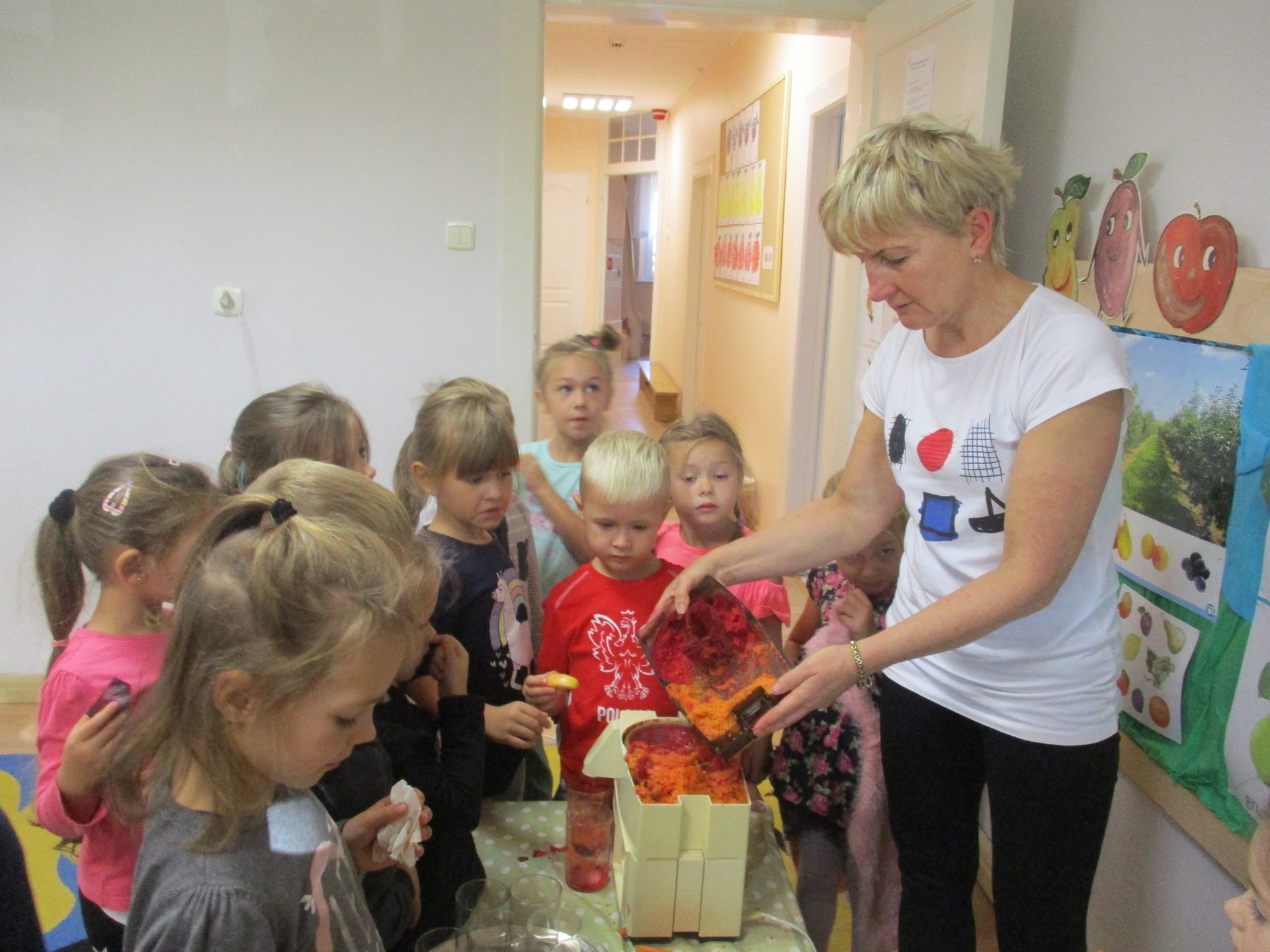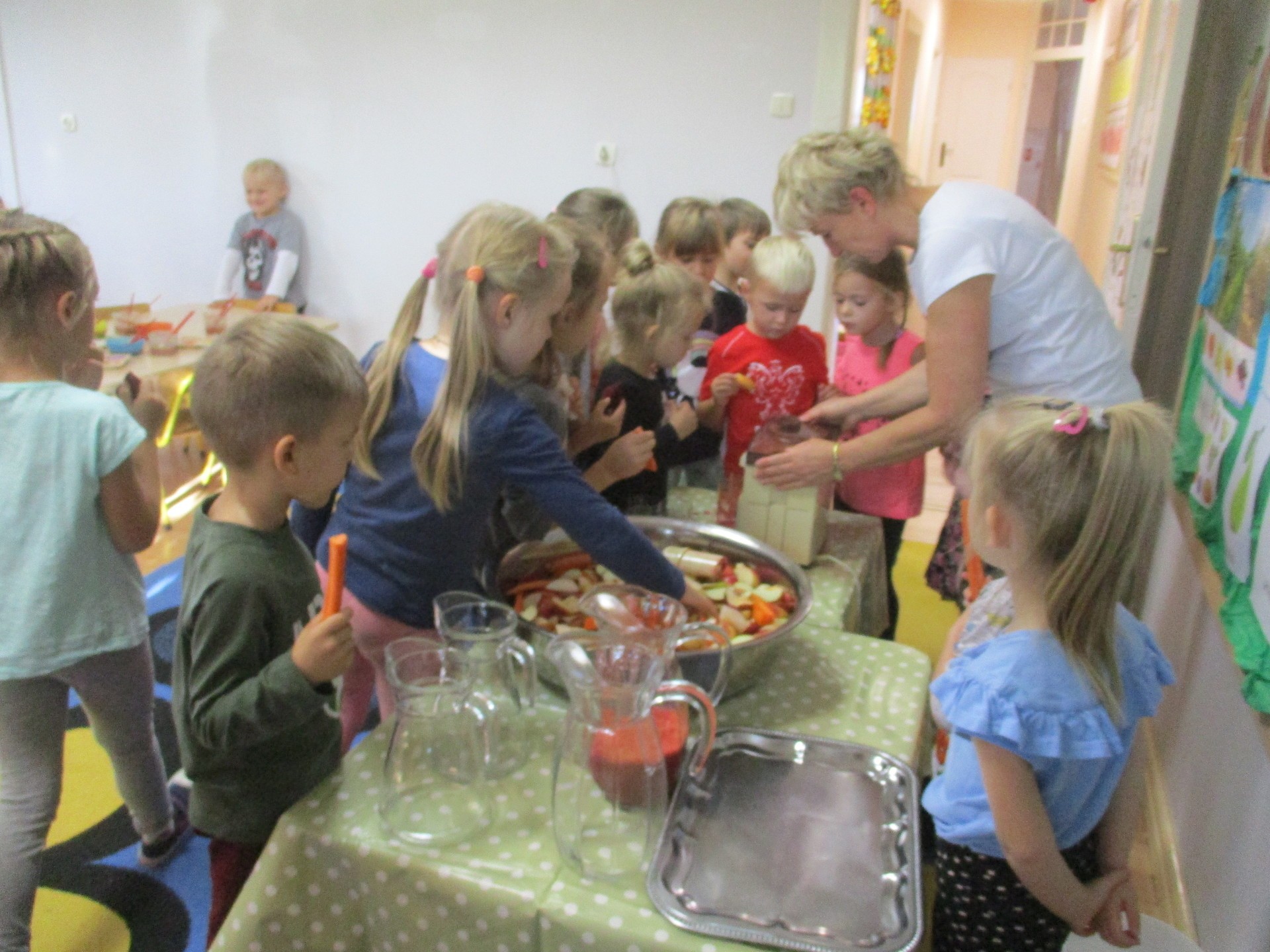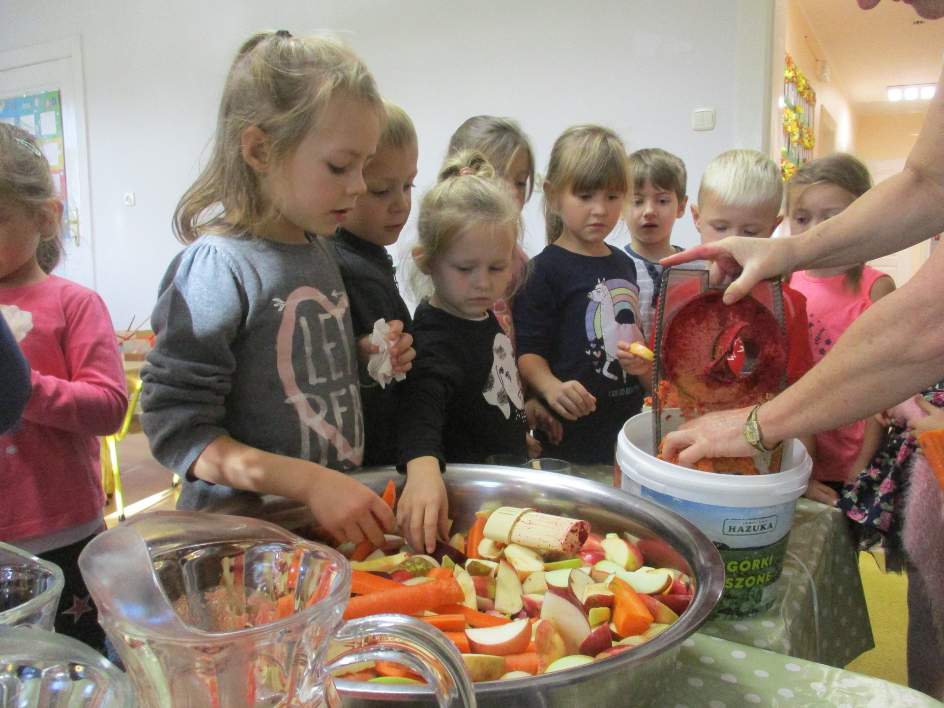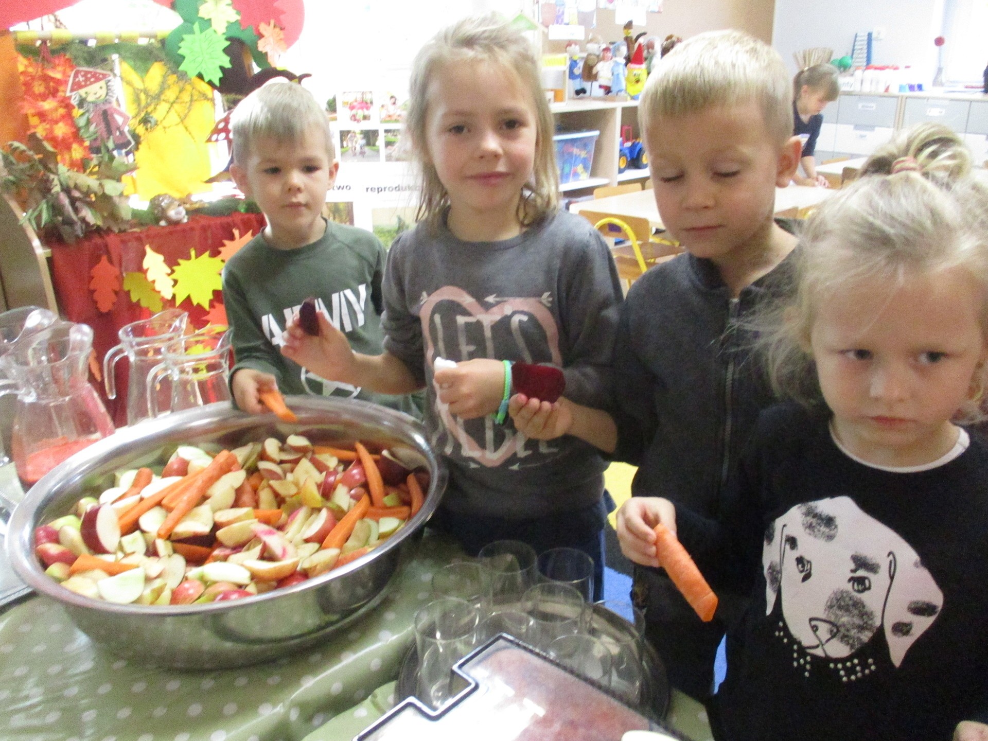 Nic nie zastąpi dawki witamin jak owoce. Dużo frajdy sprawiło dzieciom przygotowanie soku własnoręcznie. Degustacja była udana, bezpieczeństwo zapewnione i dużo radości z wykonanej pracy!