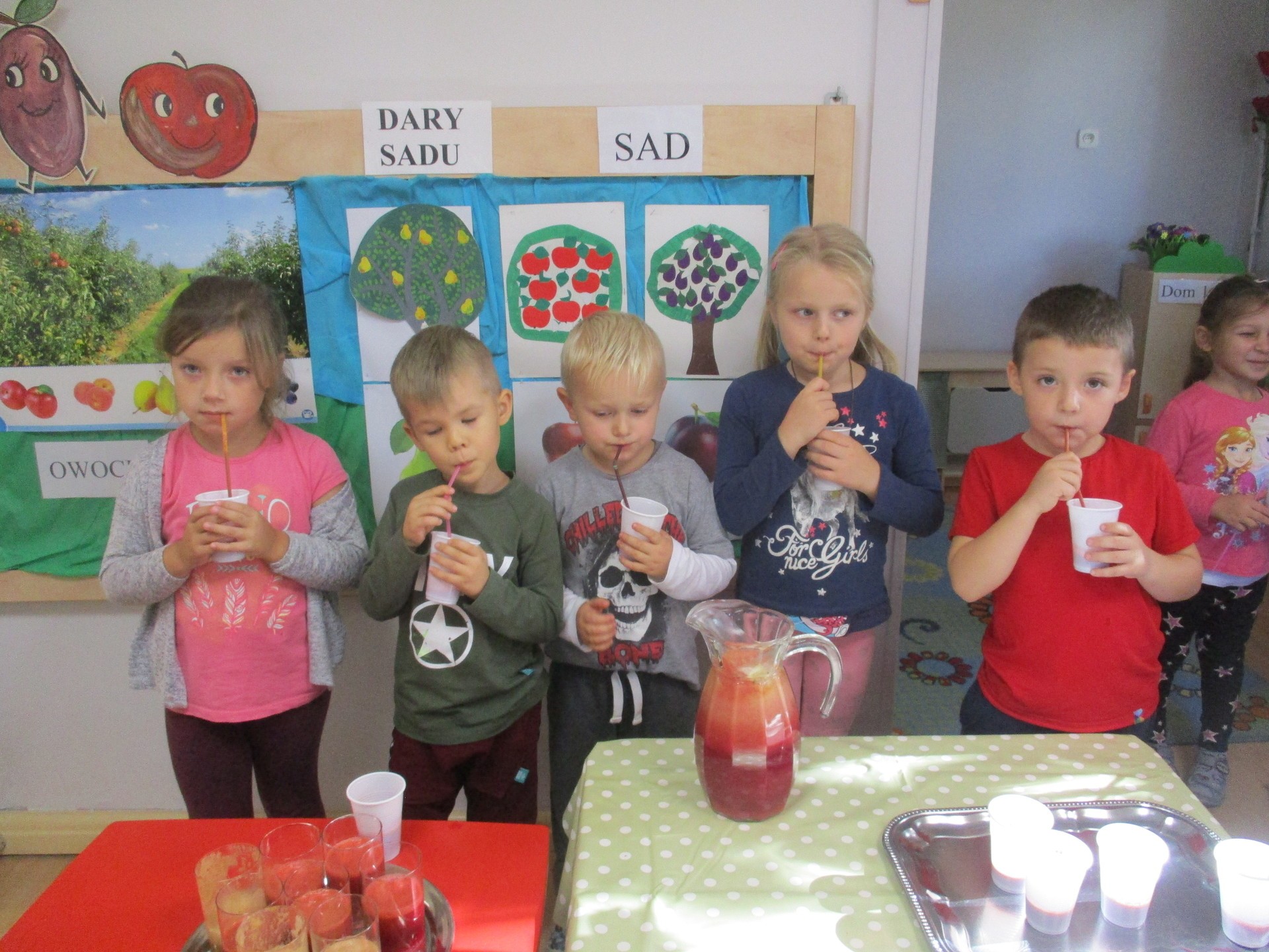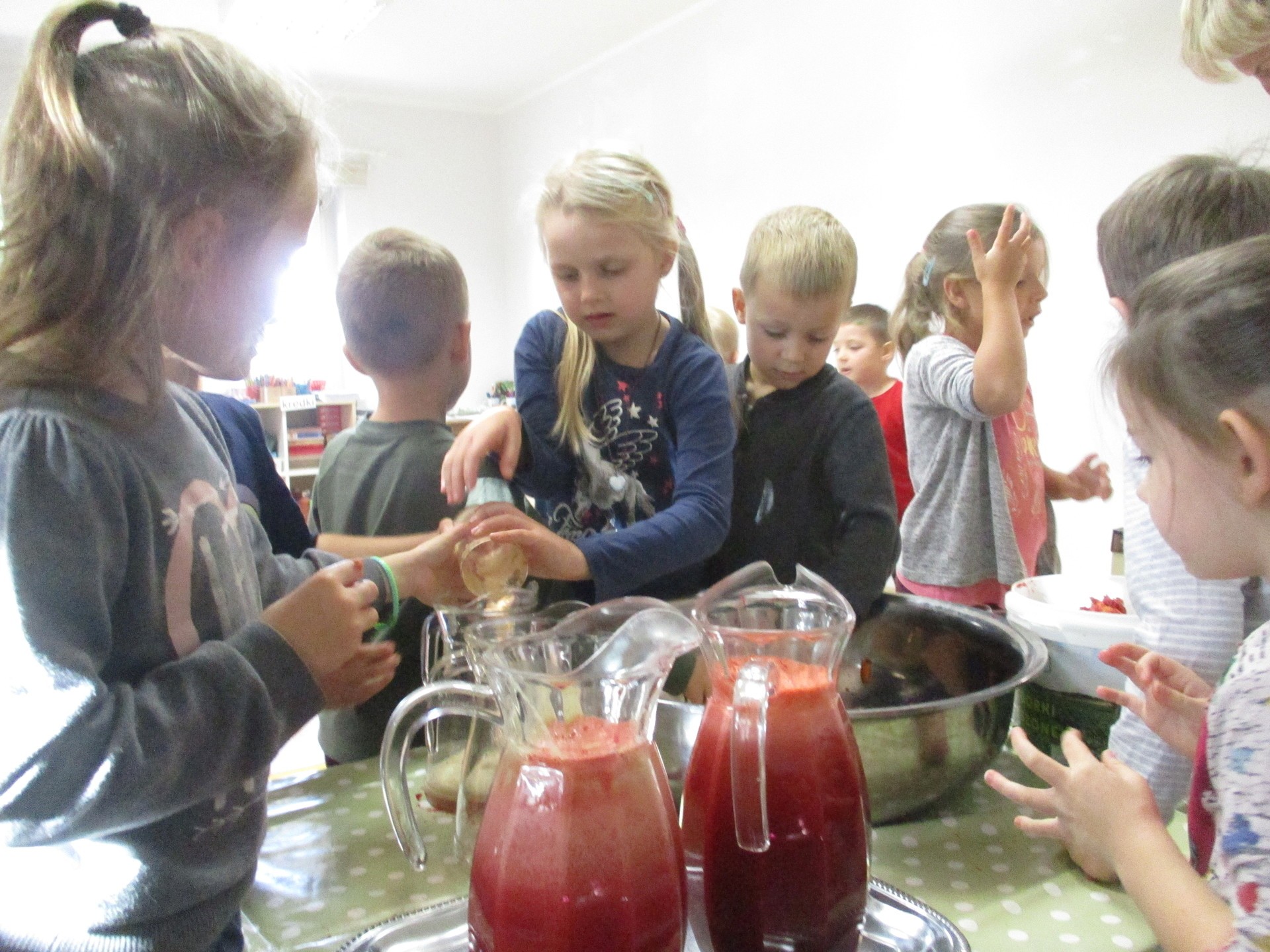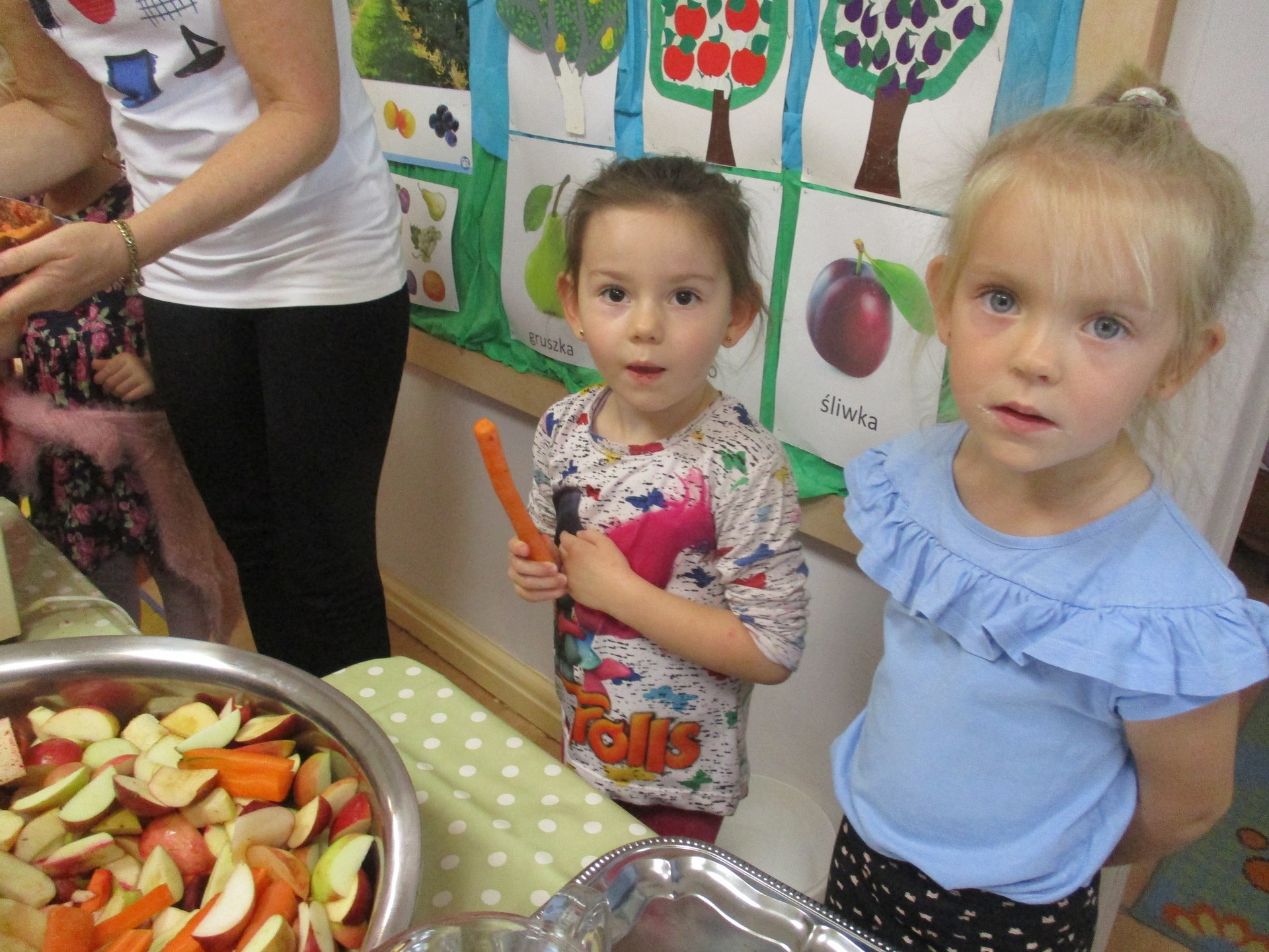 Nic nie zastąpi dawki witamin jak owoce. Dużo frajdy sprawiło dzieciom przygotowanie soku własnoręcznie. Degustacja była udana, bezpieczeństwo zapewnione i dużo radości z wykonanej pracy!