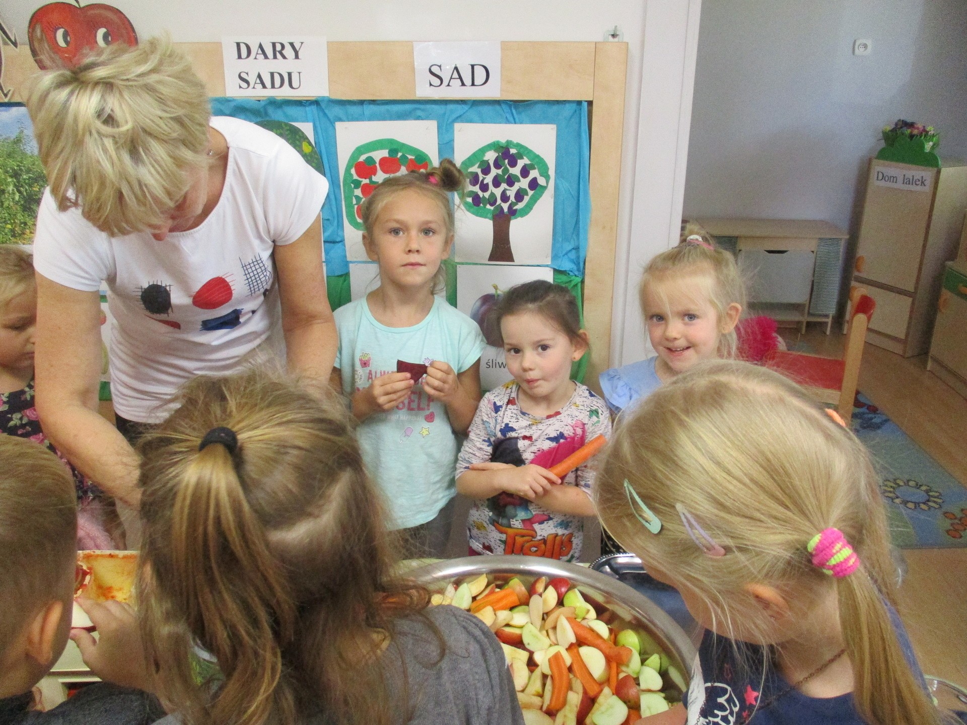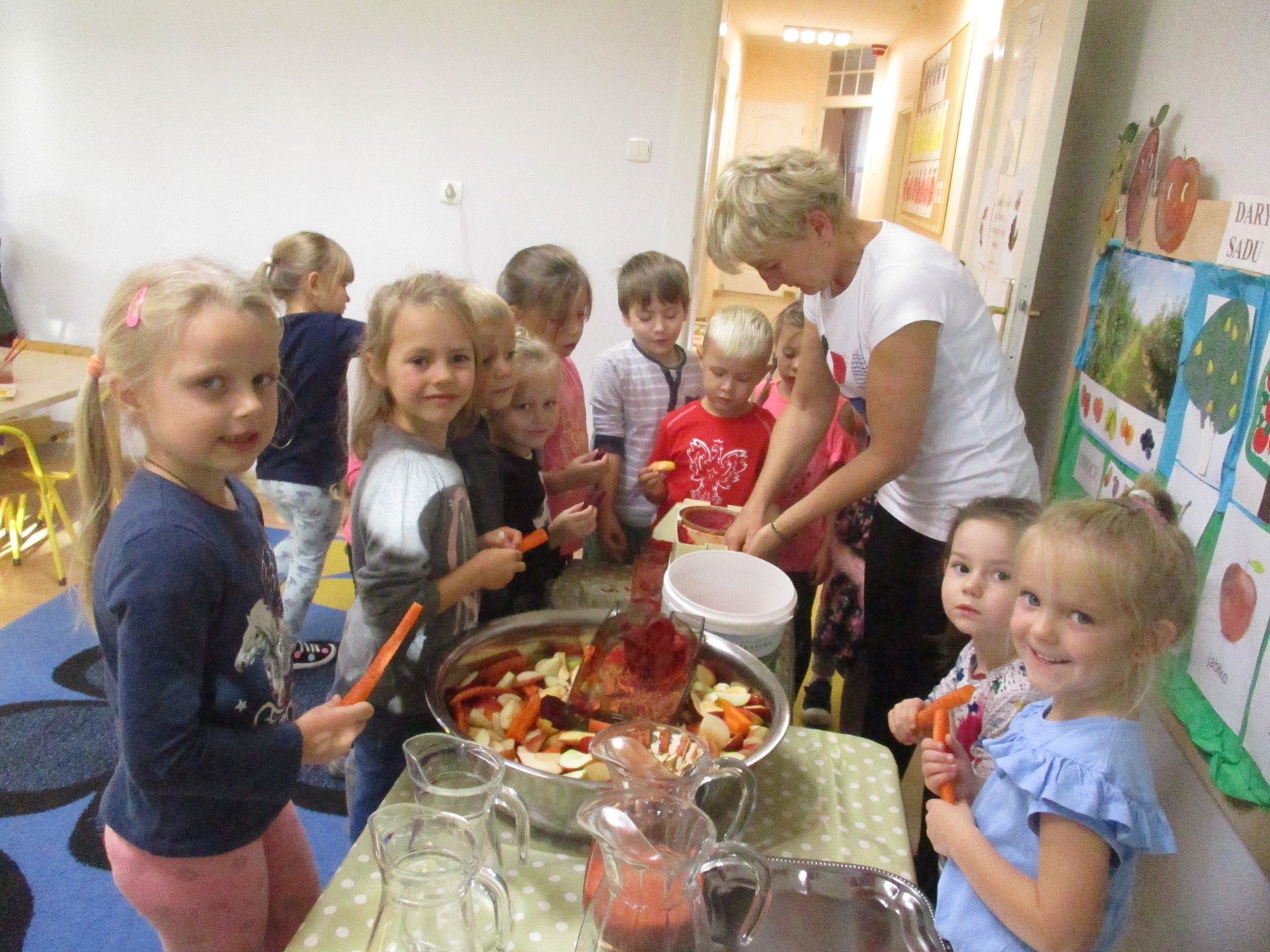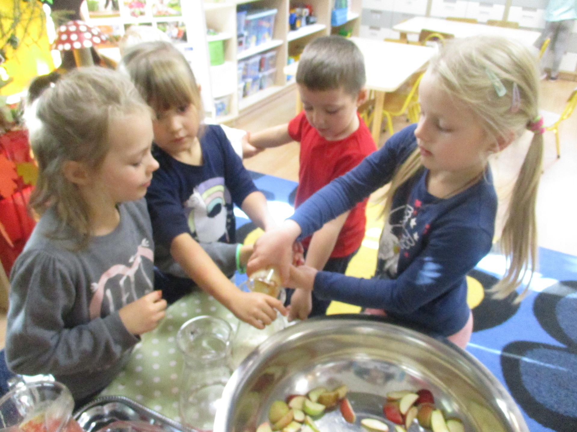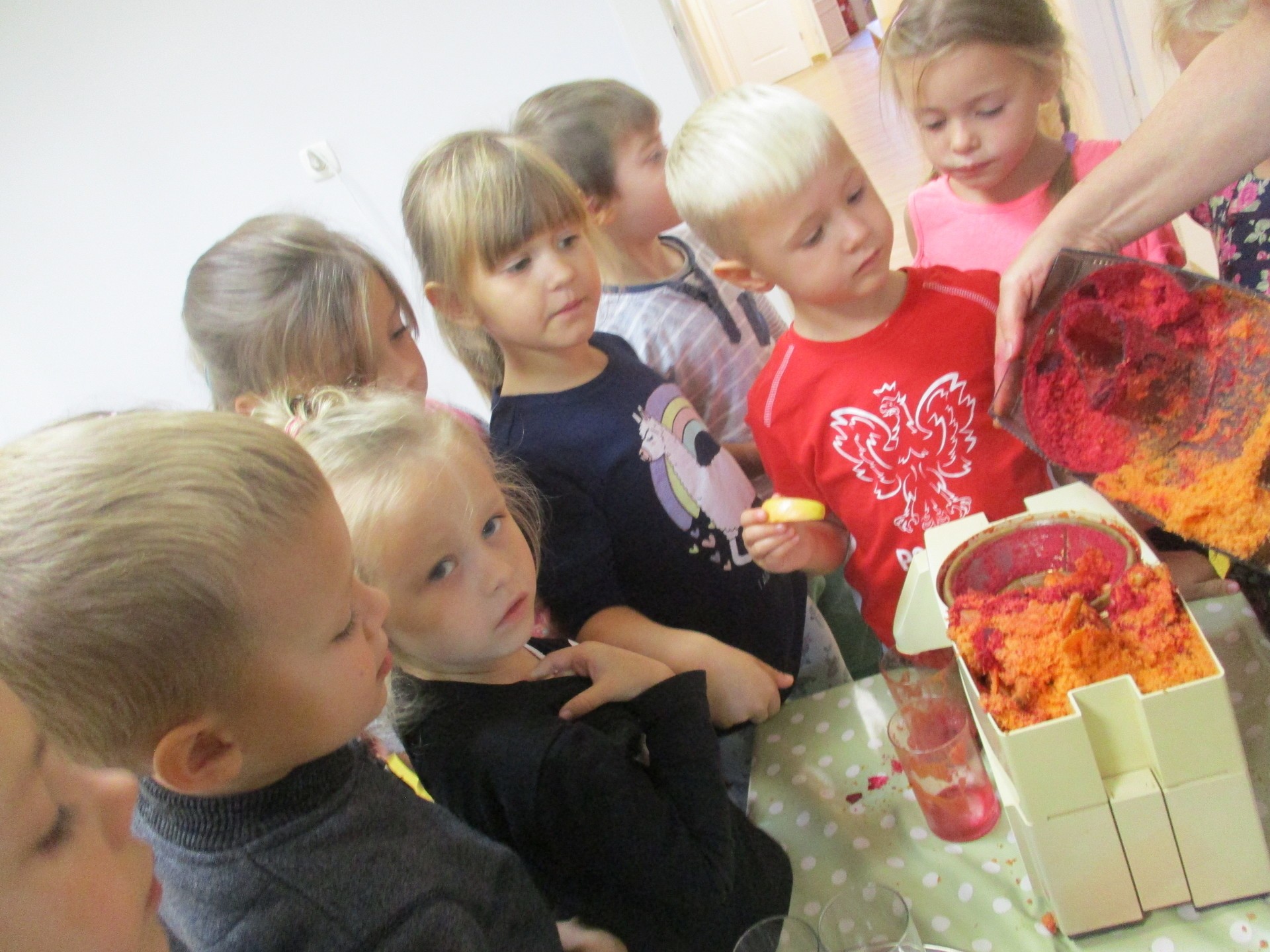 Nic nie zastąpi dawki witamin jak owoce. Dużo frajdy sprawiło dzieciom przygotowanie soku własnoręcznie. Degustacja była udana, bezpieczeństwo zapewnione i dużo radości z wykonanej pracy!