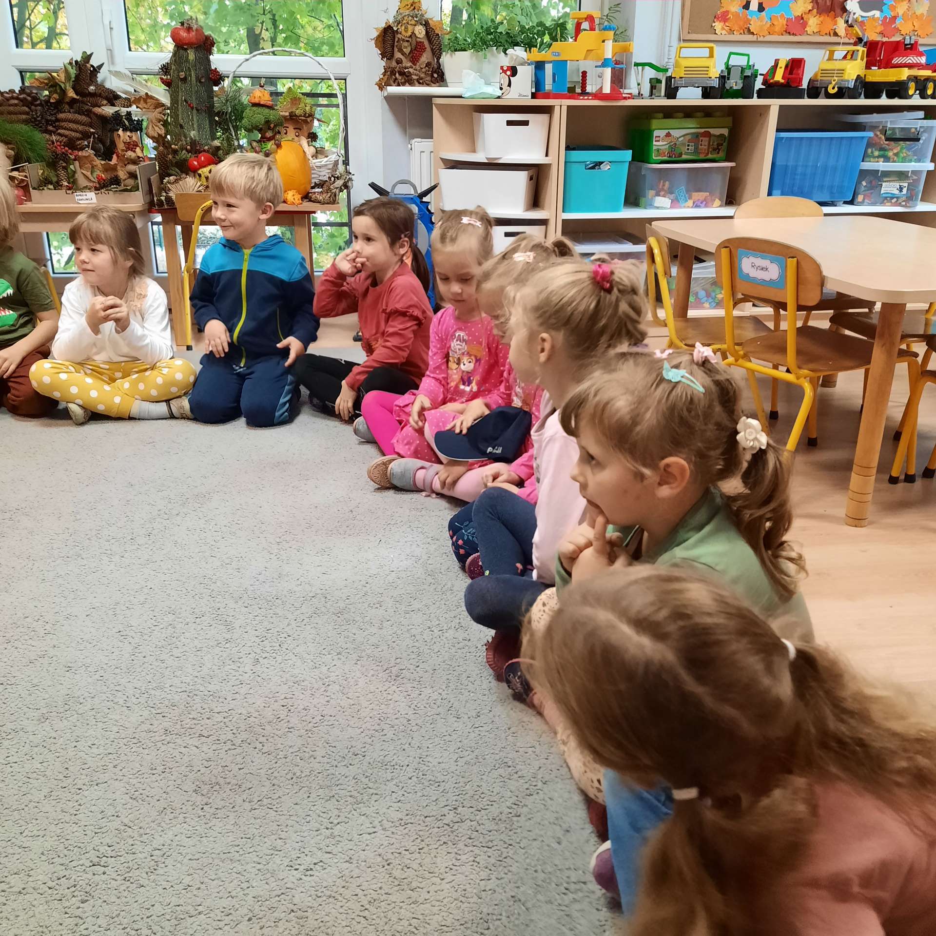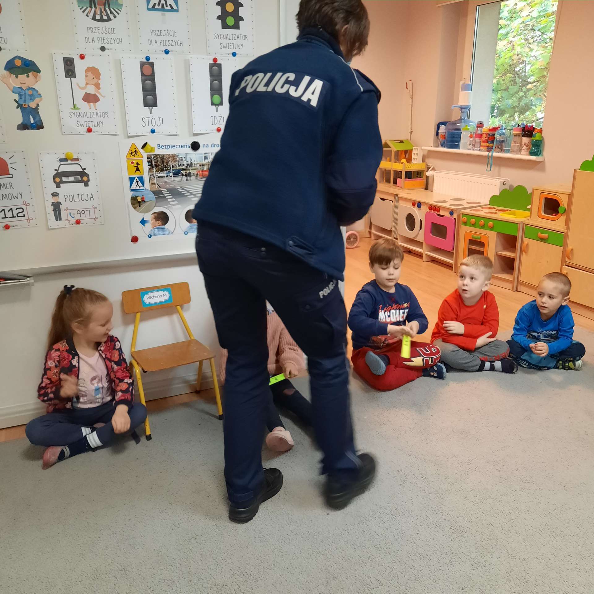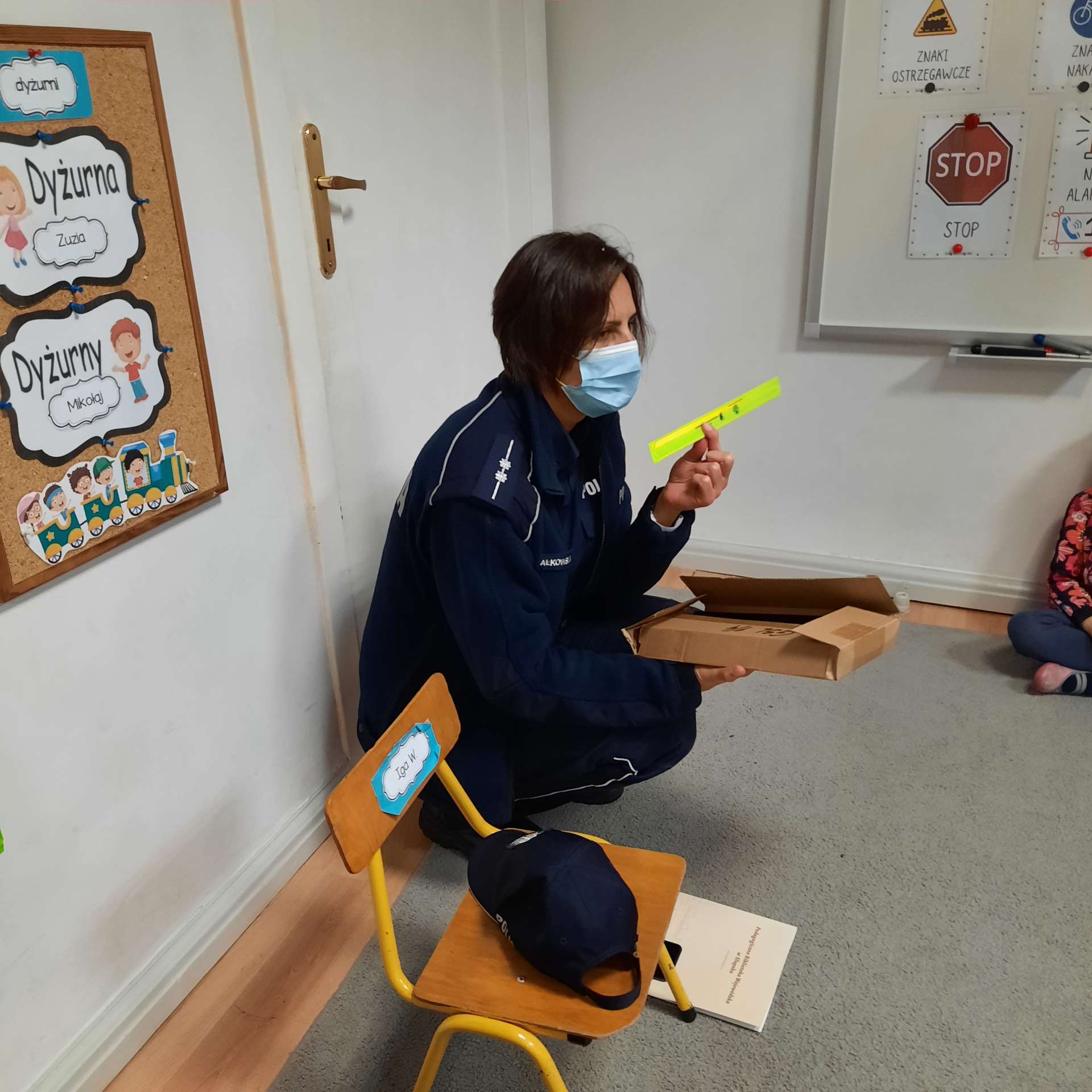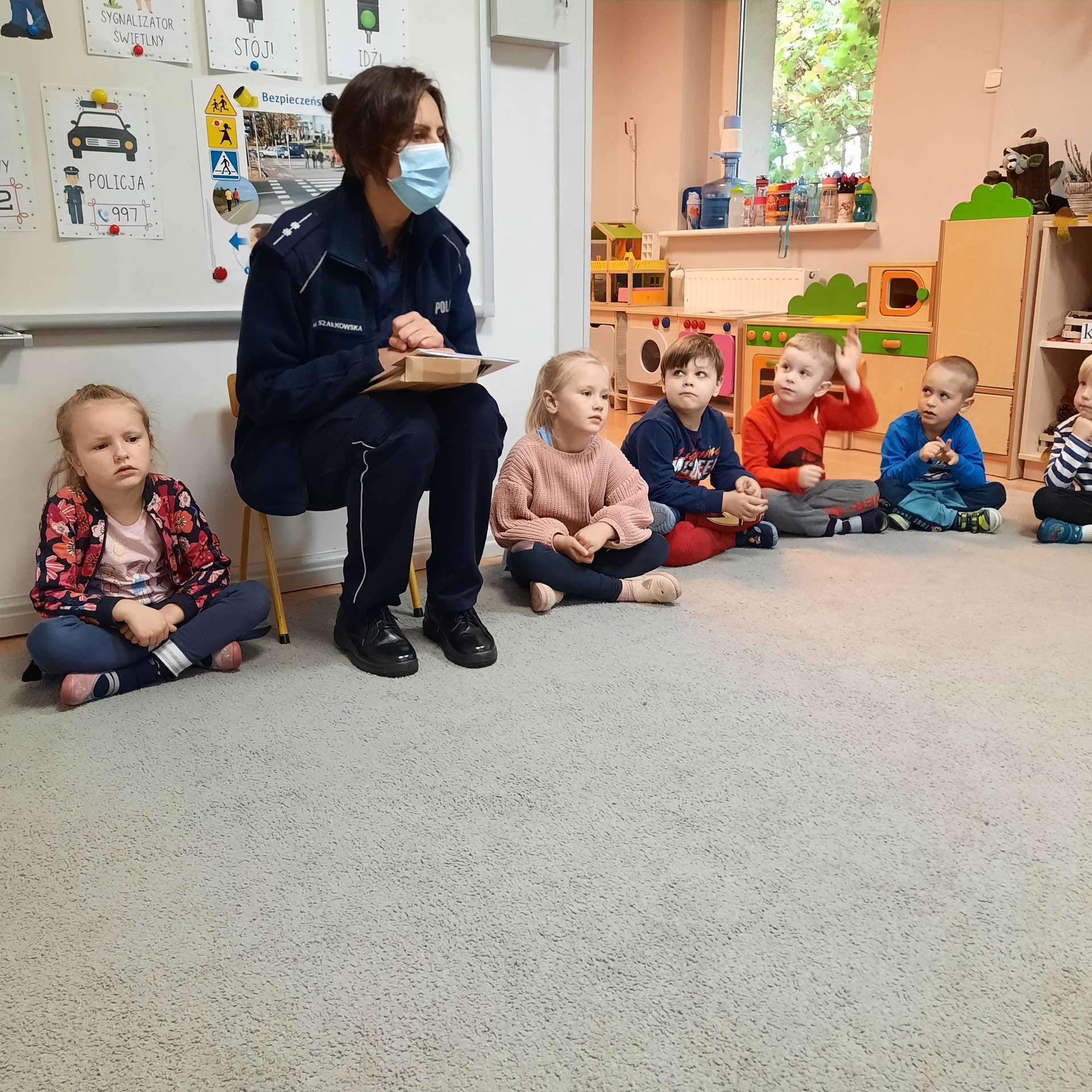 15.10.2021 r. gościliśmy w przedszkolu p. policjantkę, która przybliżyła dzieciom zasady bezpieczeństwa ruchu drogowego. Spotkania odbyły się oddzielnie w każdej grupie wiekowej.