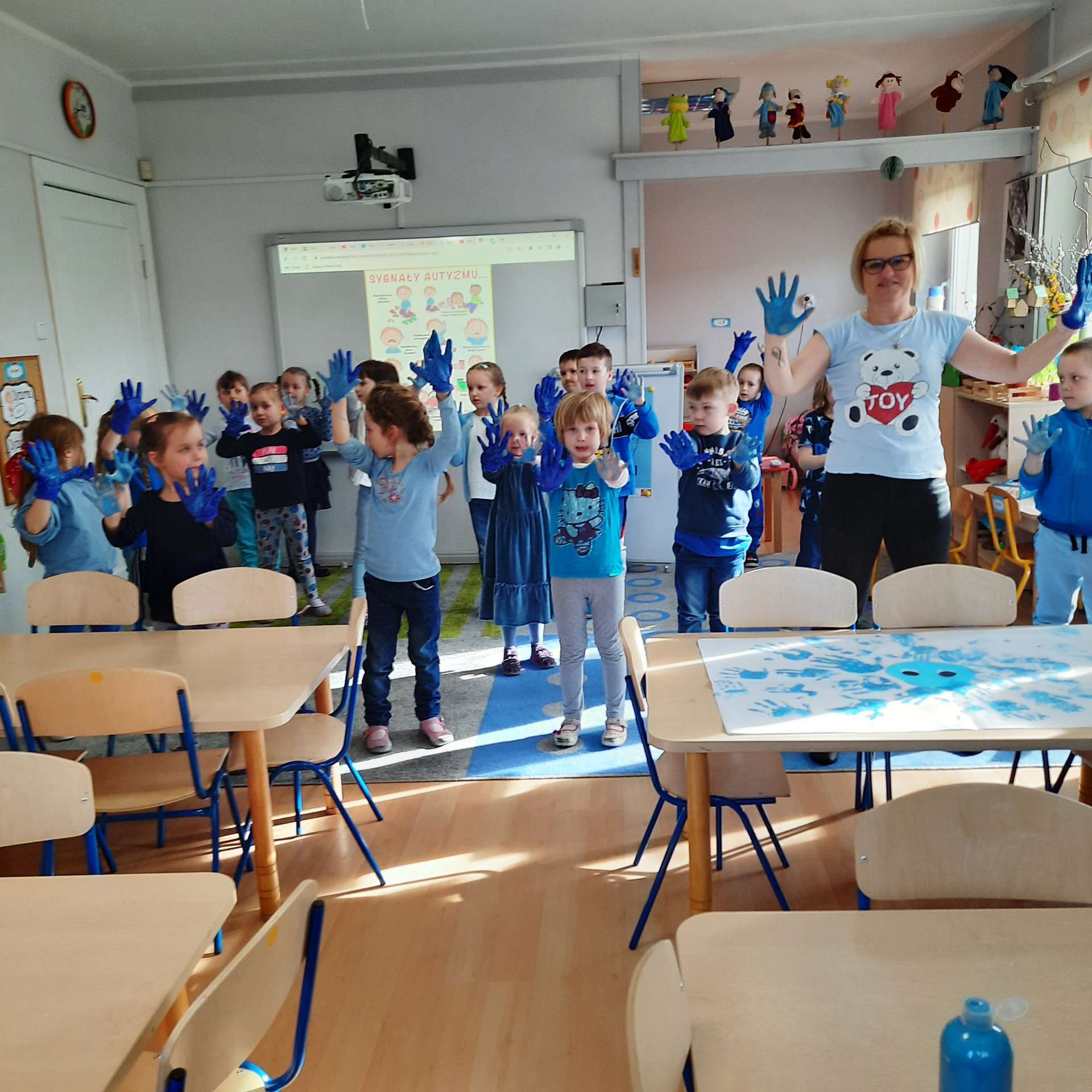"Na niebiesko dla autyzmu.." pod tym hasłem dzieci z grupy III obchodziły Światowy Dzień Świadomości Autyzmu, który przypada 2 kwietnia. Celem zajęć i zabaw było podnoszenie świadomości i propagowanie wiedzy na temat tego zaburzenia.