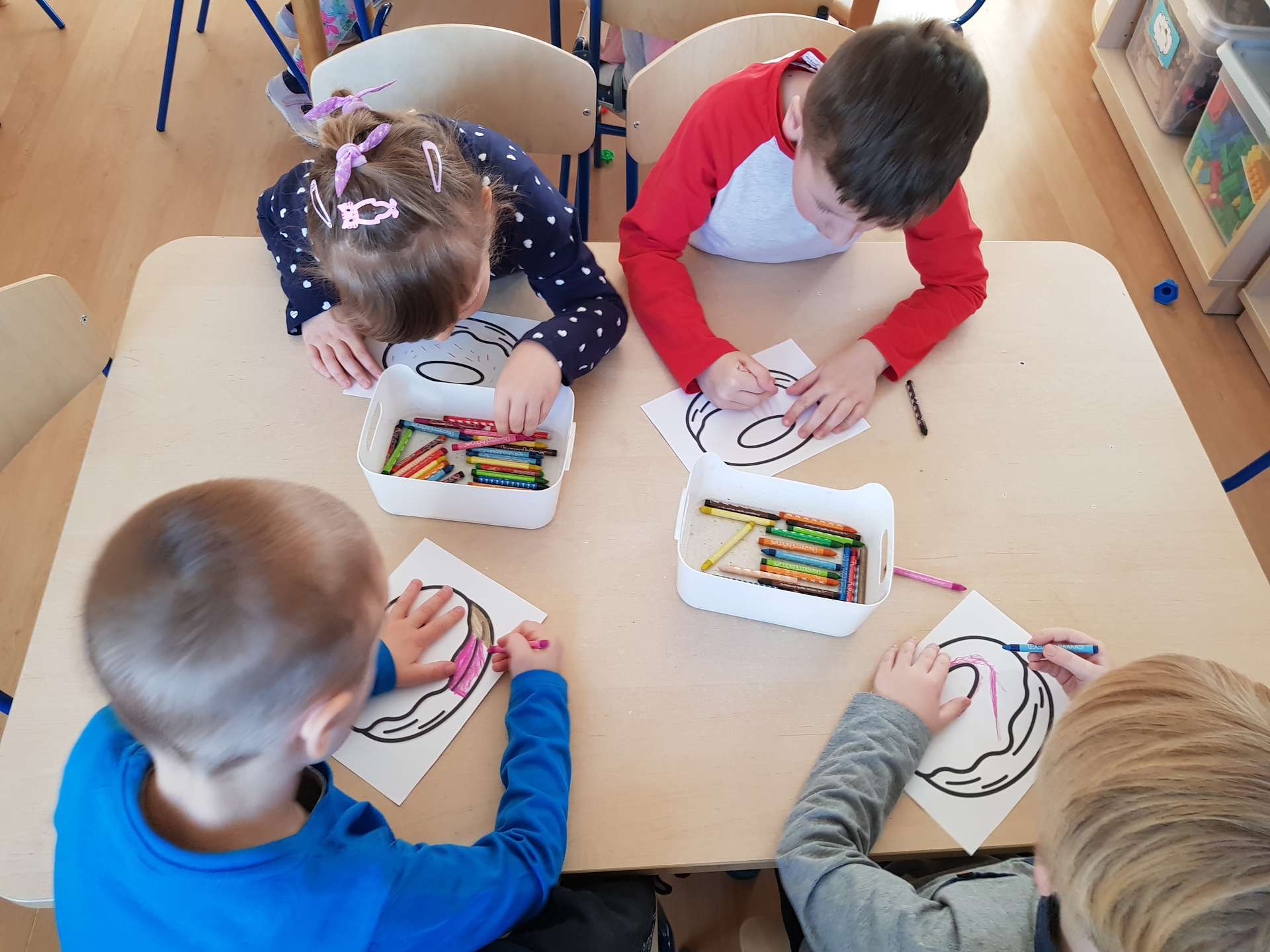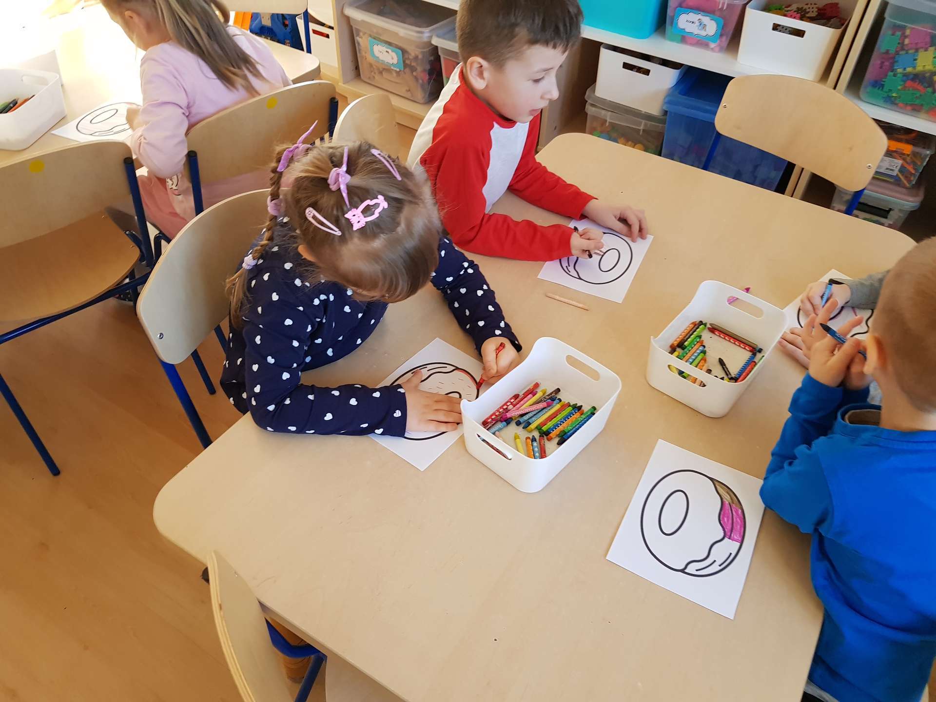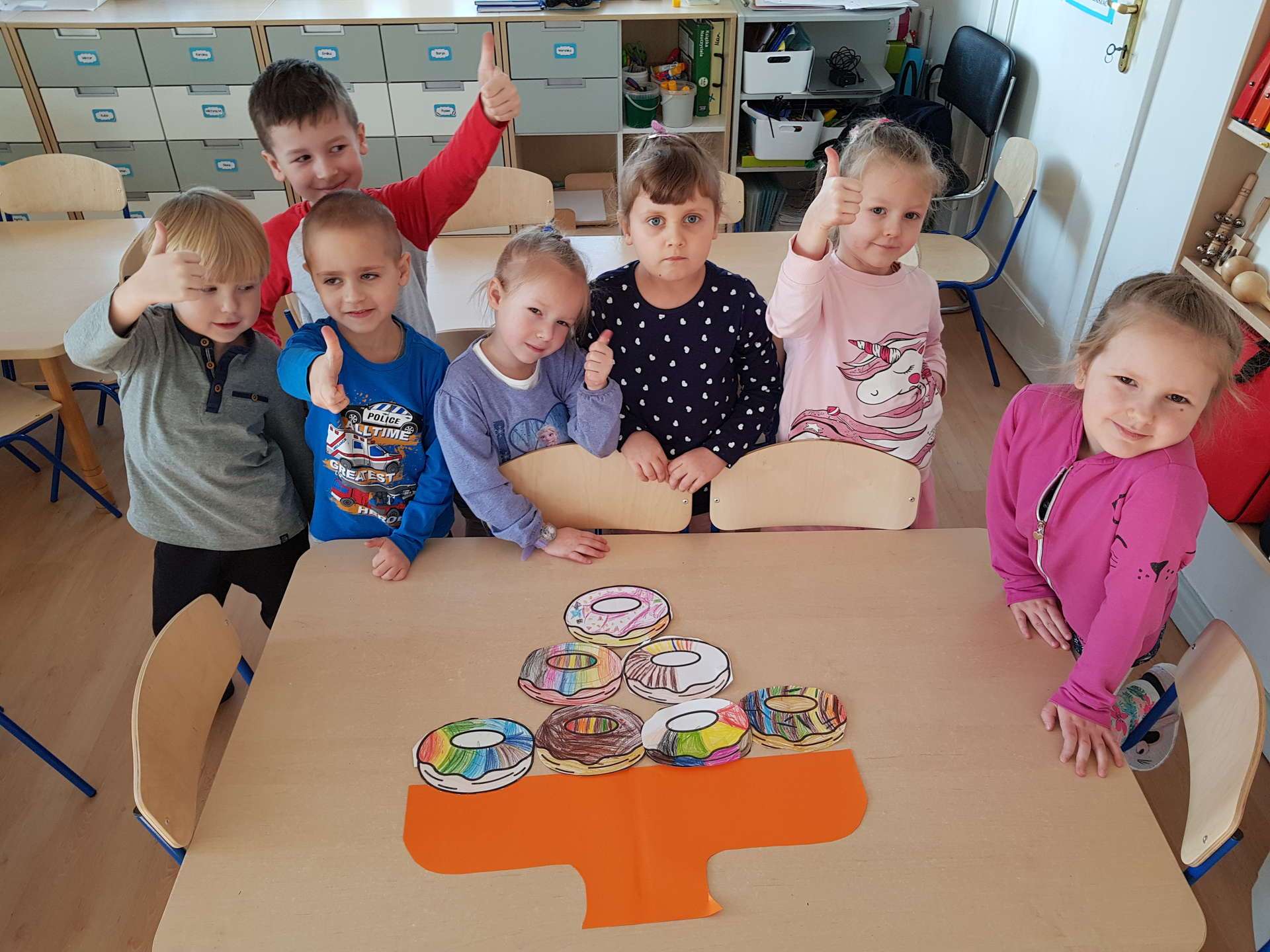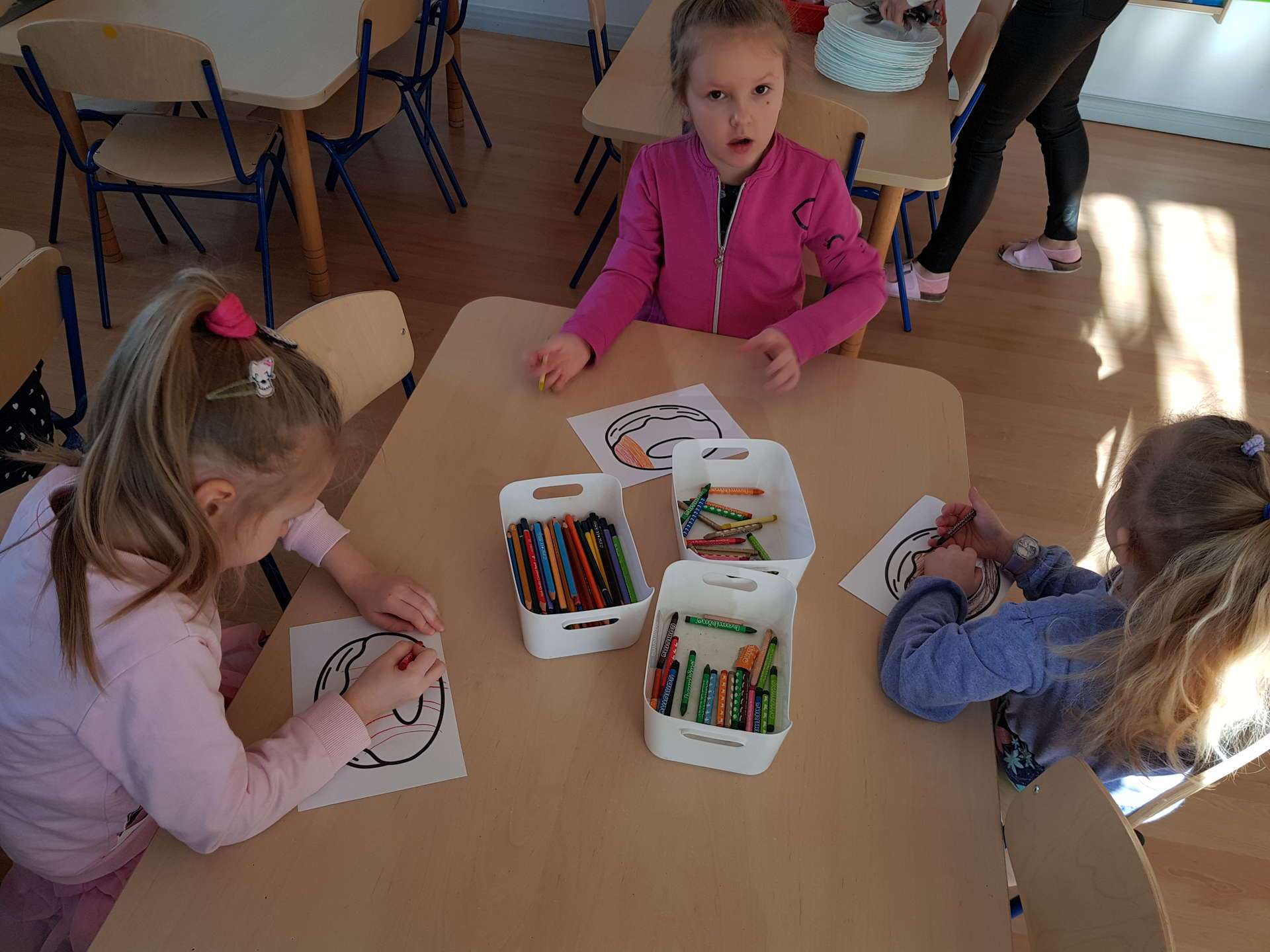 Tymi słowami rozpoczął się w naszym przedszkolu słodki dzień – tłusty czwartek. Dzieci poznały tradycje związane z tym świętem, odbyły się zabawy muzyczno – ruchowe oraz zajęcia plastyczne. Przedszkolaki kolorowały piękne „pączusiowe” obrazki. Dzieci napatrzywszy się na zdjęcia faworków, pączków oraz innych smakołyków nie mogły doczekać się swojego przydziału, który dla nich również był przewidziany. Samą wisienką na torcie był obiecany pączek, który każdy przedszkolak zjadł na podwieczorek z ogromnym apetytem.