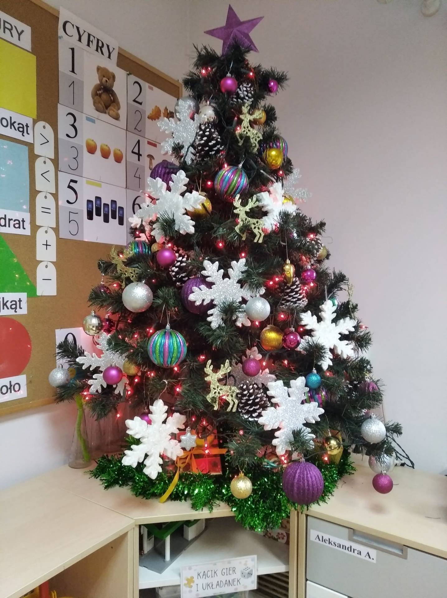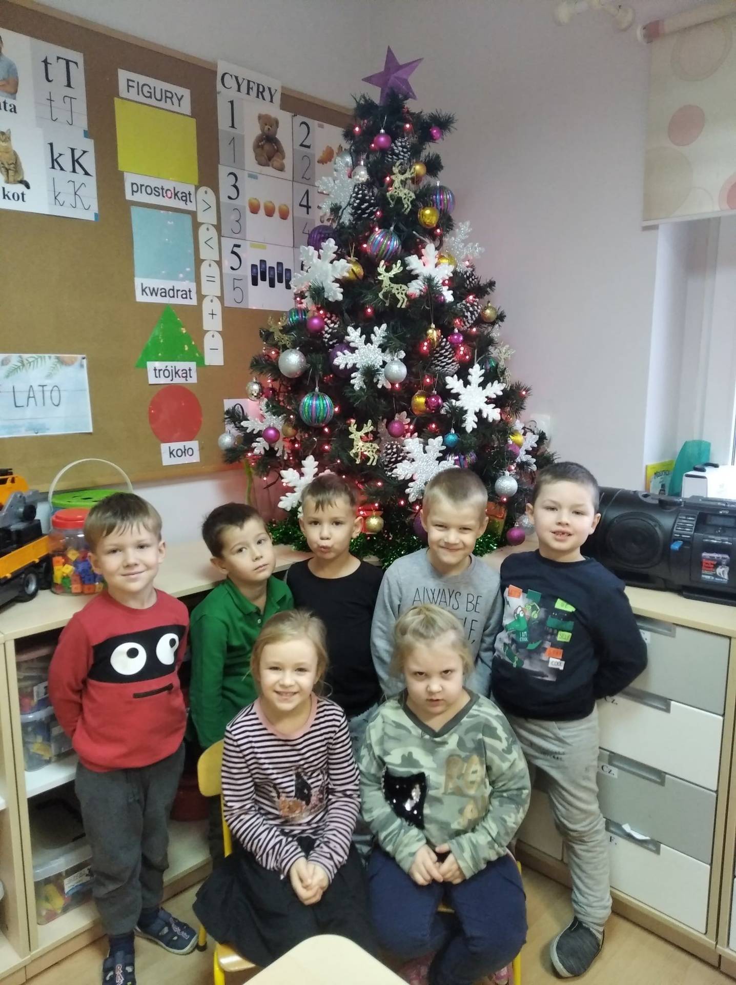 Święta już coraz bliżej, więc powoli zaczynamy dekorowanie i ozdabianie naszej sali. Przyszedł też czas na ważny element przygotowań do świąt, czyli ubieranie choinki. Dzieci były bardzo chętne do pracy i z radością zabrały się do wykonania powierzonego zadania. Na końcu wszyscy podziwialiśmy pięknie wystrojone drzewko. Każdy był zadowolony z efektu naszych wspólnych działań. Poczuliśmy już początek świątecznej atmosfery. Teraz będziemy z niecierpliwością oczekiwać na kolejne grudniowe wydarzenia.