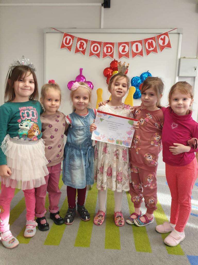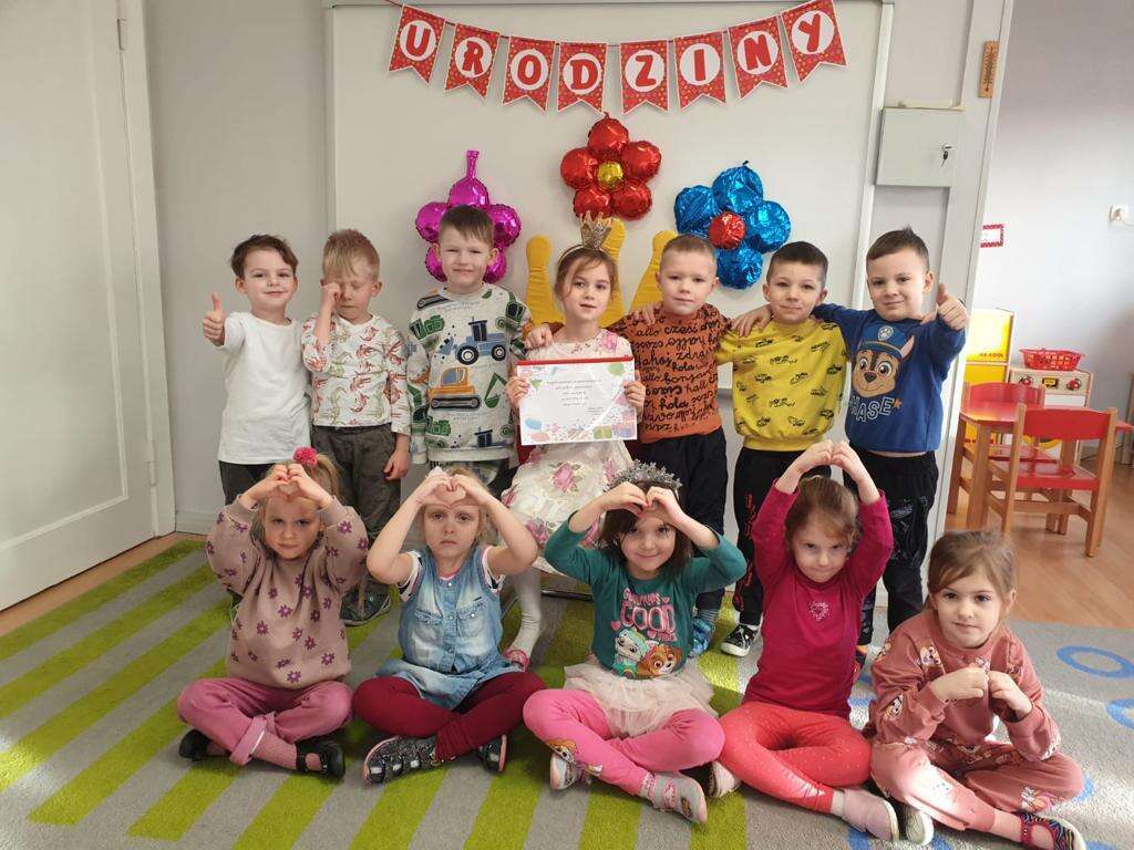 Wspólne zdjęcie dzieci z jubilatką