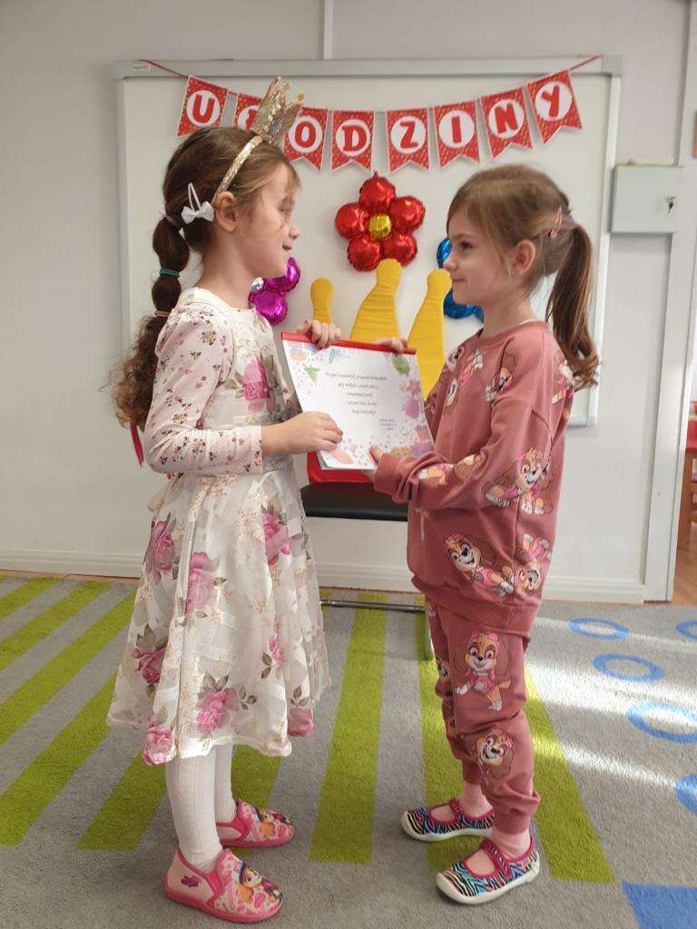 dziewczynka składa życzenia jubilatce