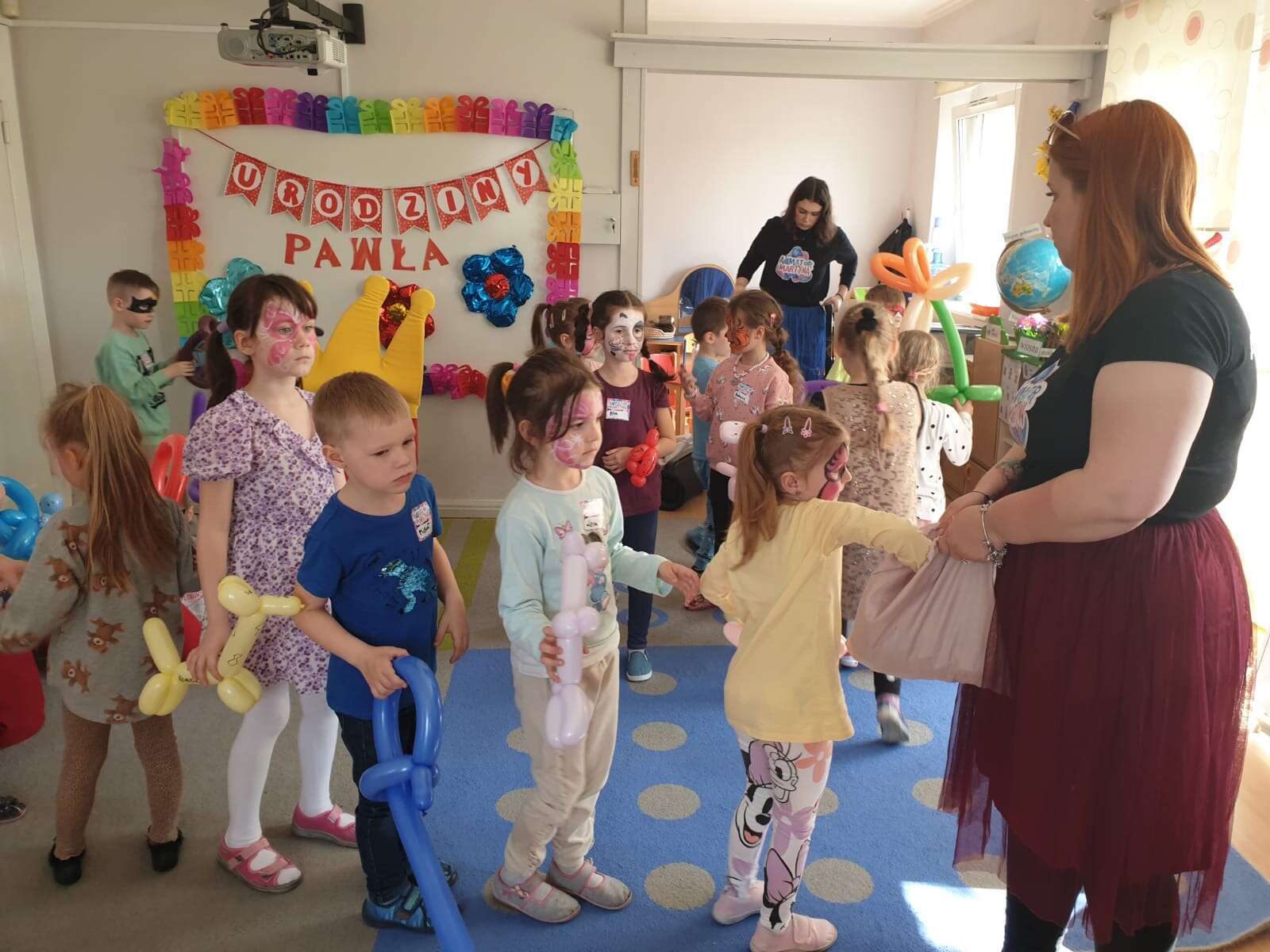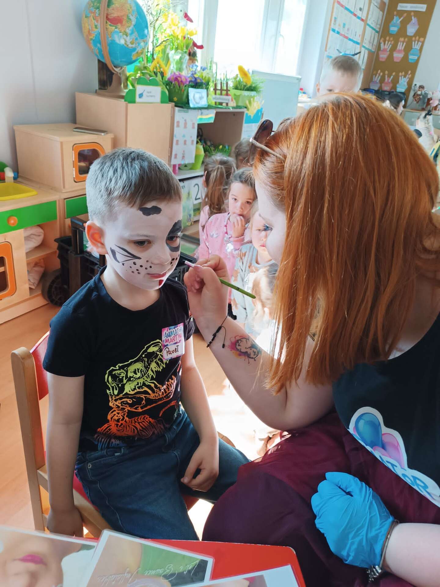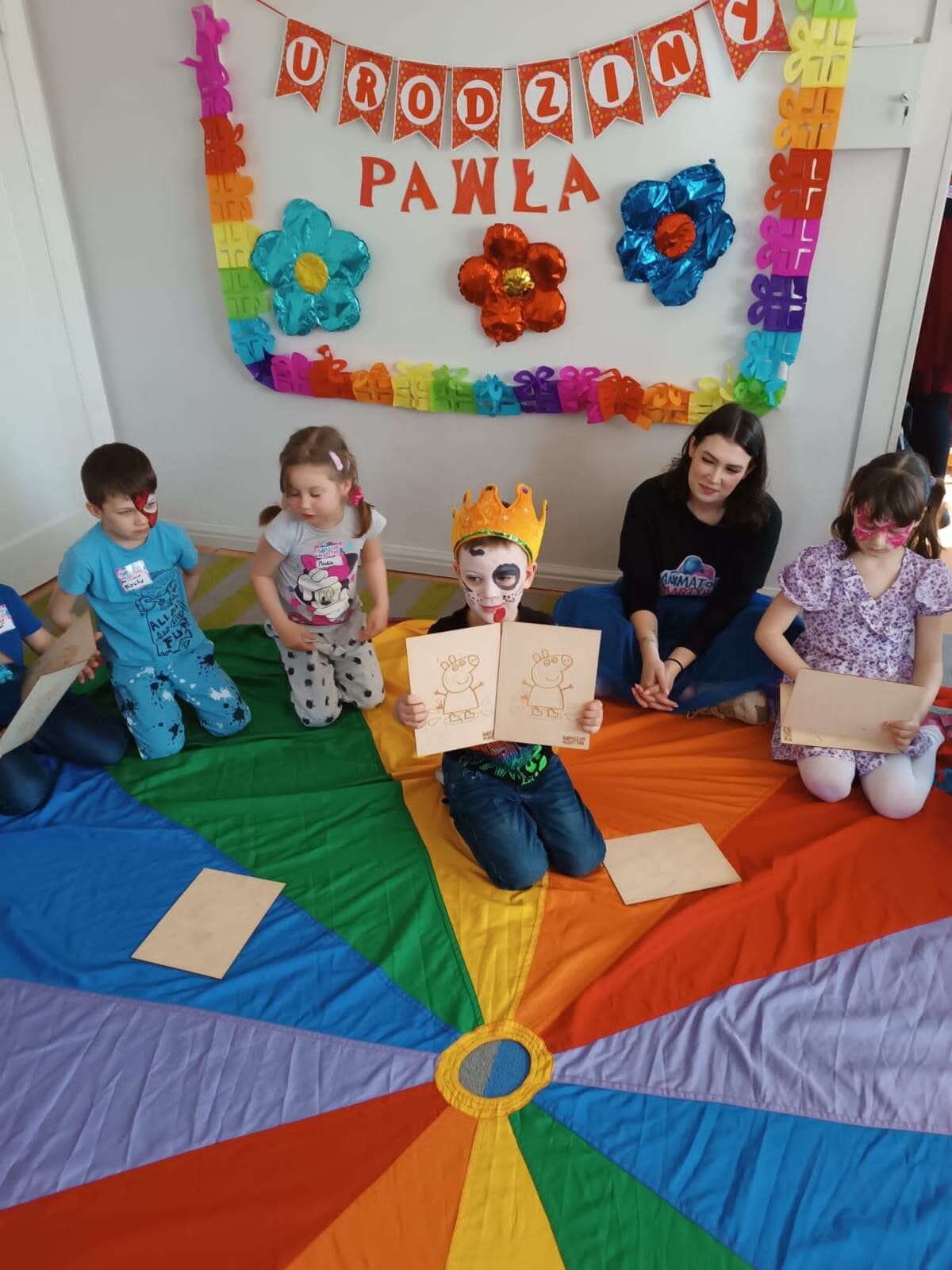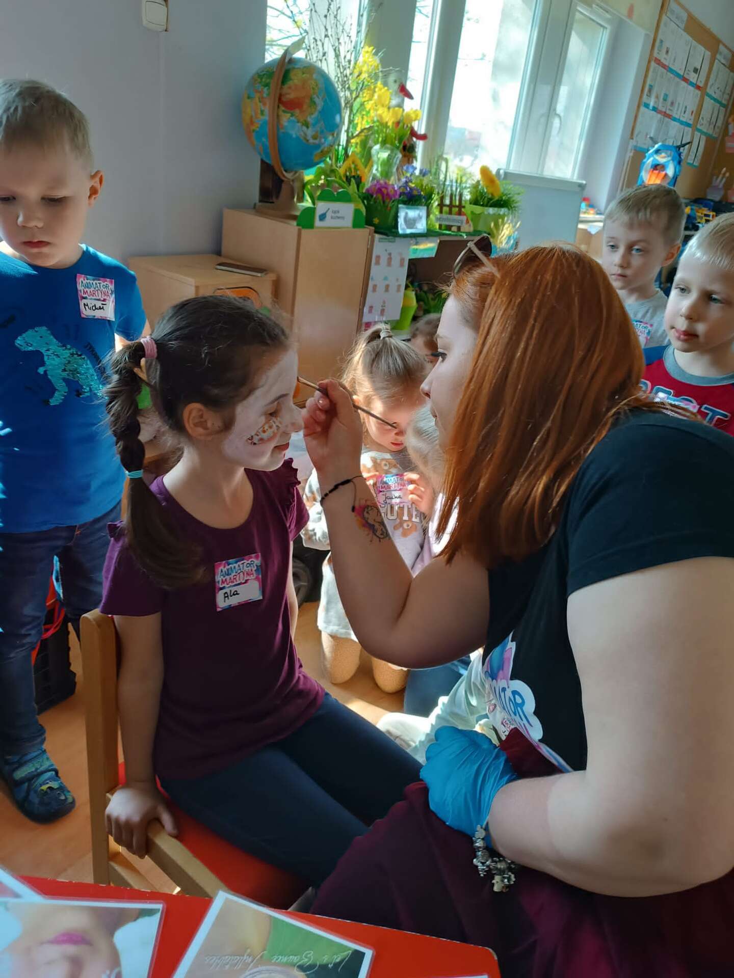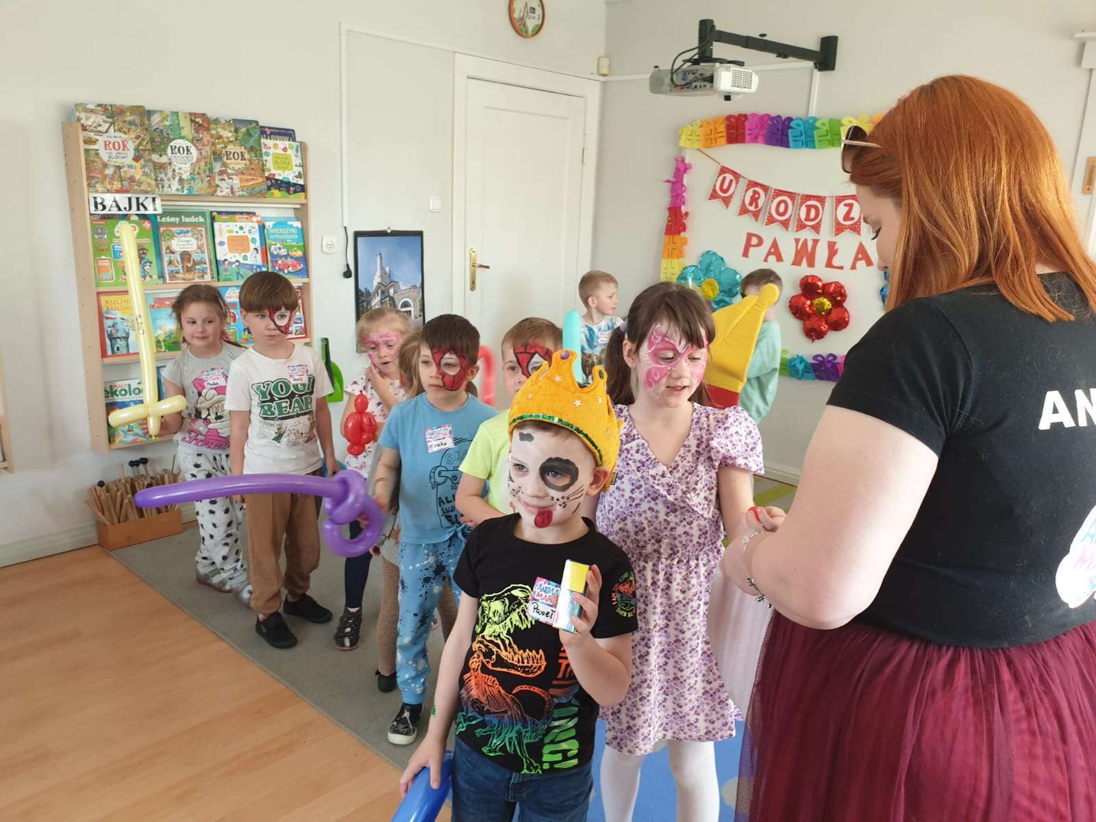Pani maluje twarz solenizantowi