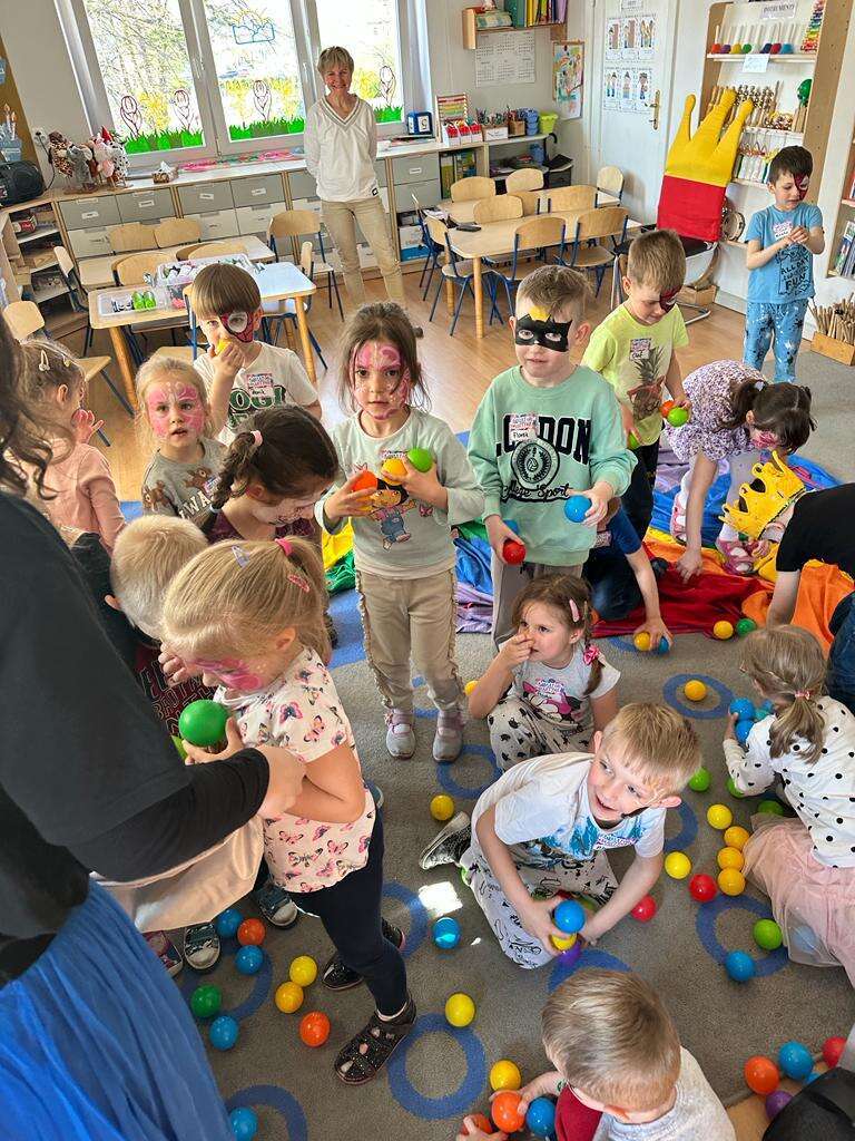 Solenizant na środku chusty animacyjnej