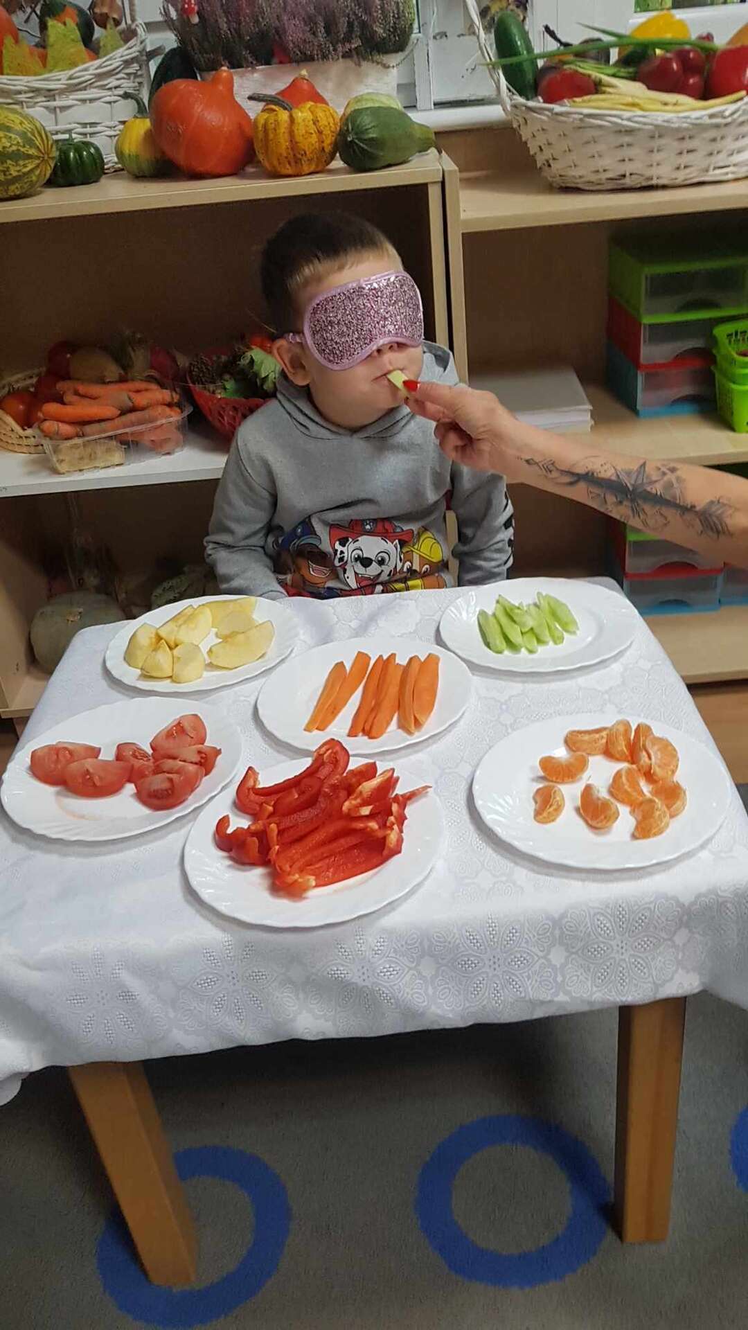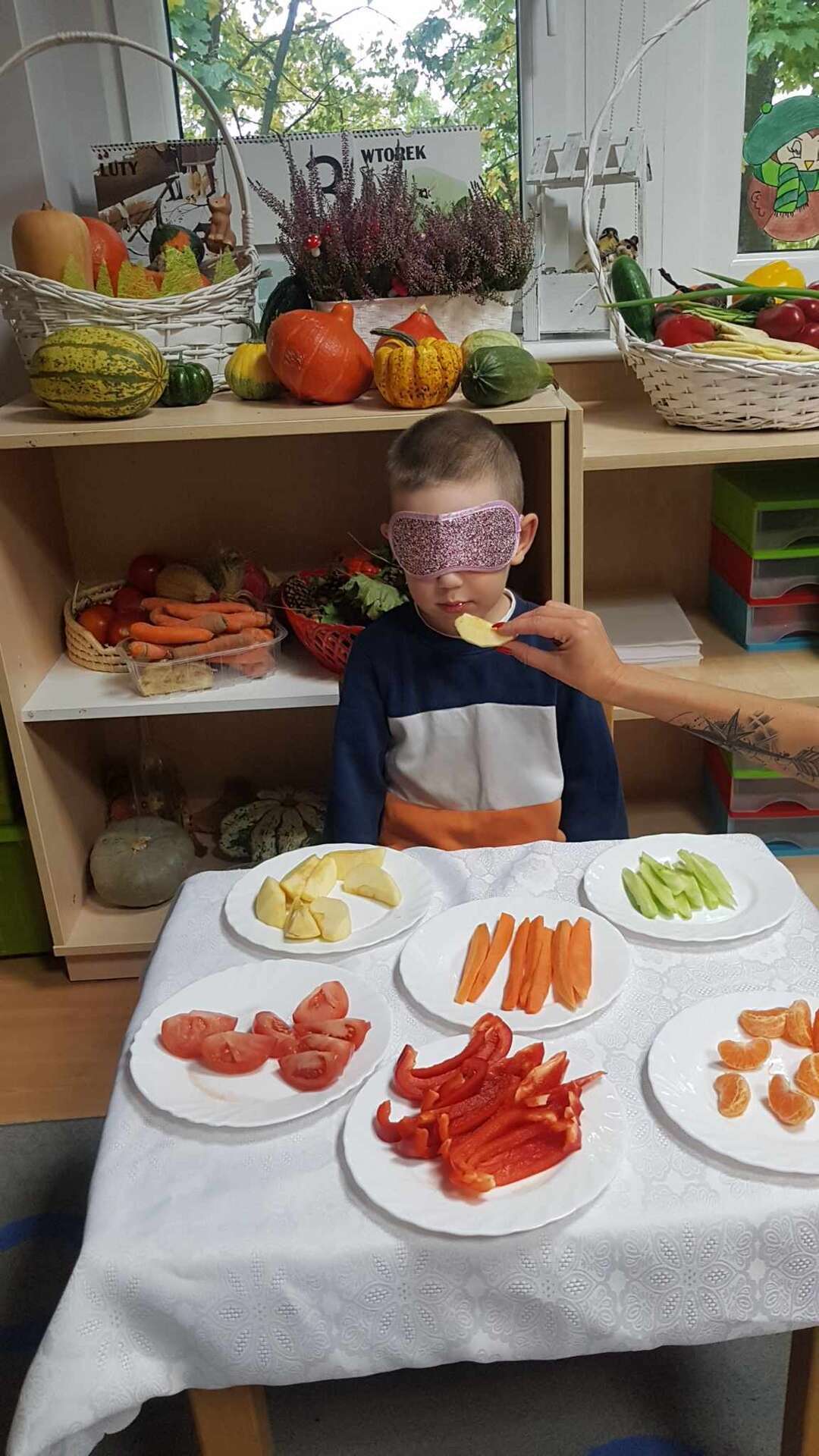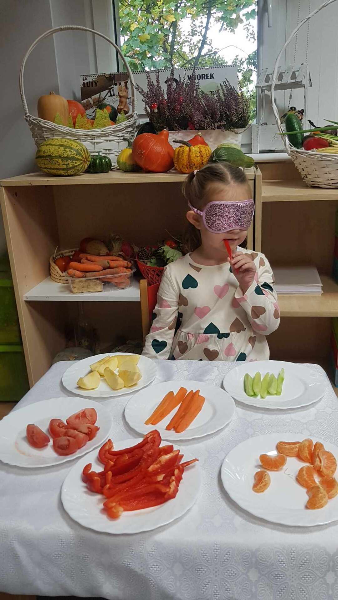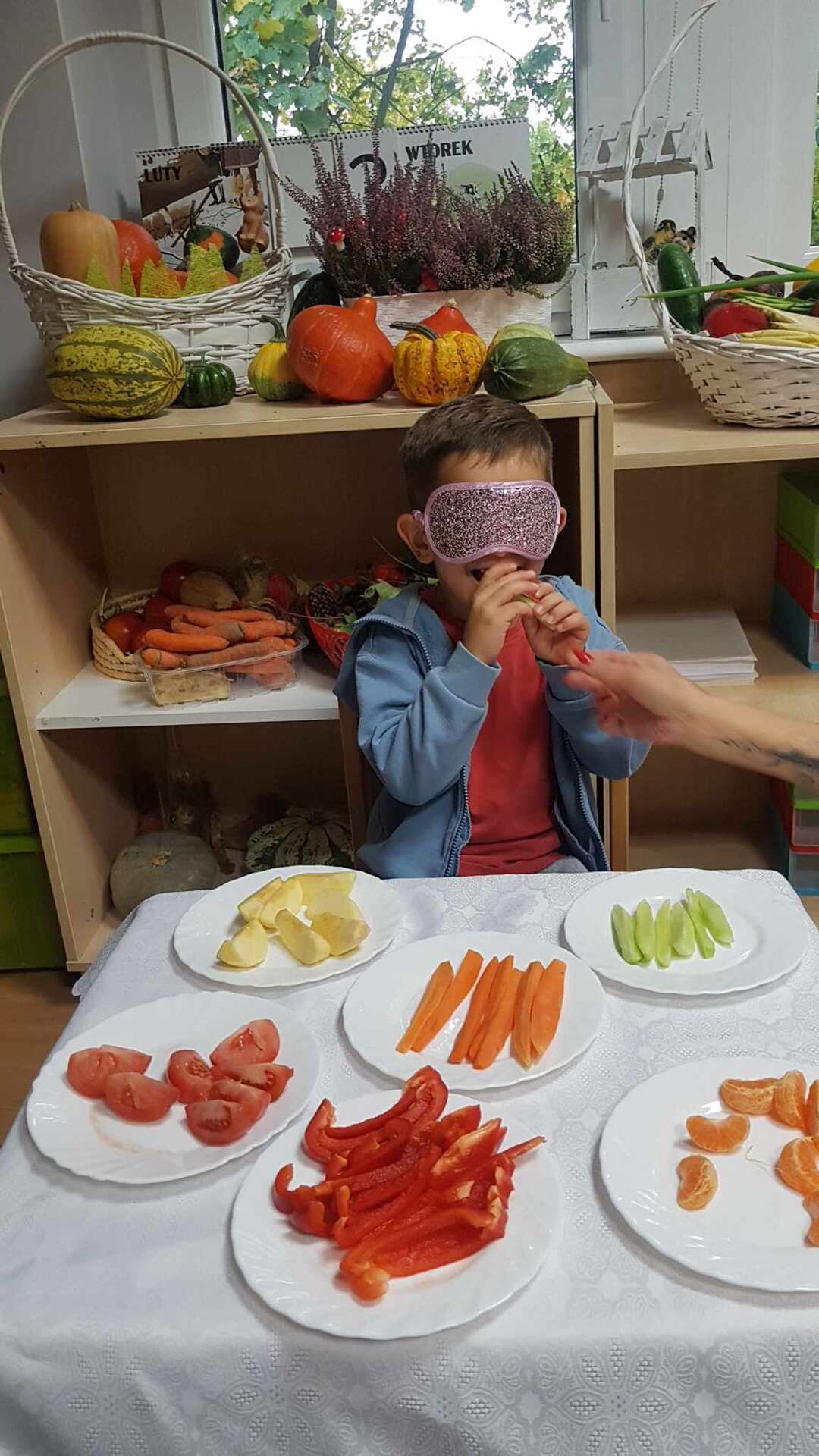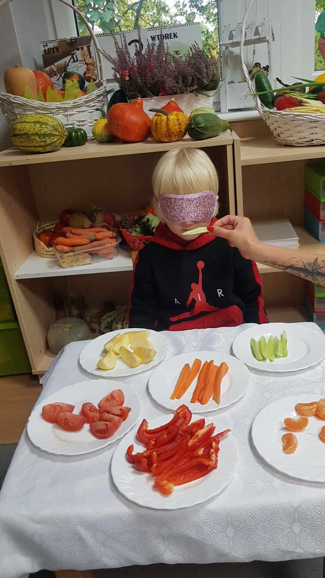 Dzieci smakują warzyw z zamkniętymi oczami