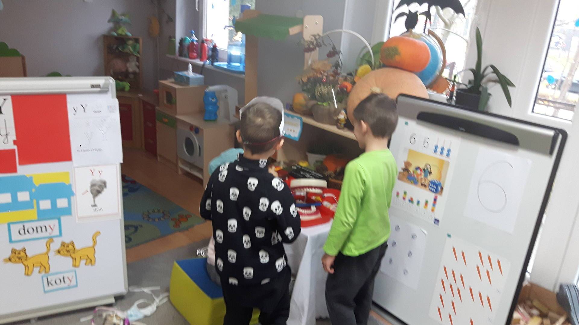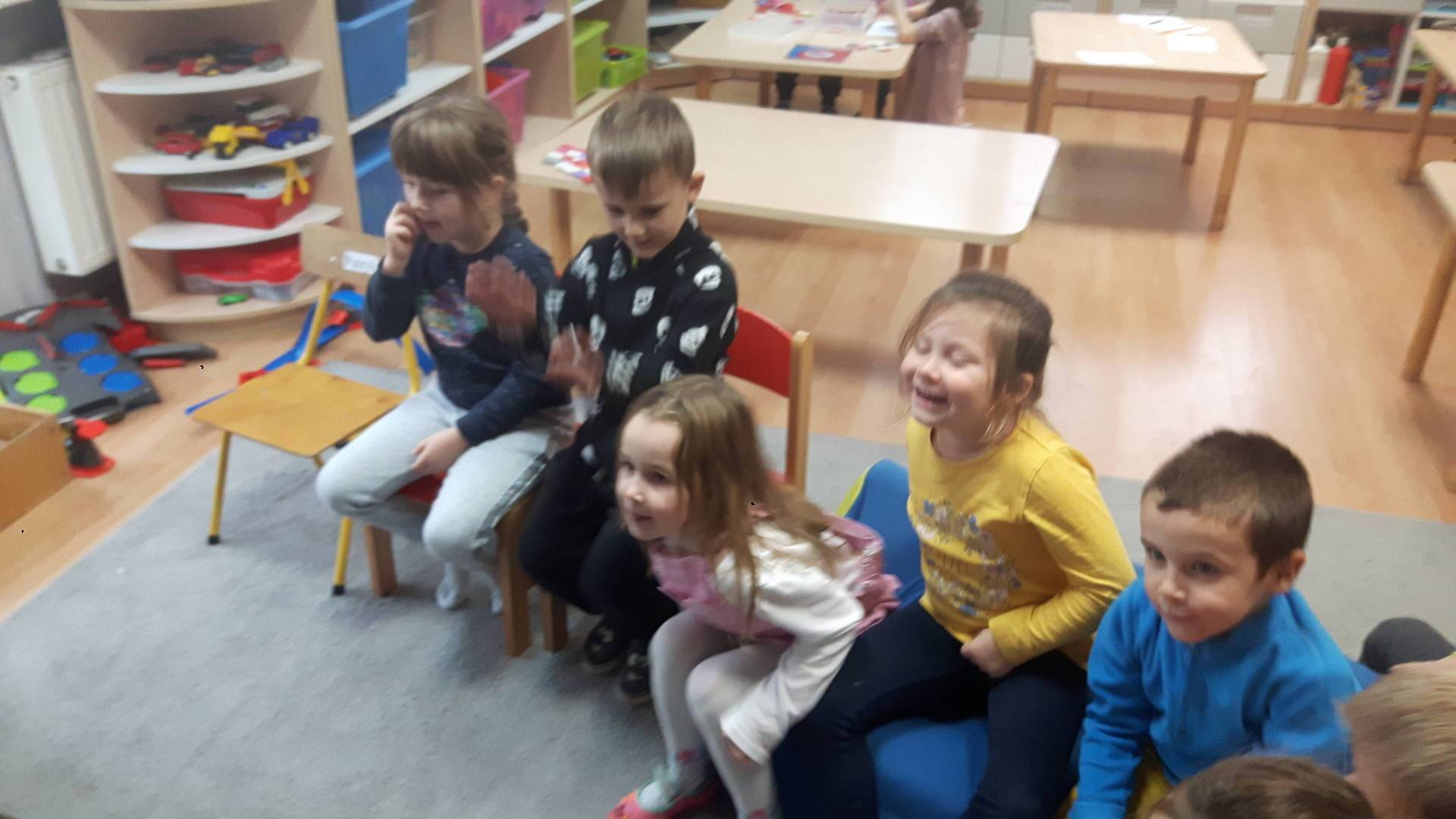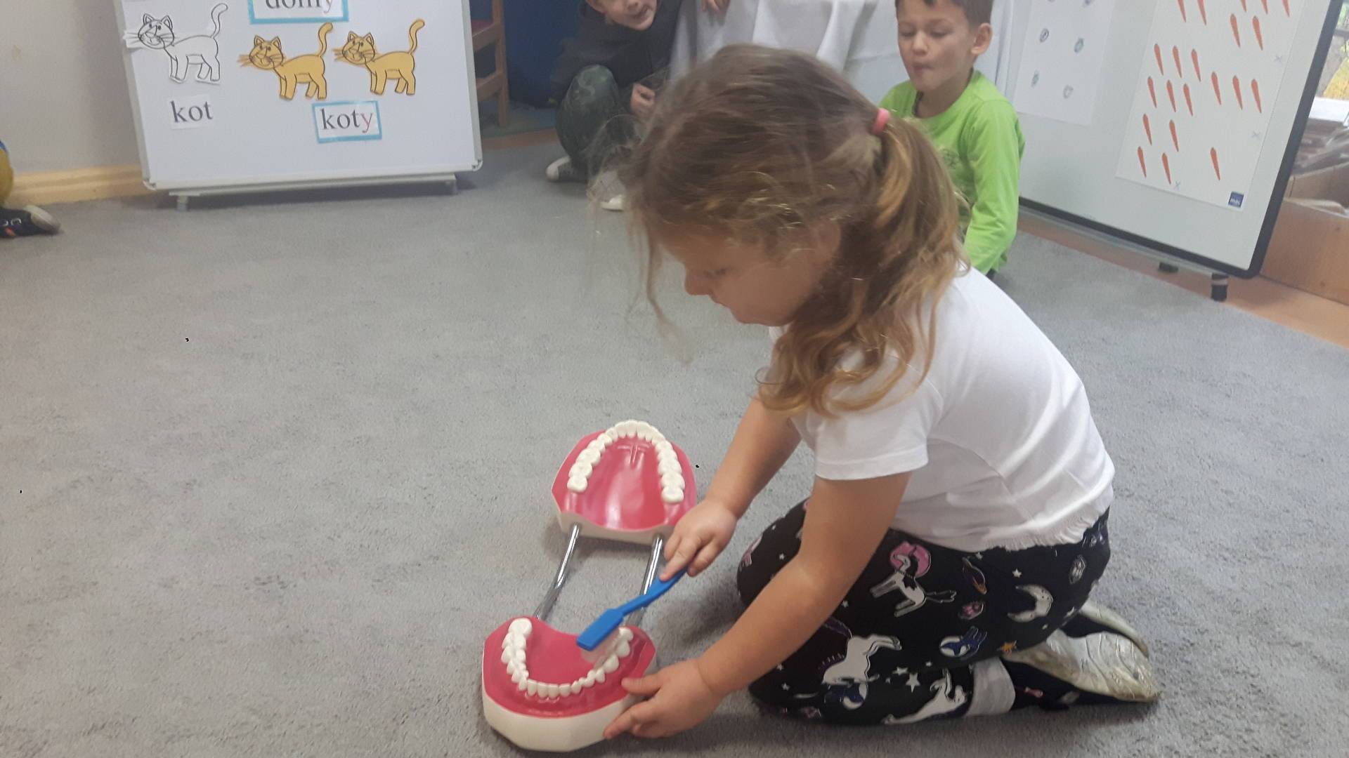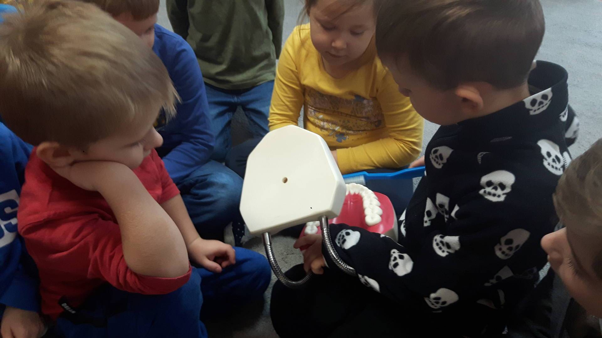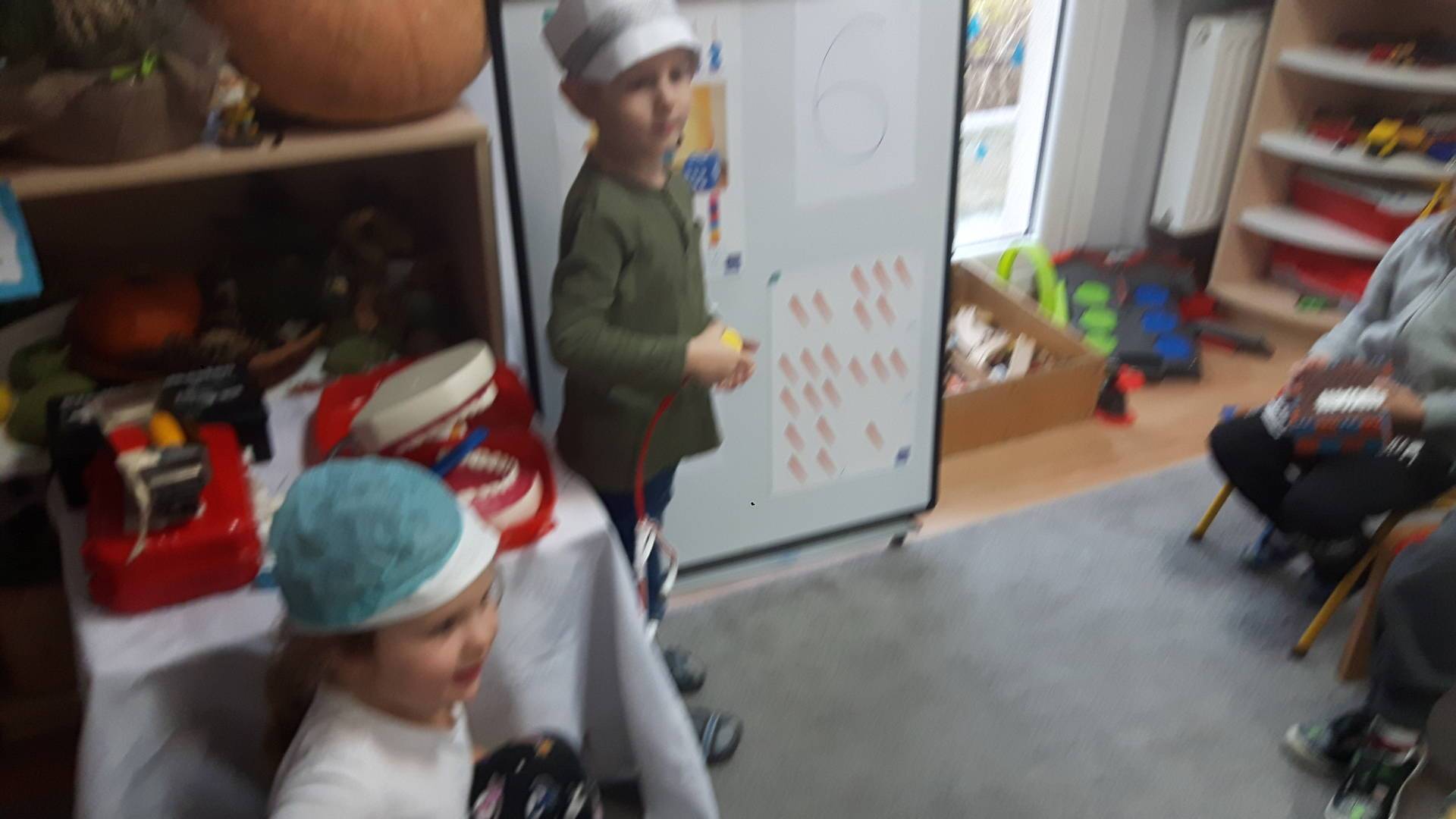 w tym tygodniu zajmujemy się zdrowiem: dowiadujemy się, co powinniśmy jeść, by mieć dużo siły i energii, i jak się ubierać, żeby nie zachorować. Wiemy jak należy poprawnie szczotkować zęby i gdzie się udać kiedy nas coś boli. Rozpoznawaliśmy różne gabinety lekarskie oraz narzędzia niezbędne w pracy lekarzy różnych specjalności, na przykład pediatry, stomatologa, laryngologa. Dużo czasu poświęcamy na zabawy ruchowe, bo ruch to zdrowie: biegaliśmy, skakaliśmy, rzucaliśmy woreczkami do celu.