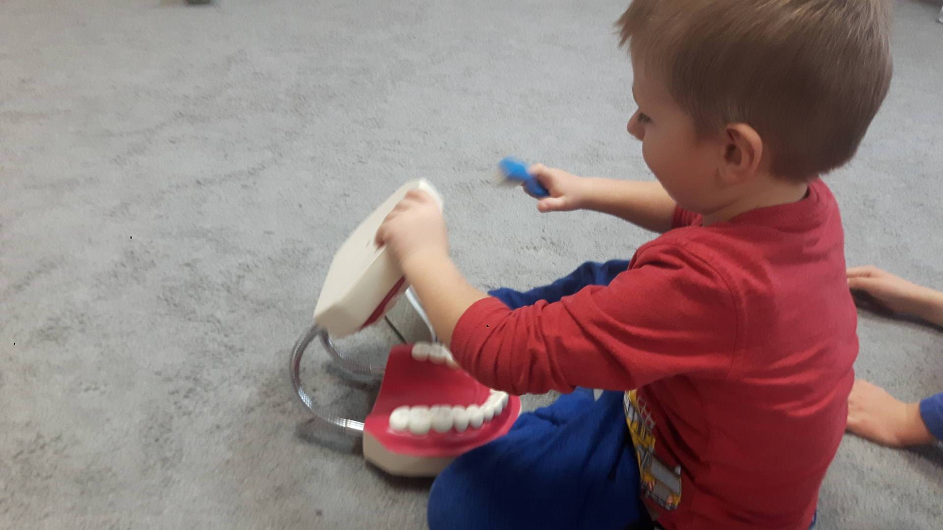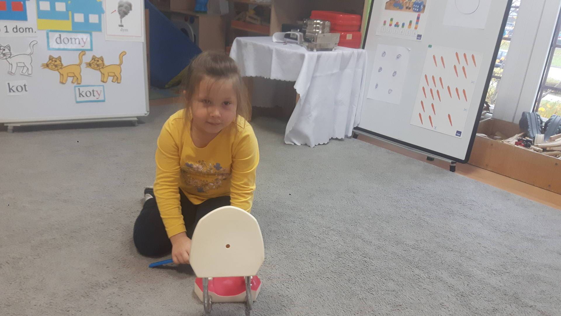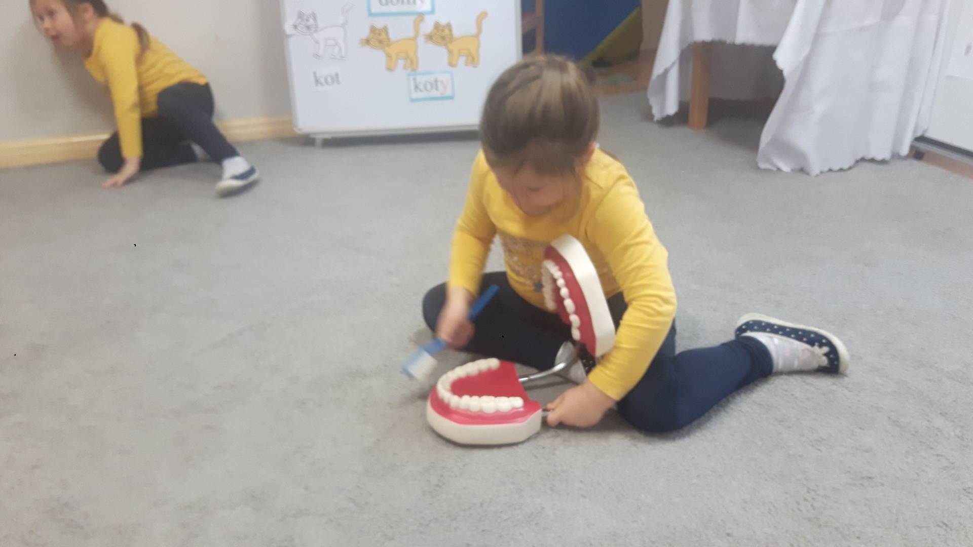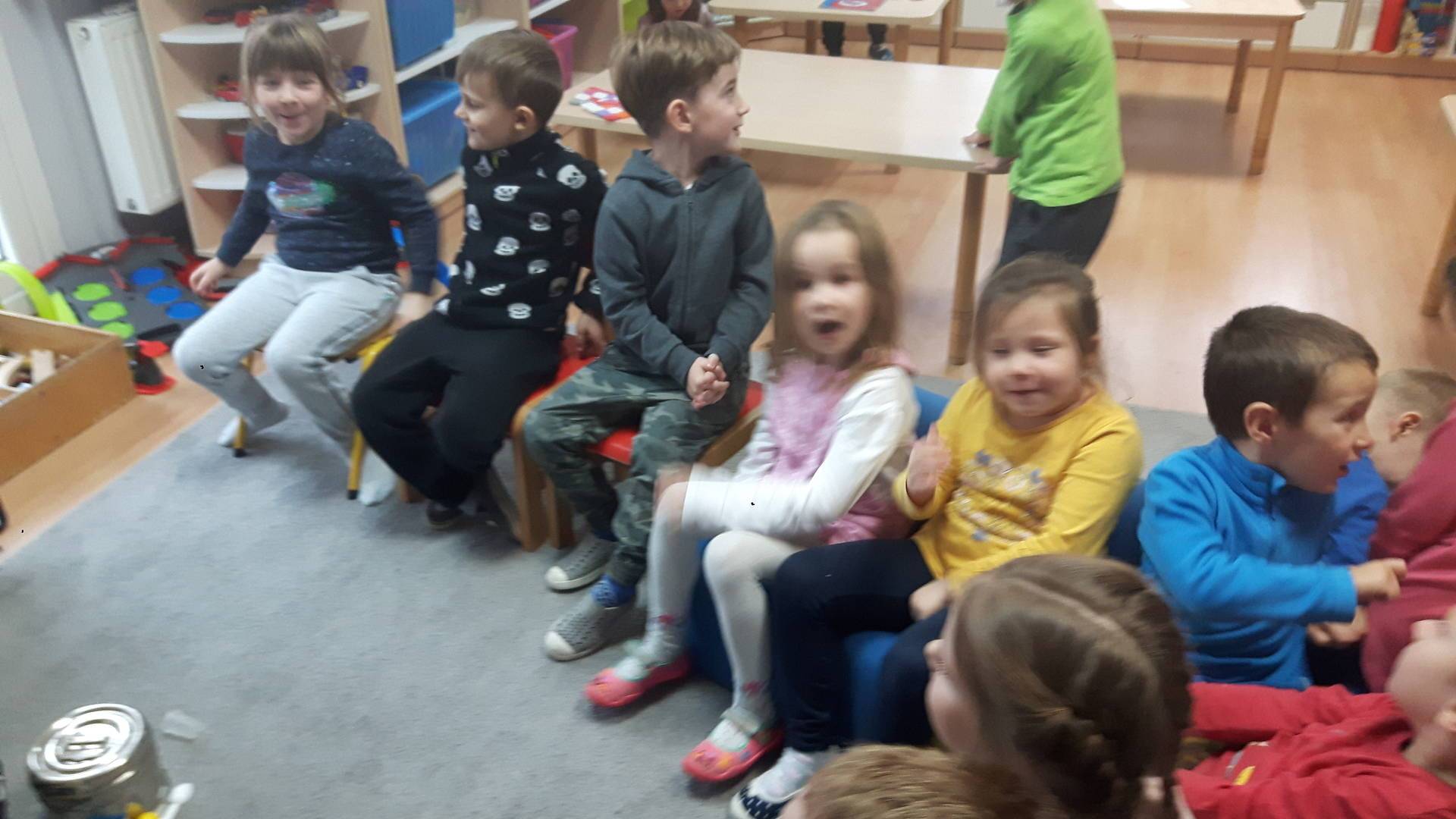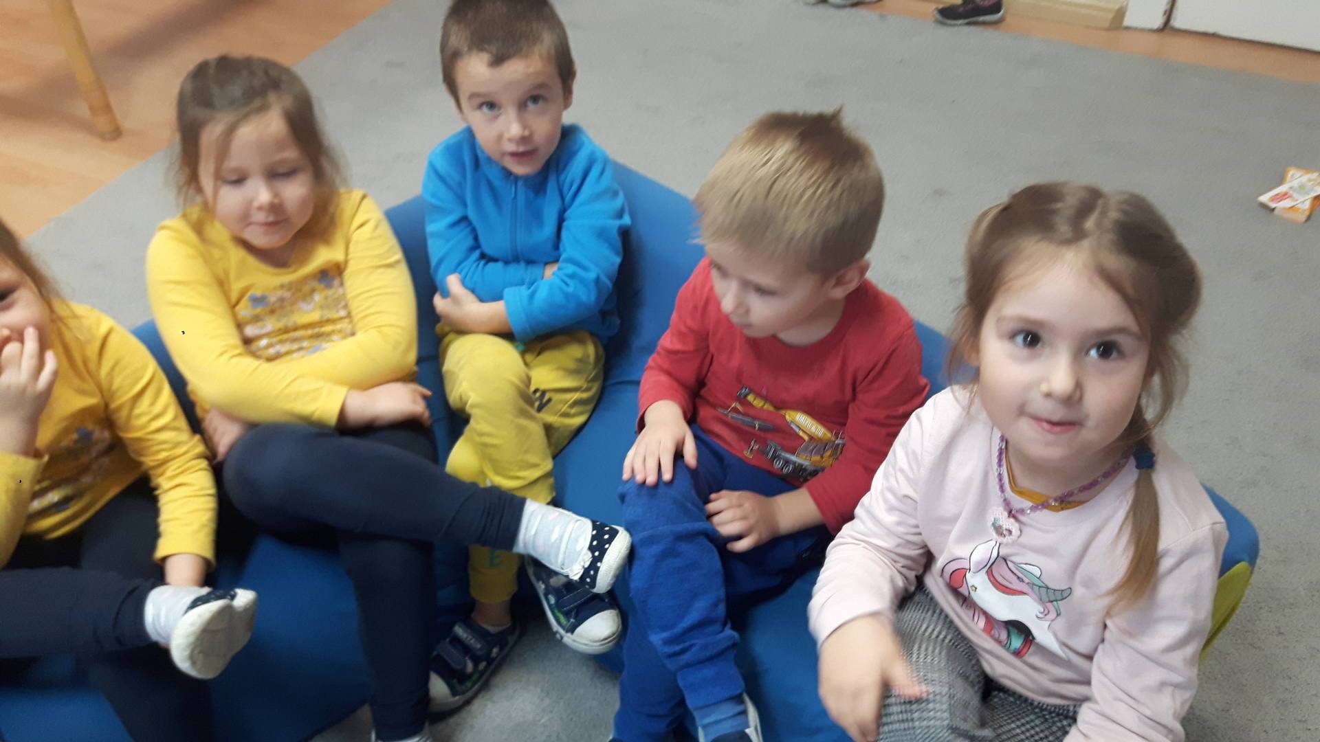w tym tygodniu zajmujemy się zdrowiem: dowiadujemy się, co powinniśmy jeść, by mieć dużo siły i energii, i jak się ubierać, żeby nie zachorować. Wiemy jak należy poprawnie szczotkować zęby i gdzie się udać kiedy nas coś boli. Rozpoznawaliśmy różne gabinety lekarskie oraz narzędzia niezbędne w pracy lekarzy różnych specjalności, na przykład pediatry, stomatologa, laryngologa. Dużo czasu poświęcamy na zabawy ruchowe, bo ruch to zdrowie: biegaliśmy, skakaliśmy, rzucaliśmy woreczkami do celu.