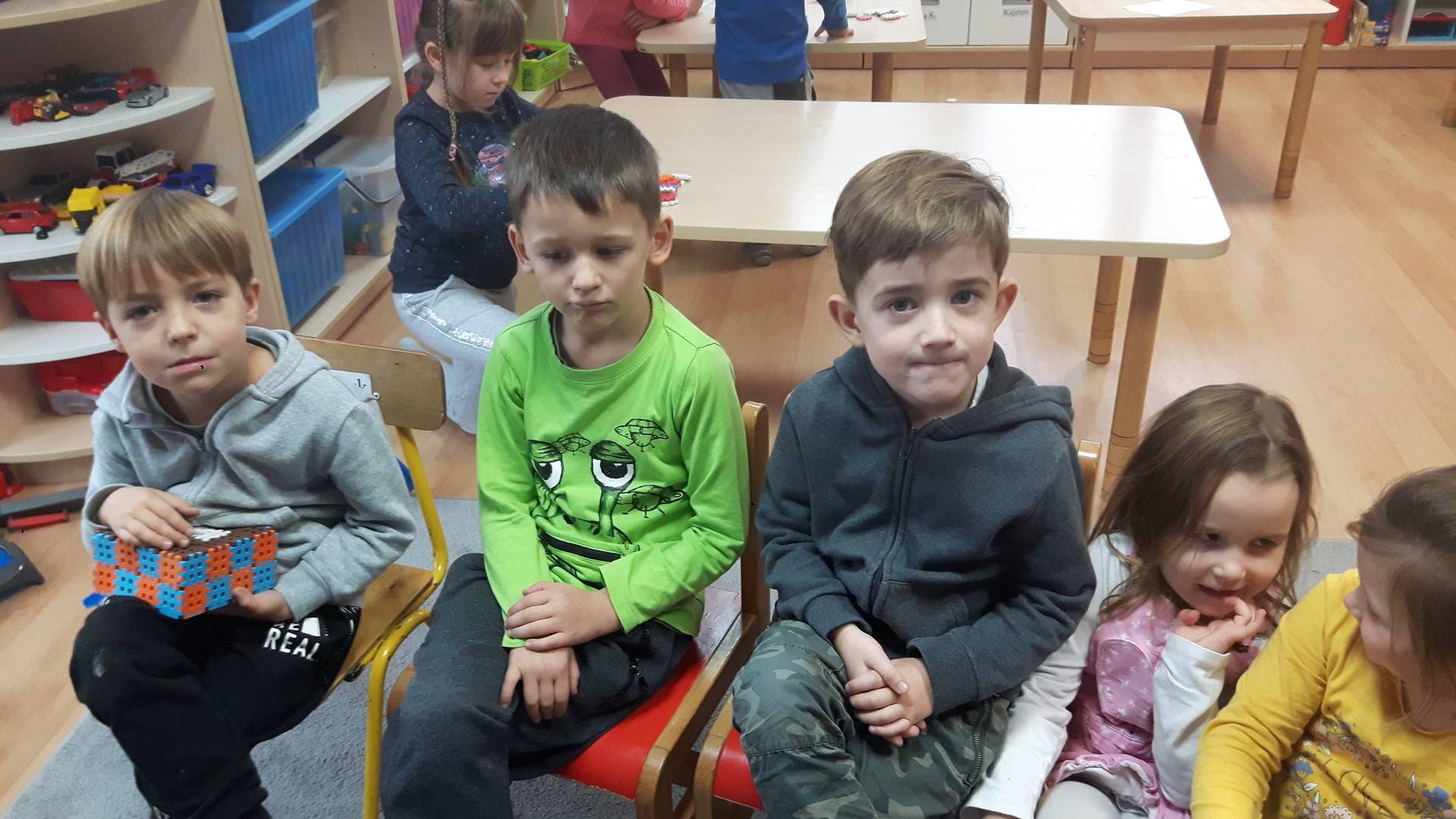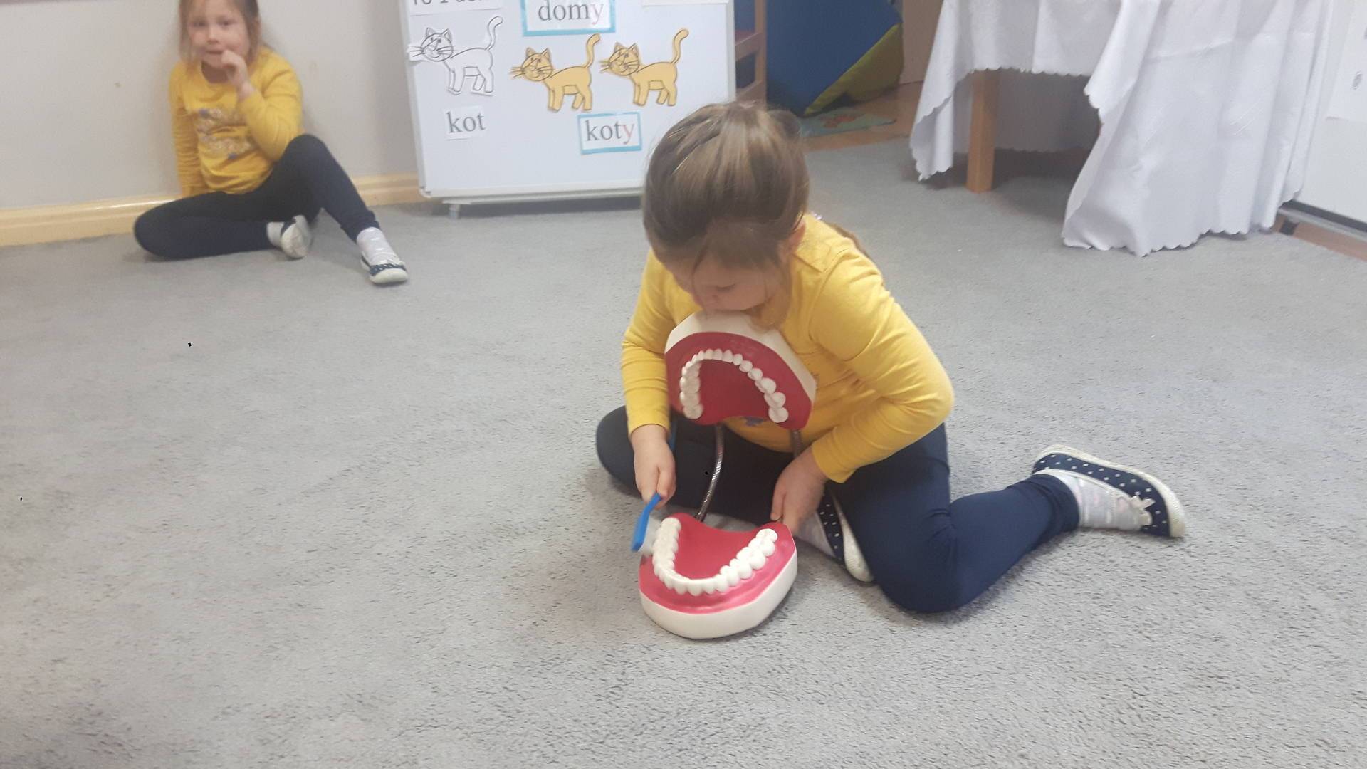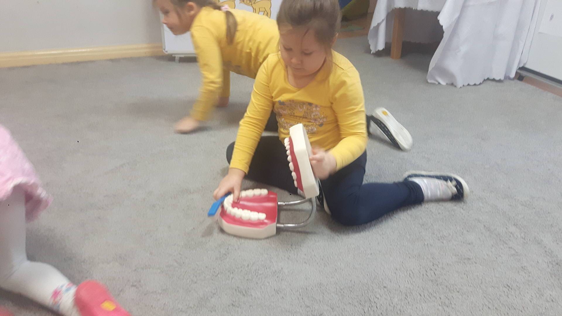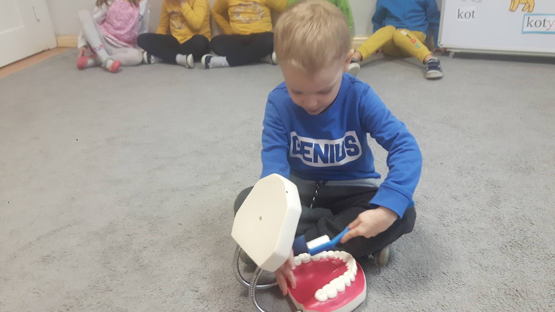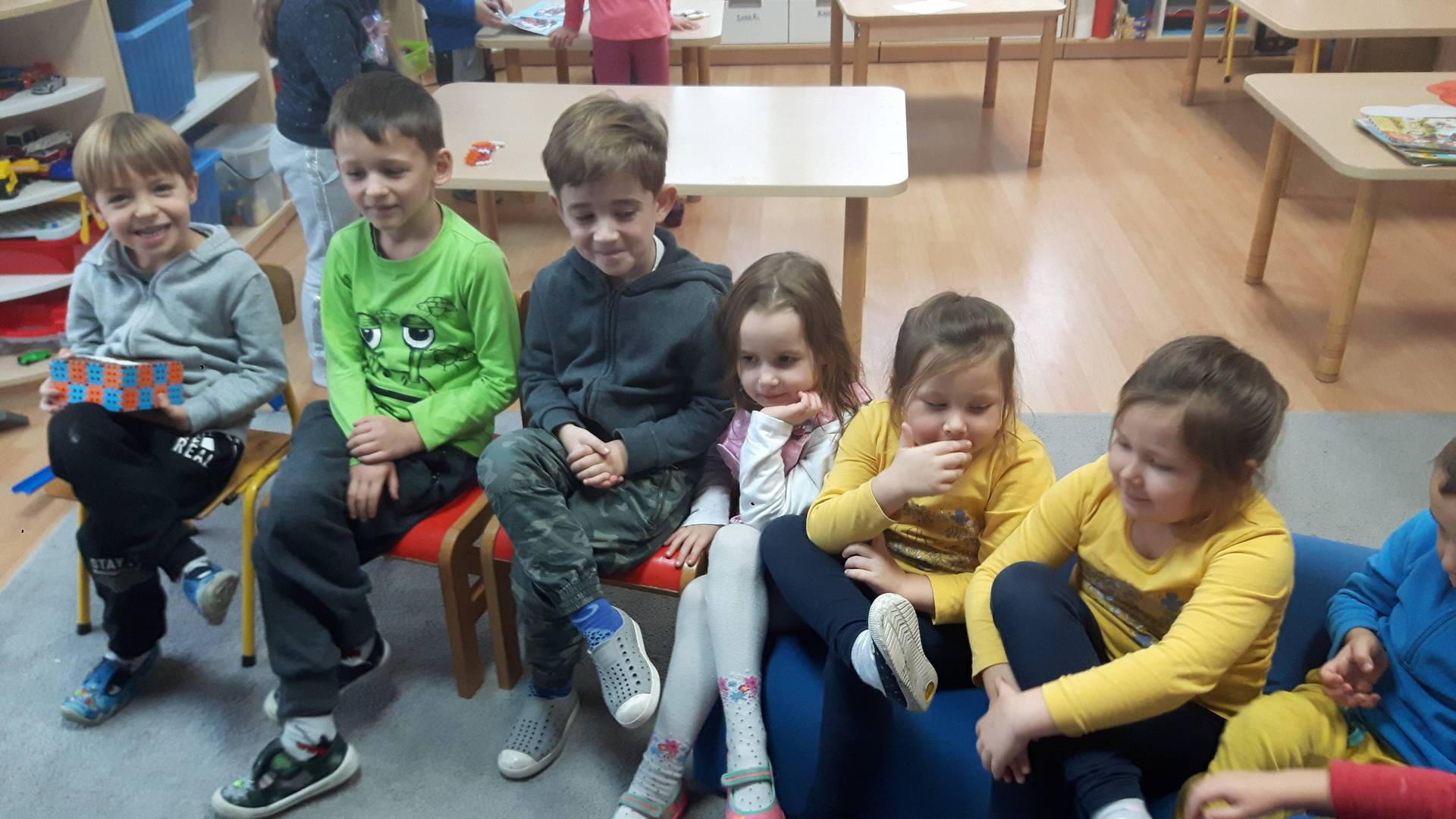 w tym tygodniu zajmujemy się zdrowiem: dowiadujemy się, co powinniśmy jeść, by mieć dużo siły i energii, i jak się ubierać, żeby nie zachorować. Wiemy jak należy poprawnie szczotkować zęby i gdzie się udać kiedy nas coś boli. Rozpoznawaliśmy różne gabinety lekarskie oraz narzędzia niezbędne w pracy lekarzy różnych specjalności, na przykład pediatry, stomatologa, laryngologa. Dużo czasu poświęcamy na zabawy ruchowe, bo ruch to zdrowie: biegaliśmy, skakaliśmy, rzucaliśmy woreczkami do celu.