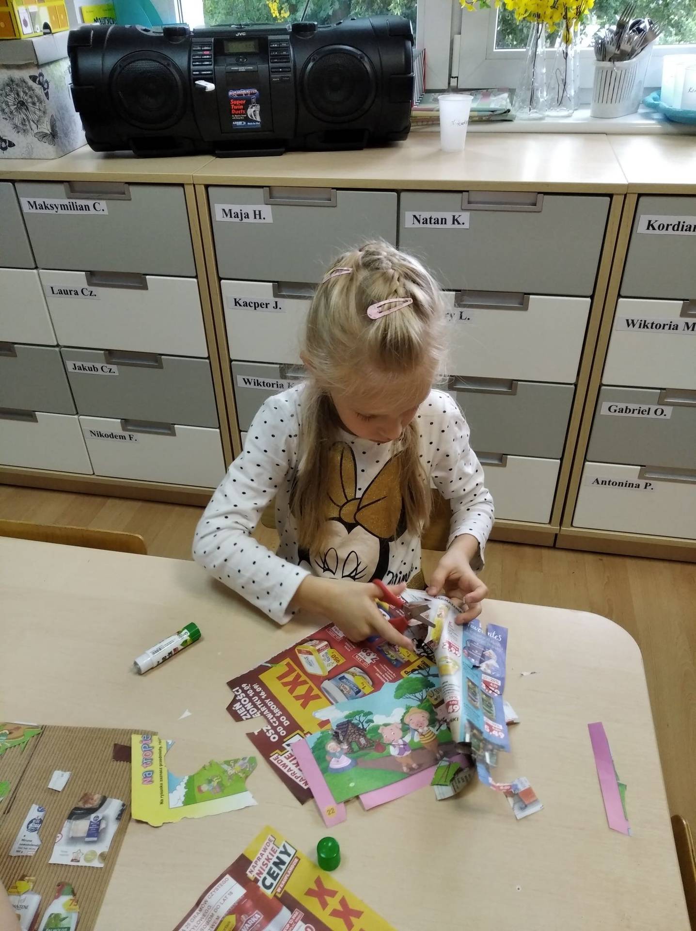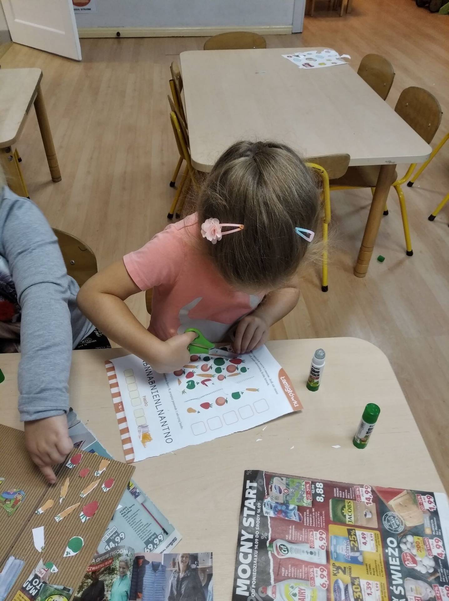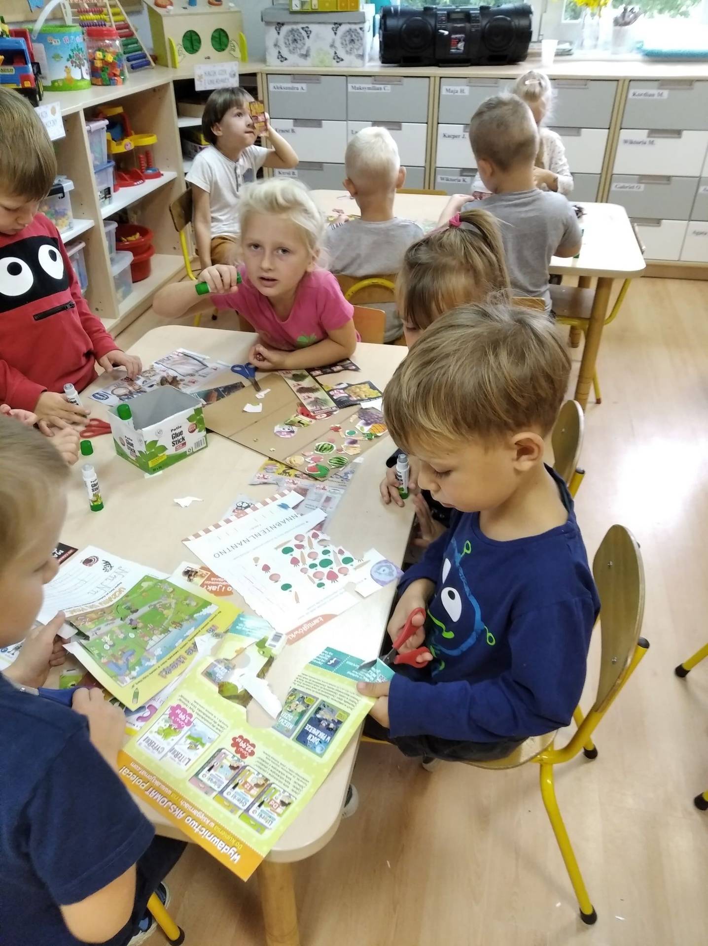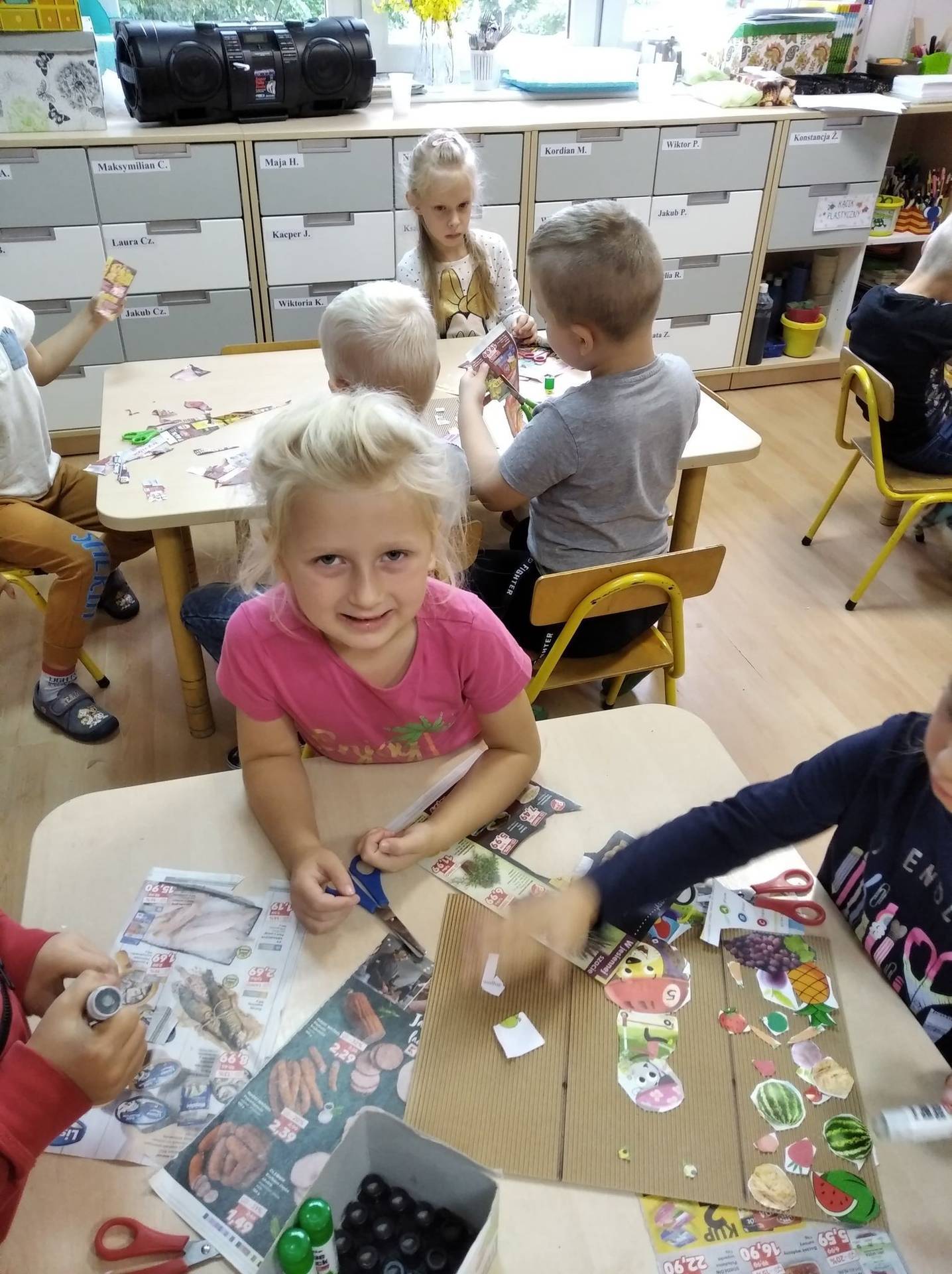 „Co jest zdrowe, co jest złe każdy doskonale wie”. Przedszkolaki dowiedziały się jak zdrowo się odżywiać, co należy często jeść, a czego unikać. Zapoznały się też z pojęciem „piramida zdrowia” – jak wygląda i co zawiera. W trakcie zabaw nasze przedszkolaki utrwalały zdobyte wiadomości. Wycinały obrazki z produktami spożywczymi, dzieliły je na zdrowe i niezdrowe, umieszczały we właściwych miejscach tworząc własną piramidę zdrowego żywienia.