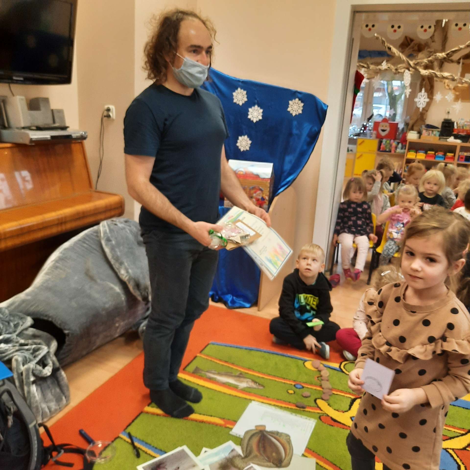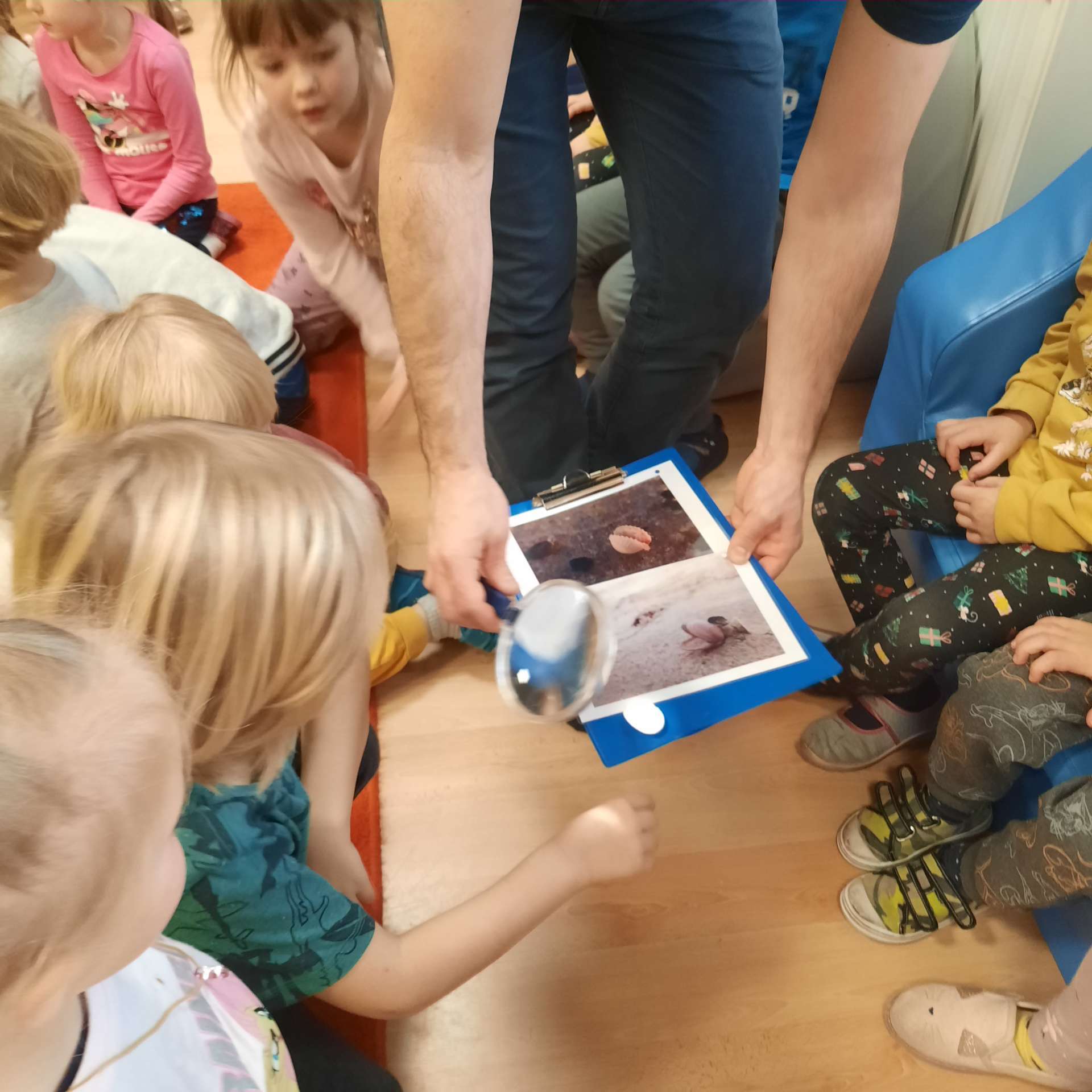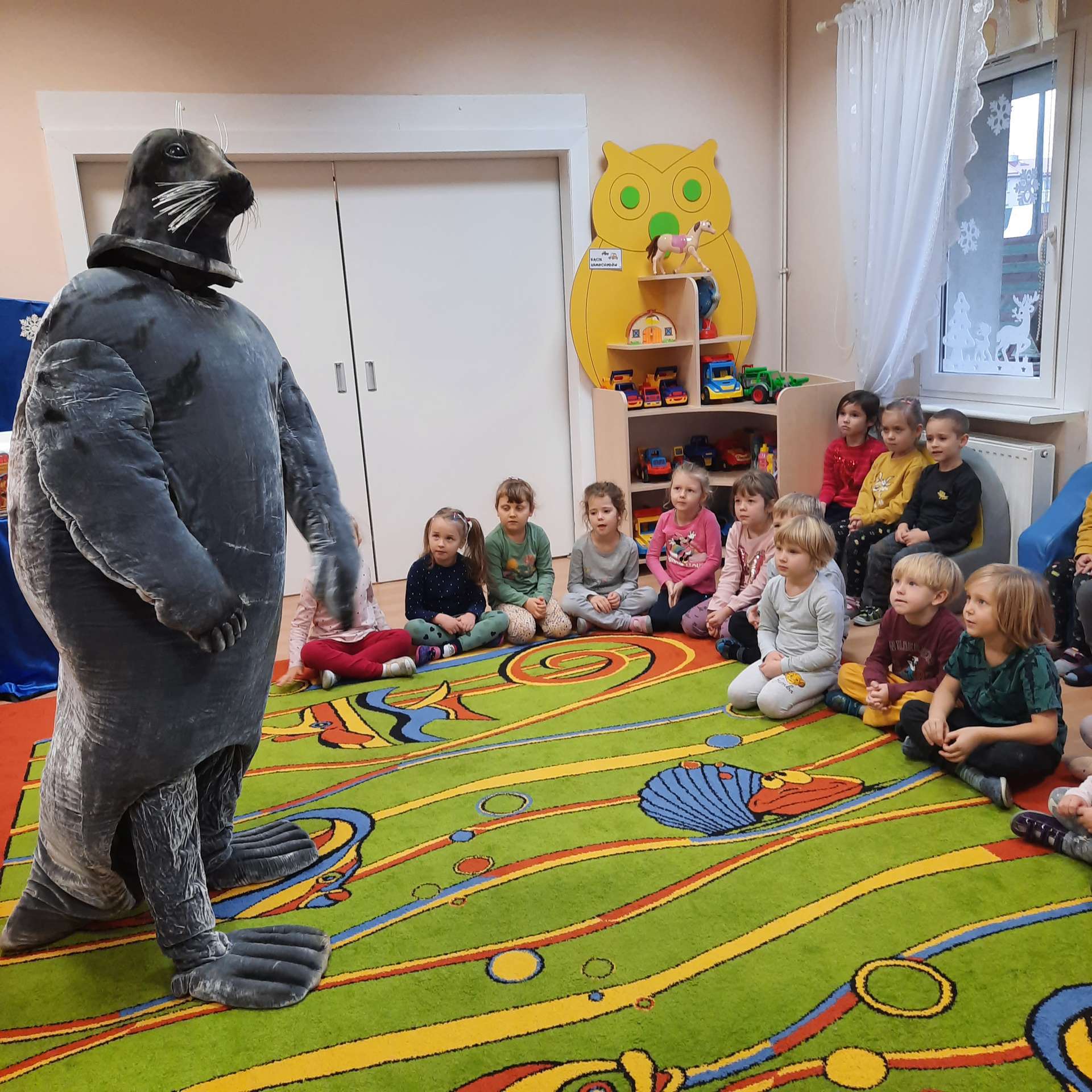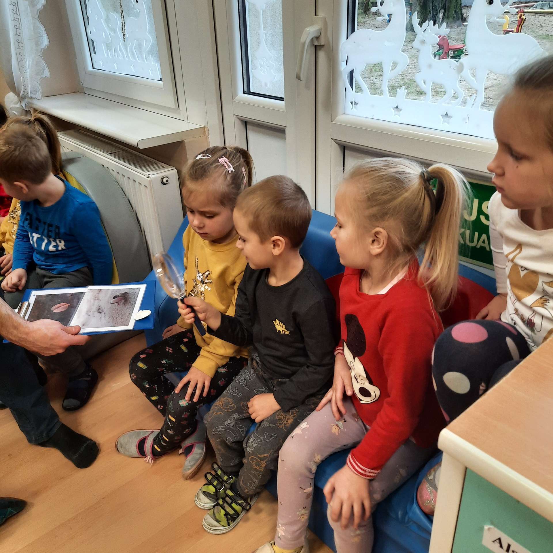 Zajęcia rozpoczęły się od przywitania z niesamowitym gościem - foką. Podczas zajęć dzieci dowiedziały się wielu ciekawostek o zwierzętach morskich, rybach, roślinności i wydmach. Podczas zajęć wykorzystano wierszyki i rymowanki związane z naszym Morzem Bałtyckim. Dzięki nim dzieci szybko przyswoiły nowe wiadomości.