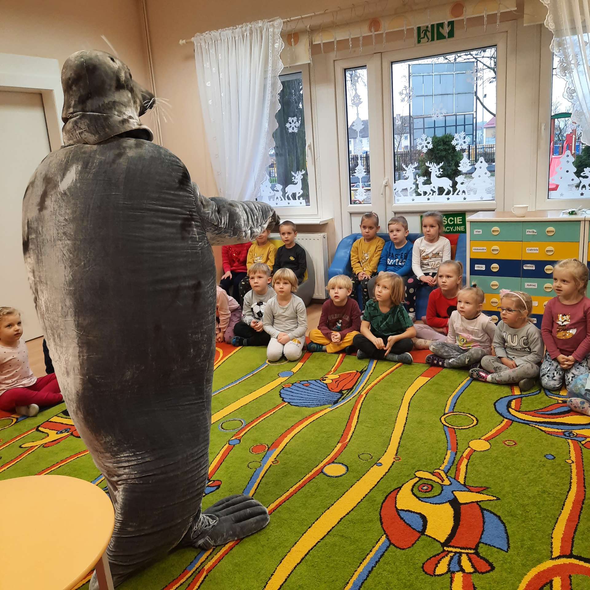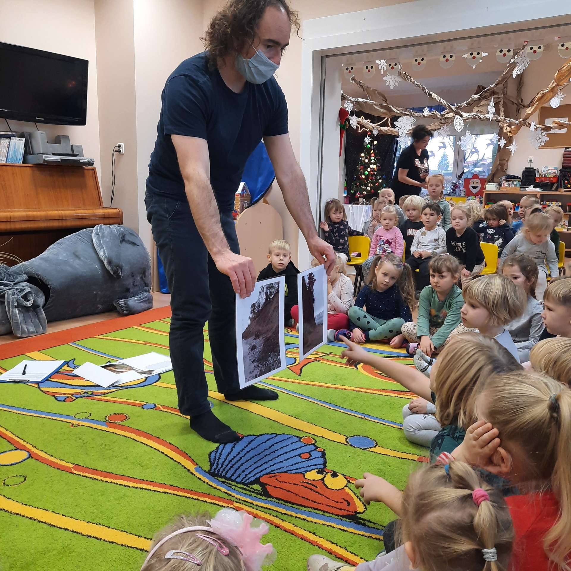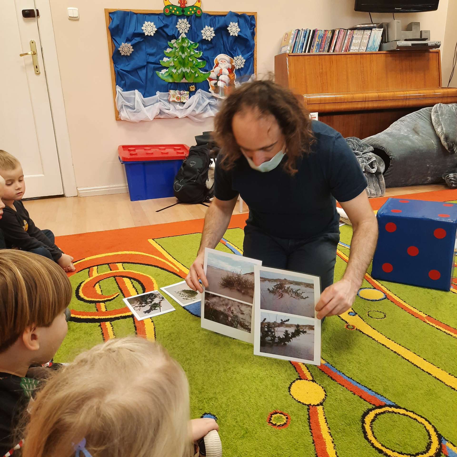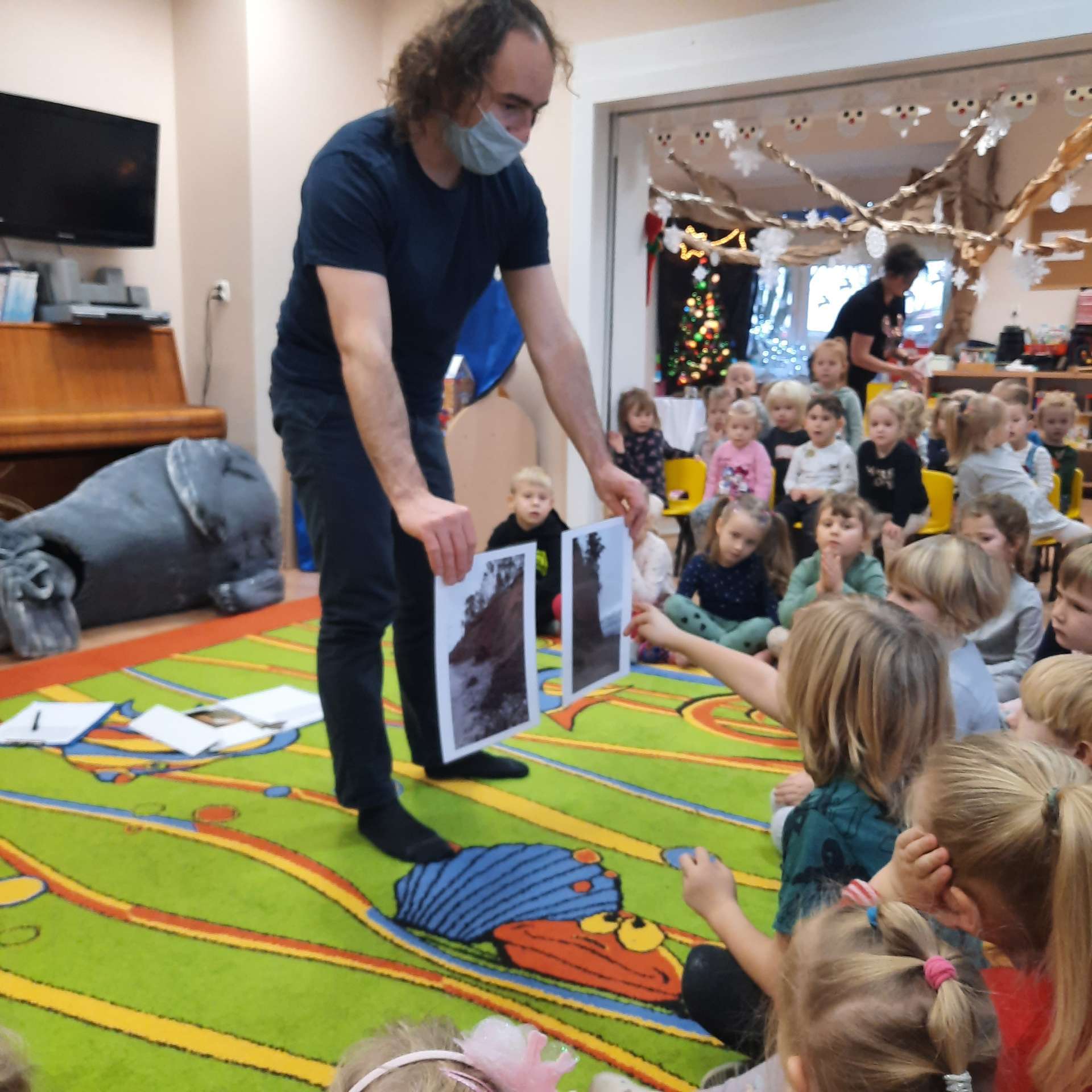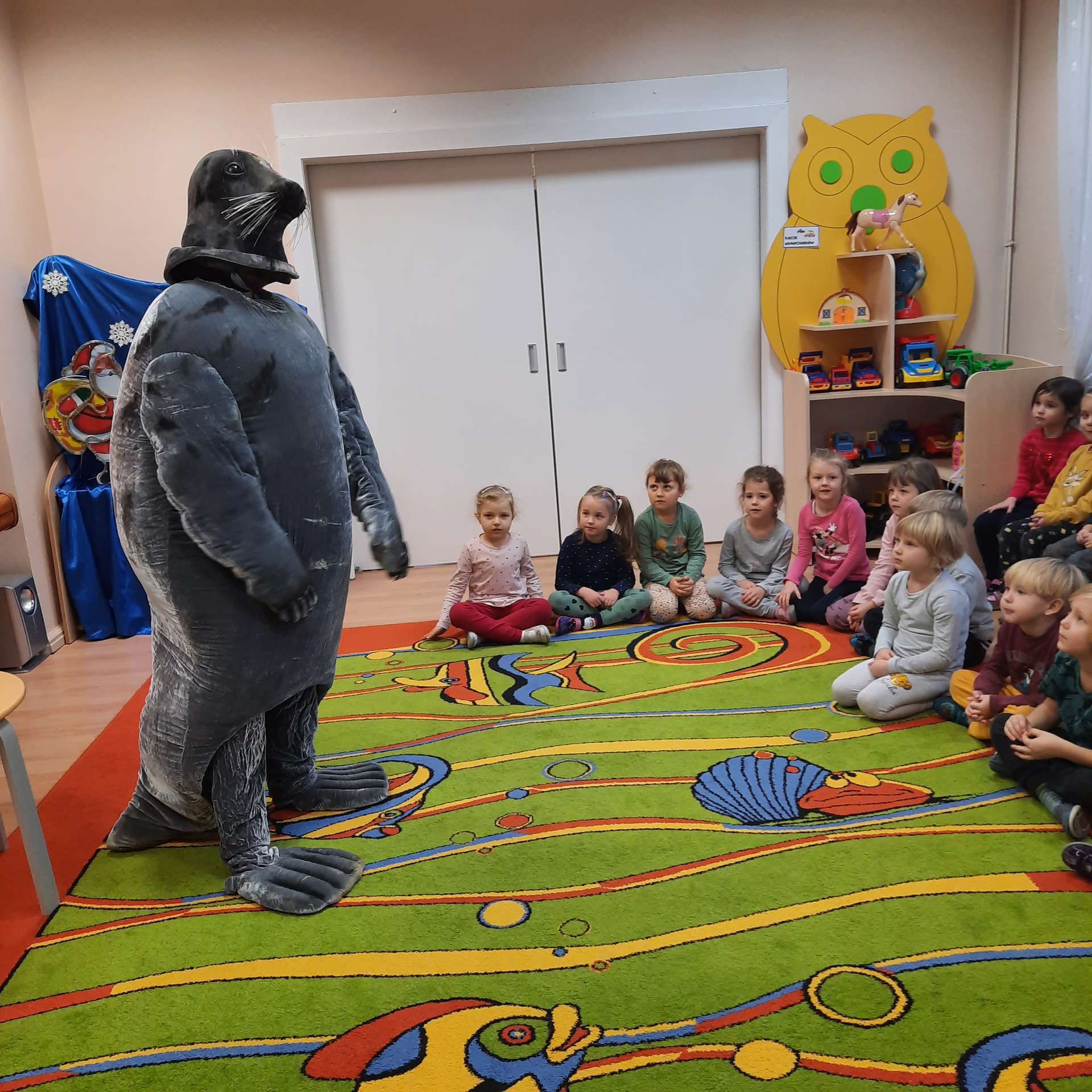 Zajęcia rozpoczęły się od przywitania z niesamowitym gościem - foką. Podczas zajęć dzieci dowiedziały się wielu ciekawostek o zwierzętach morskich, rybach, roślinności i wydmach. Podczas zajęć wykorzystano wierszyki i rymowanki związane z naszym Morzem Bałtyckim. Dzięki nim dzieci szybko przyswoiły nowe wiadomości.