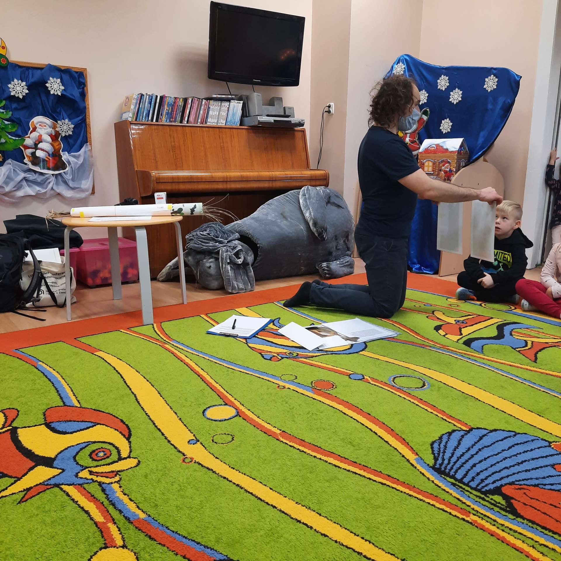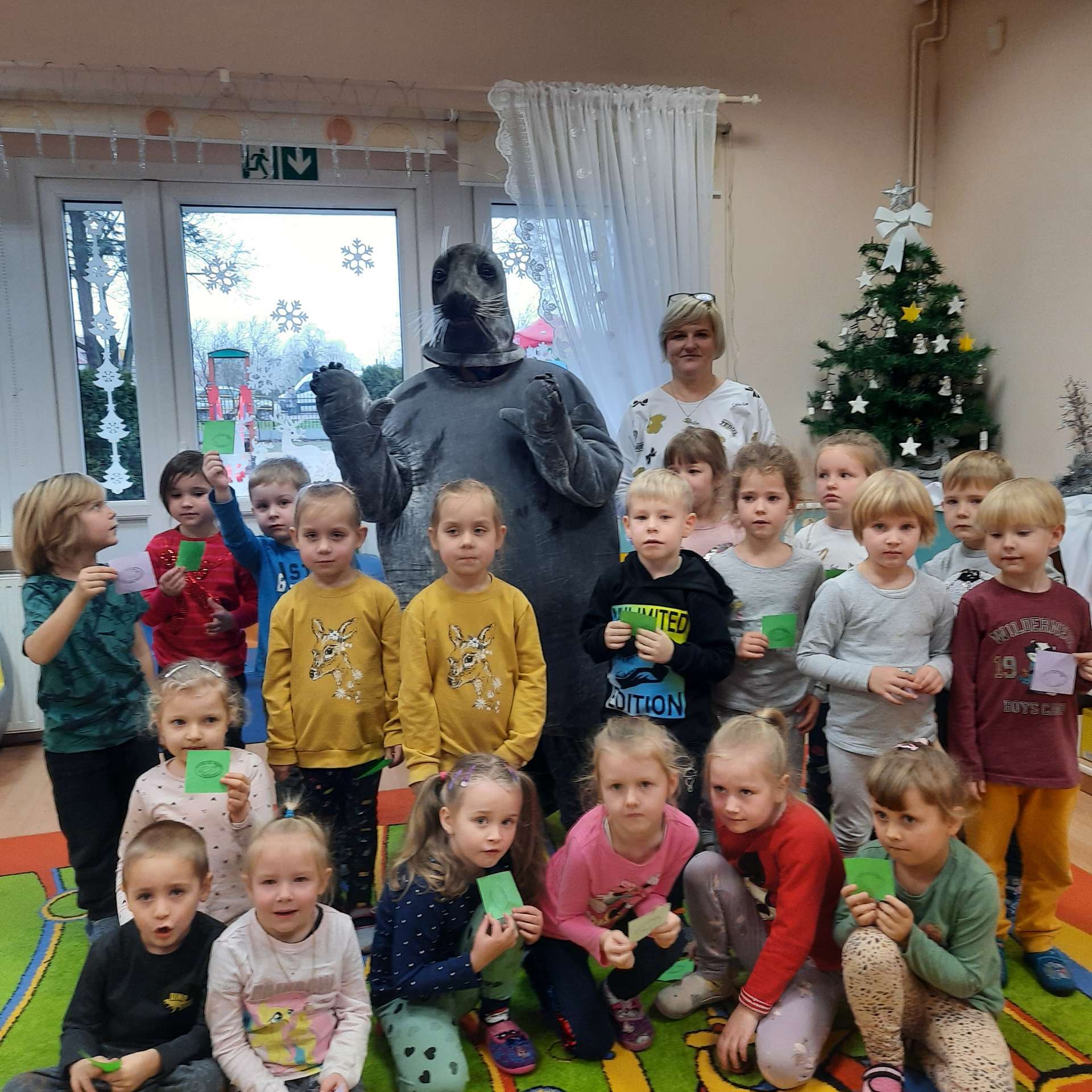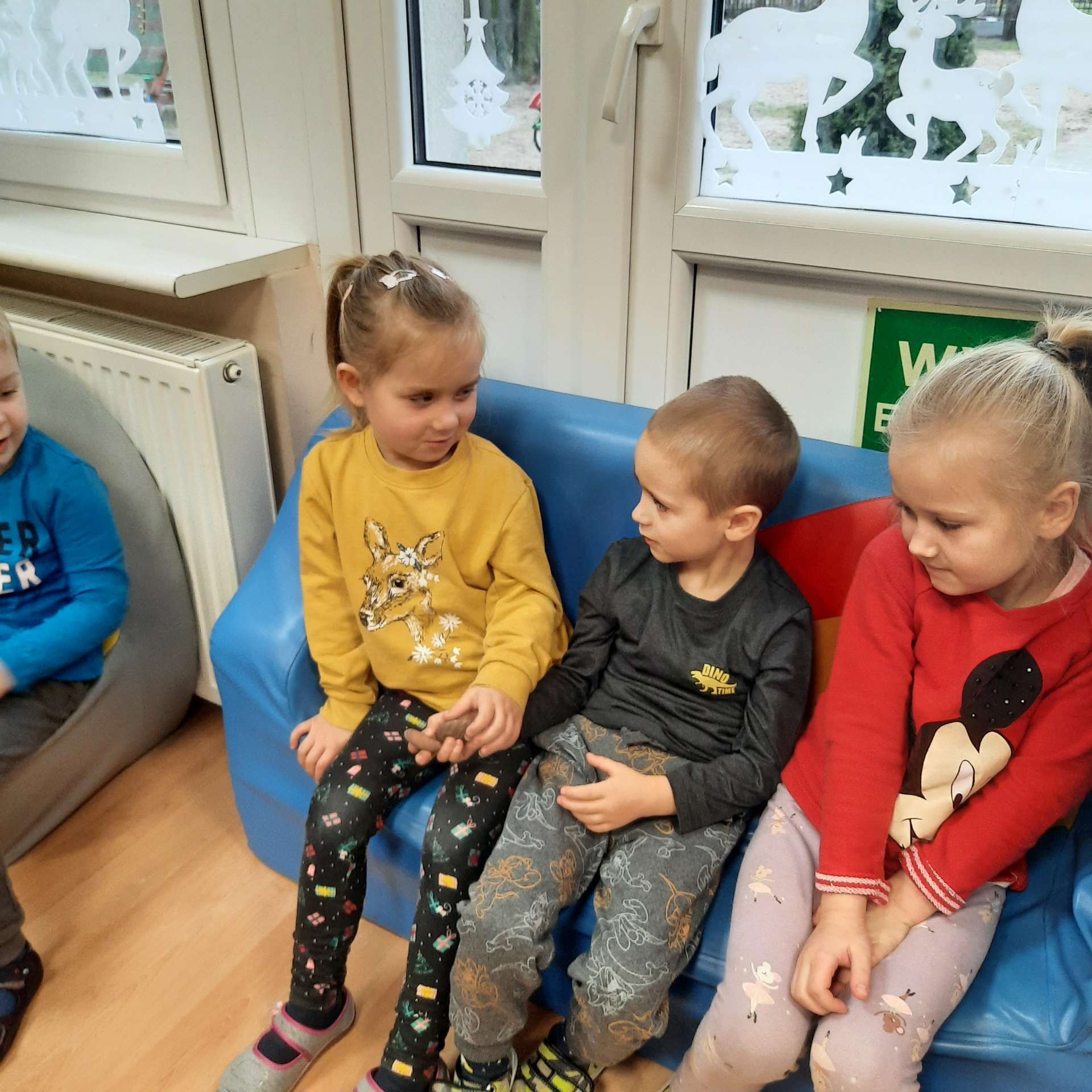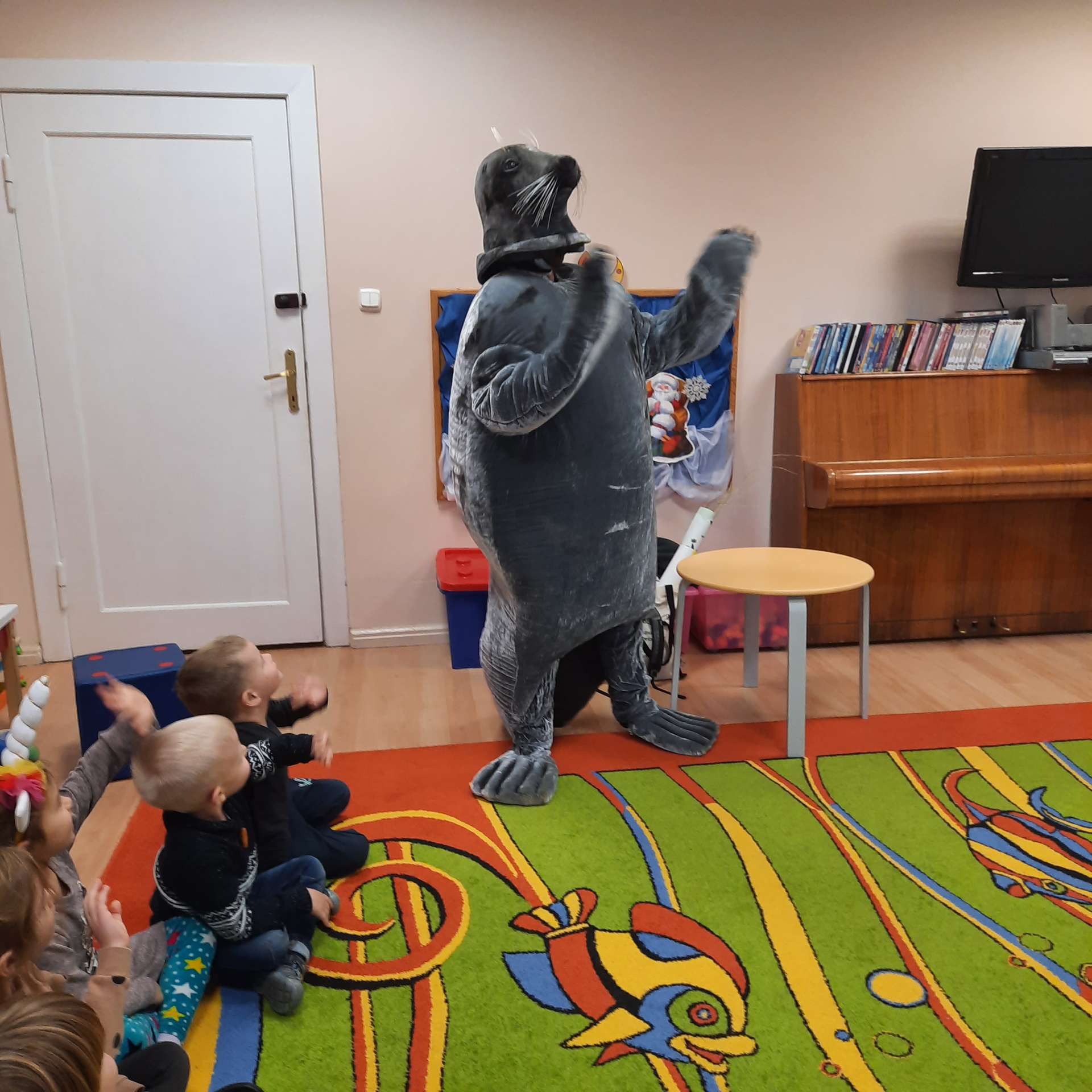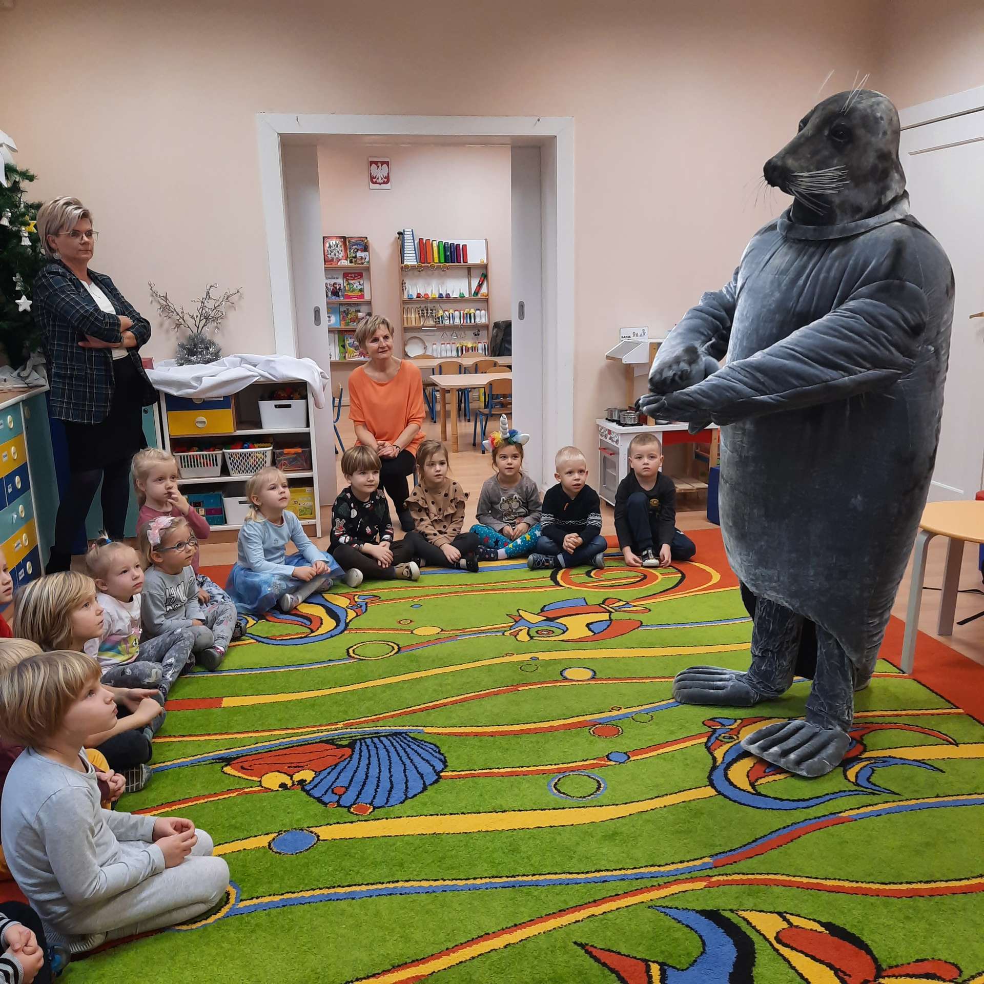 Zajęcia rozpoczęły się od przywitania z niesamowitym gościem - foką. Podczas zajęć dzieci dowiedziały się wielu ciekawostek o zwierzętach morskich, rybach, roślinności i wydmach. Podczas zajęć wykorzystano wierszyki i rymowanki związane z naszym Morzem Bałtyckim. Dzięki nim dzieci szybko przyswoiły nowe wiadomości.