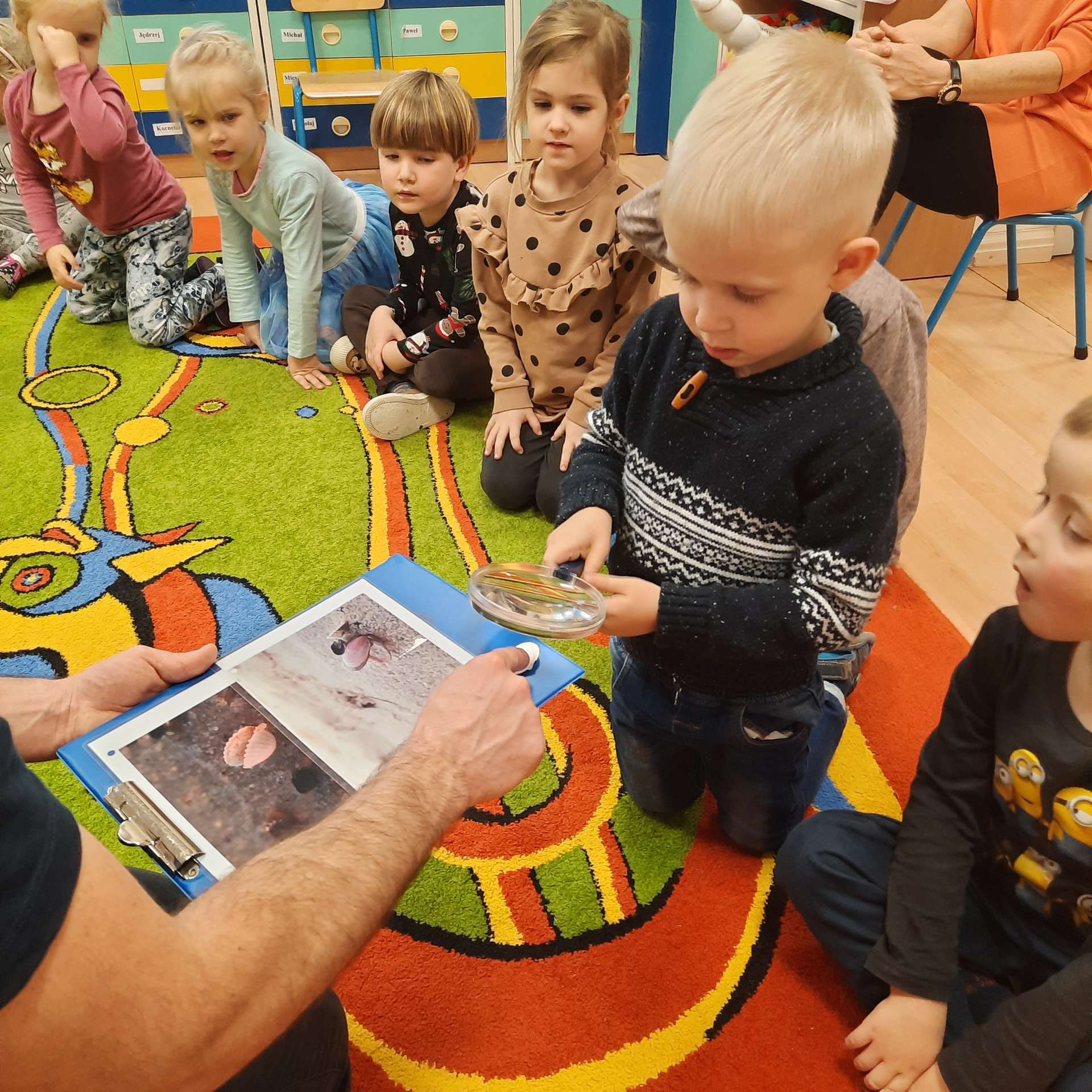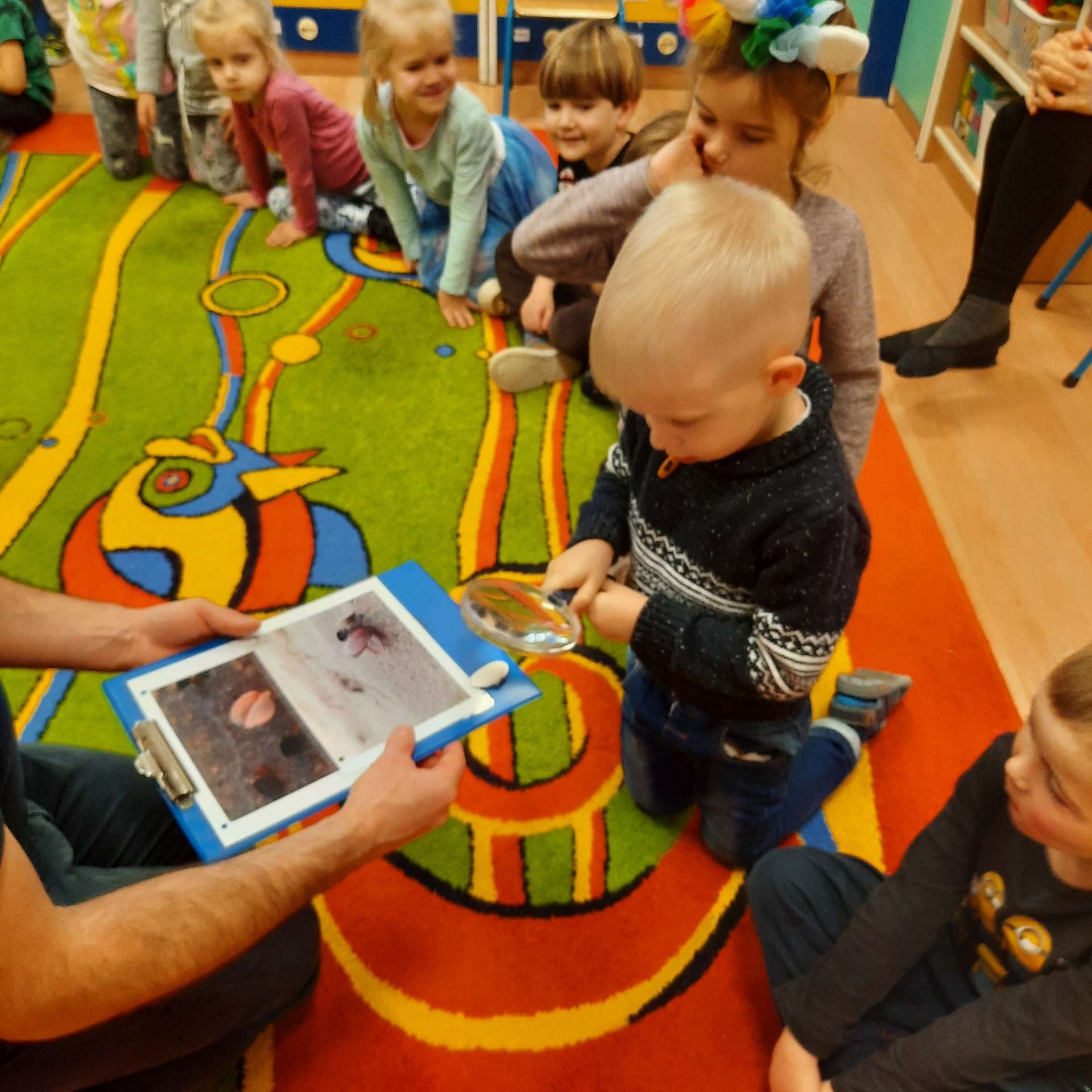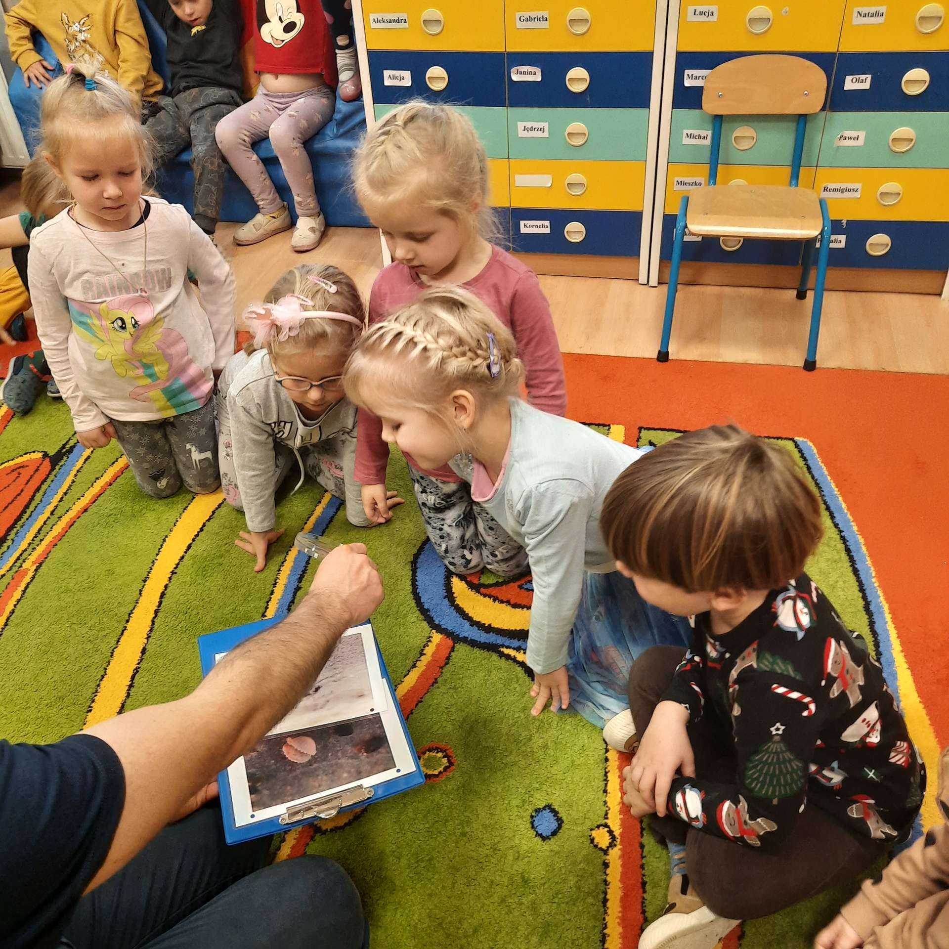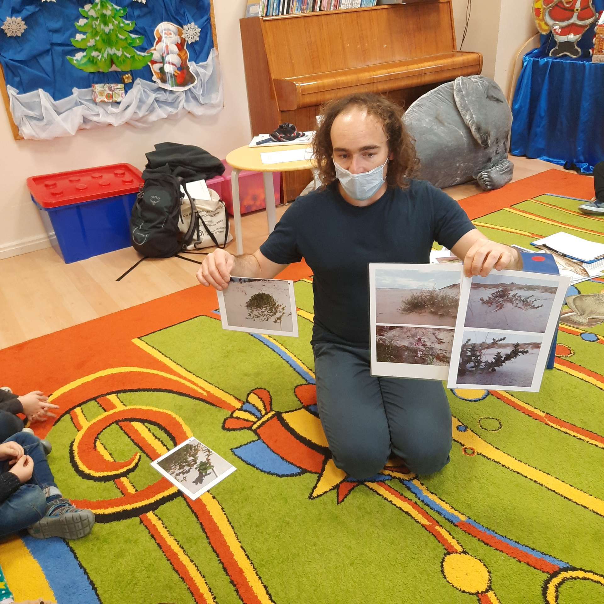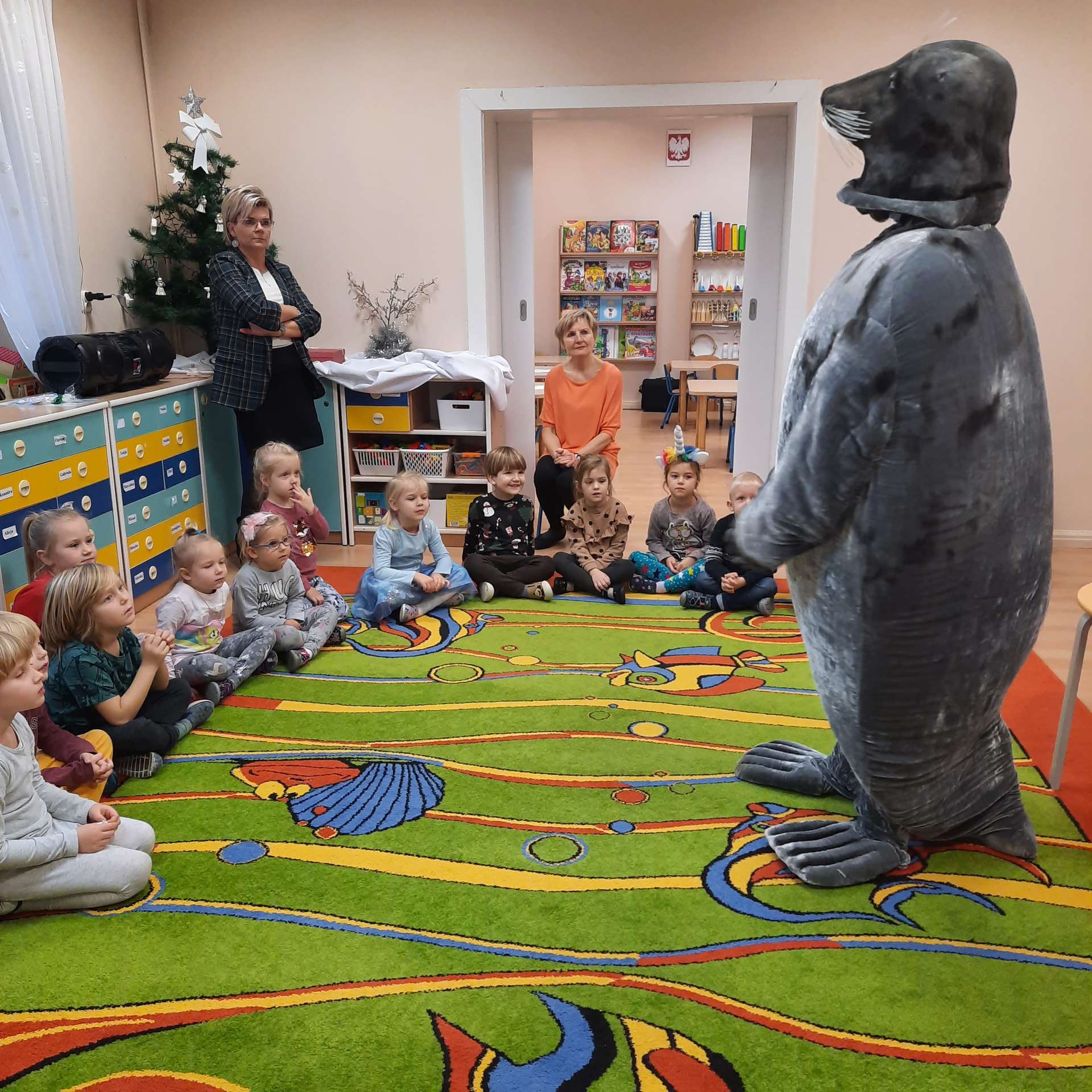 Zajęcia rozpoczęły się od przywitania z niesamowitym gościem - foką. Podczas zajęć dzieci dowiedziały się wielu ciekawostek o zwierzętach morskich, rybach, roślinności i wydmach. Podczas zajęć wykorzystano wierszyki i rymowanki związane z naszym Morzem Bałtyckim. Dzięki nim dzieci szybko przyswoiły nowe wiadomości.