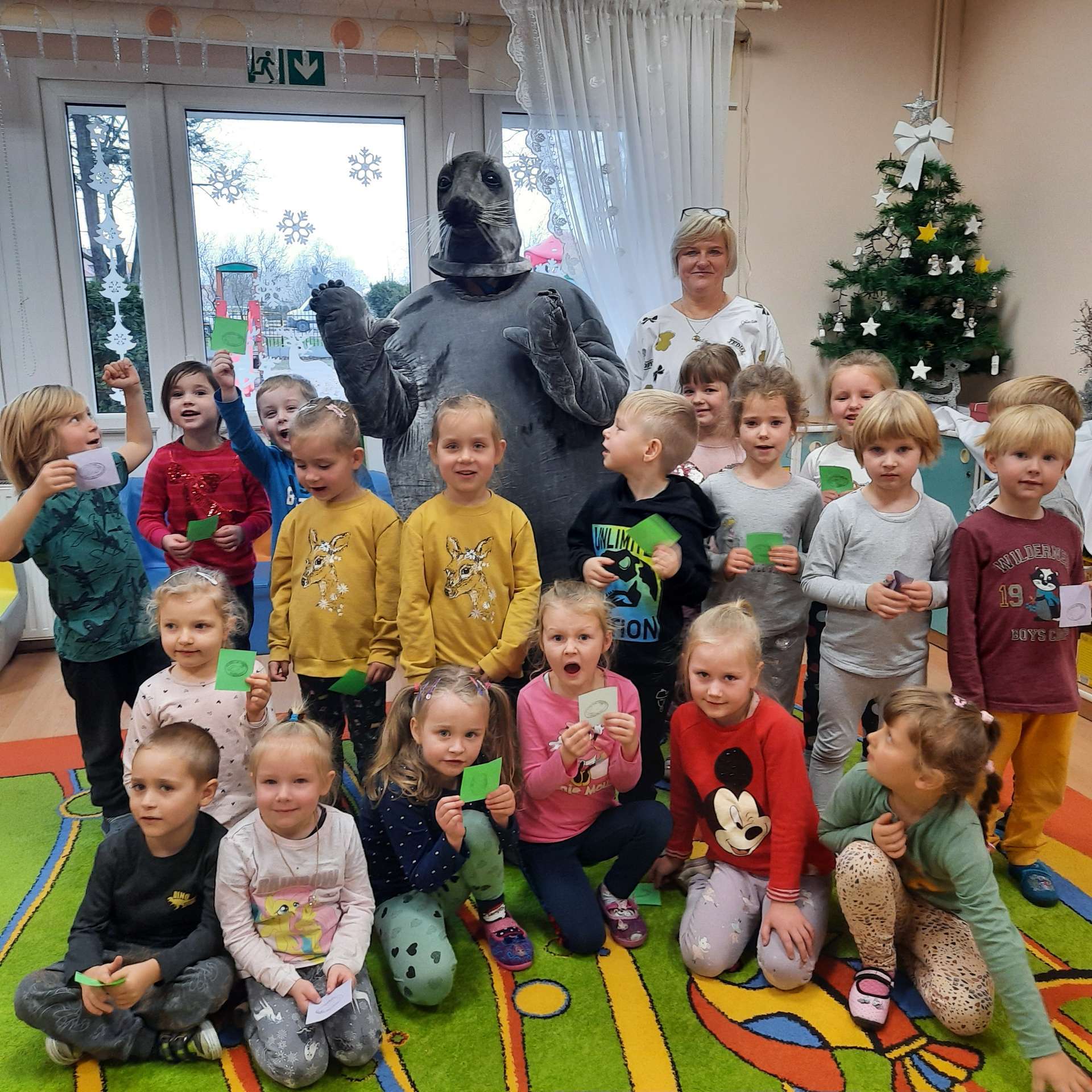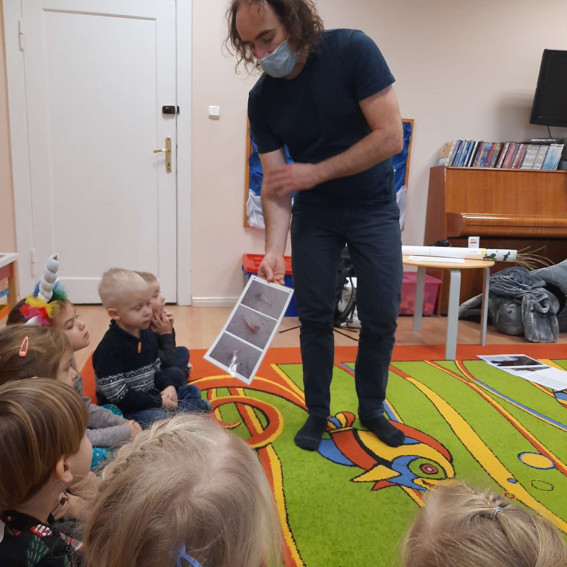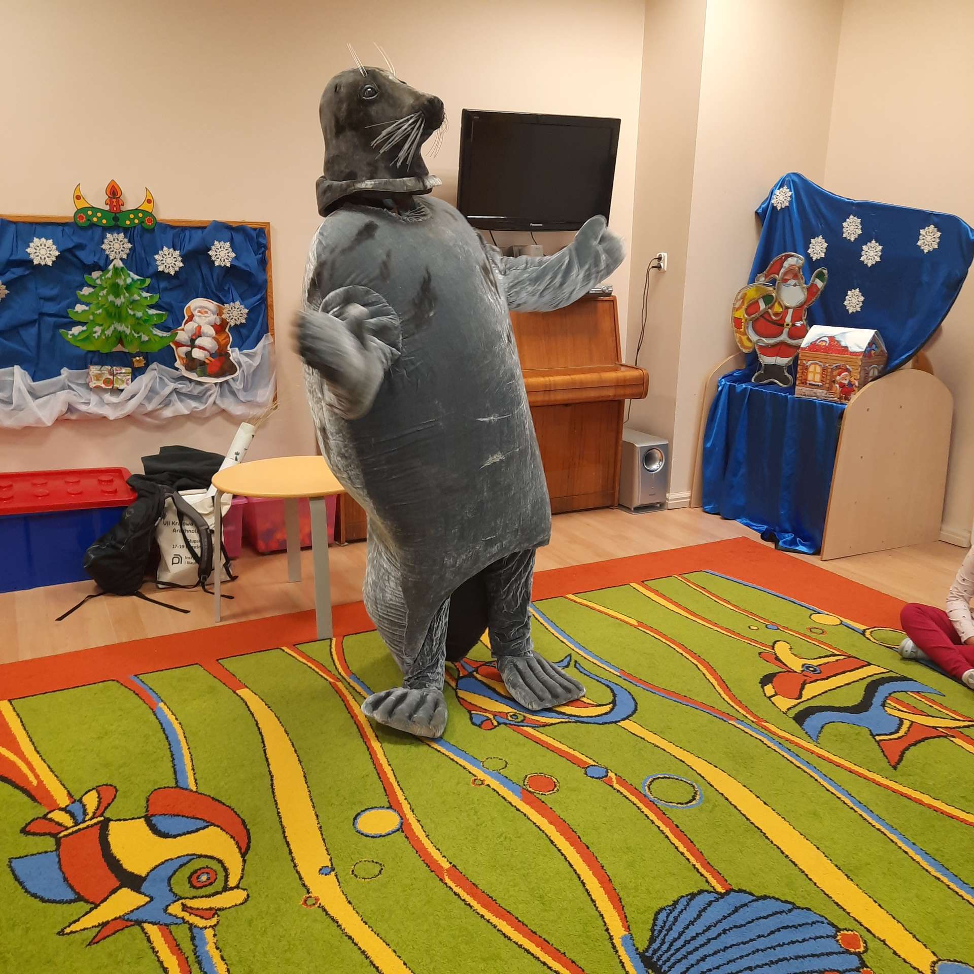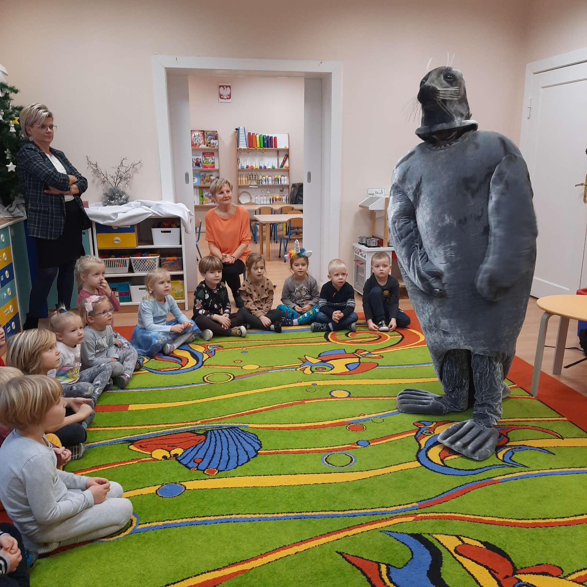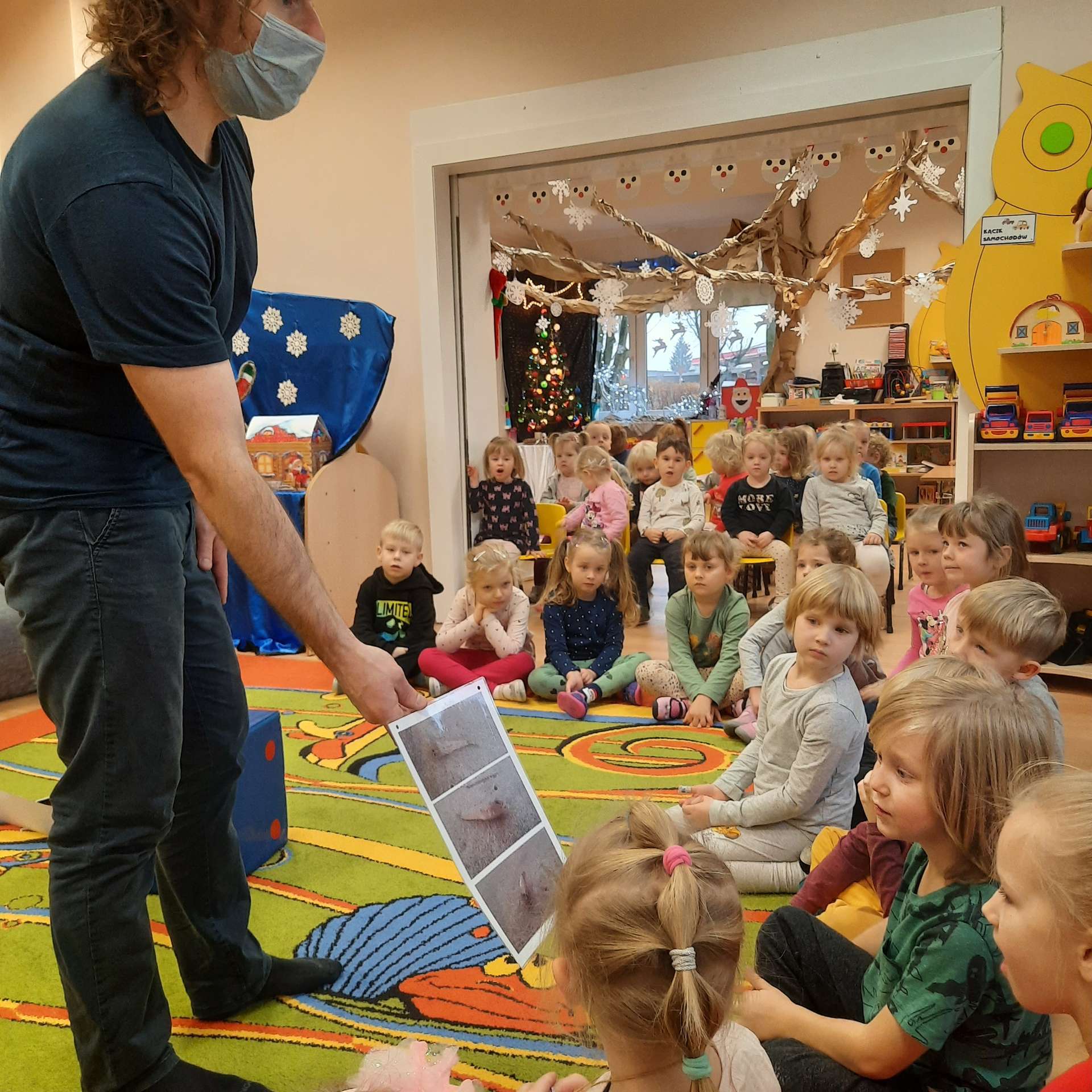 Zajęcia rozpoczęły się od przywitania z niesamowitym gościem - foką. Podczas zajęć dzieci dowiedziały się wielu ciekawostek o zwierzętach morskich, rybach, roślinności i wydmach. Podczas zajęć wykorzystano wierszyki i rymowanki związane z naszym Morzem Bałtyckim. Dzięki nim dzieci szybko przyswoiły nowe wiadomości.