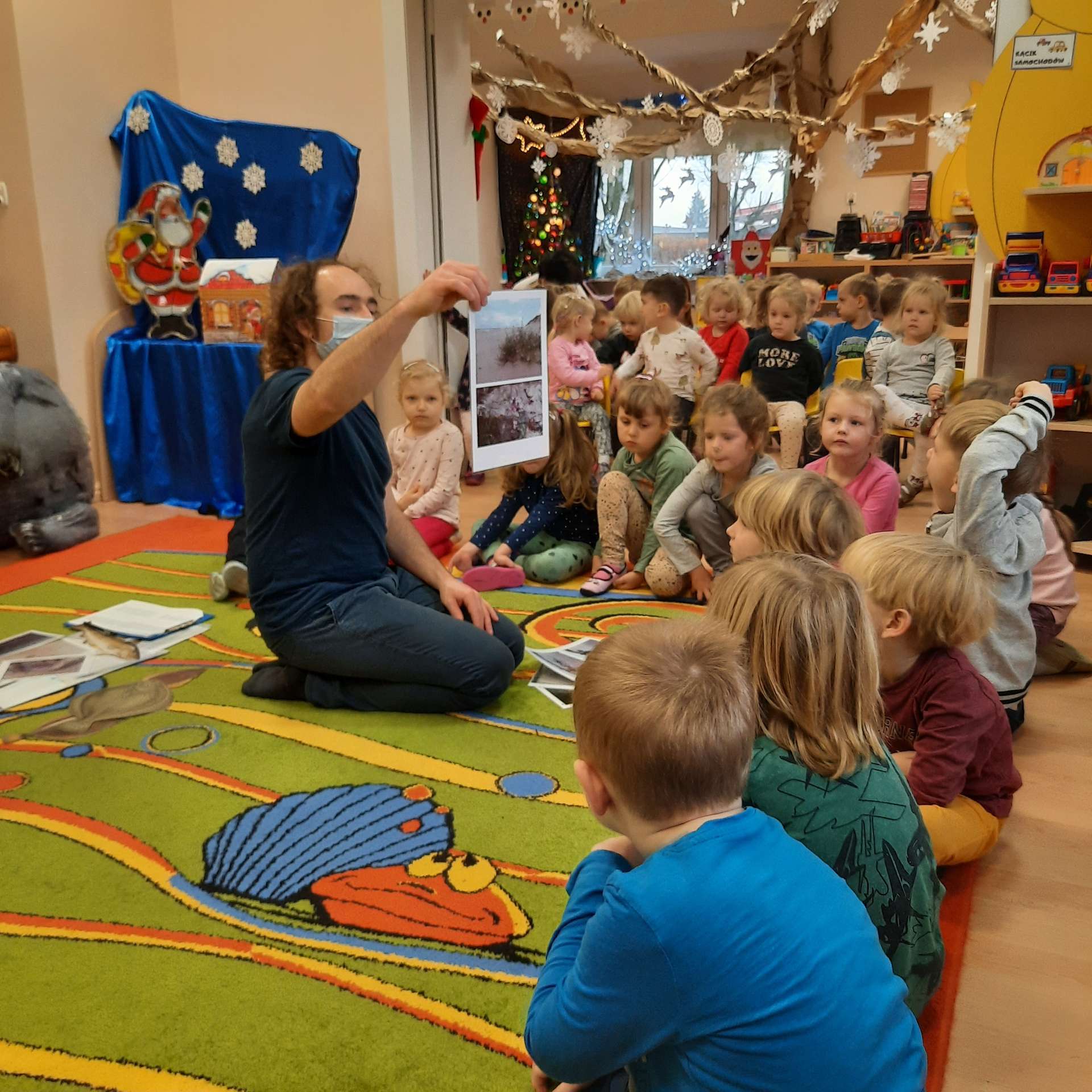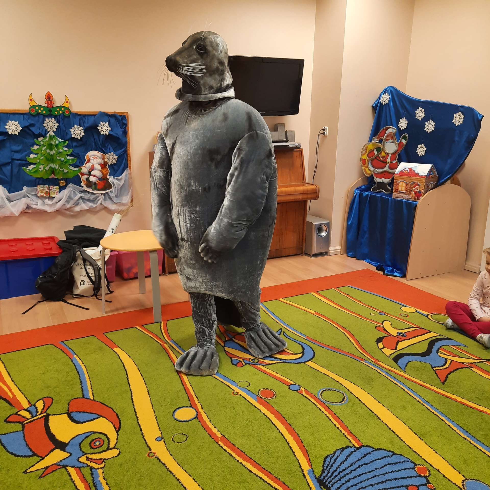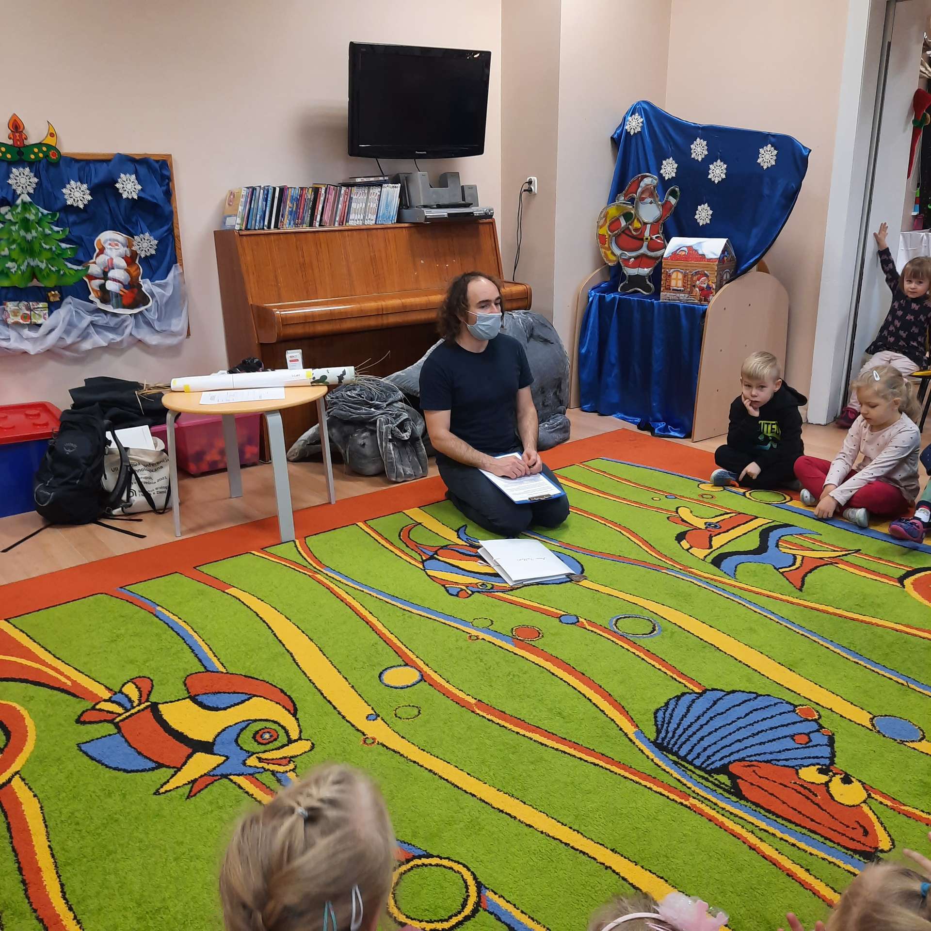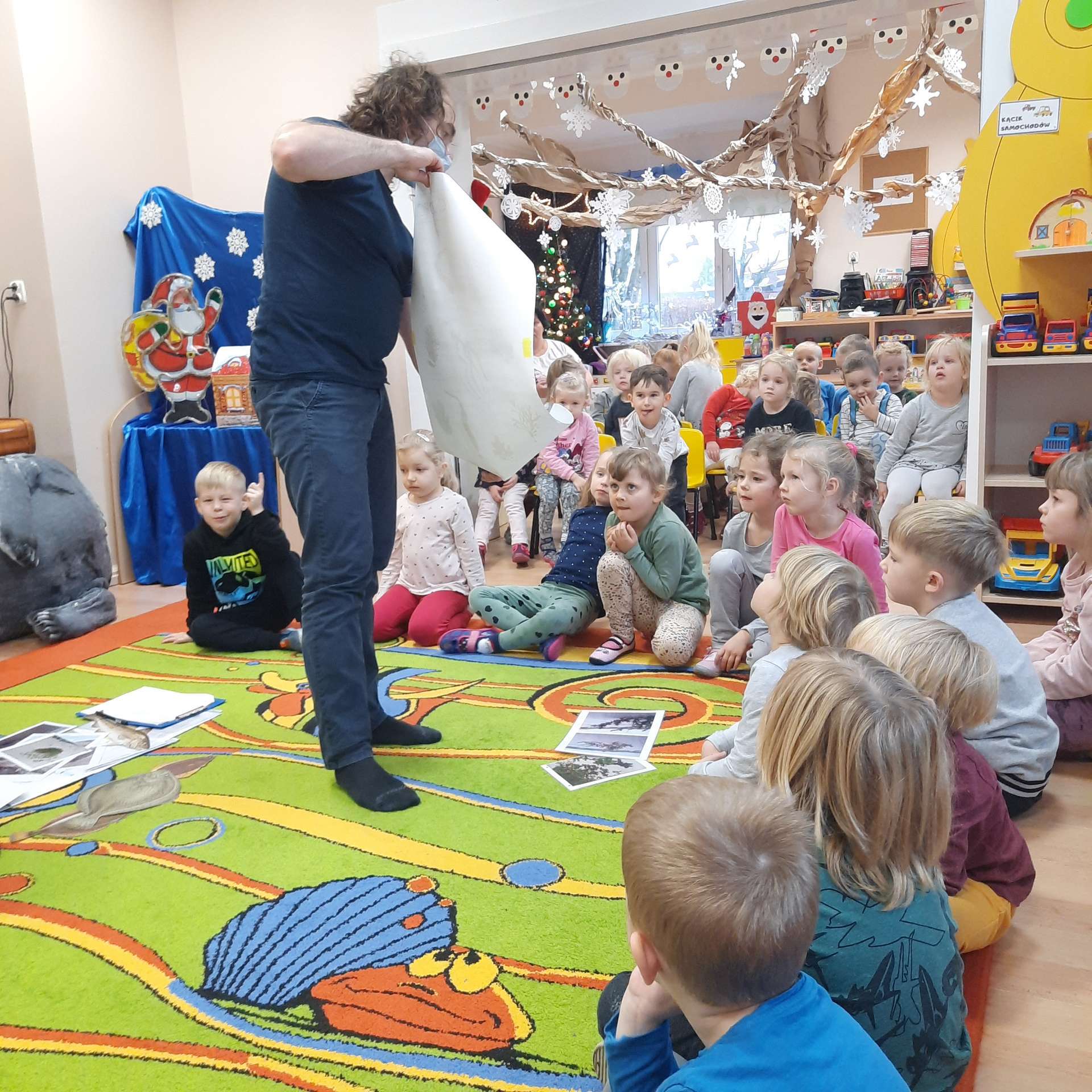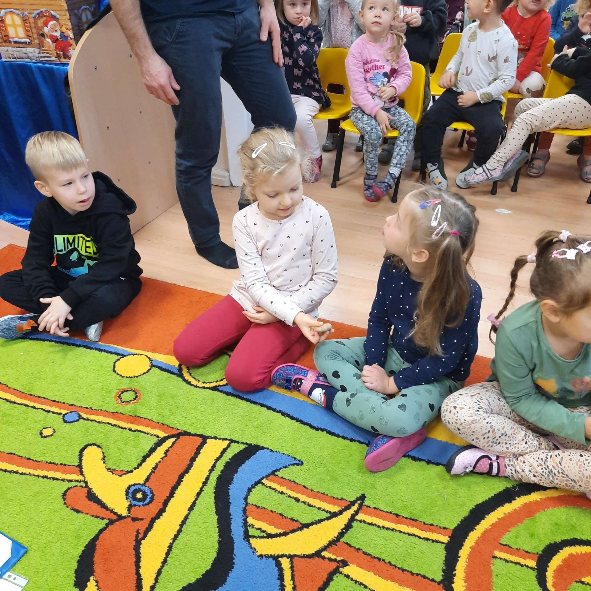 Zajęcia rozpoczęły się od przywitania z niesamowitym gościem - foką. Podczas zajęć dzieci dowiedziały się wielu ciekawostek o zwierzętach morskich, rybach, roślinności i wydmach. Podczas zajęć wykorzystano wierszyki i rymowanki związane z naszym Morzem Bałtyckim. Dzięki nim dzieci szybko przyswoiły nowe wiadomości.