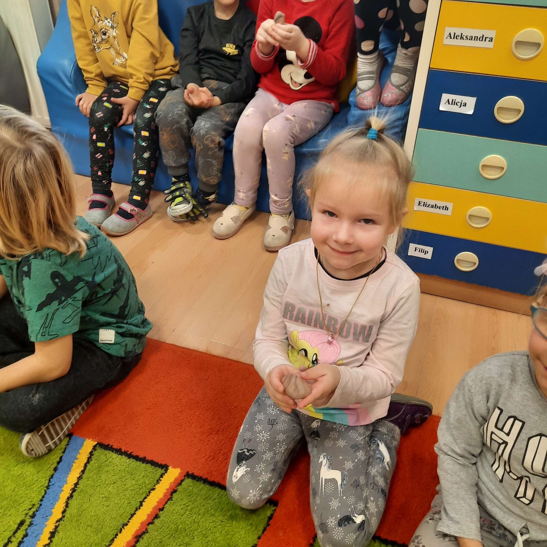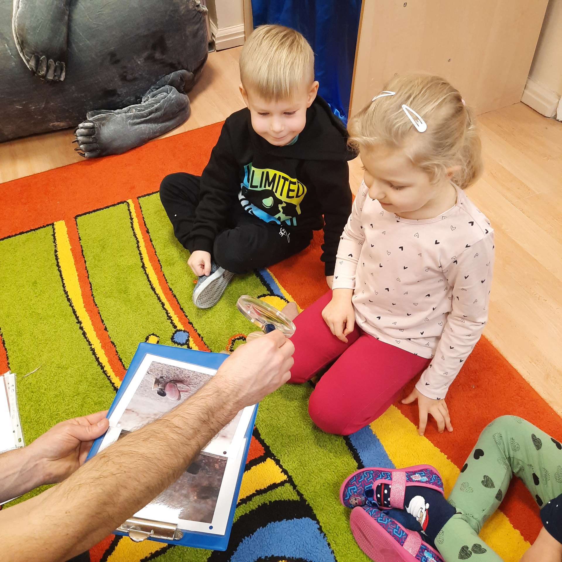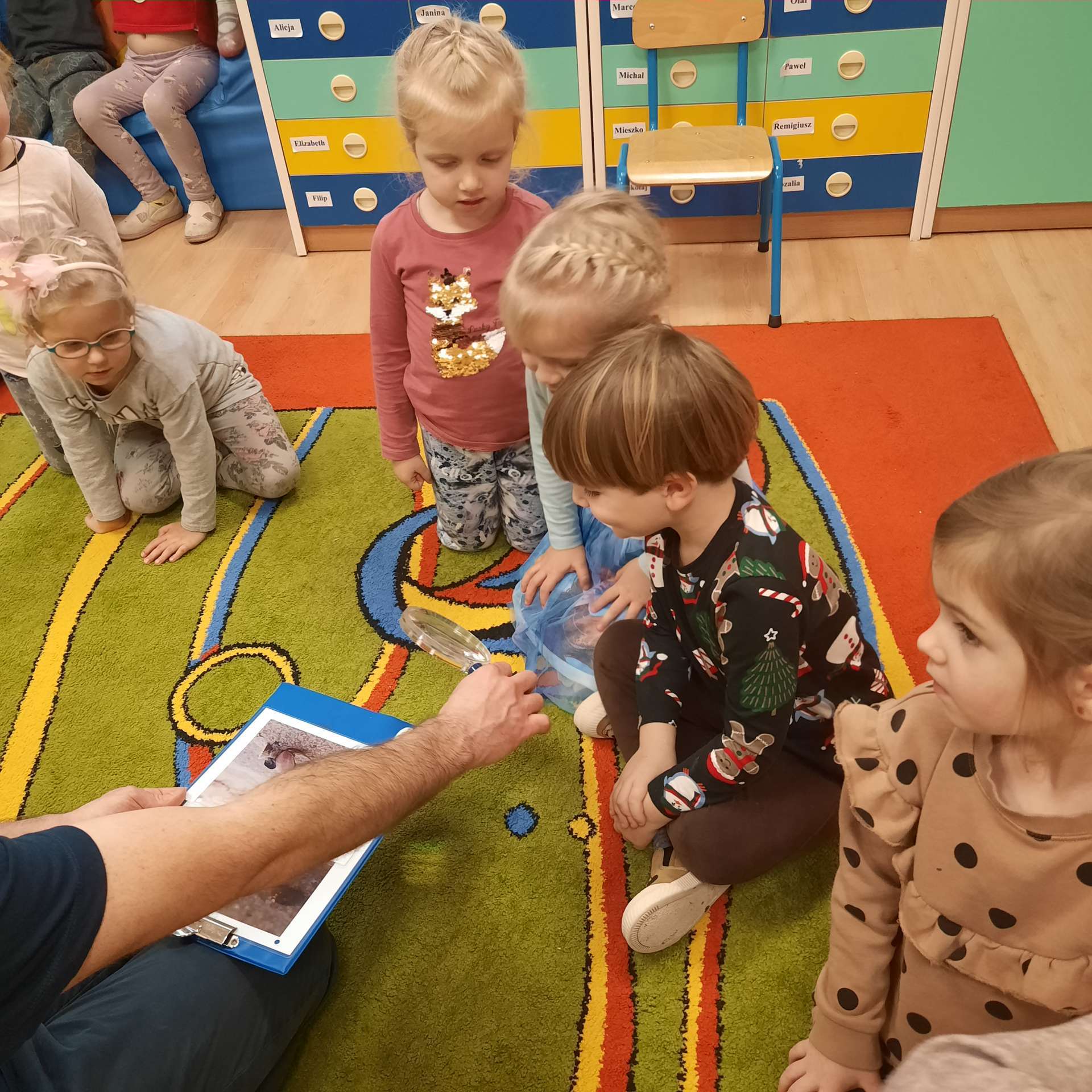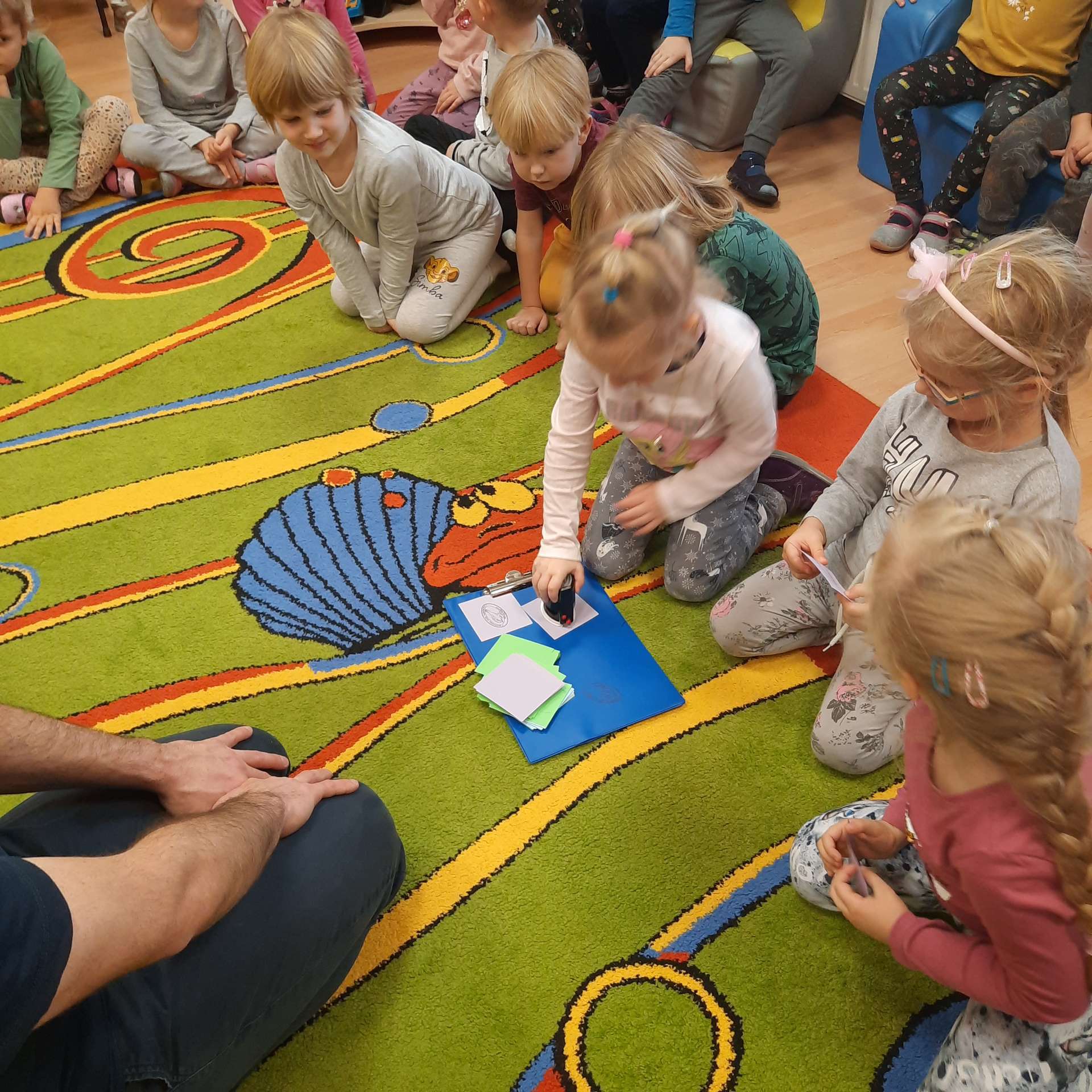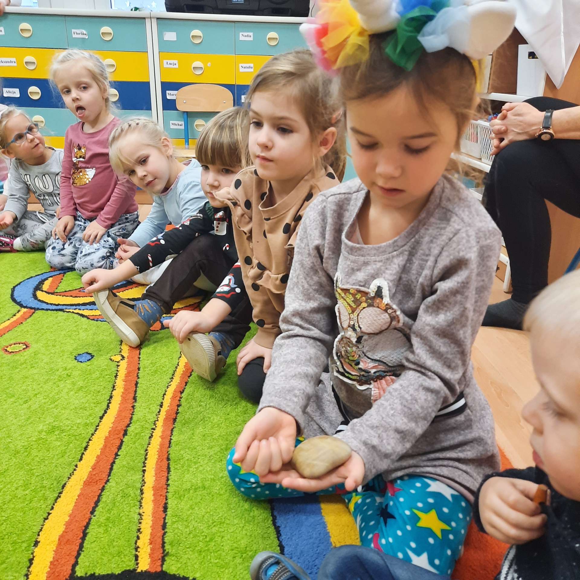 Zajęcia rozpoczęły się od przywitania z niesamowitym gościem - foką. Podczas zajęć dzieci dowiedziały się wielu ciekawostek o zwierzętach morskich, rybach, roślinności i wydmach. Podczas zajęć wykorzystano wierszyki i rymowanki związane z naszym Morzem Bałtyckim. Dzięki nim dzieci szybko przyswoiły nowe wiadomości.