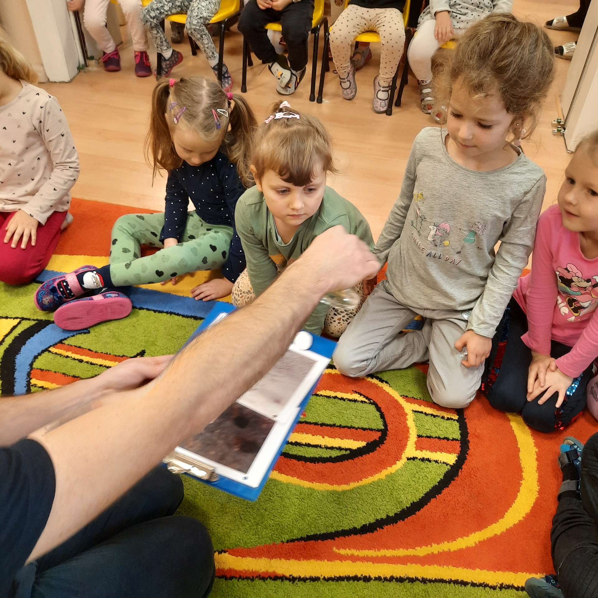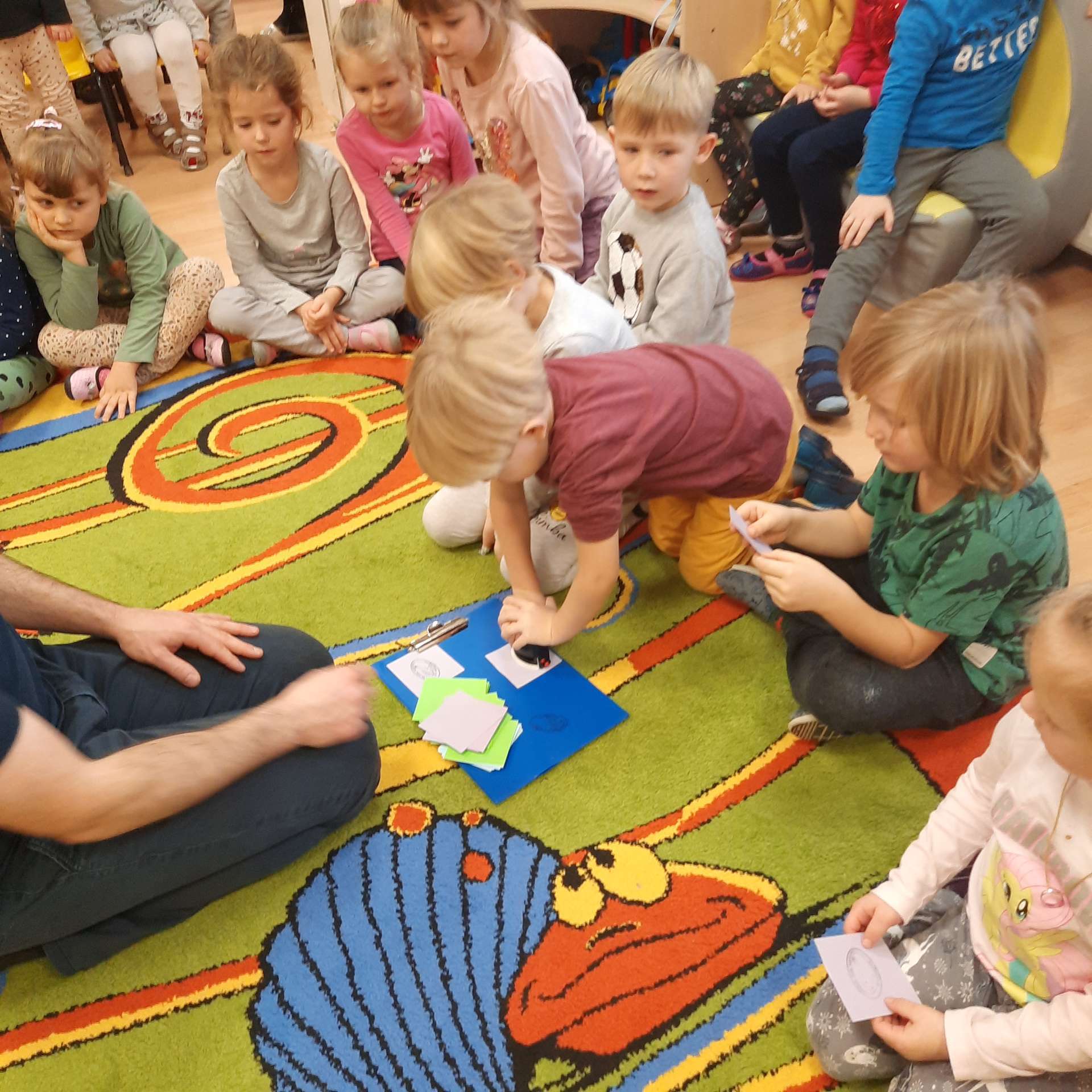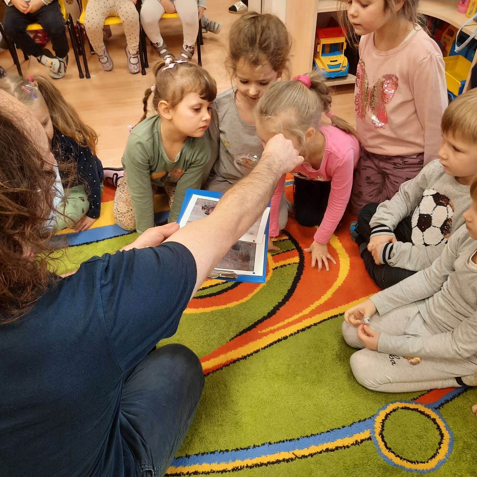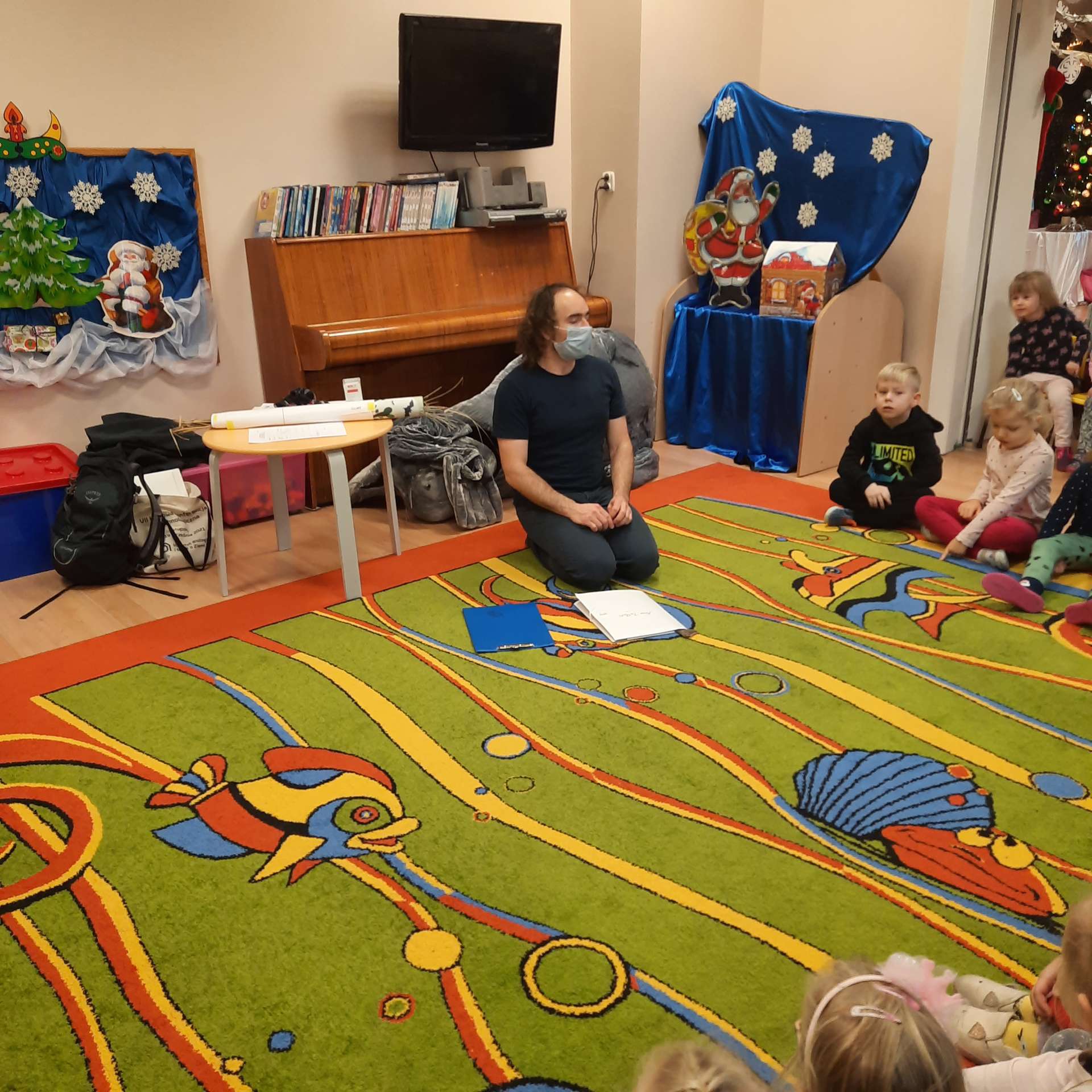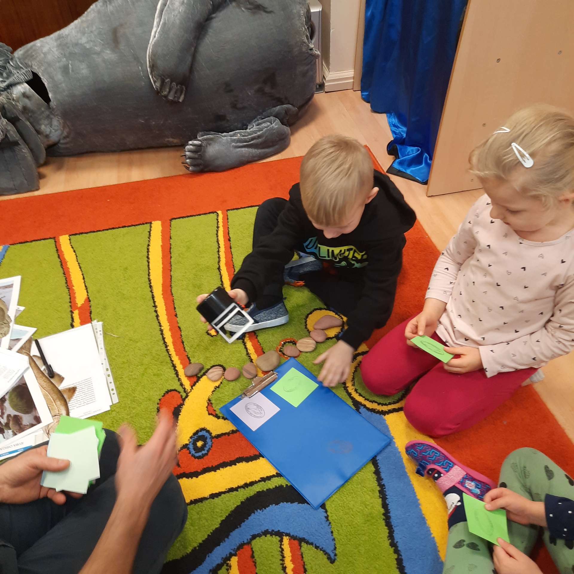 Zajęcia rozpoczęły się od przywitania z niesamowitym gościem - foką. Podczas zajęć dzieci dowiedziały się wielu ciekawostek o zwierzętach morskich, rybach, roślinności i wydmach. Podczas zajęć wykorzystano wierszyki i rymowanki związane z naszym Morzem Bałtyckim. Dzięki nim dzieci szybko przyswoiły nowe wiadomości.