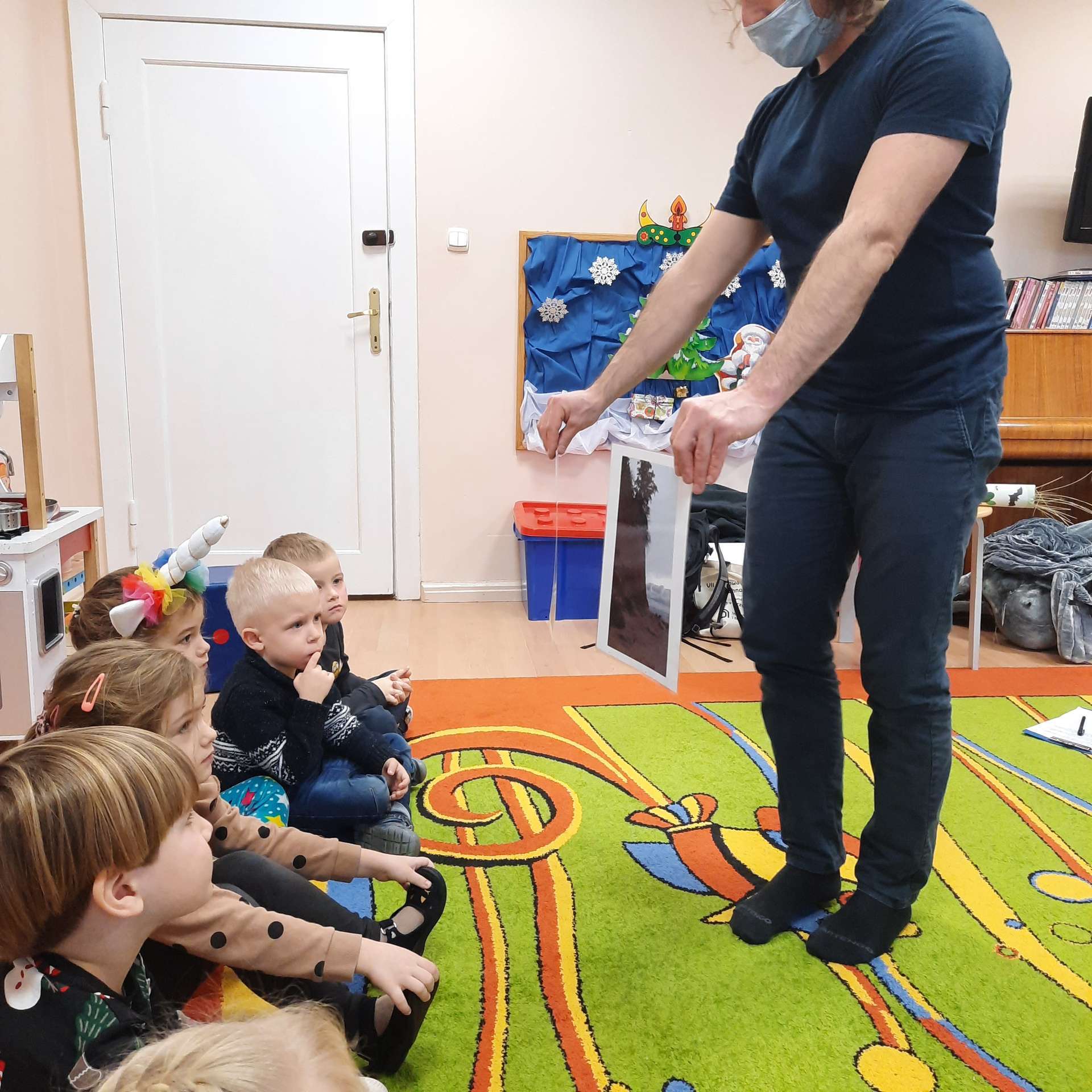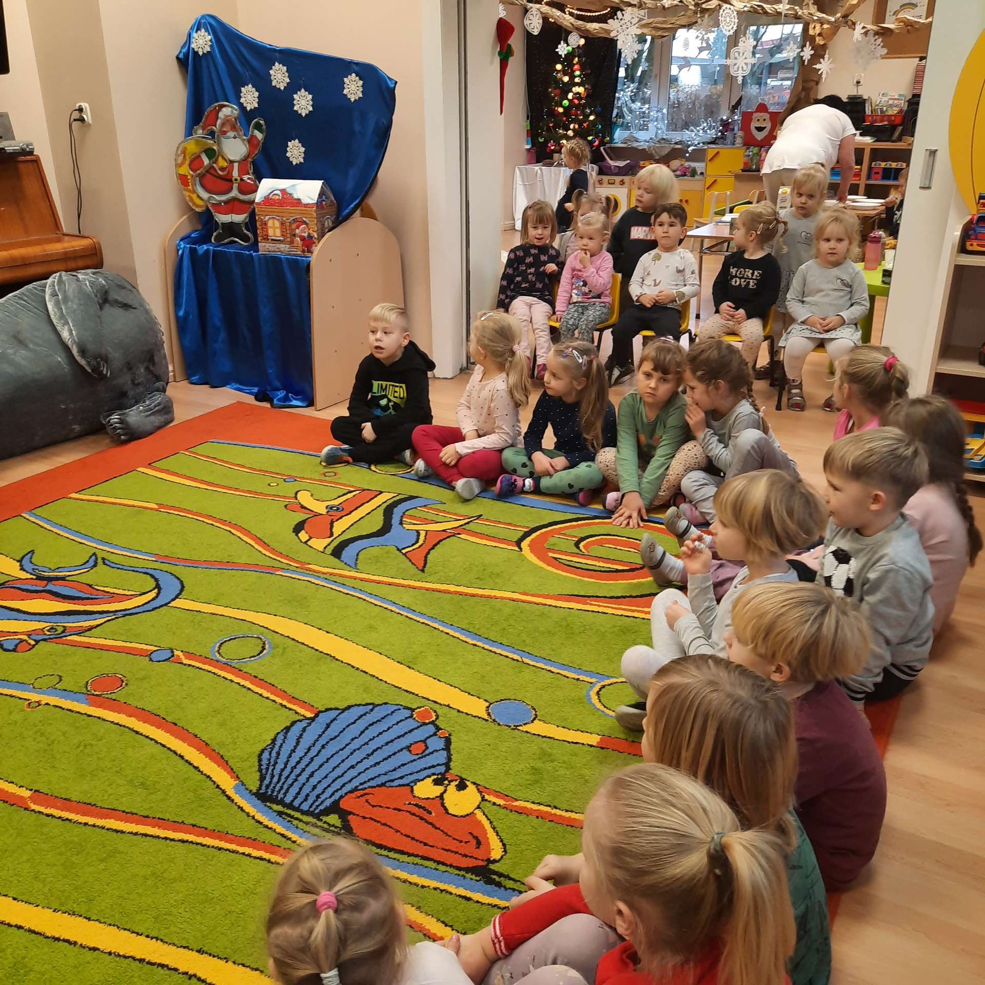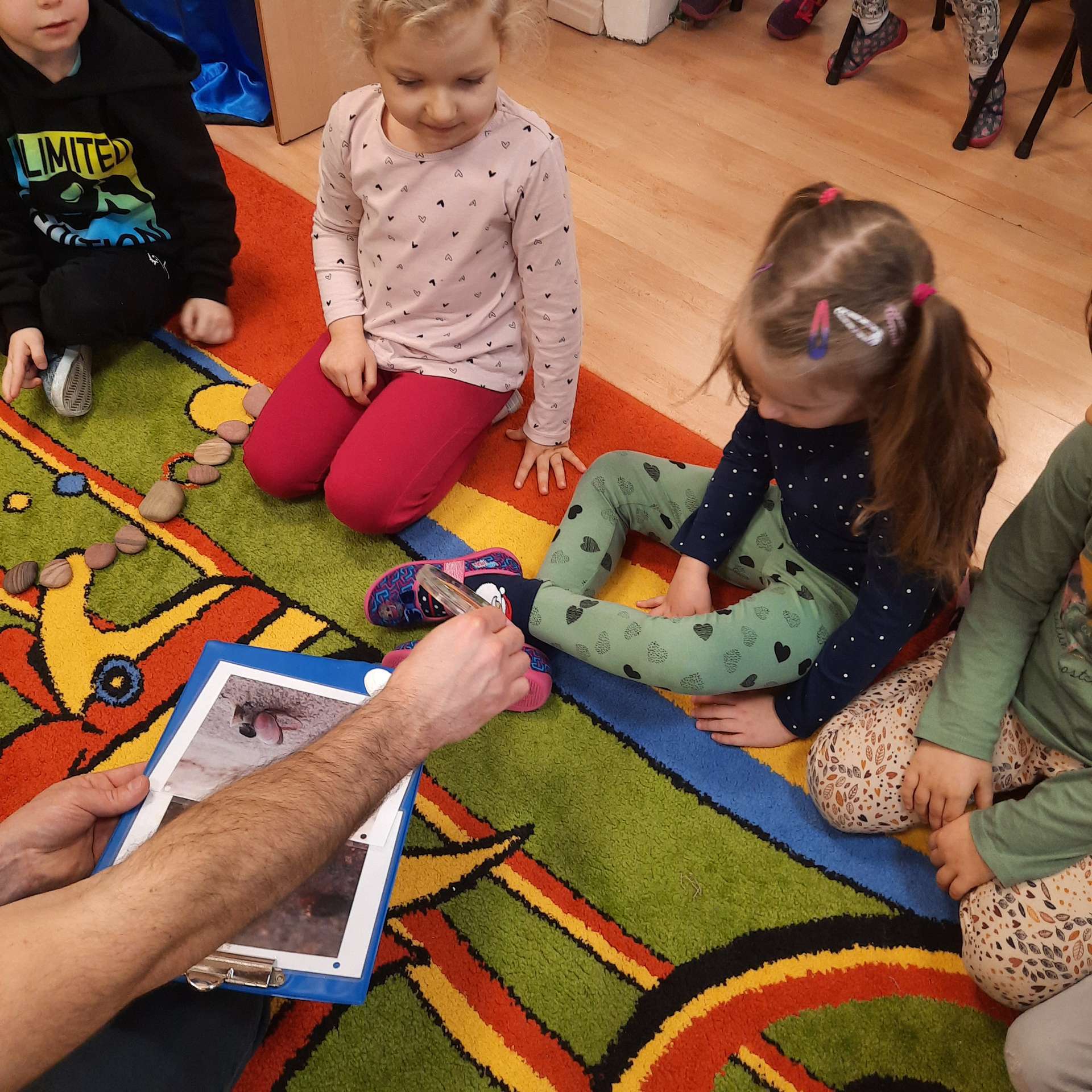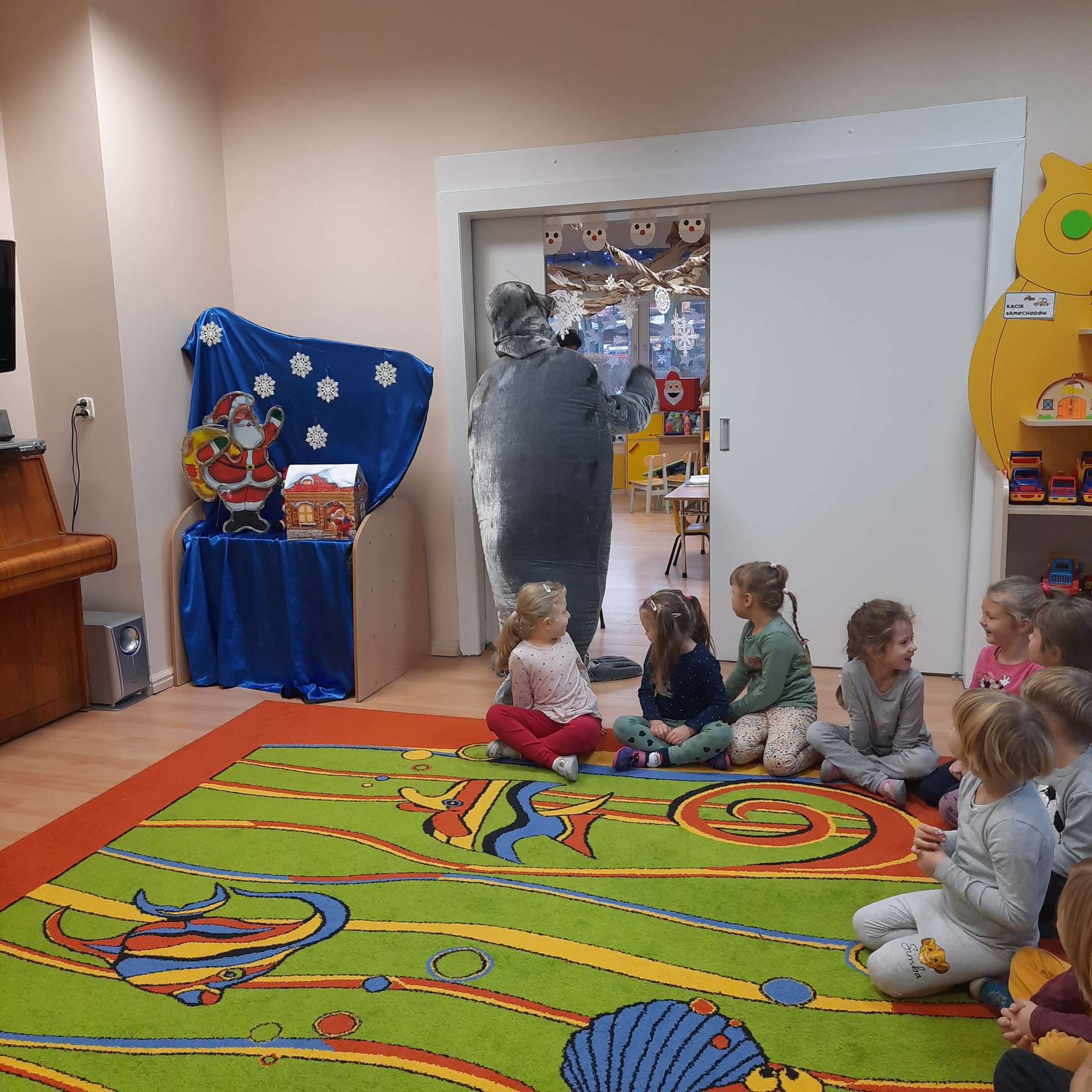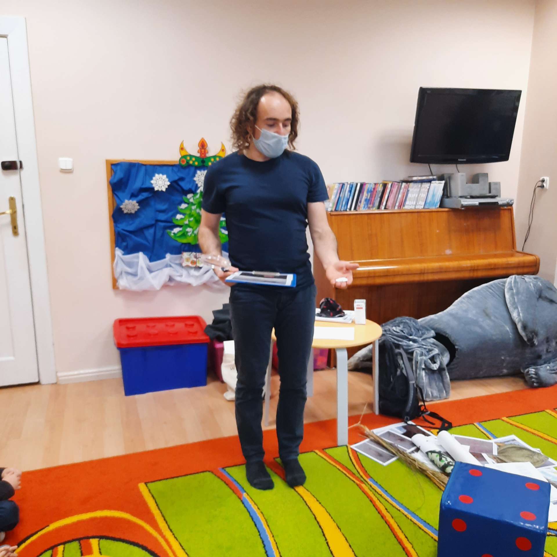Zajęcia rozpoczęły się od przywitania z niesamowitym gościem - foką. Podczas zajęć dzieci dowiedziały się wielu ciekawostek o zwierzętach morskich, rybach, roślinności i wydmach. Podczas zajęć wykorzystano wierszyki i rymowanki związane z naszym Morzem Bałtyckim. Dzięki nim dzieci szybko przyswoiły nowe wiadomości.