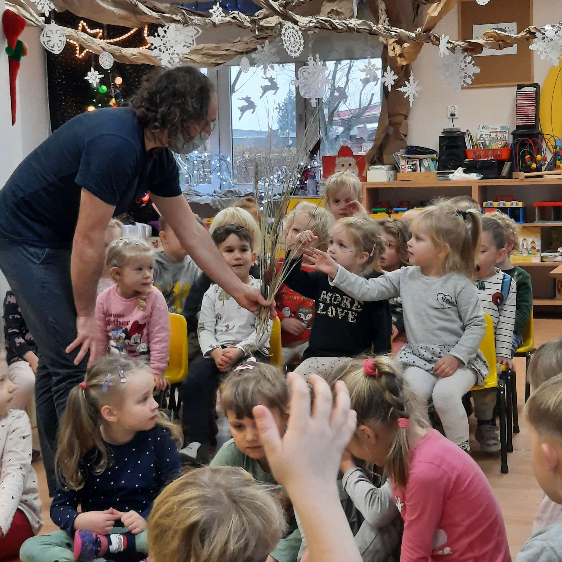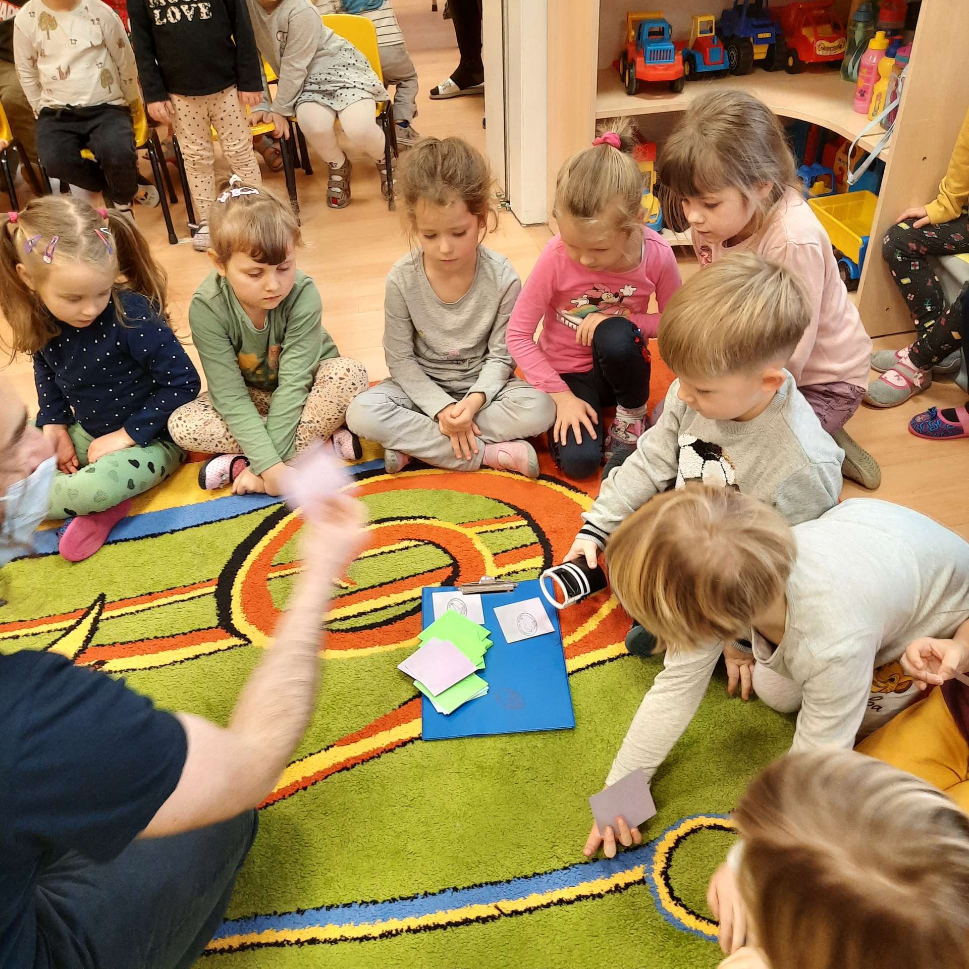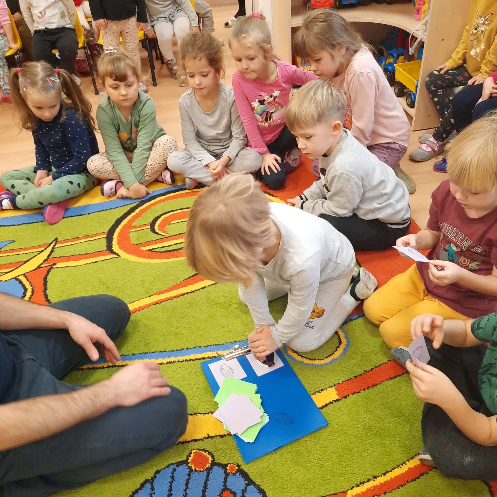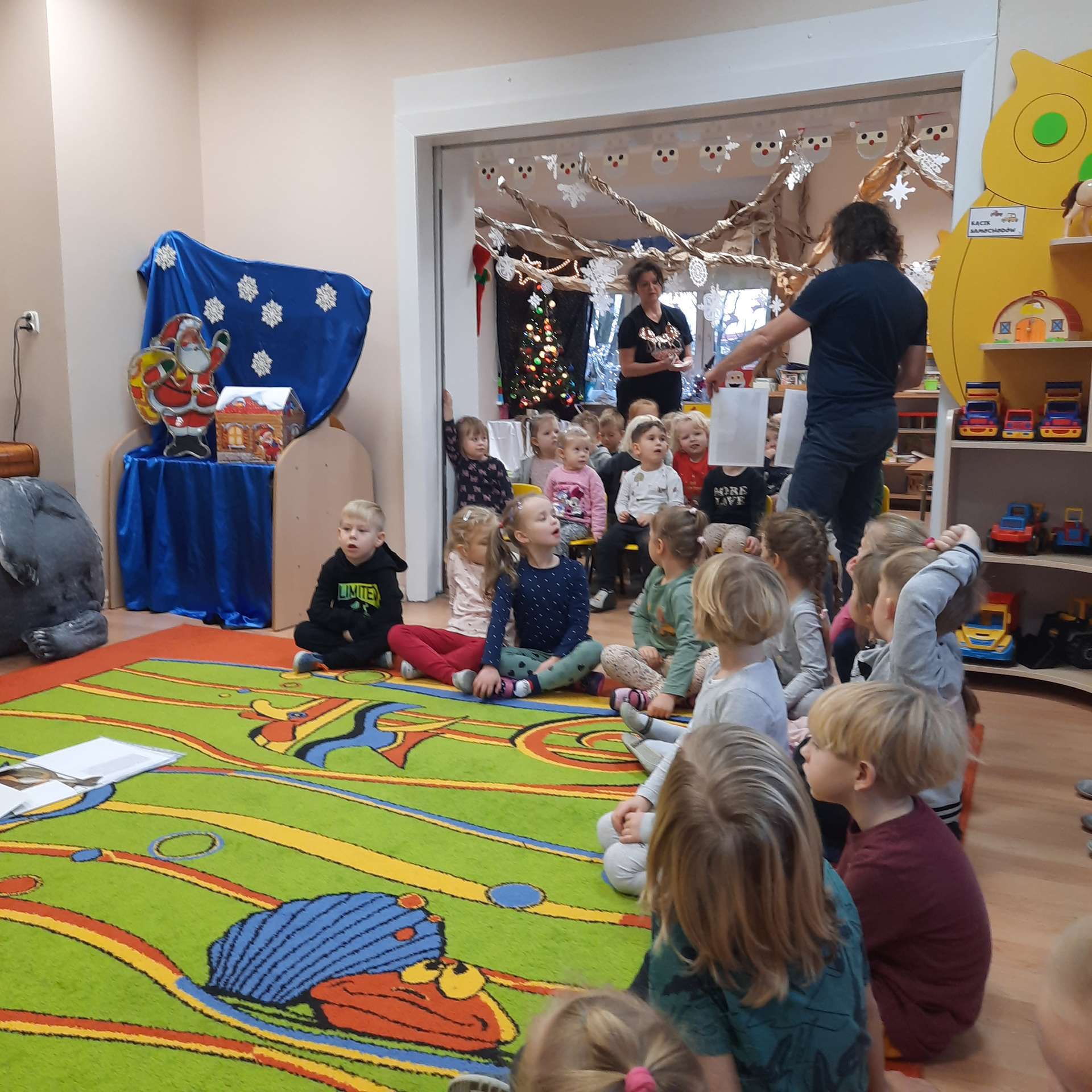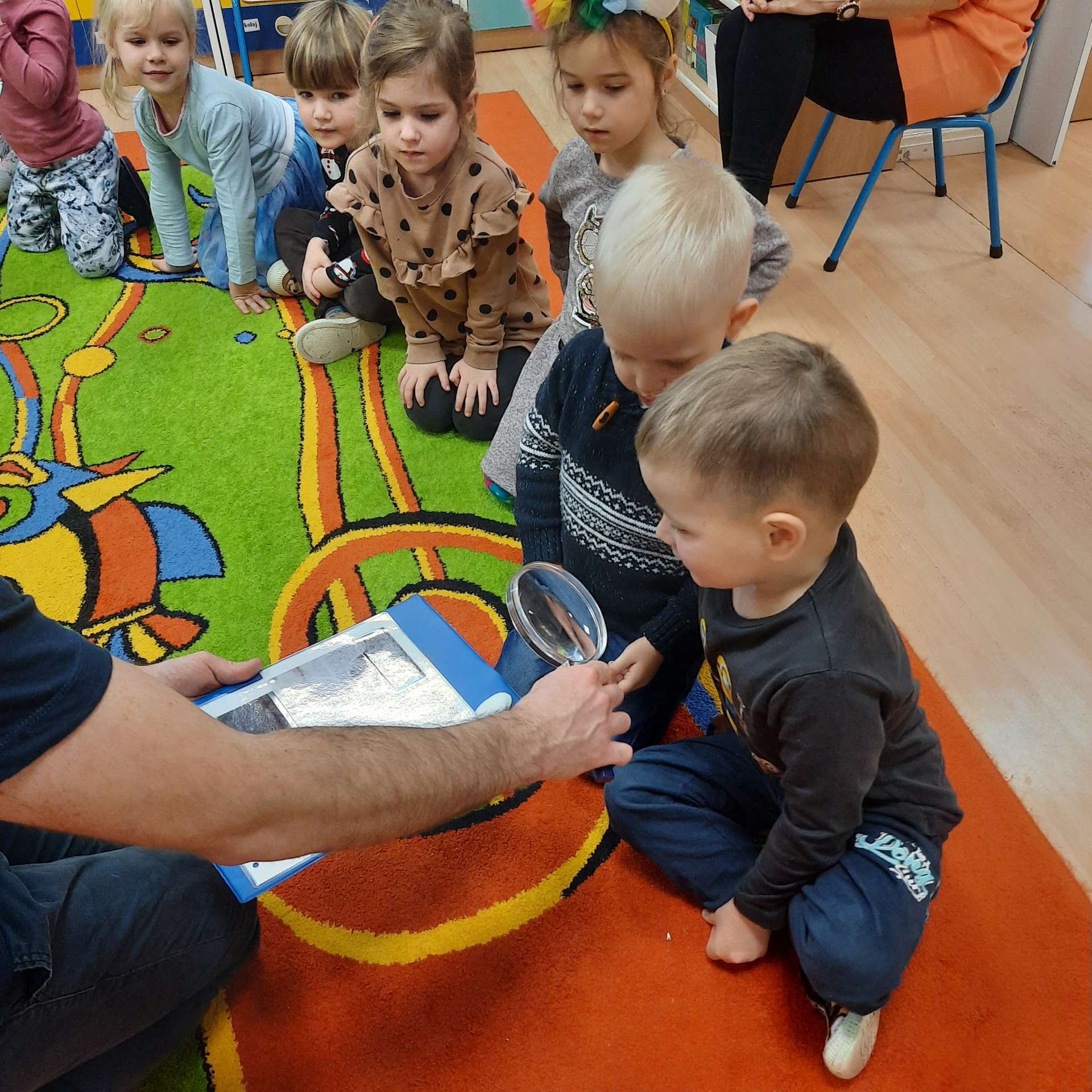 Zajęcia rozpoczęły się od przywitania z niesamowitym gościem - foką. Podczas zajęć dzieci dowiedziały się wielu ciekawostek o zwierzętach morskich, rybach, roślinności i wydmach. Podczas zajęć wykorzystano wierszyki i rymowanki związane z naszym Morzem Bałtyckim. Dzięki nim dzieci szybko przyswoiły nowe wiadomości.