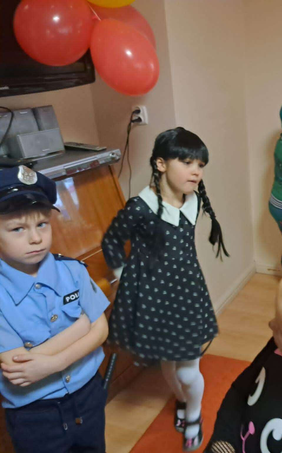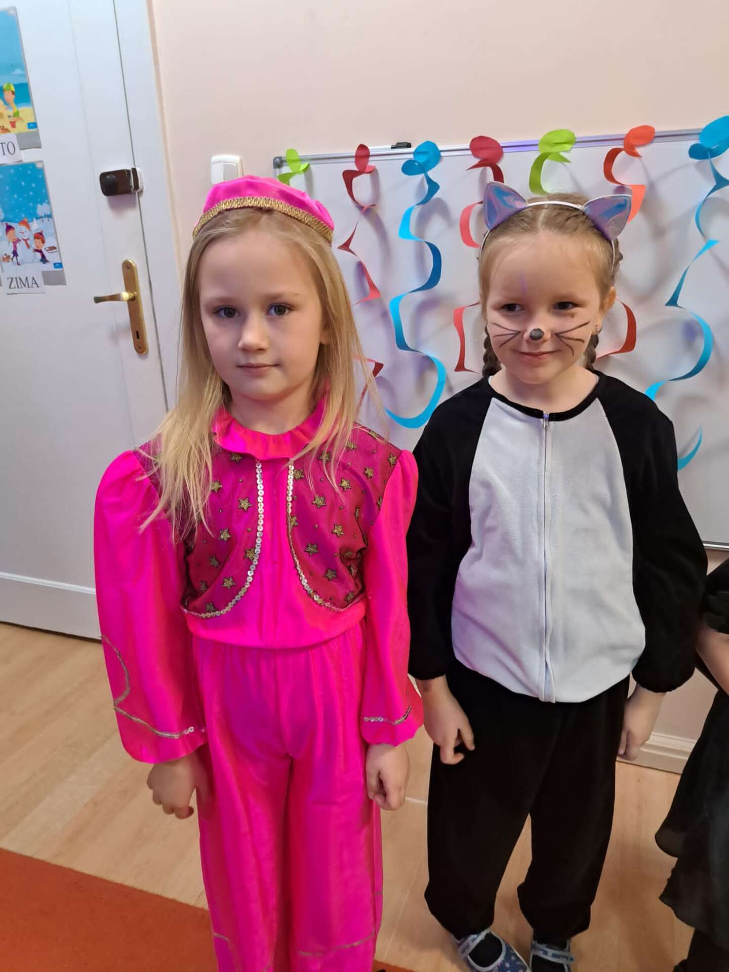 Dwie dziewczynki prezentują swoje stroje karnawałowe