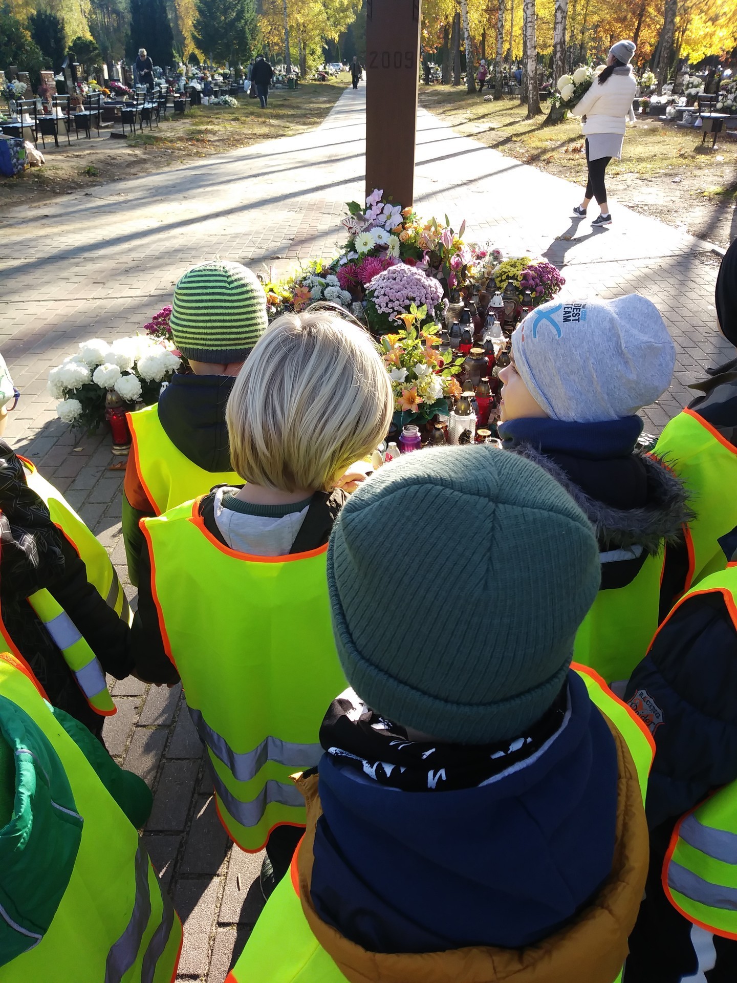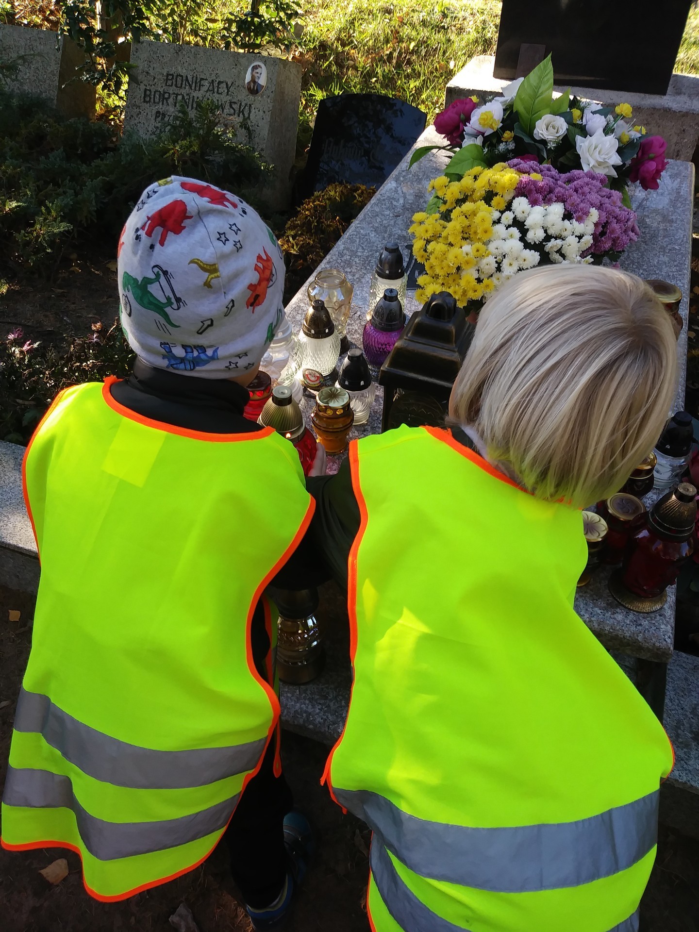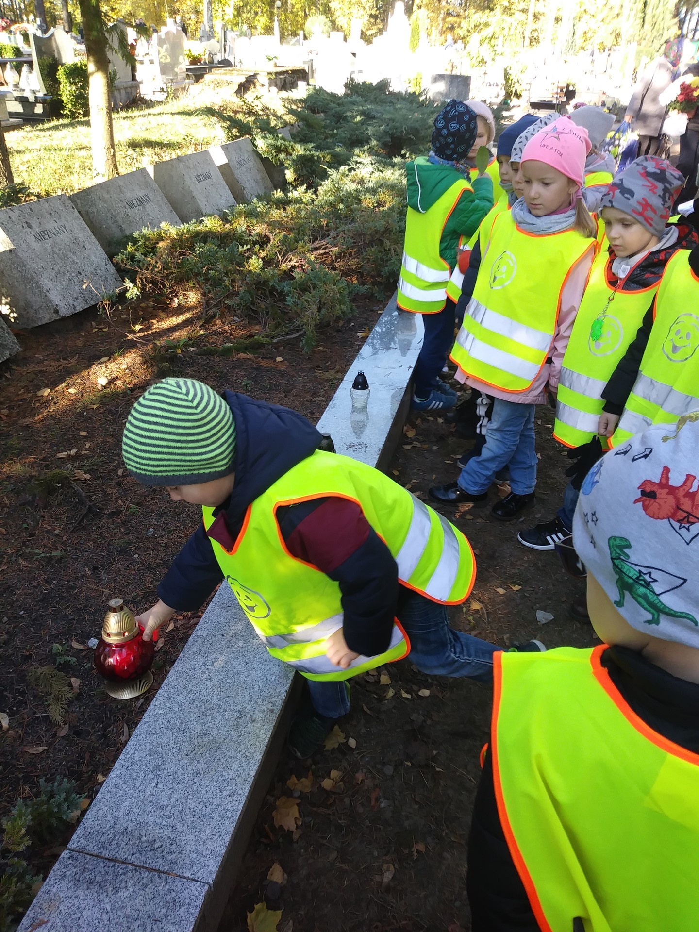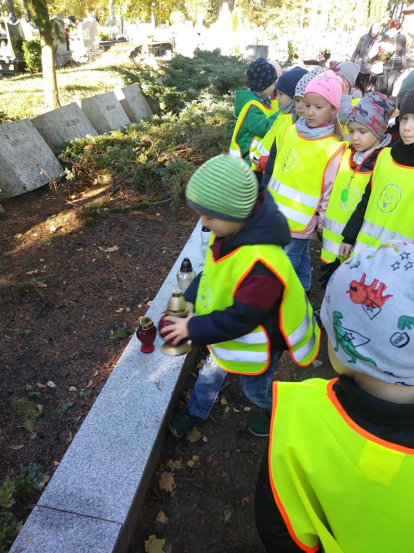 Okres przed Świętem Zmarłych to odpowiedni moment na wspomnienie o tych, którzy odeszli od nas, czas na rozmowy dotyczące szacunku dla zmarłych i odpowiednim zachowaniu się w takim miejscu. Dzieci z grupy IV tego dnia uczciły pamięć o zmarłych wybierając się na cmentarz.