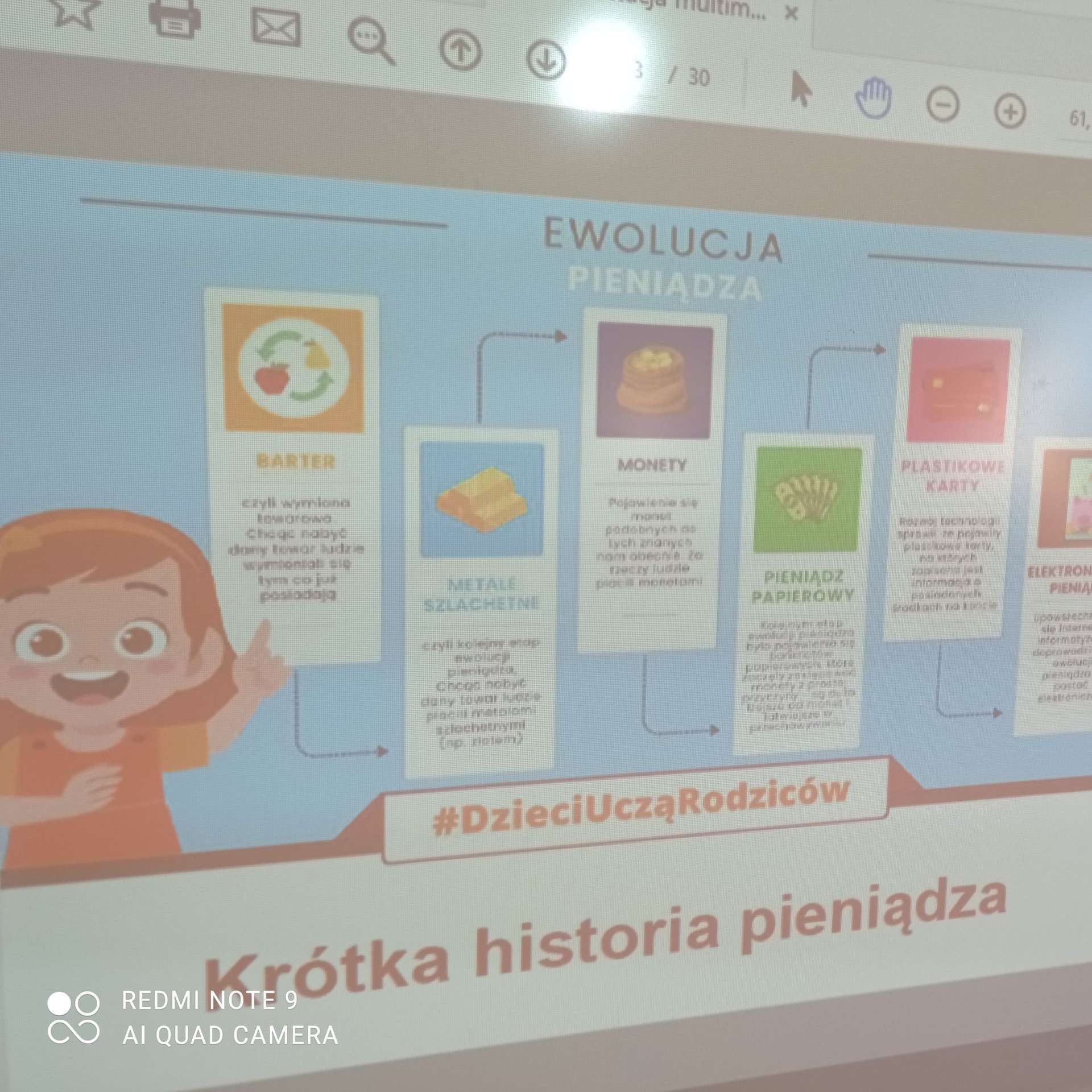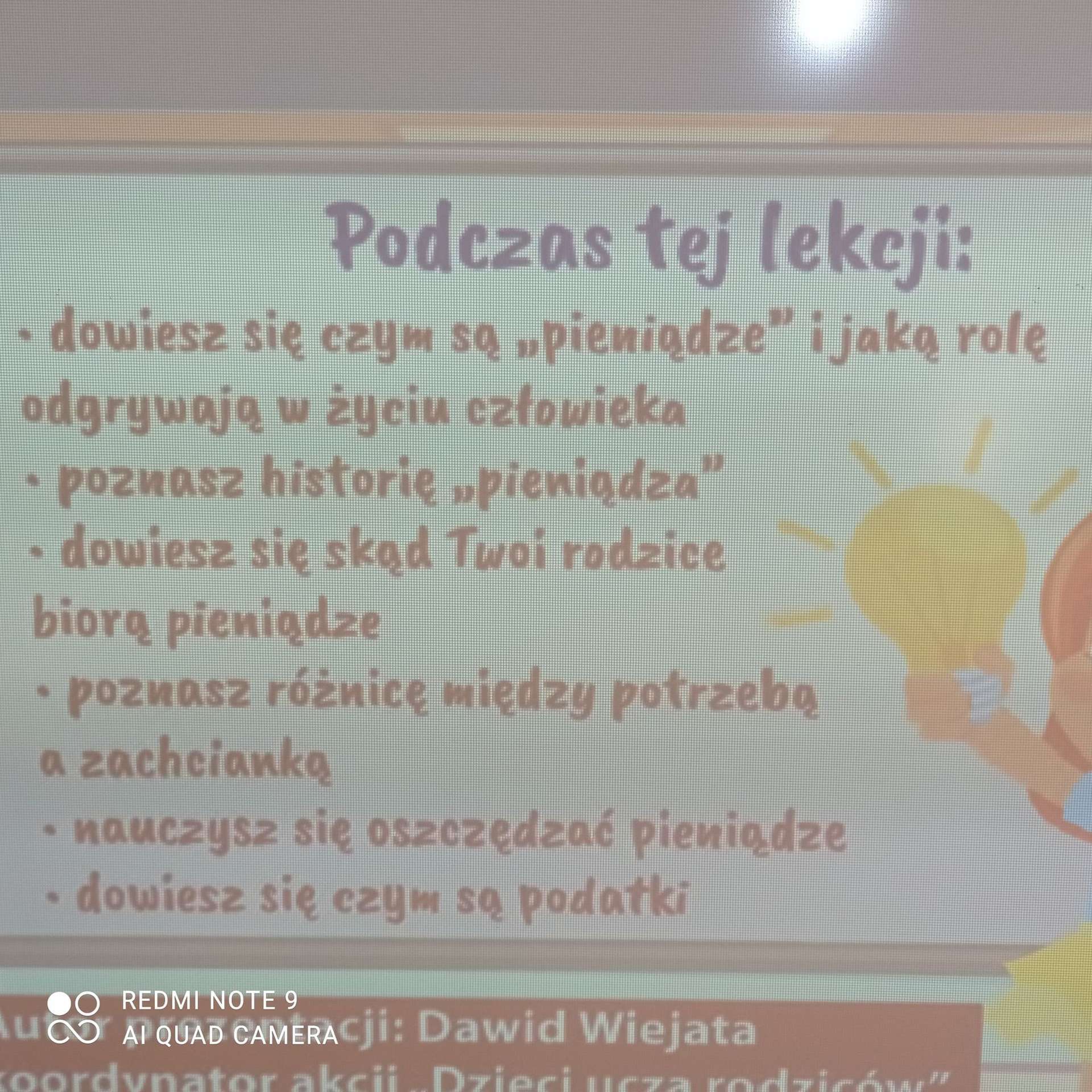 Kolejna lekcja za nami. Temat : "W świecie ekonomii". Na tej lekcji dzieci dowiedziały się czym są pieniądze i jaką rolę odgrywają w życiu człowieka. Poznały historię pieniądza oraz skąd rodzice mają pieniądze. Poznały również słowa pensja-wynagrodzenie. Dostrzegały różnicę miedzy potrzebą a zachcianką. Nauczyły się w jaki sposób oszczędzać pieniądze, co to jest podatek oraz na co przeznaczane są podatki.